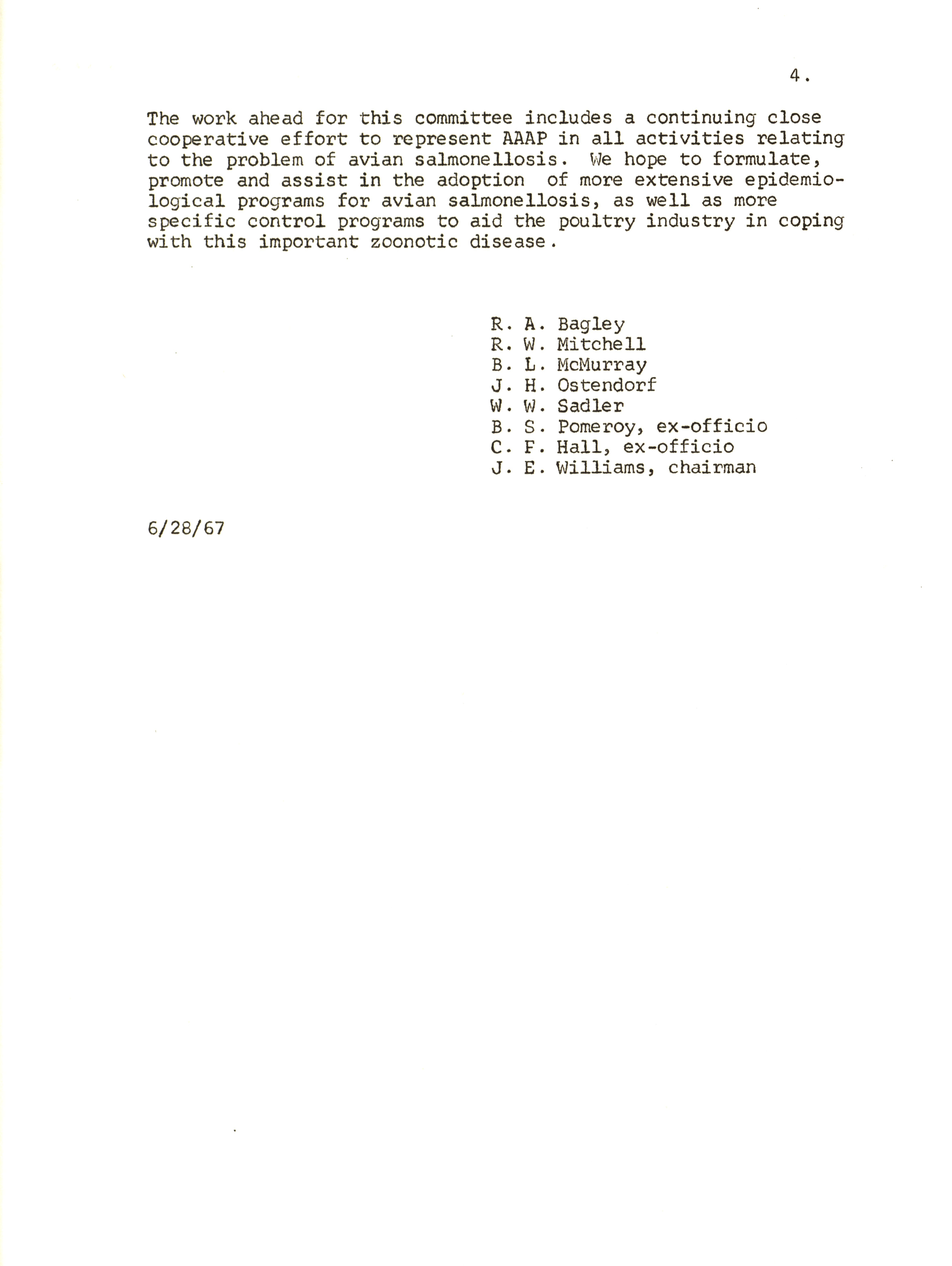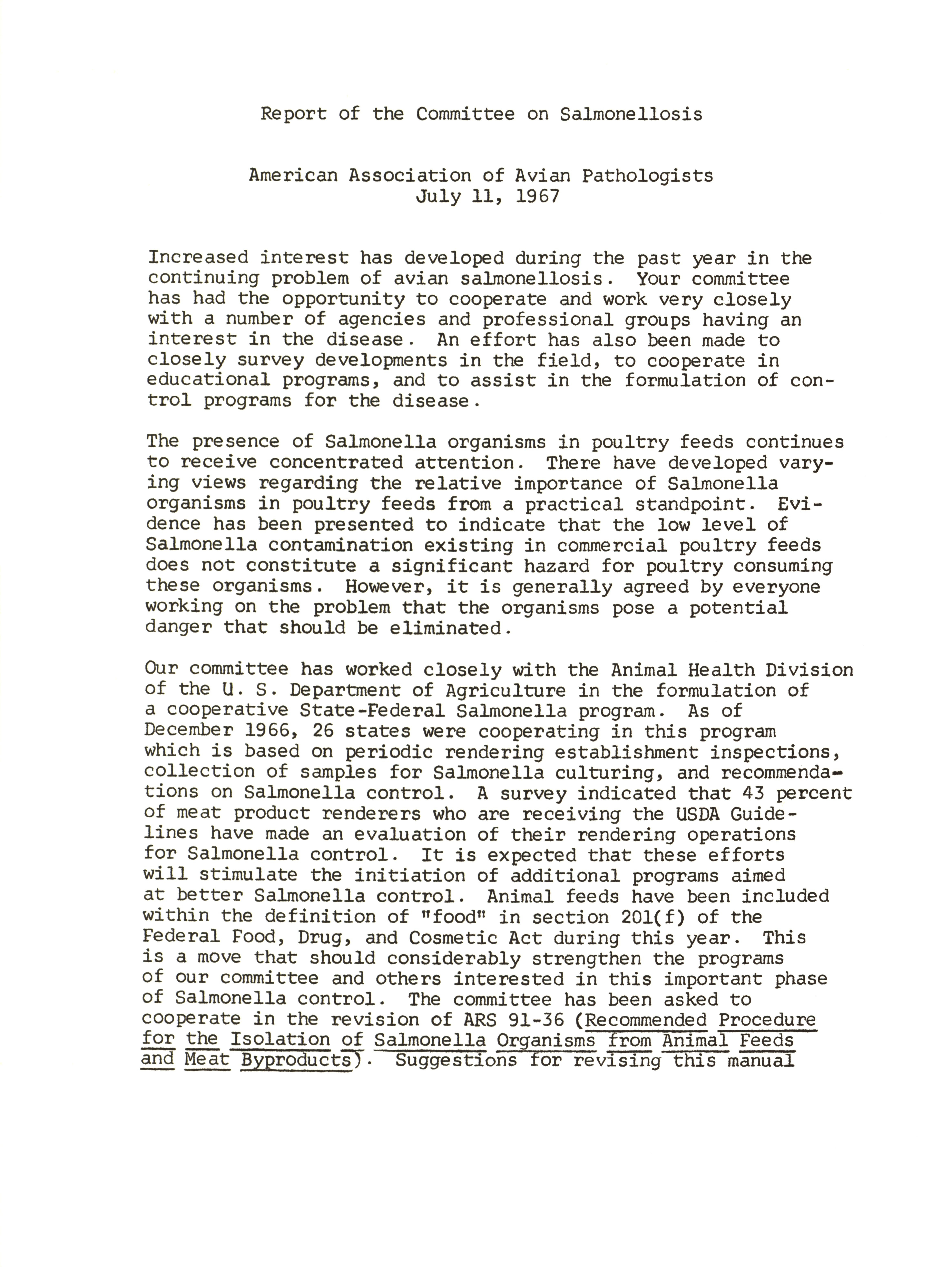 - "AAAP report of the committee on salmonellosis, July 11, 1967", American Association of Avian Pathologists Collection, Iowa State University Library Digital Collections