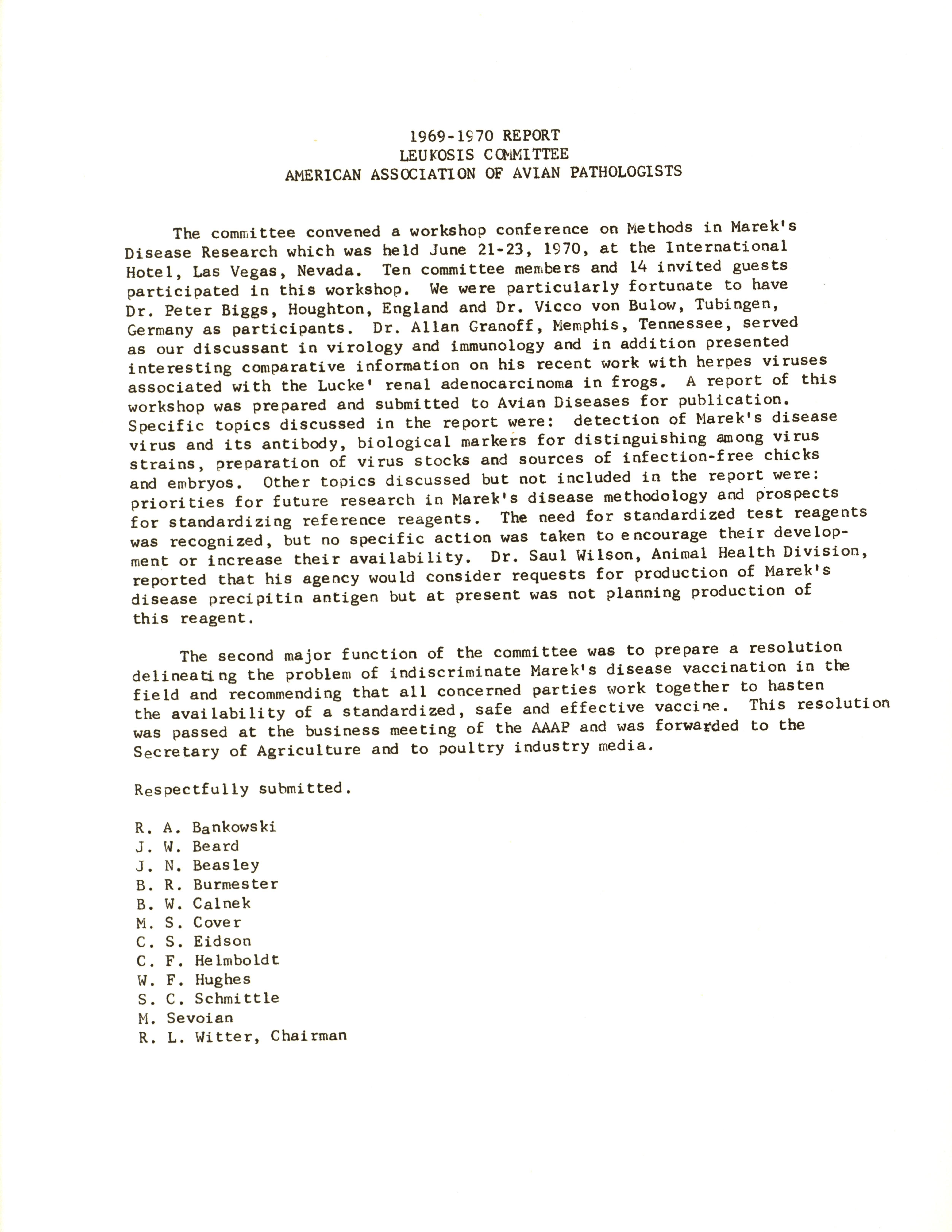 - AAAP report of the leukosis committee, 1969-1970