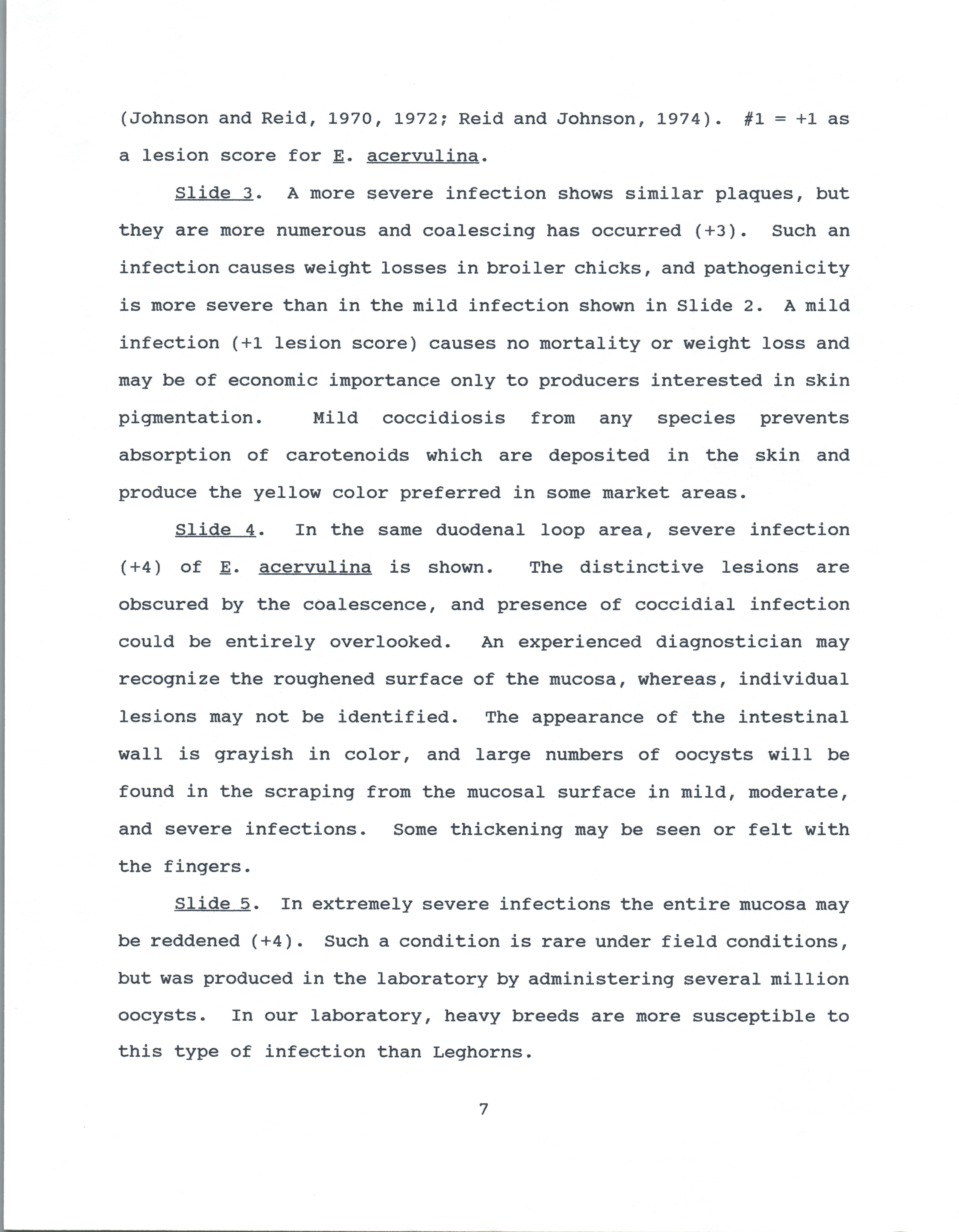 - Slide Study Set #7, Coccidiosis in Chickens, 2 sets (includes 48 color slides), 1977
