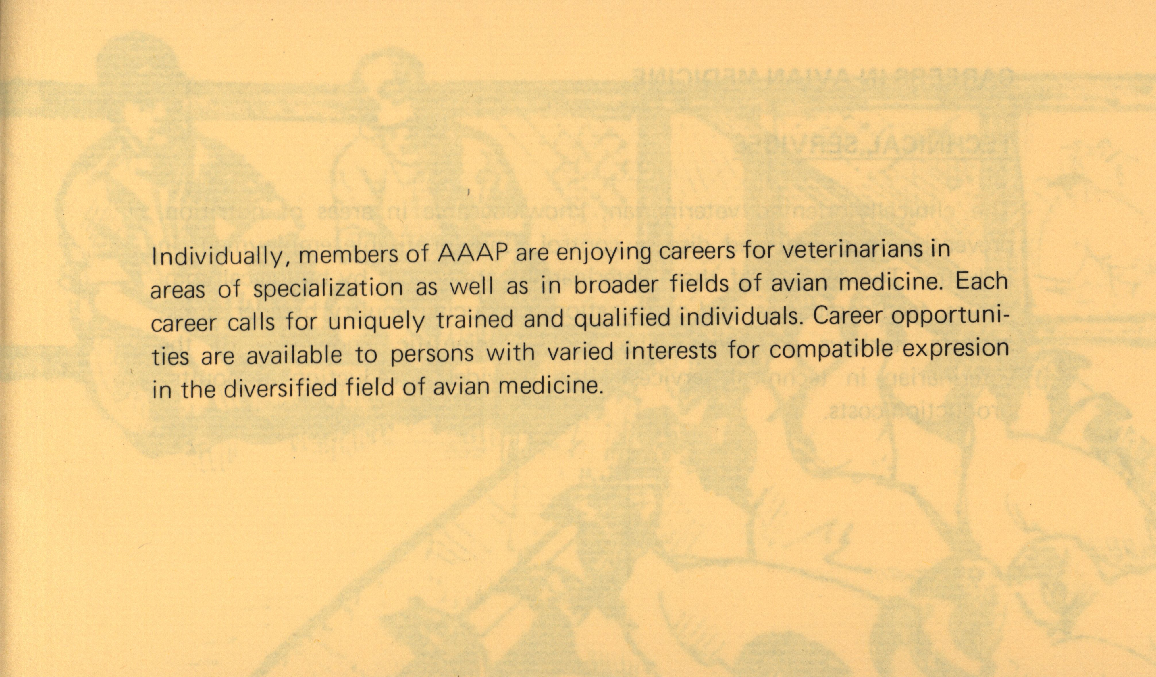 - Booklet: American Association of Avian Pathologists, careers in avian medicine