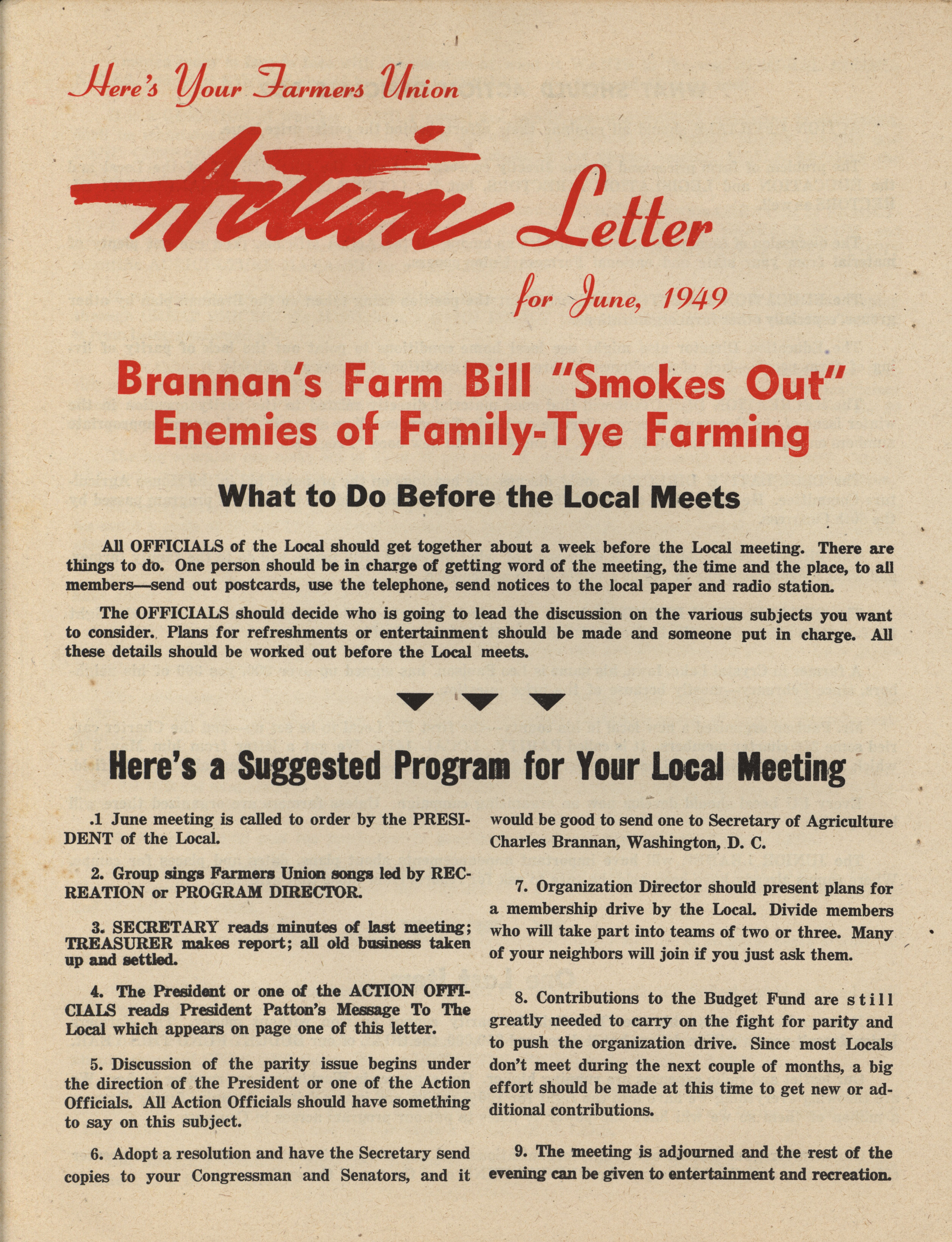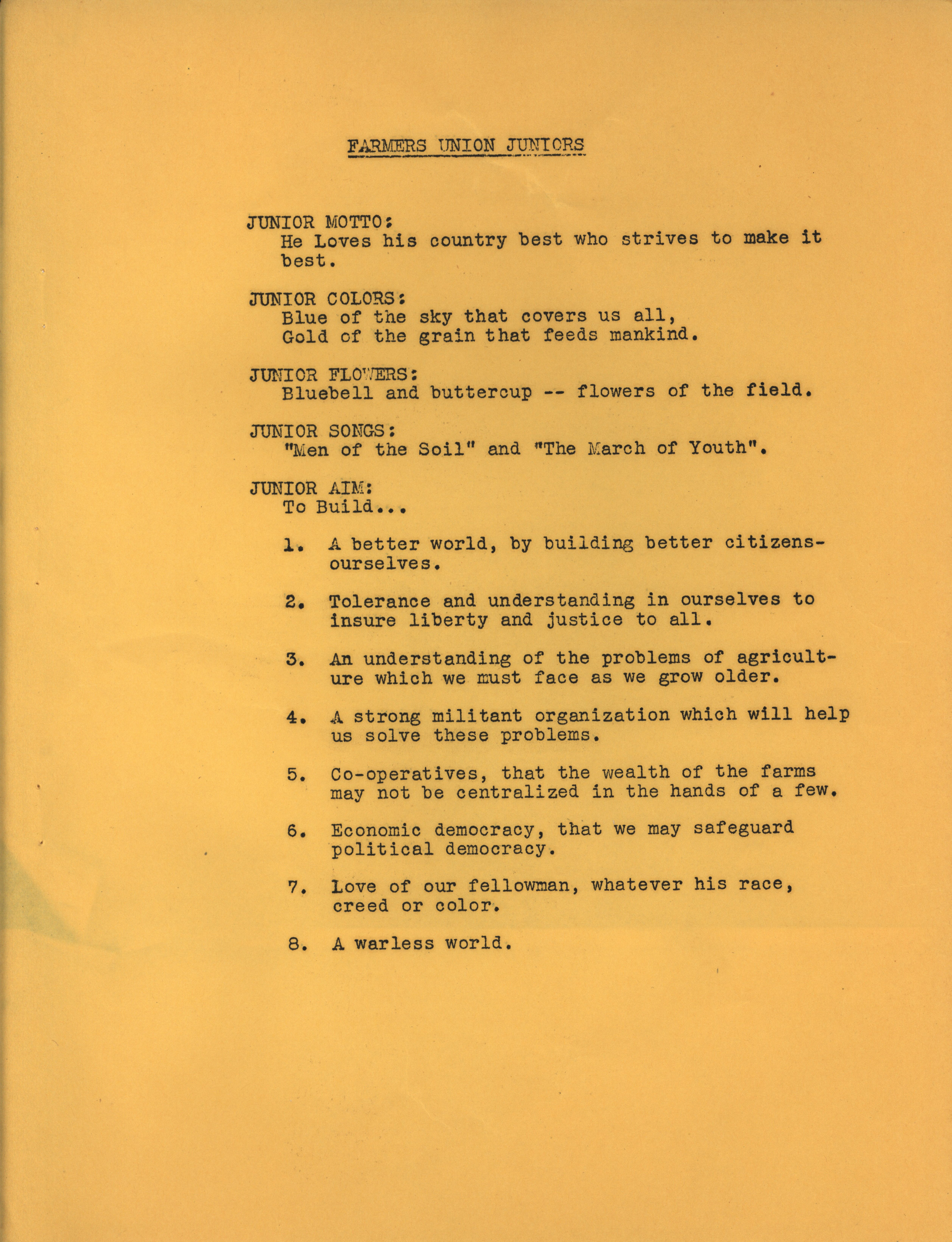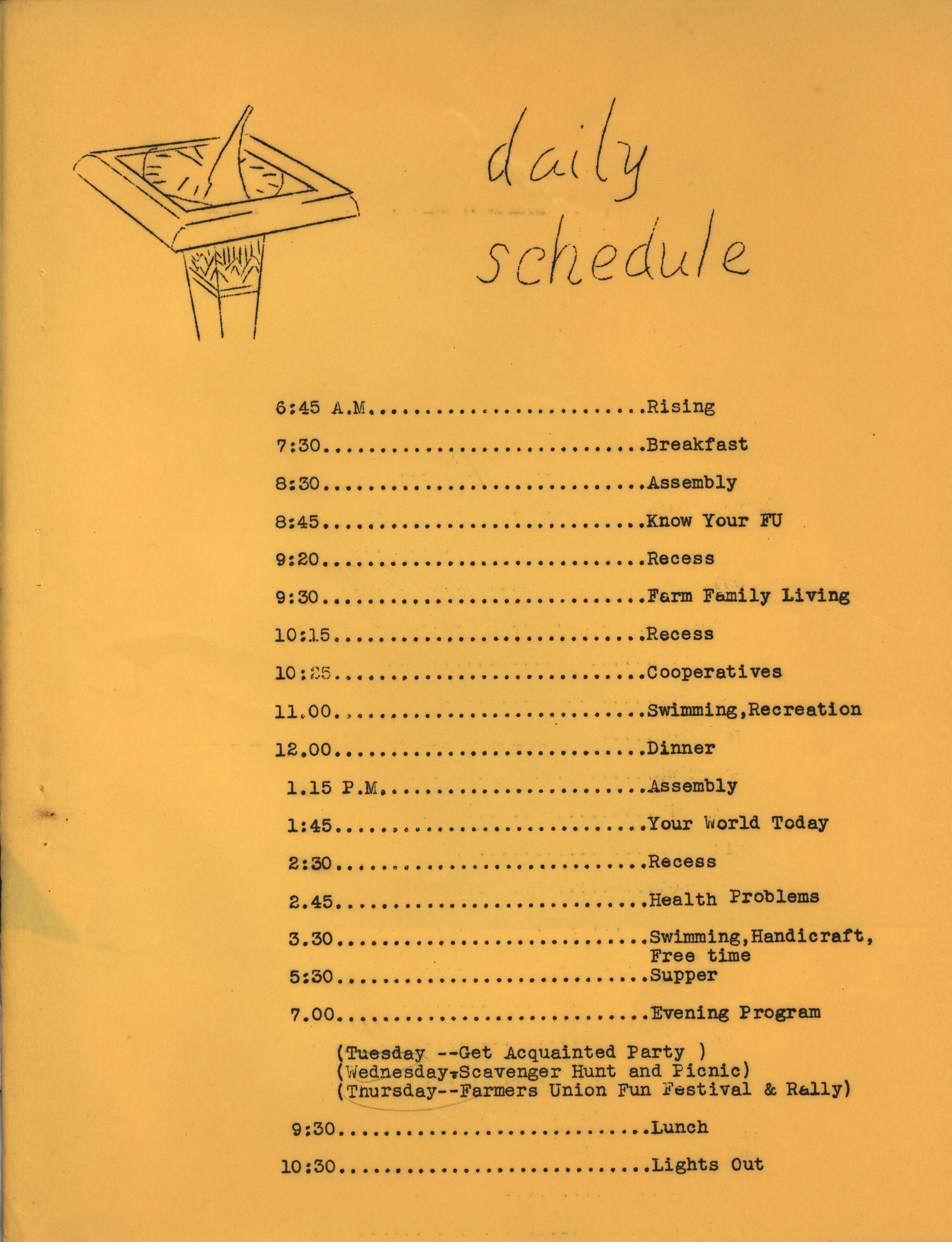 - Program for the 1949 Farmers Union Camp in Clear Lake, Iowa.