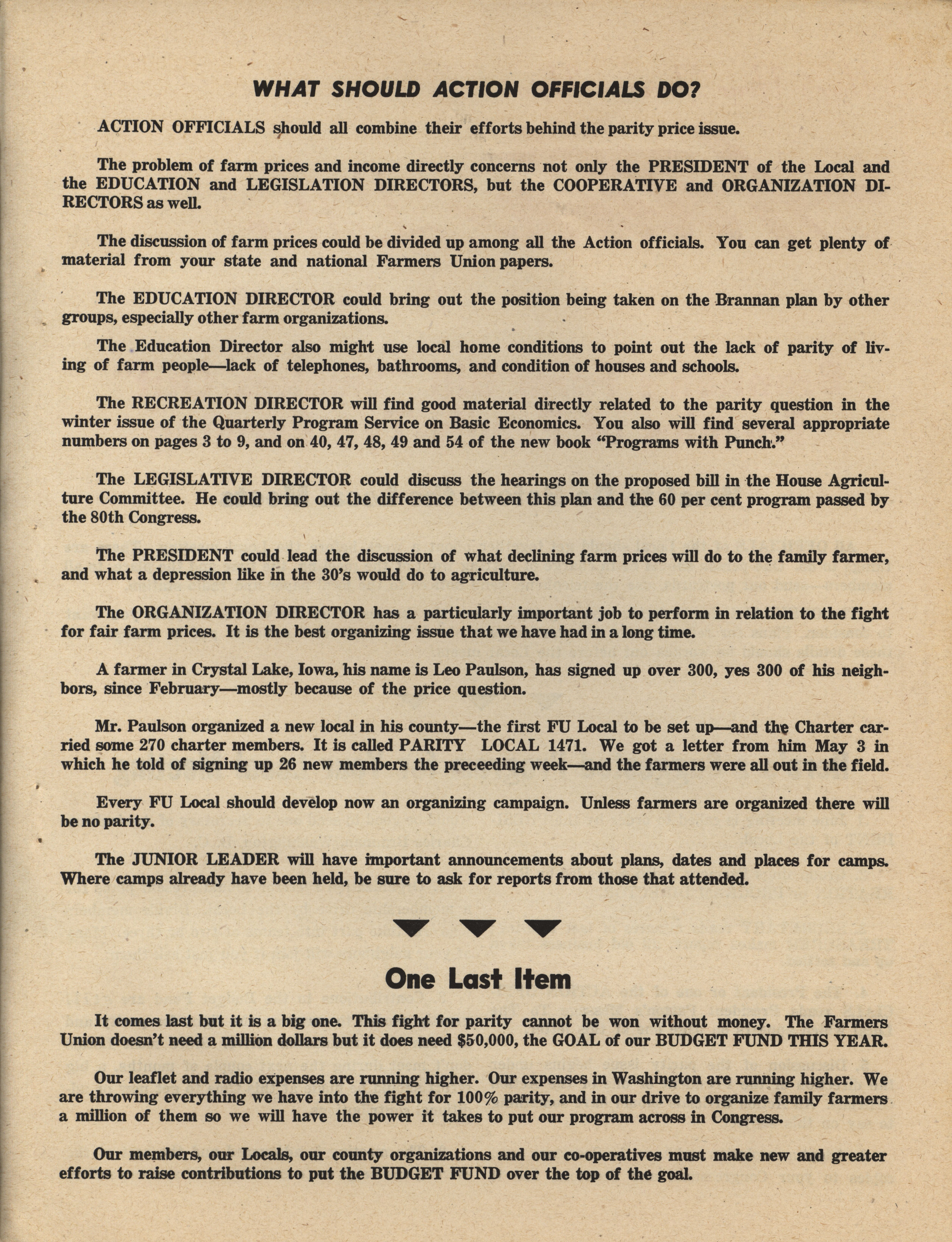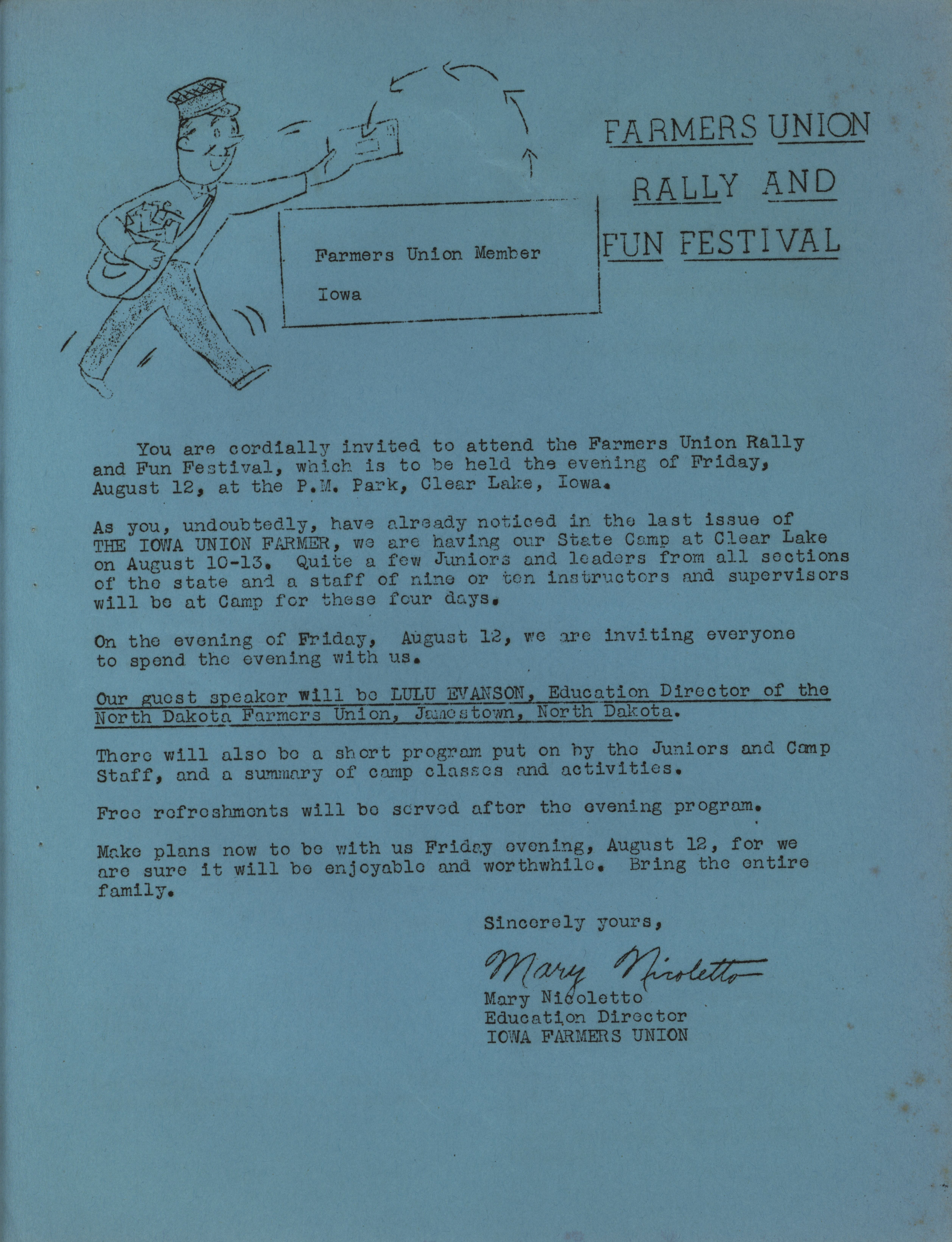 - "Farmers Union Camp, Clear Lake, Iowa; August 10-13, 1949", Activist Agriculture Collection, Iowa State University Library Digital Collections