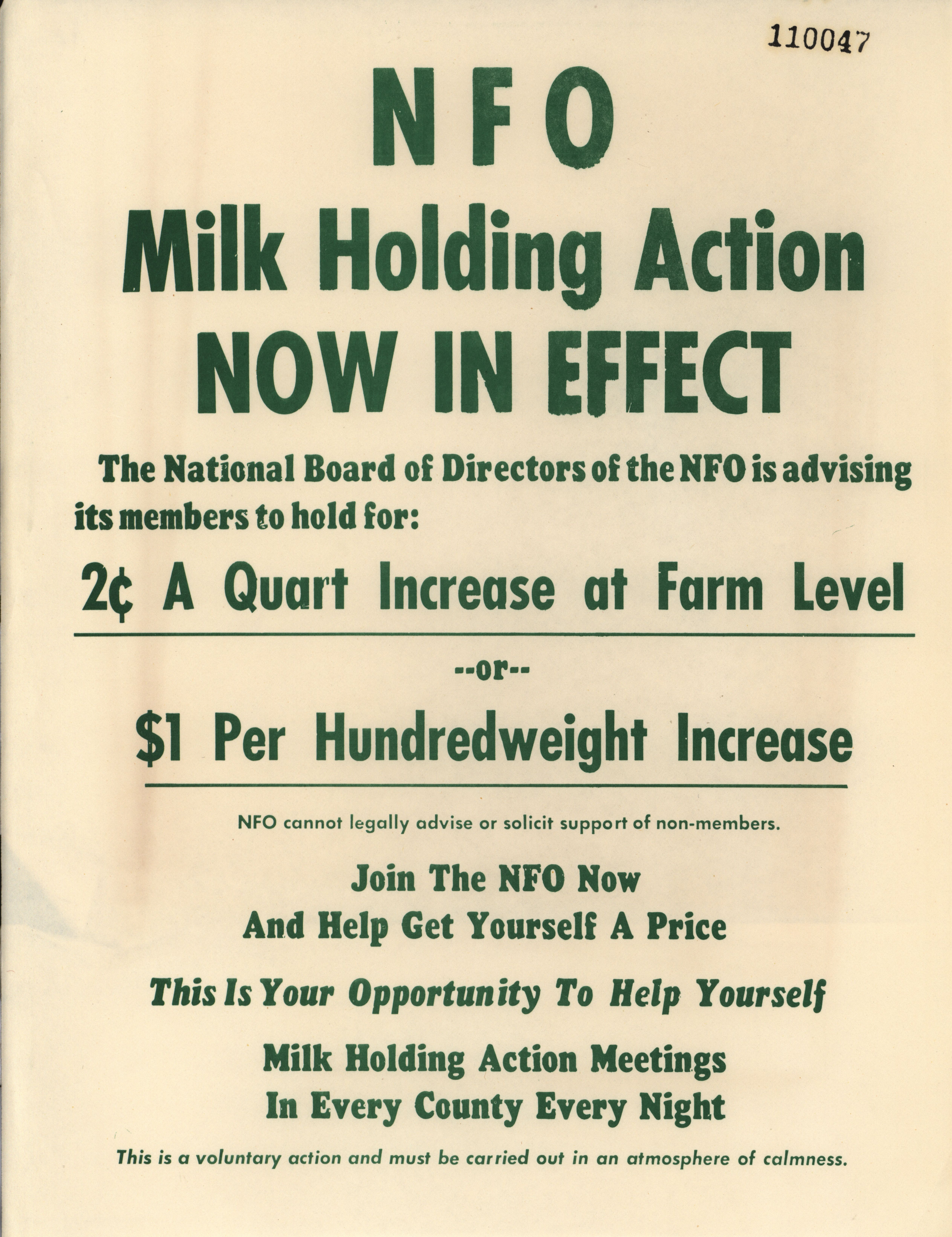 - "NFO Milk Holding Action is Now in Effect", Activist Agriculture Collection, Iowa State University Library Digital Collections
