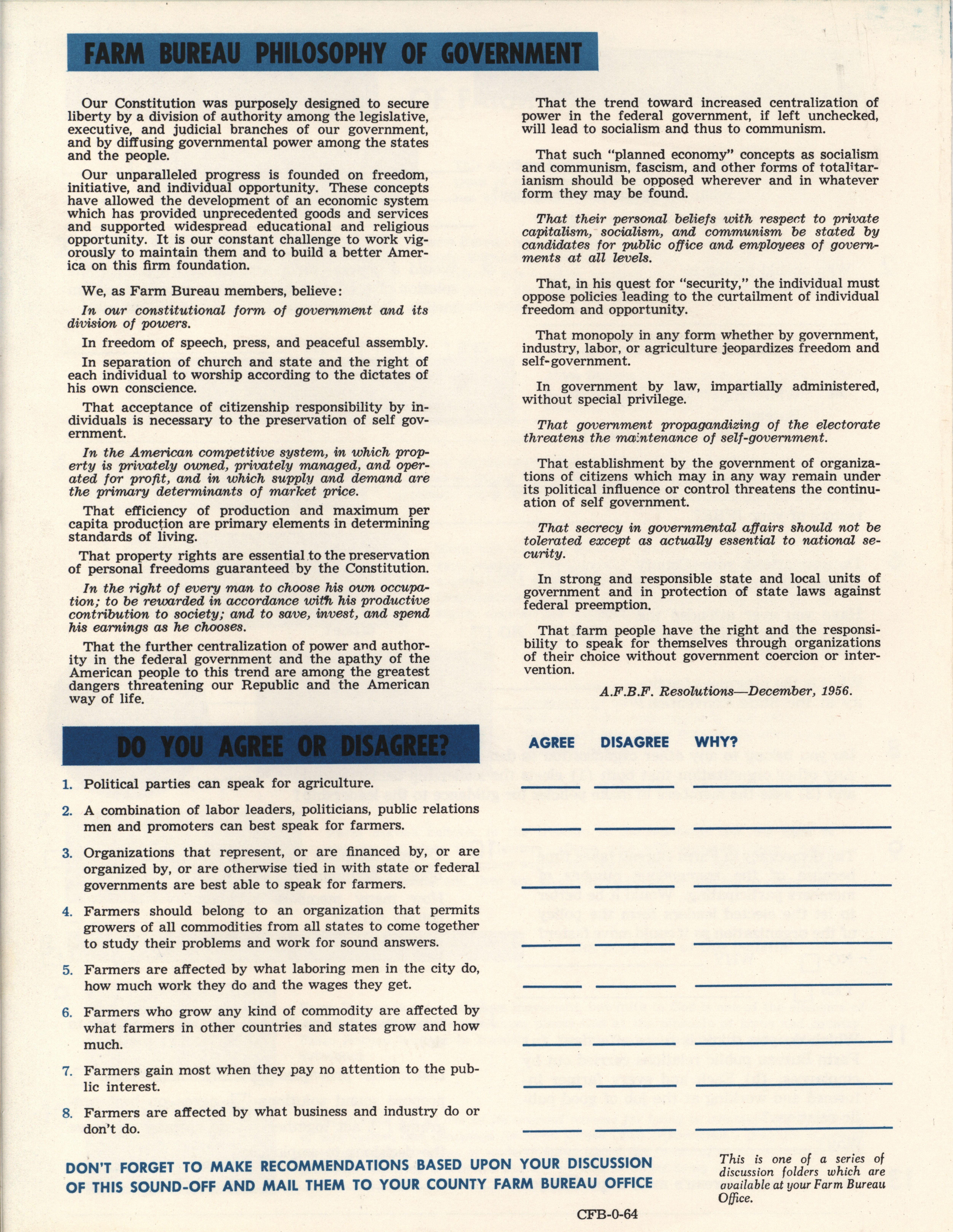 - "Iowa Farm Bureau members Sound Off!", Activist Agriculture Collection, Iowa State University Library Digital Collections