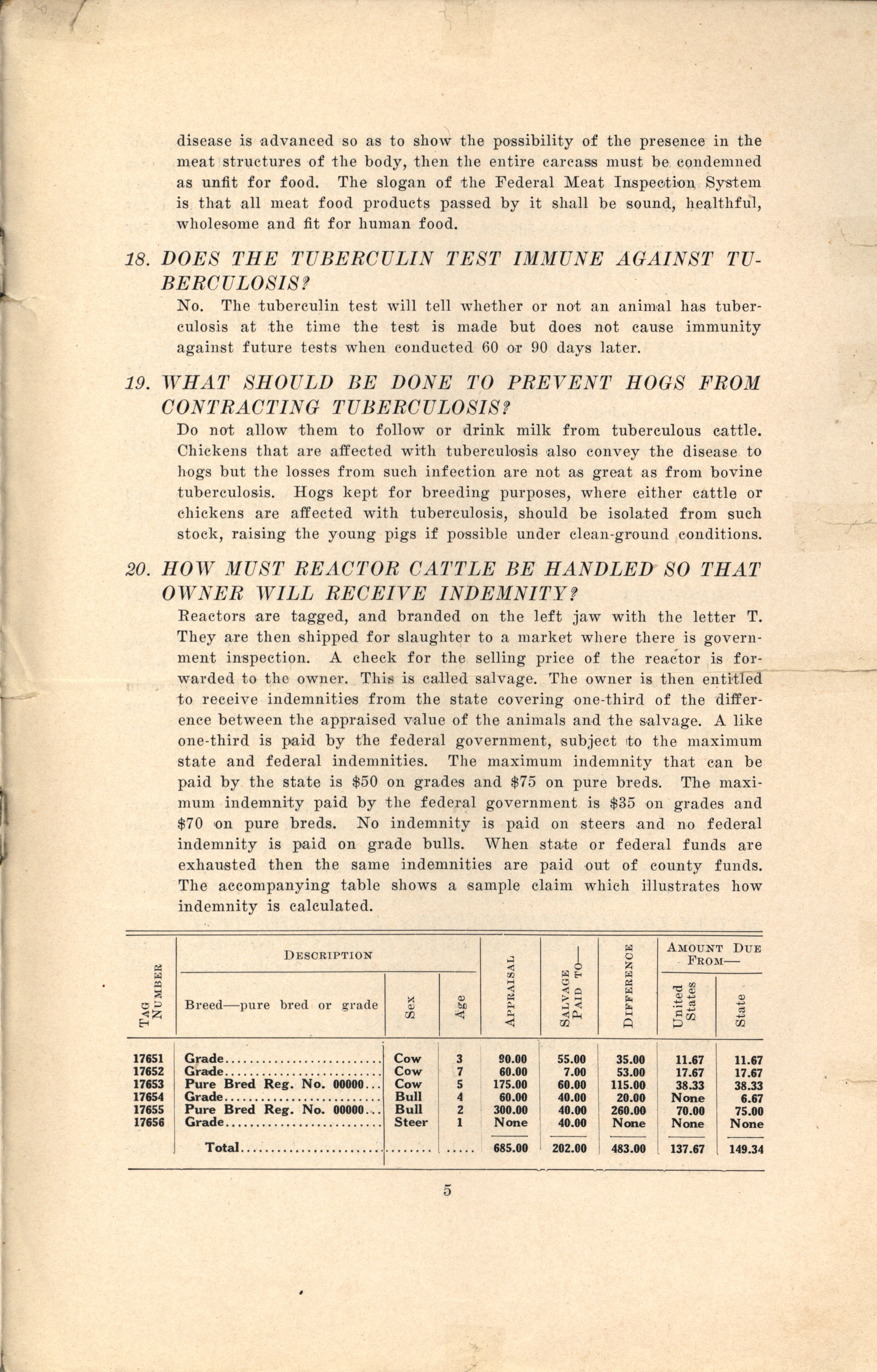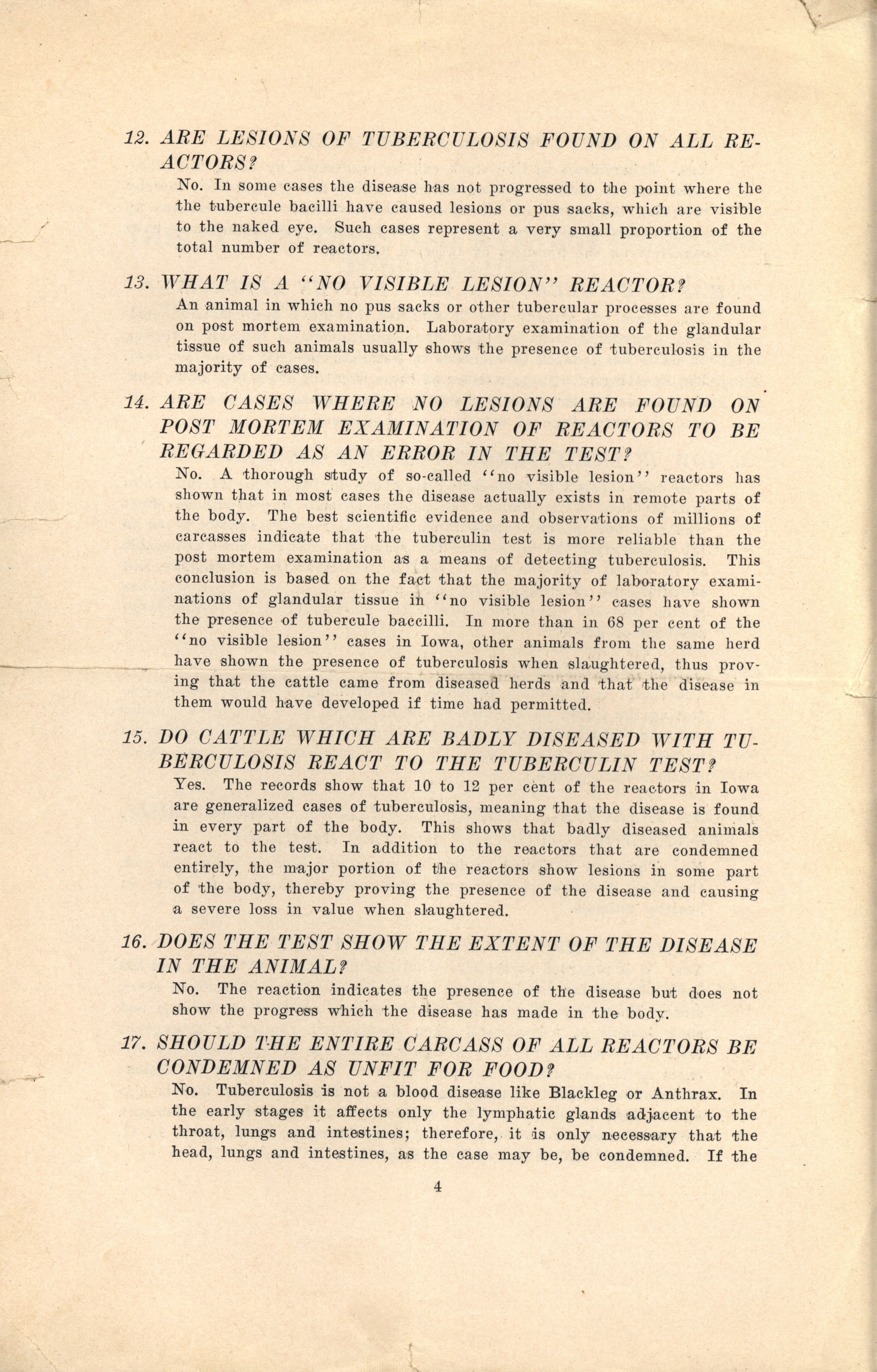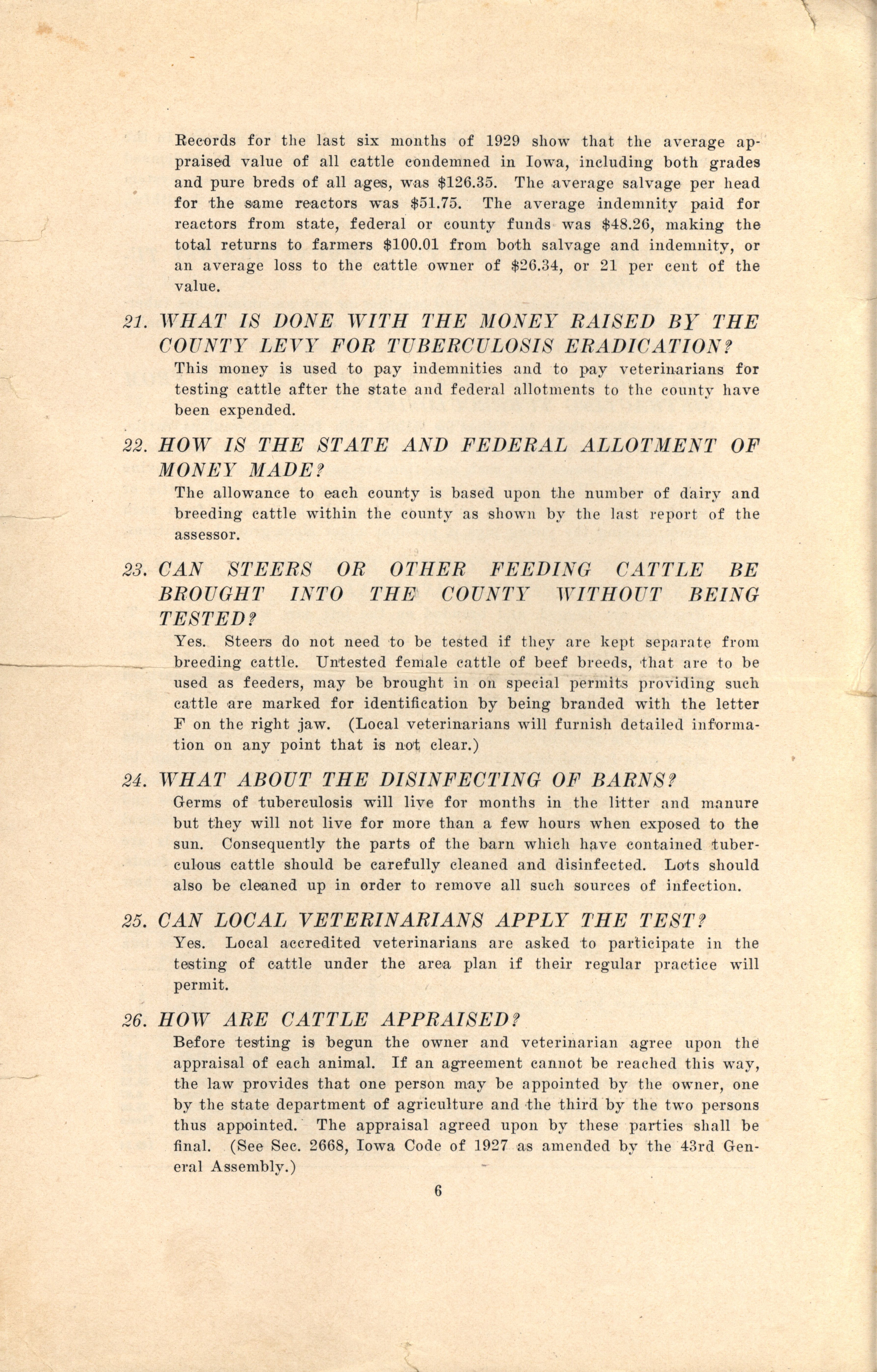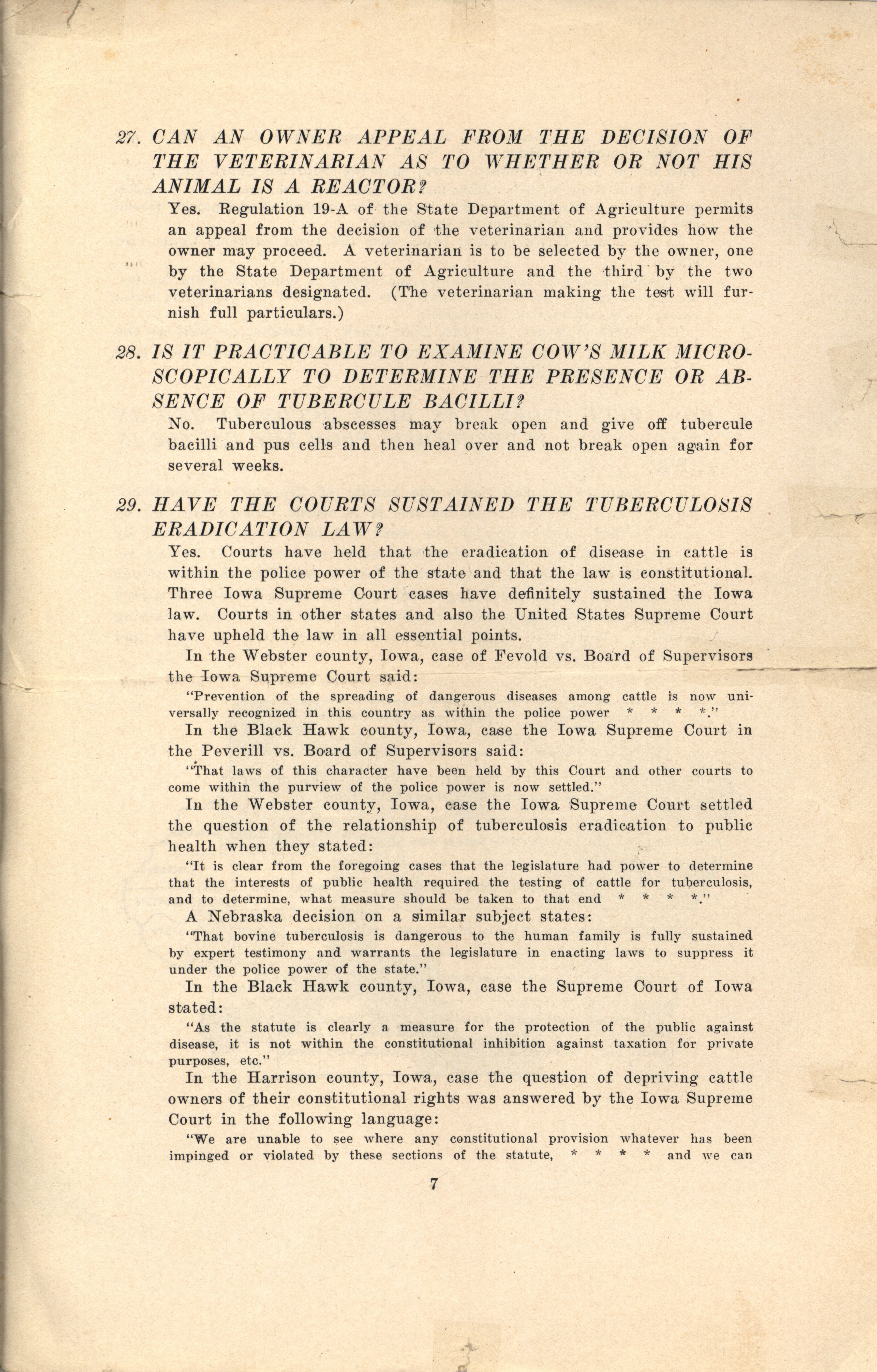 - "Thirty Questions and Answers on Bovine Tuberculosis: Prepared by Iowa Department of Agriculture", Activist Agriculture Collection, Iowa State University Library Digital Collections