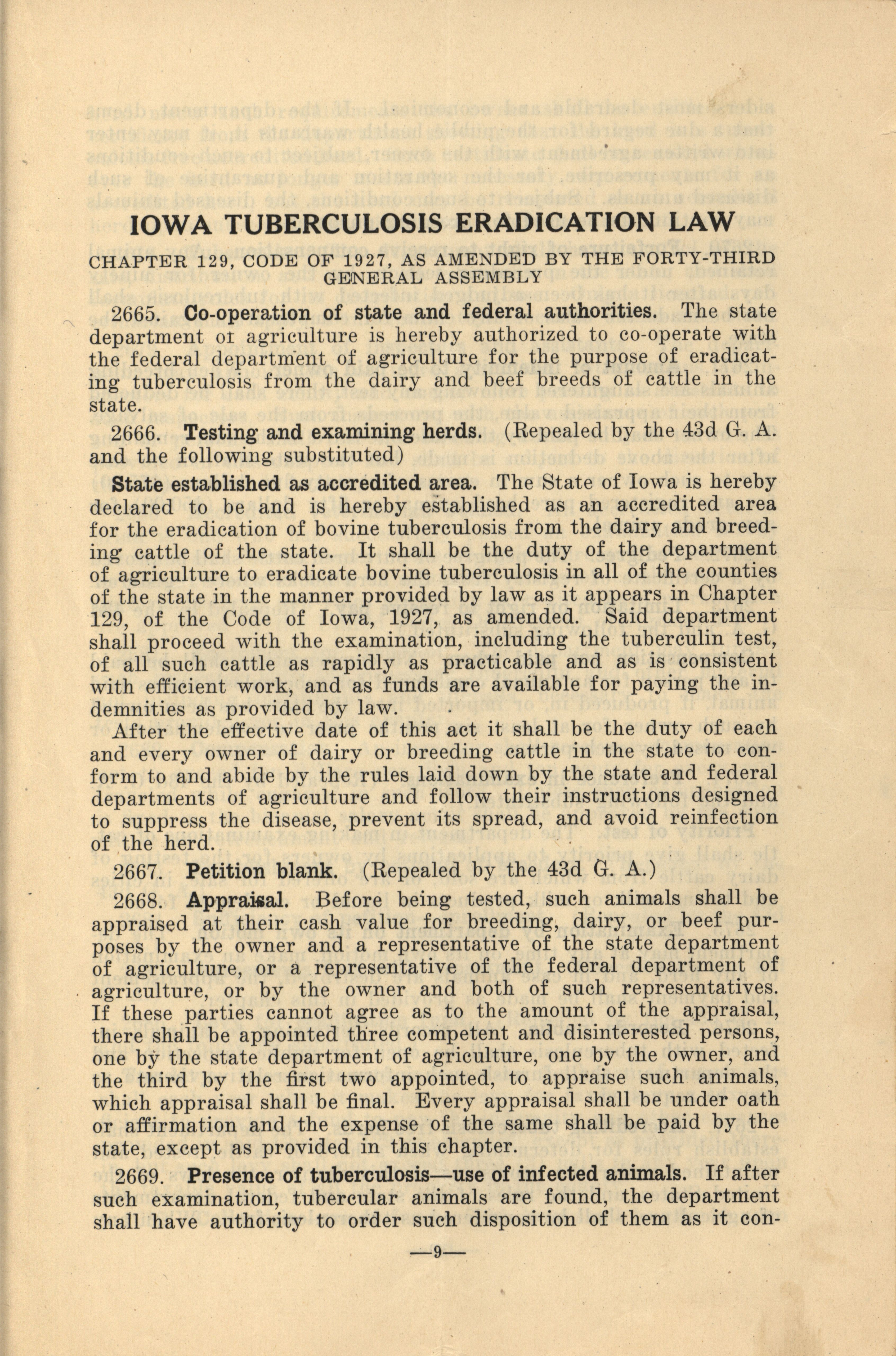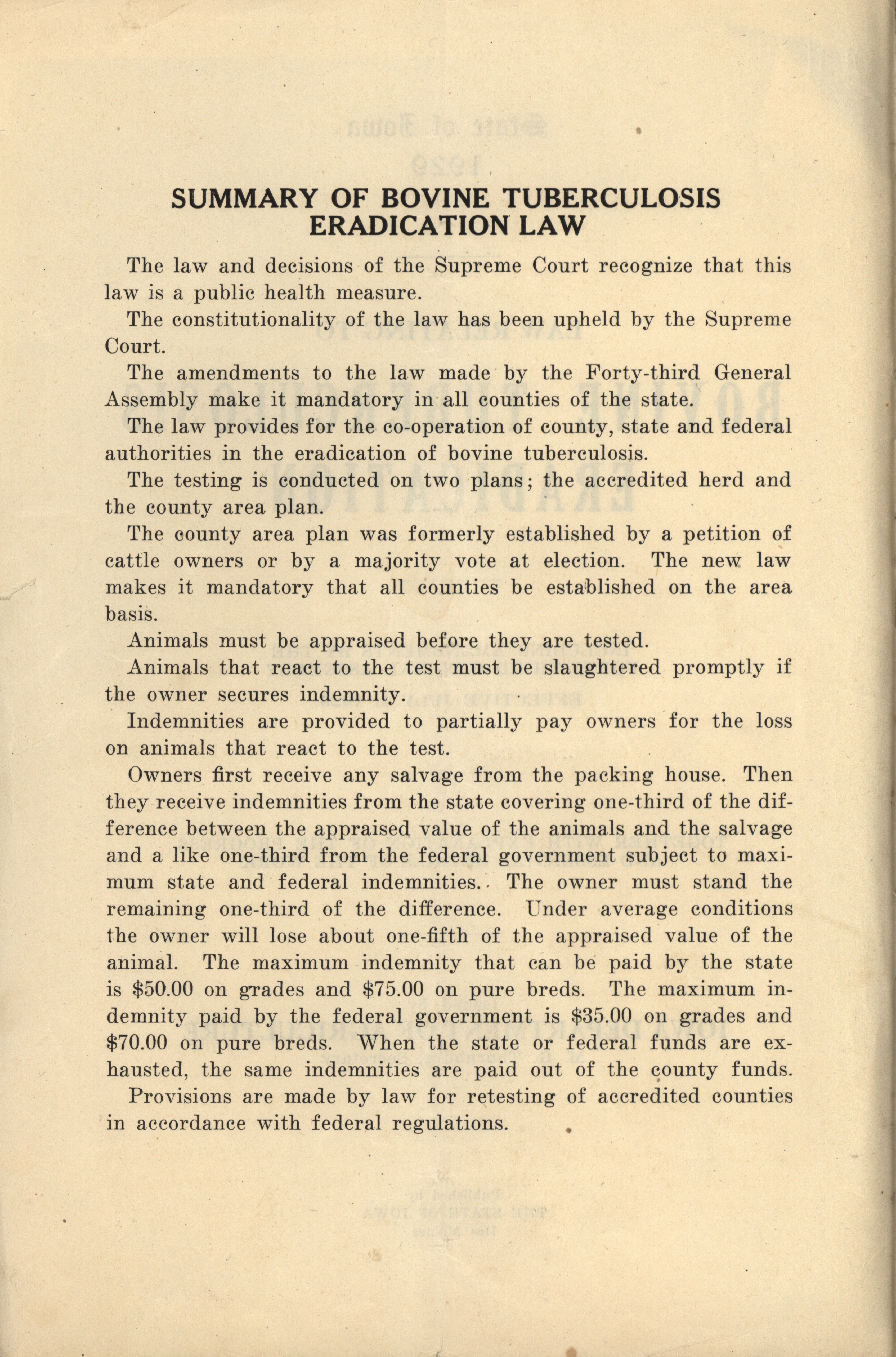- "Law Relating to Bovine Tuberculosis Eradication", Activist Agriculture Collection, Iowa State University Library Digital Collections