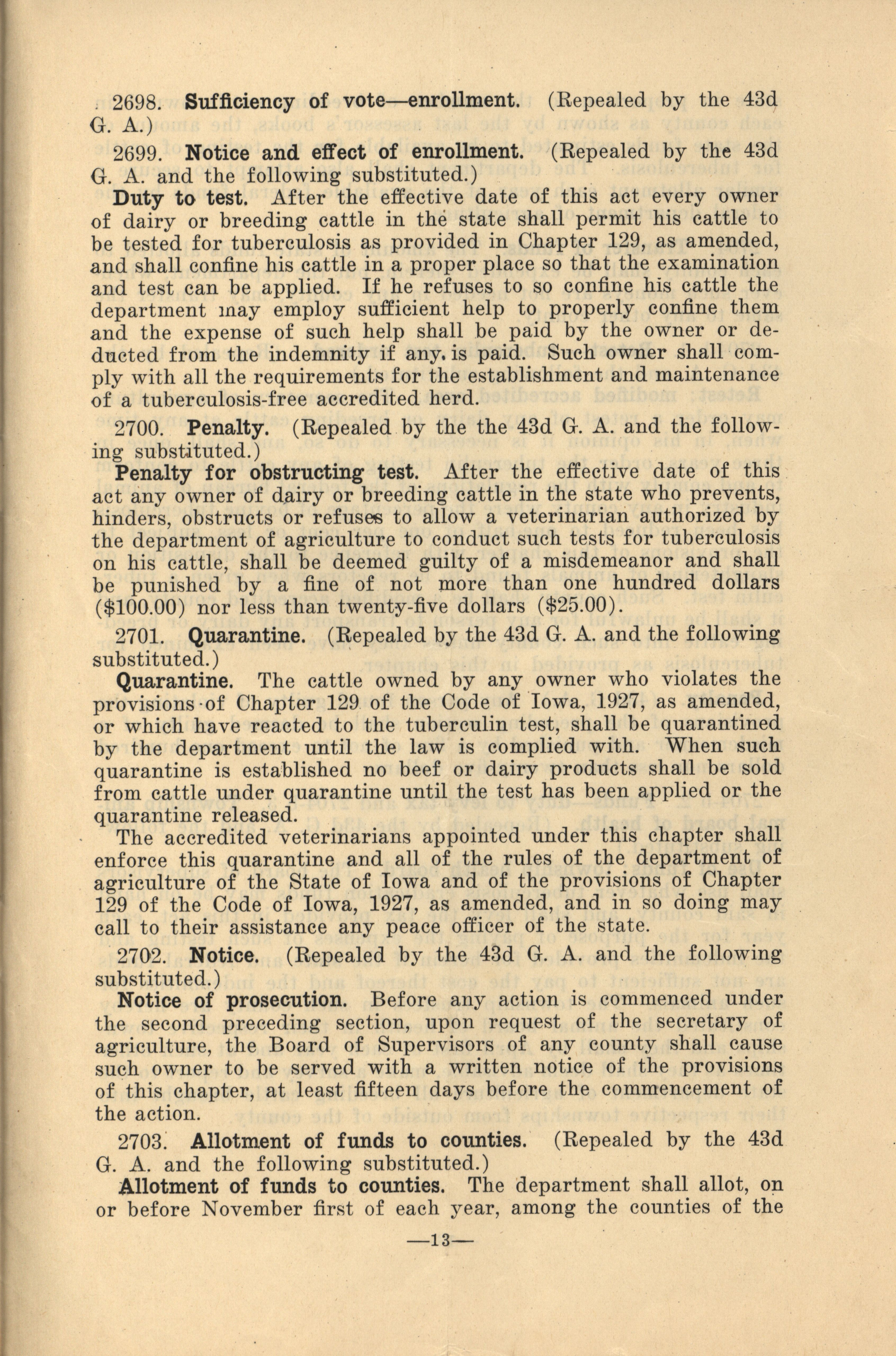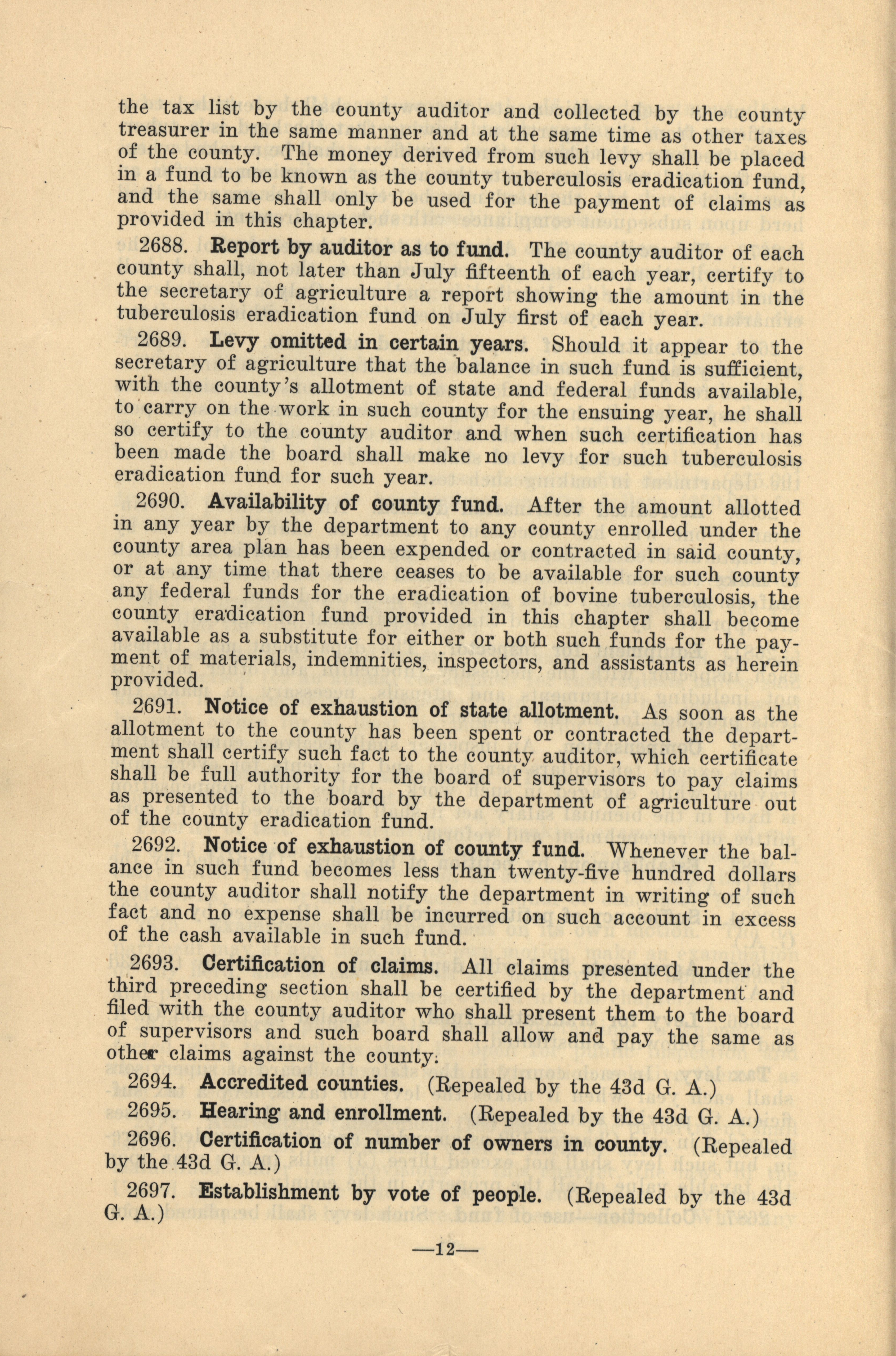- A copy of the laws created by the state of Iowa, related to the eradication of Bovine Tuberculosis.