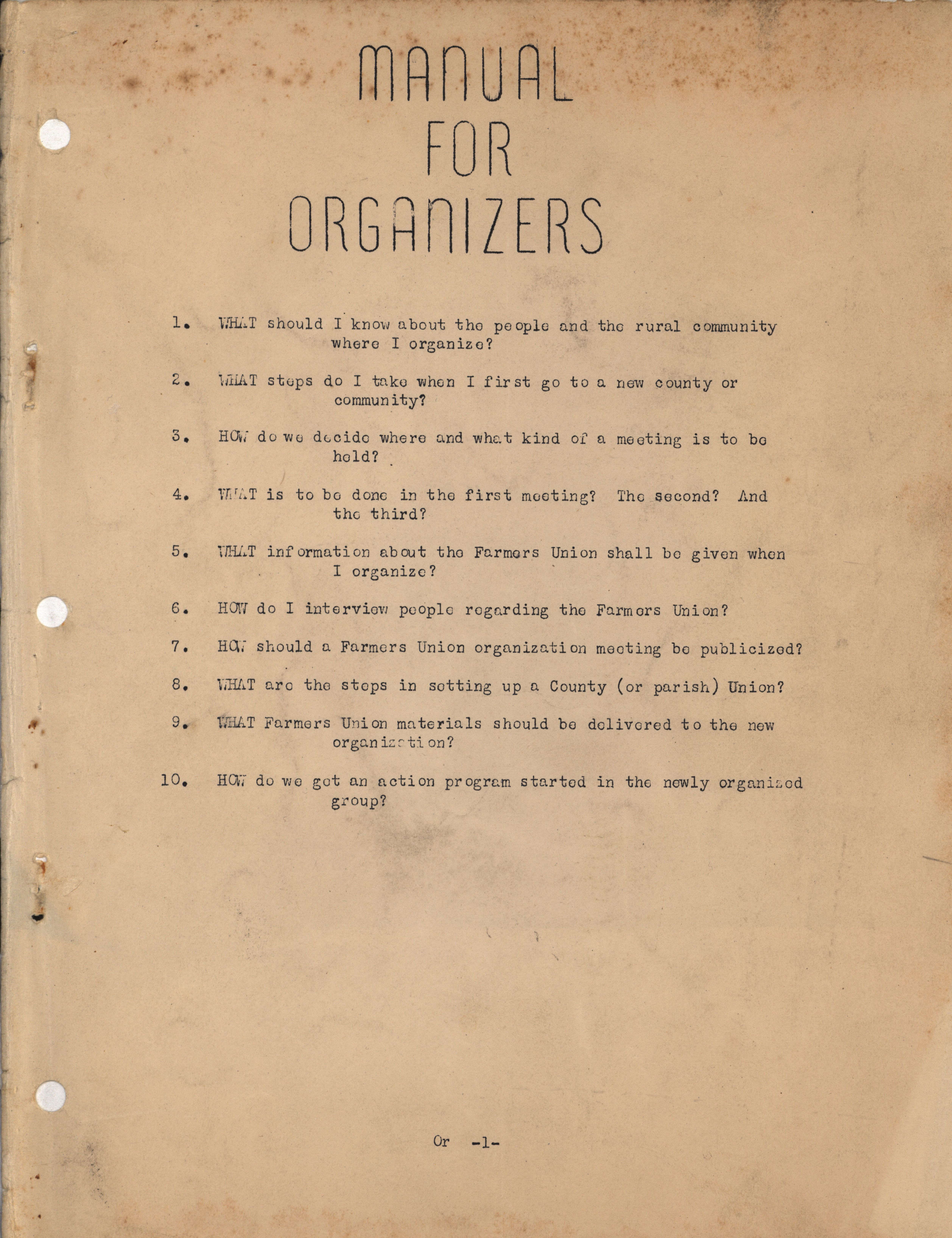 - "Manual for Organizers", Activist Agriculture Collection, Iowa State University Library Digital Collections