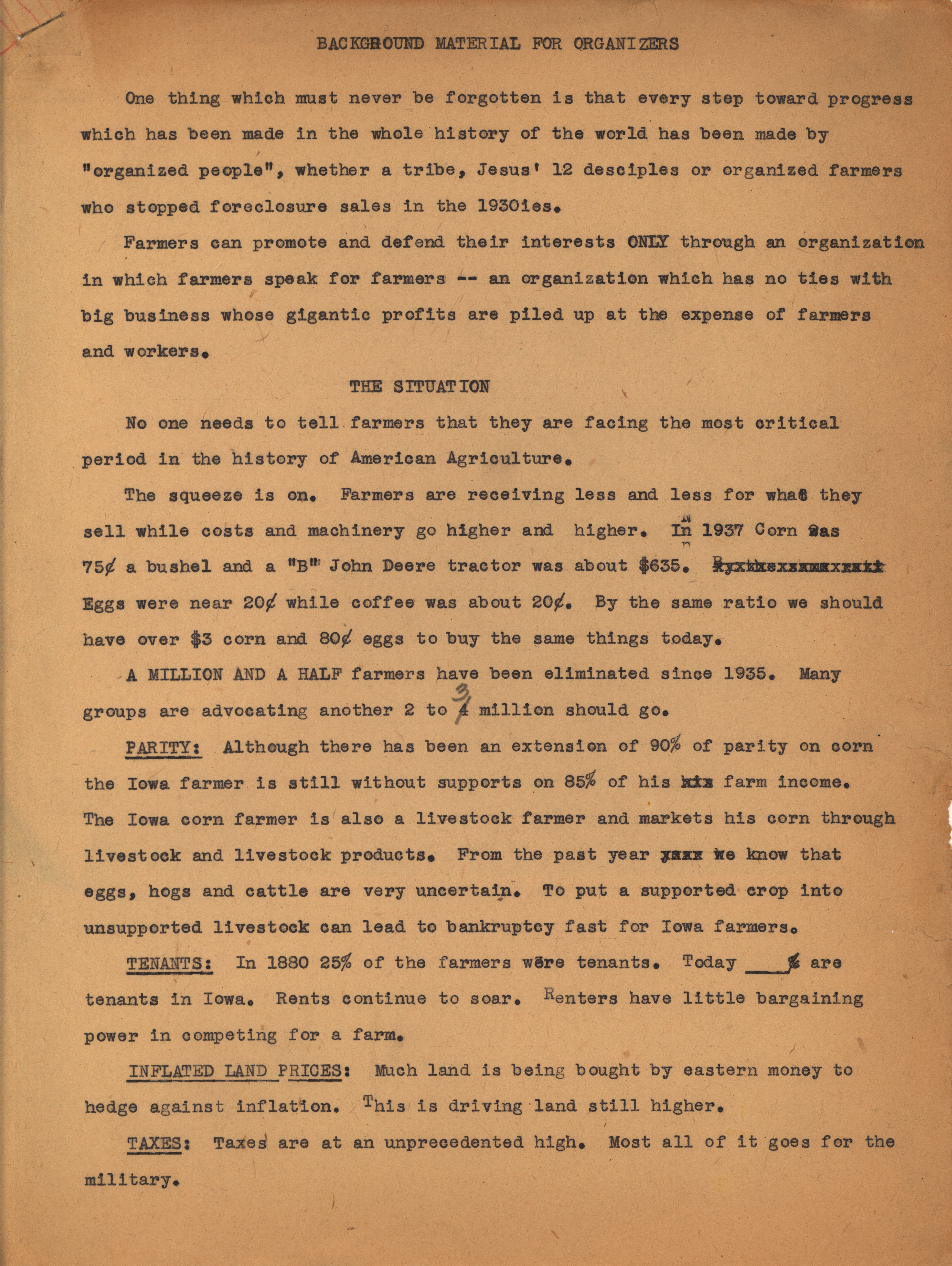 - "Background Material for Organizers", Activist Agriculture Collection, Iowa State University Library Digital Collections