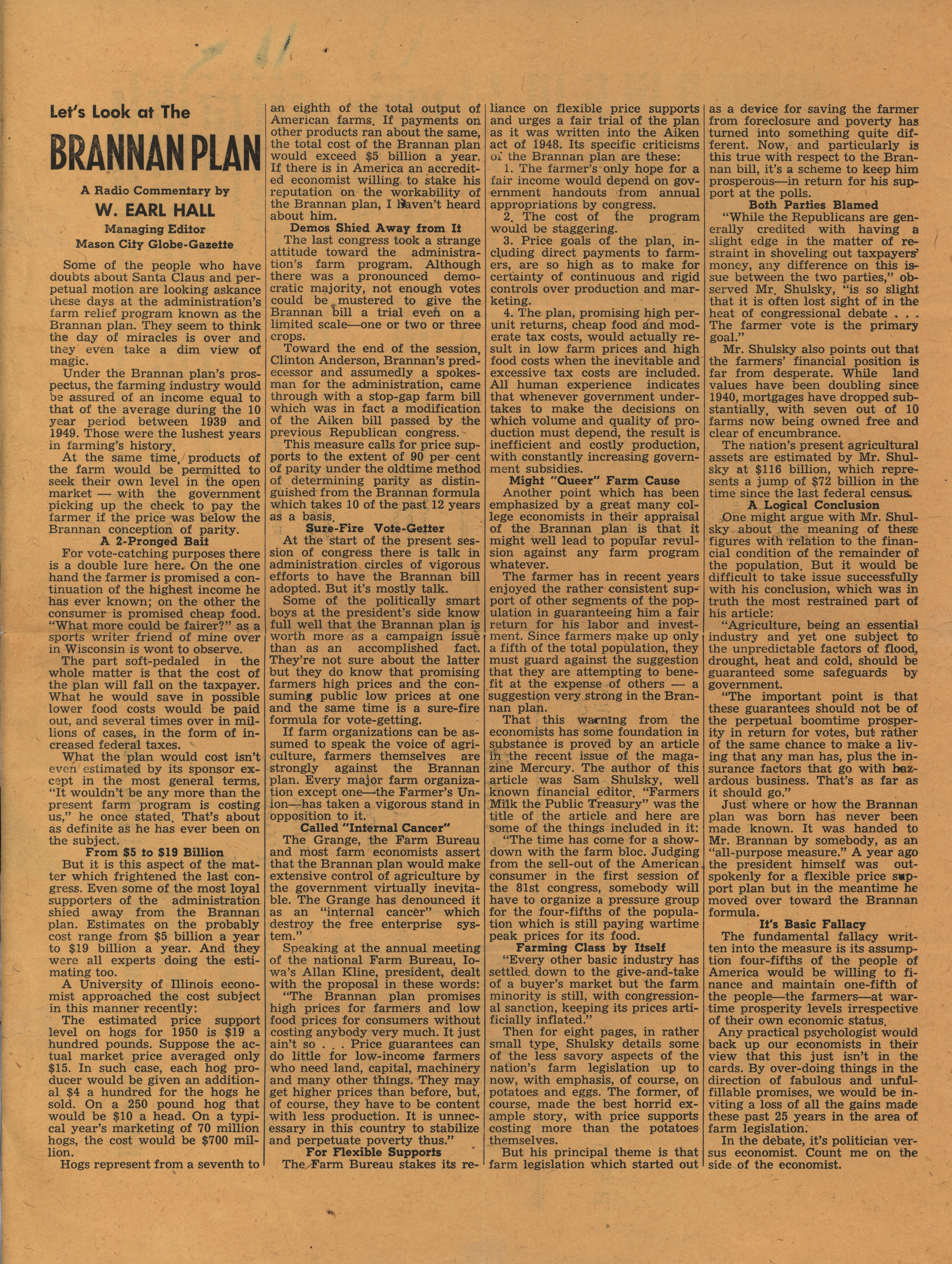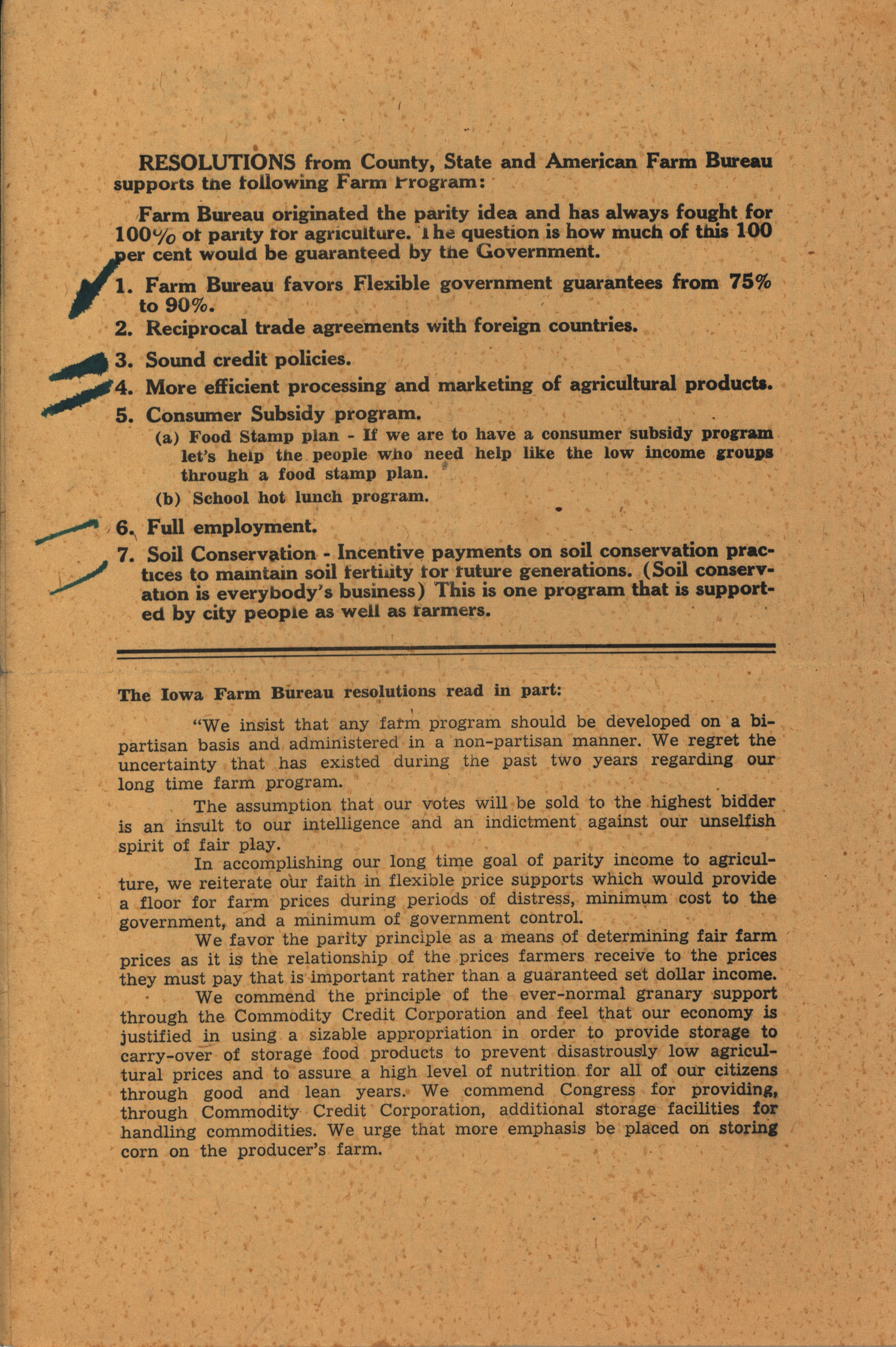 - Program for a meeting of the Iowa Farm Bureau Federation in Mitchell County. Includes resolutions of the Iowa Farm Bureau Federation and a radio script on the Brannan Program.