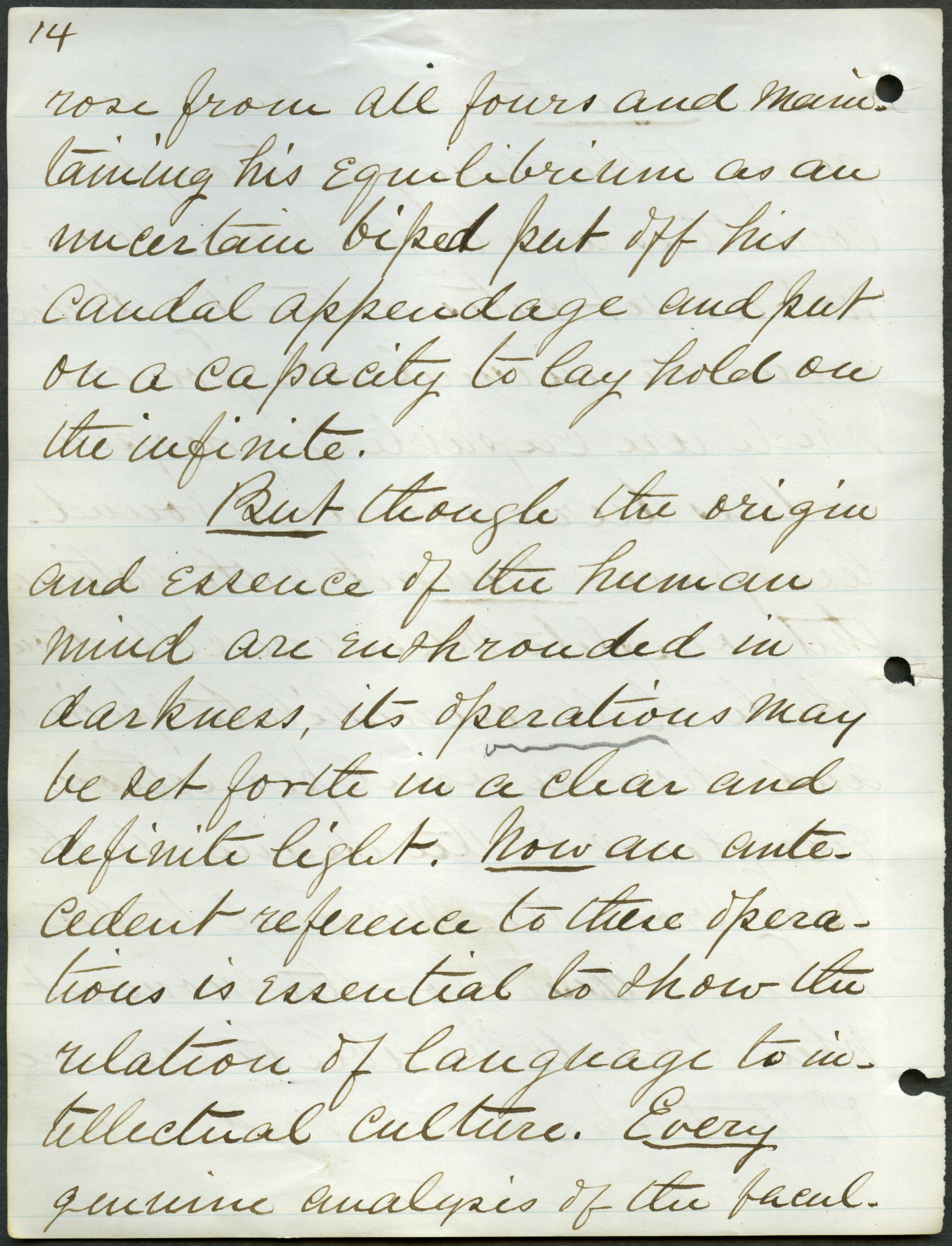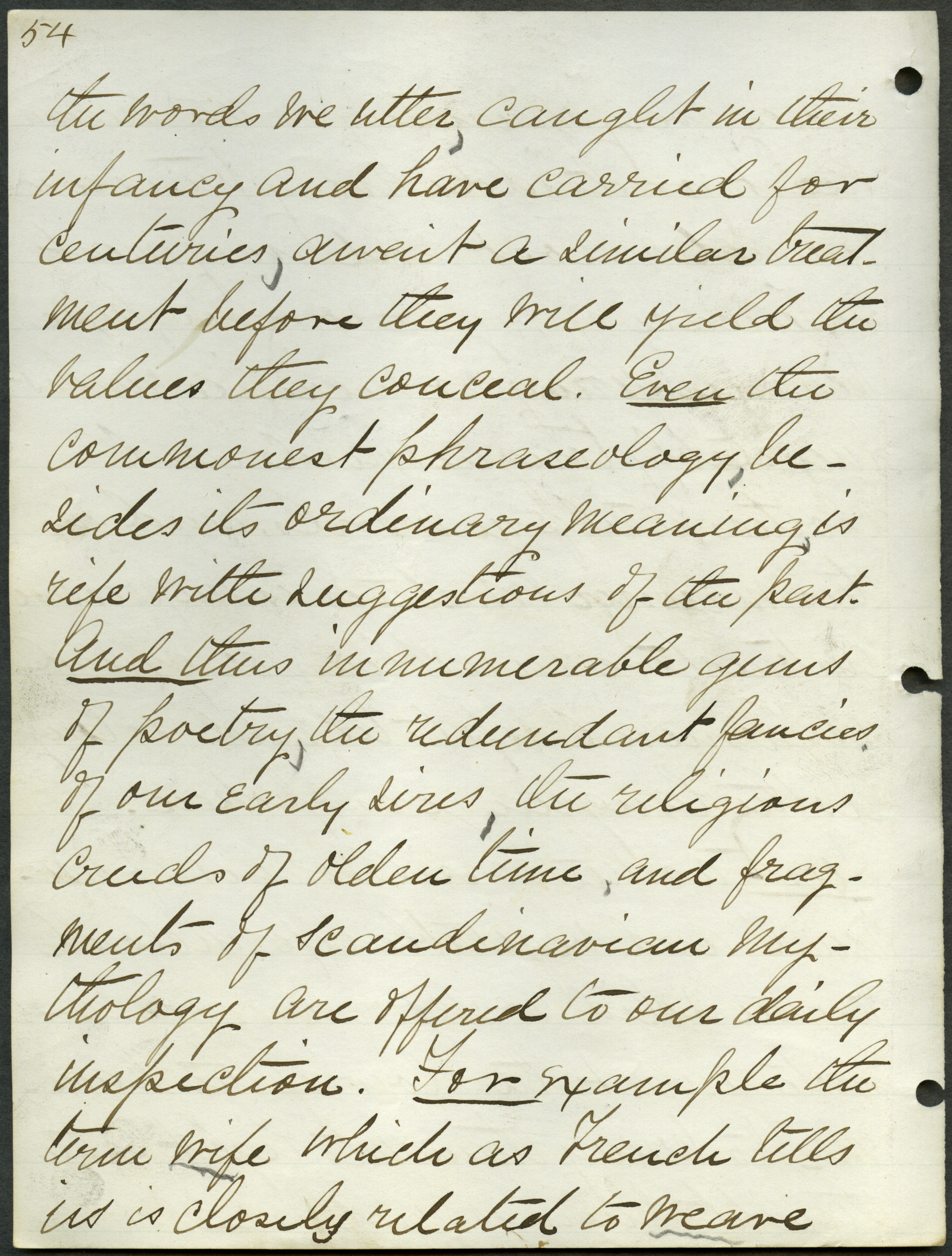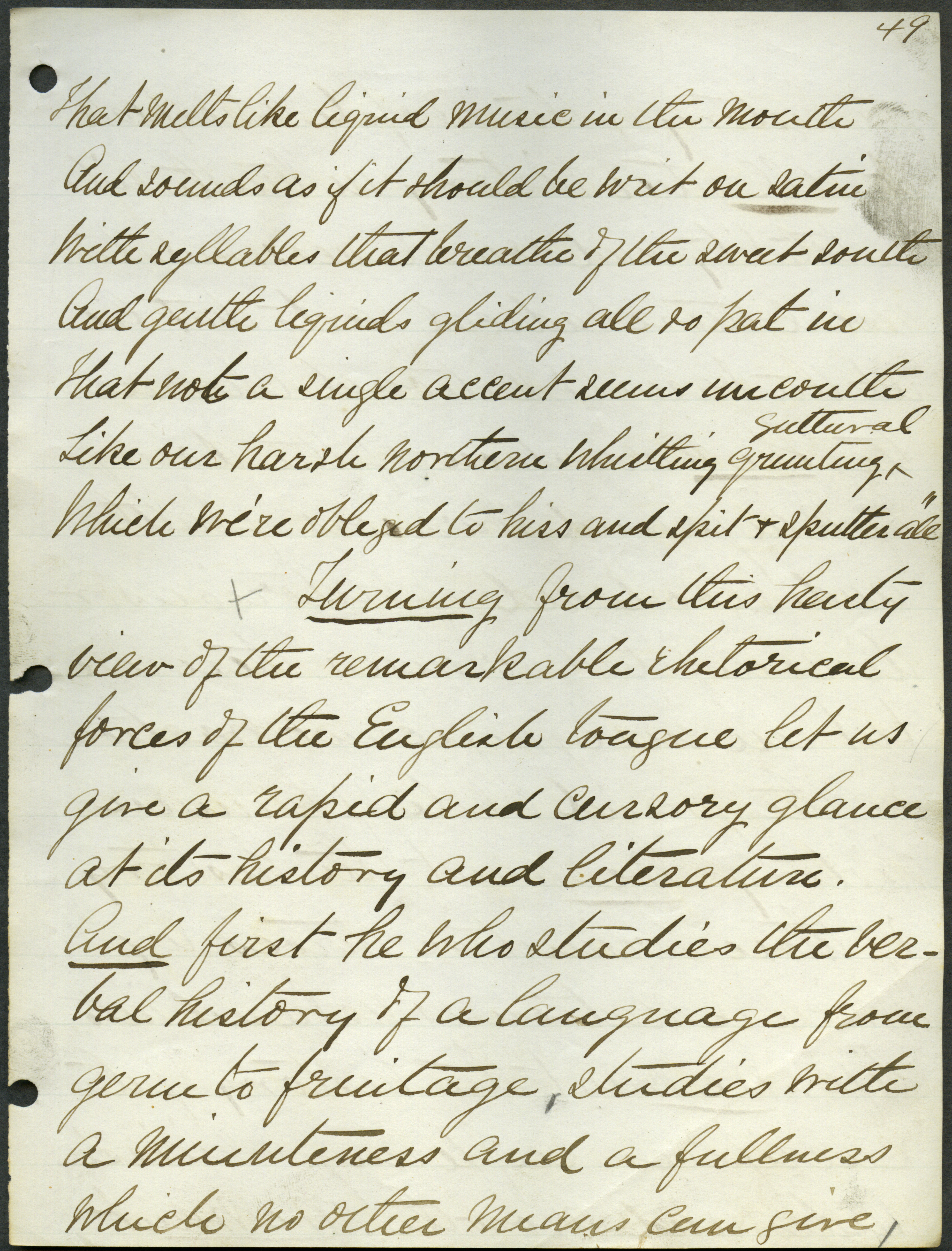 - Box 2, Folder 1: Welch discusses the importance of studying the English language as a means of learning about English culture and history and explains the relationship of language to intellectual culture.