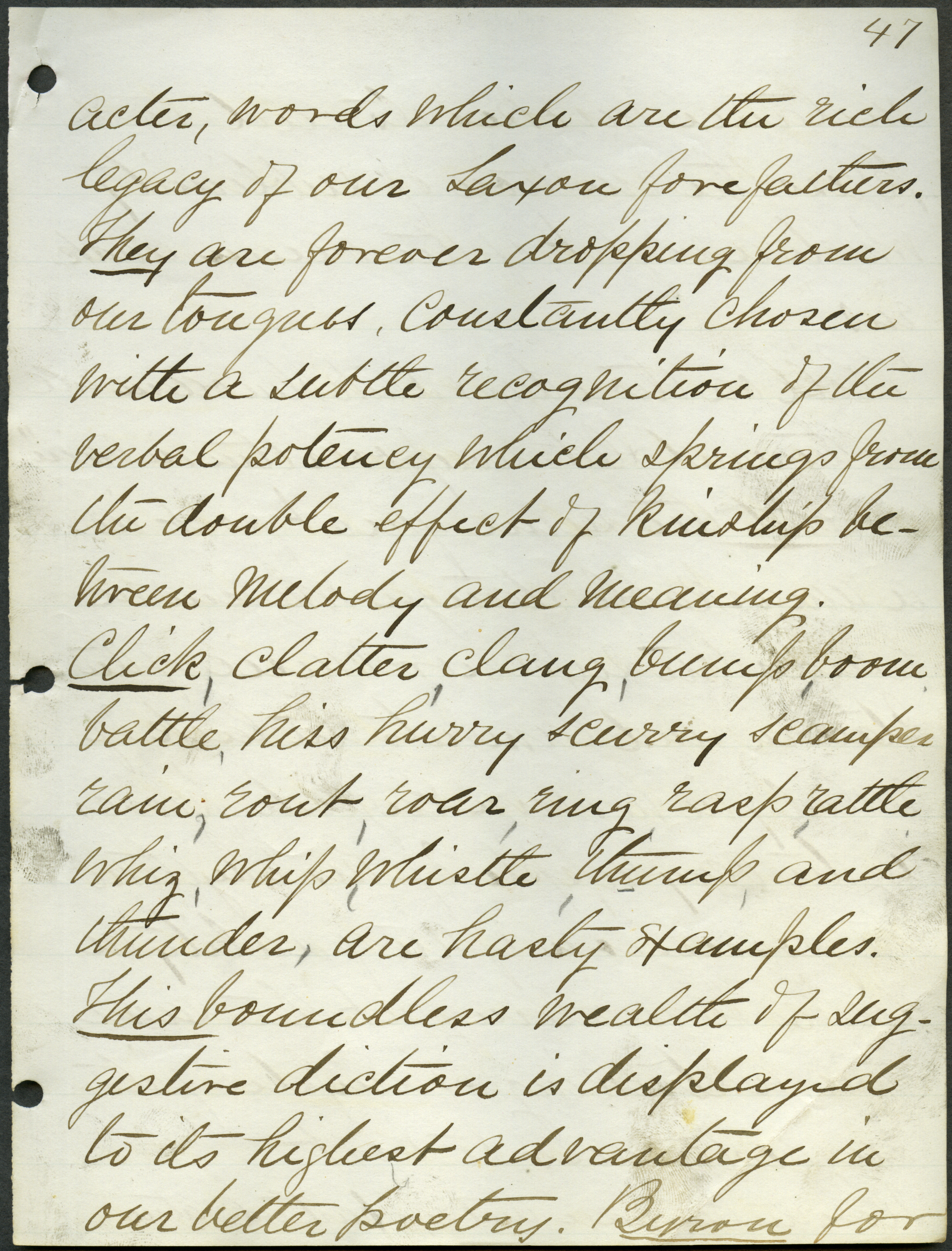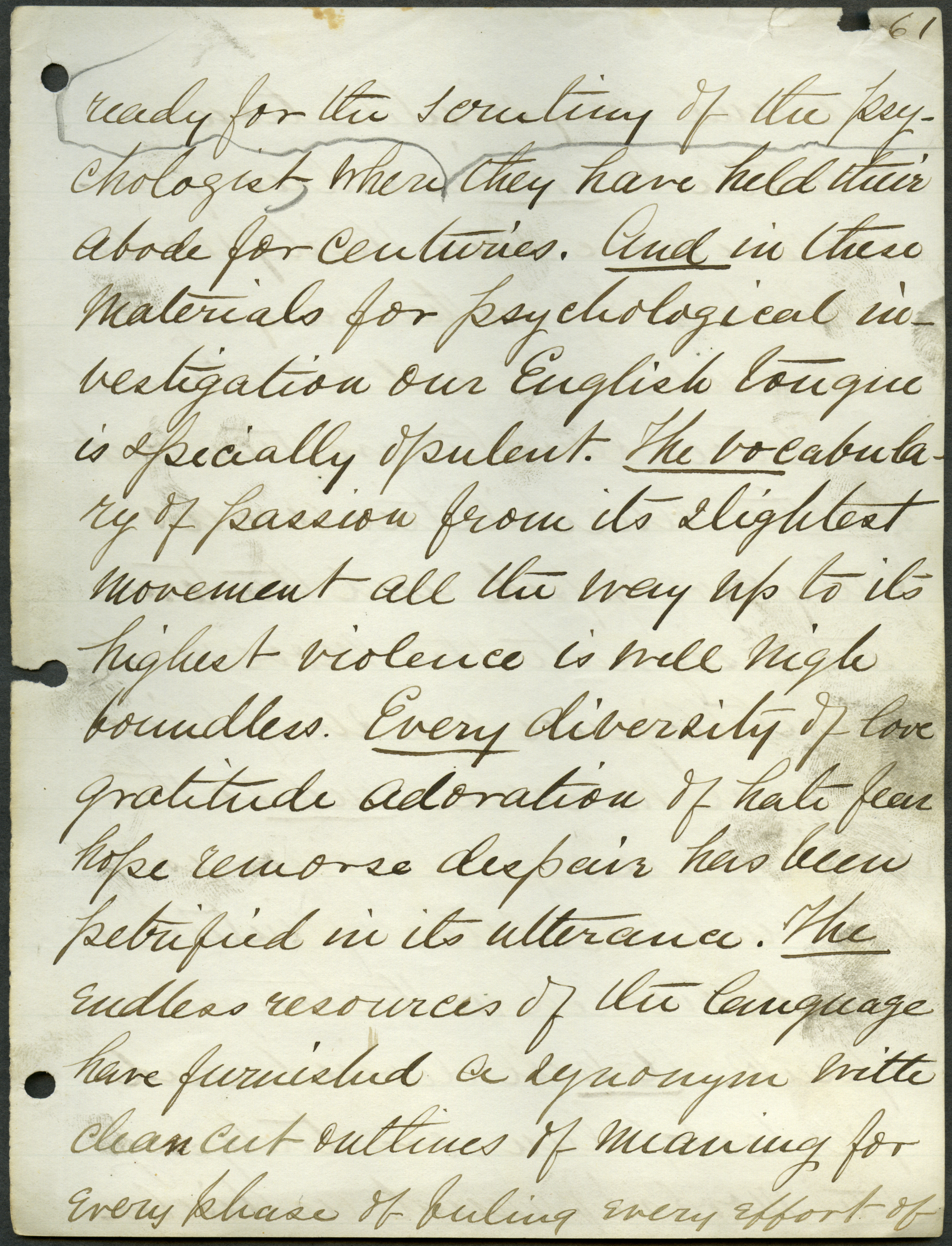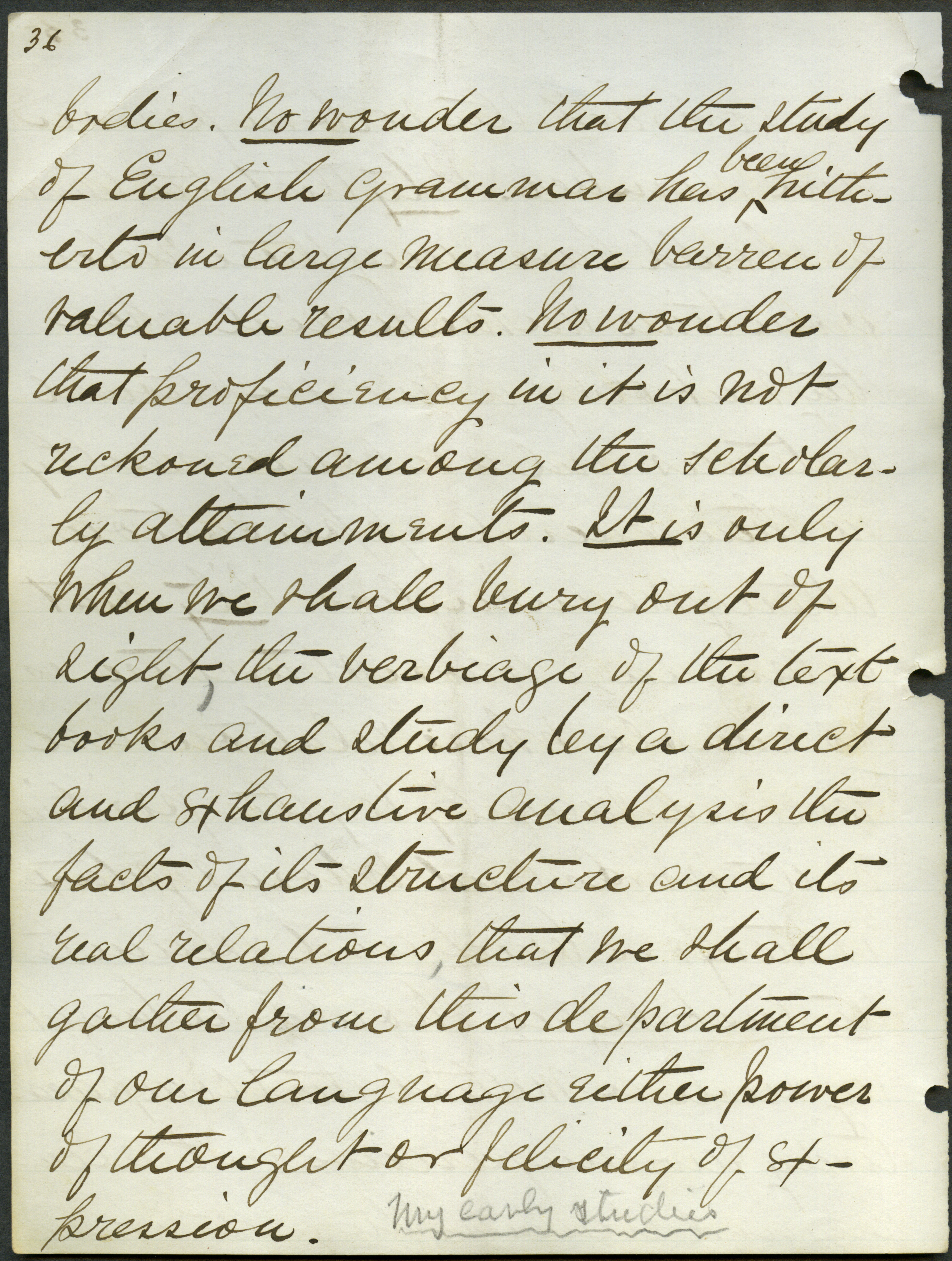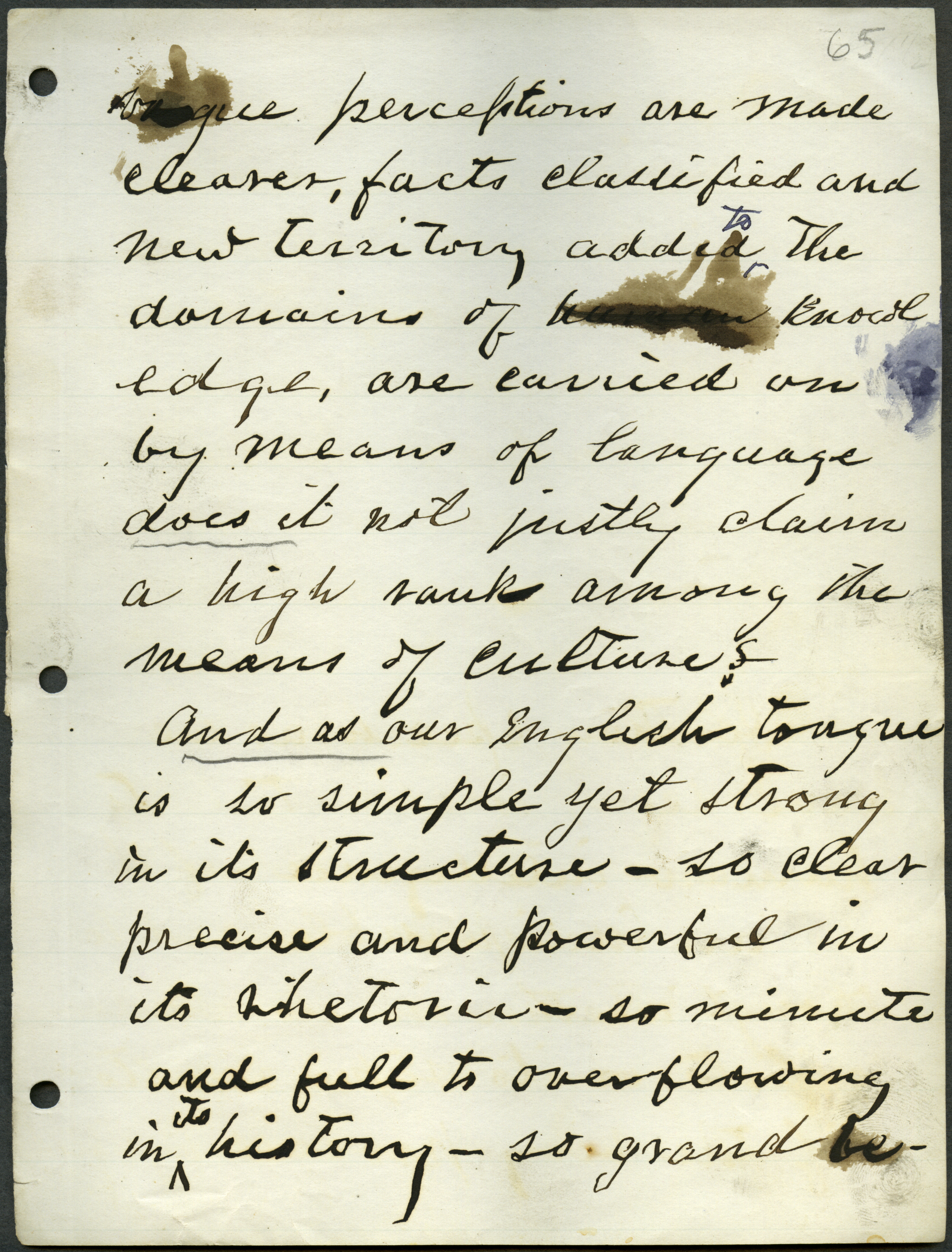 - Box 2, Folder 1: Welch discusses the importance of studying the English language as a means of learning about English culture and history and explains the relationship of language to intellectual culture.
