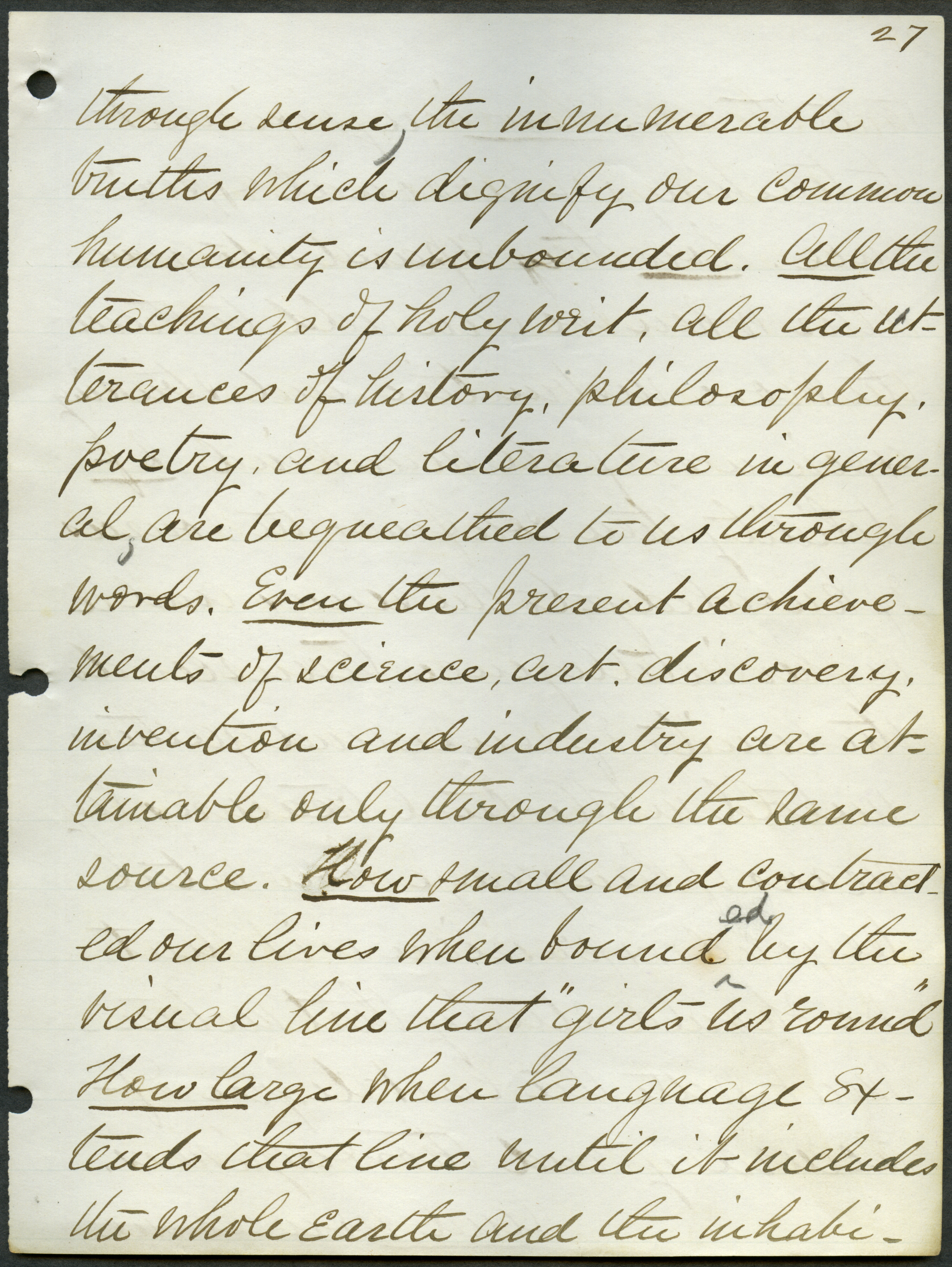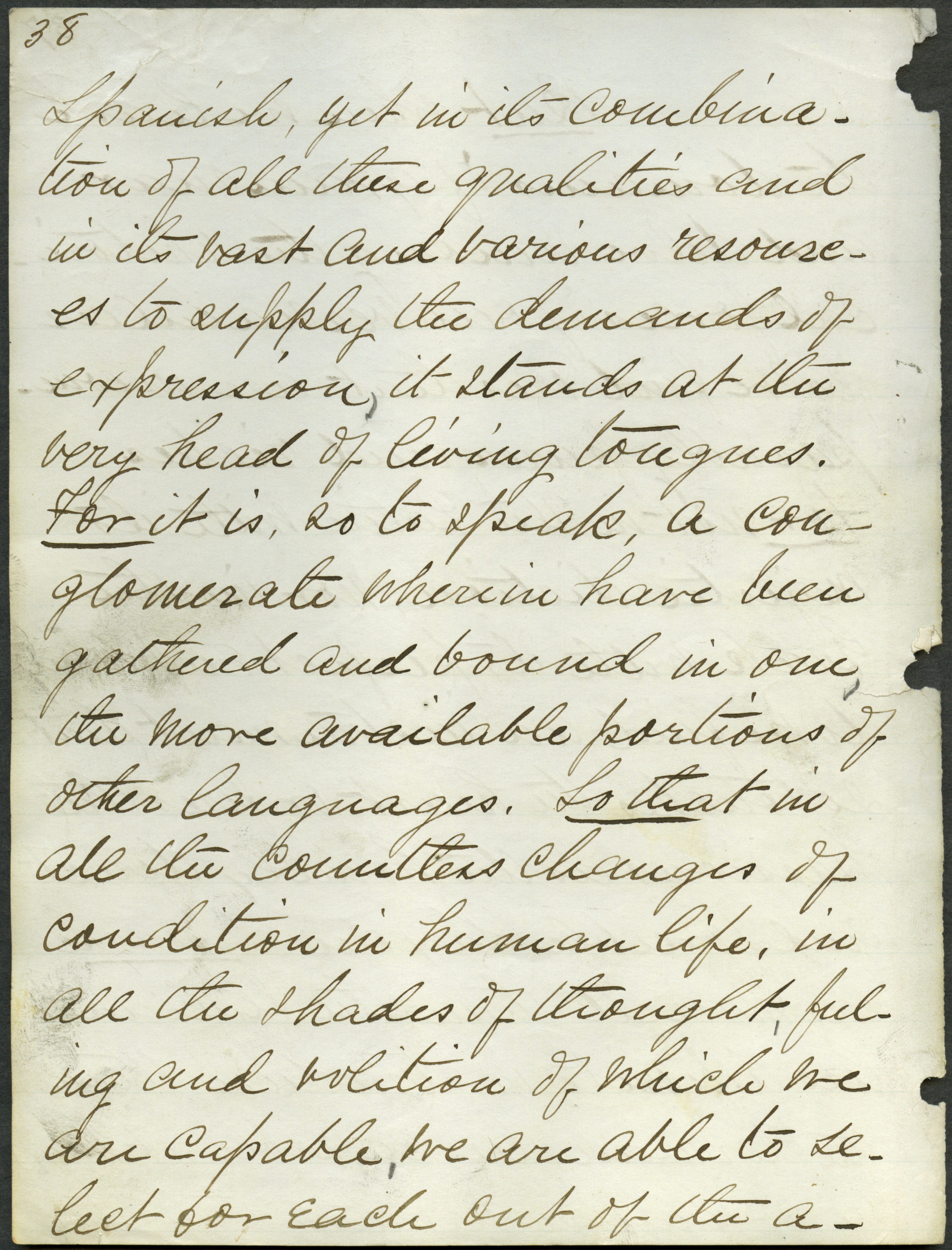 - "The English language as a means of culture", Adonijah Welch Papers, Iowa State University Library Digital Collections