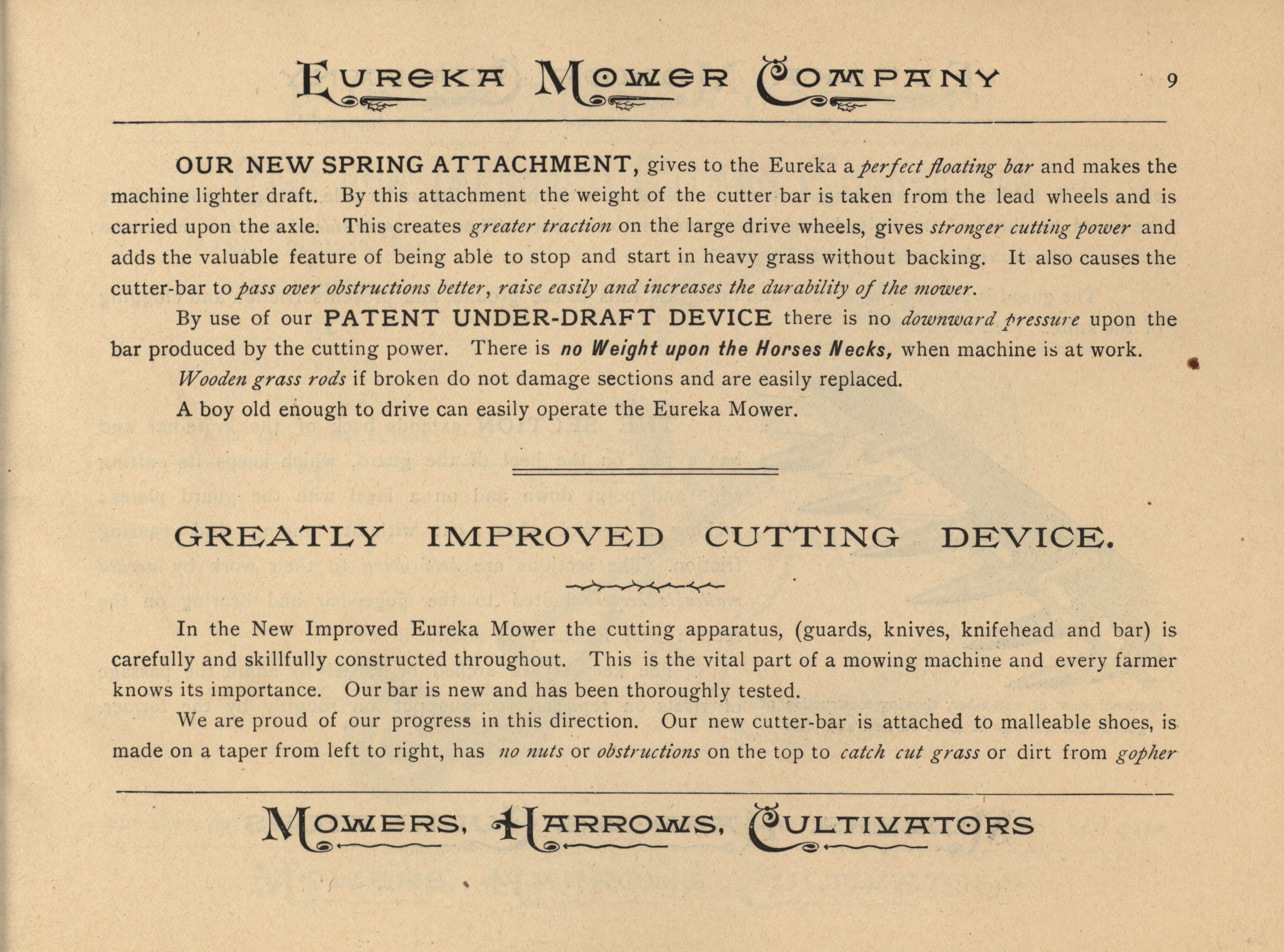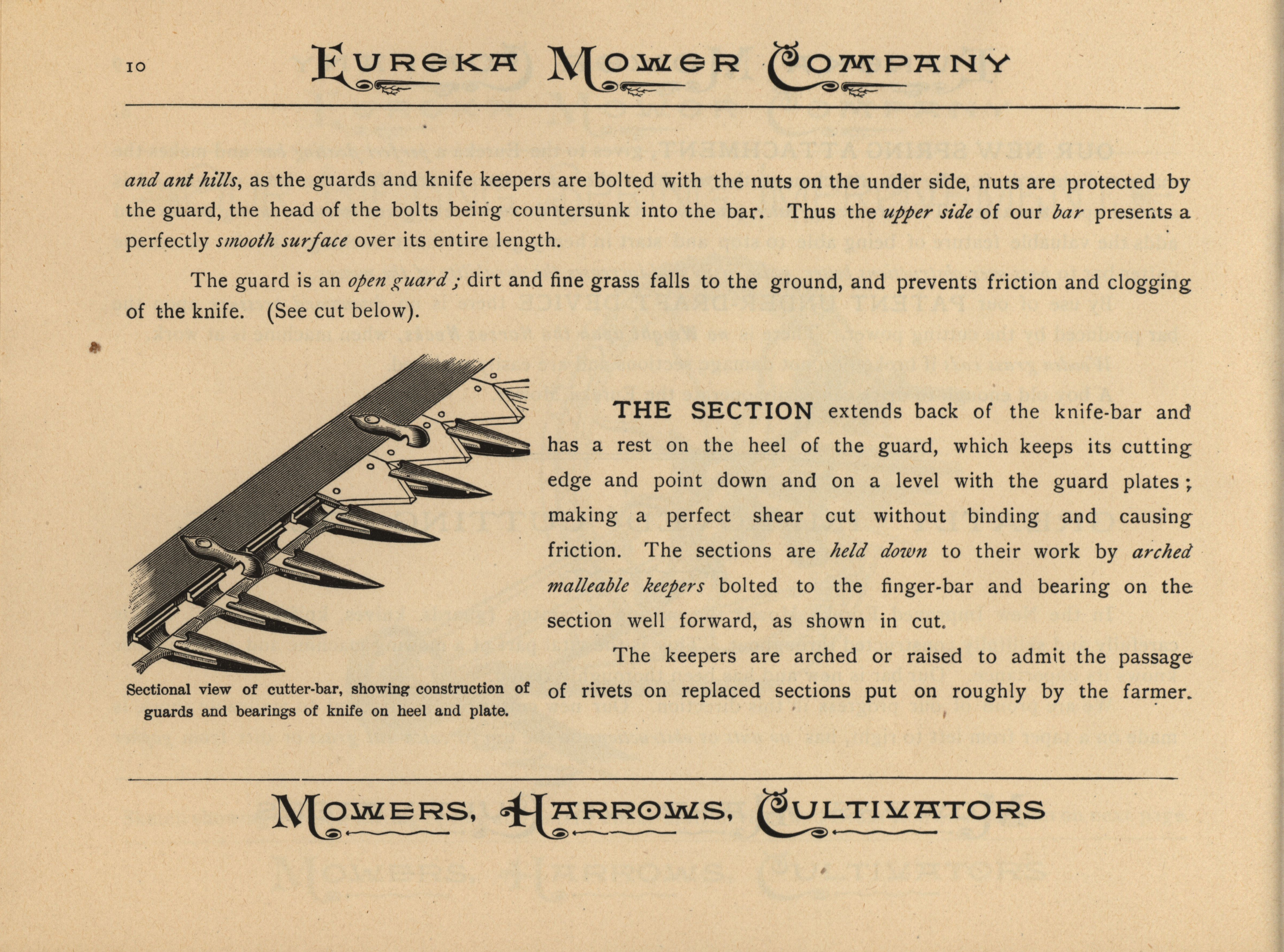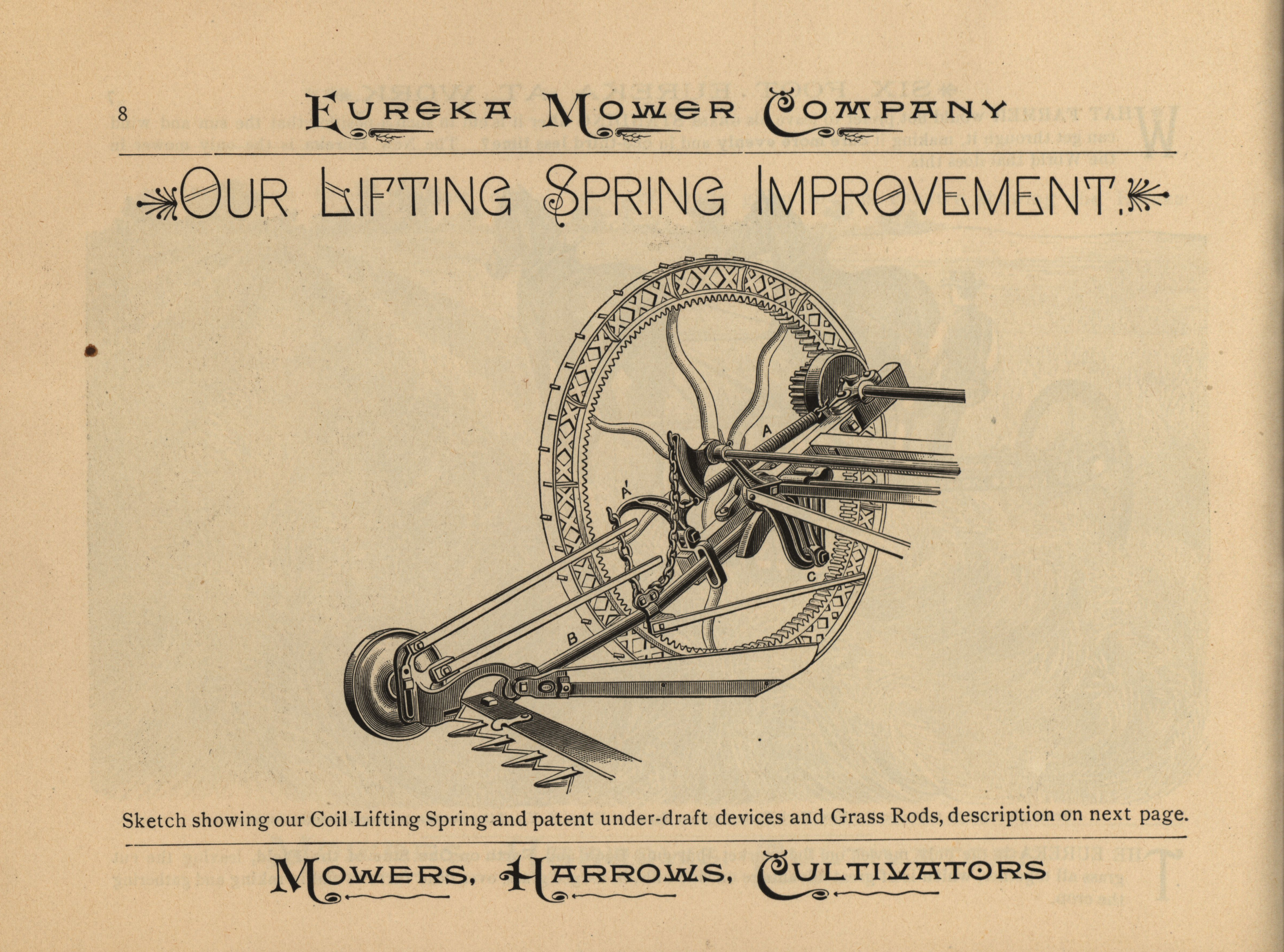 - "Eureka Mower Company farm implements catalog", Agricultural Machinery Literature Collection, Iowa State University Library Digital Collections