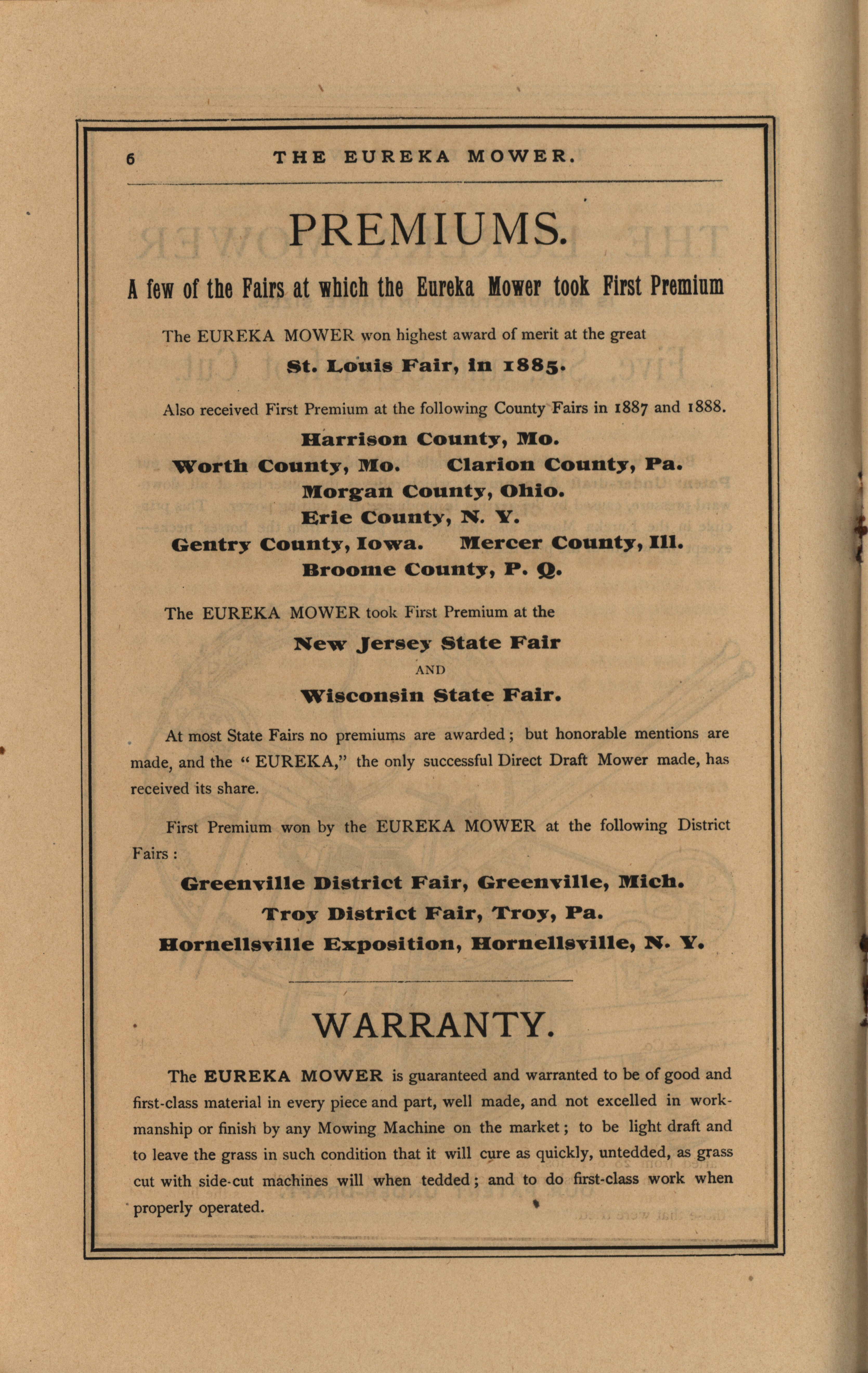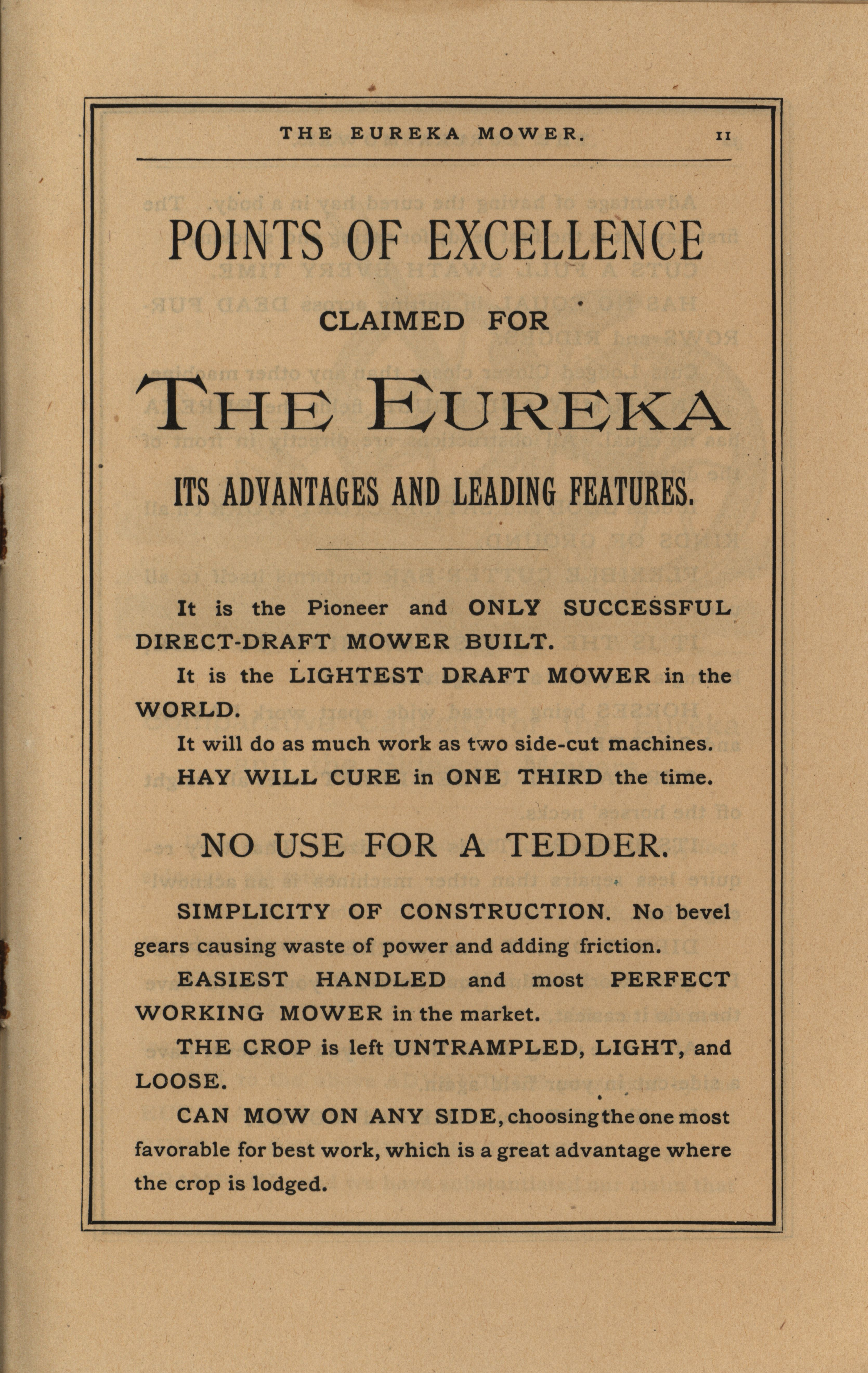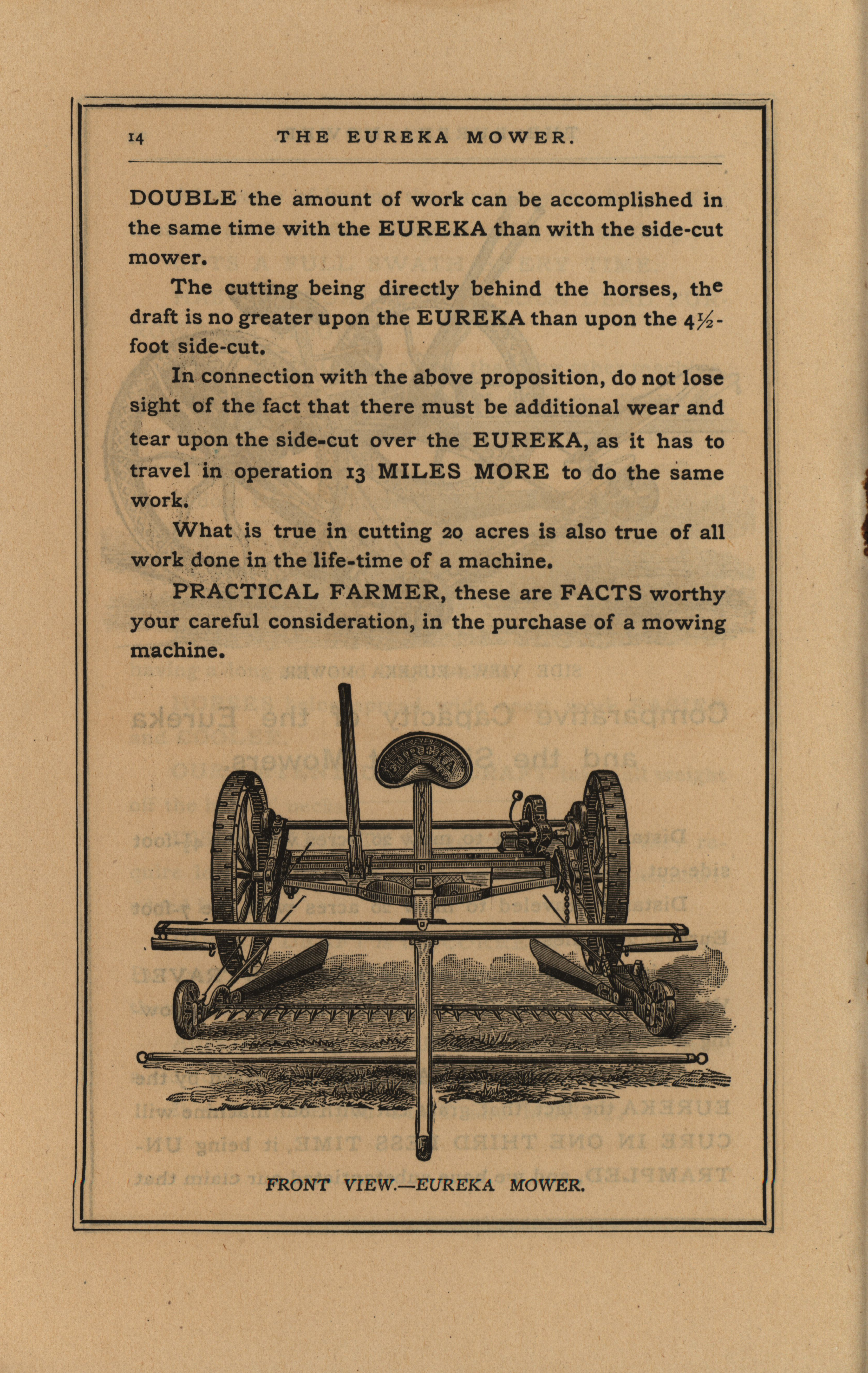 - "Eureka Mower Company catalog", Agricultural Machinery Literature Collection, Iowa State University Library Digital Collections