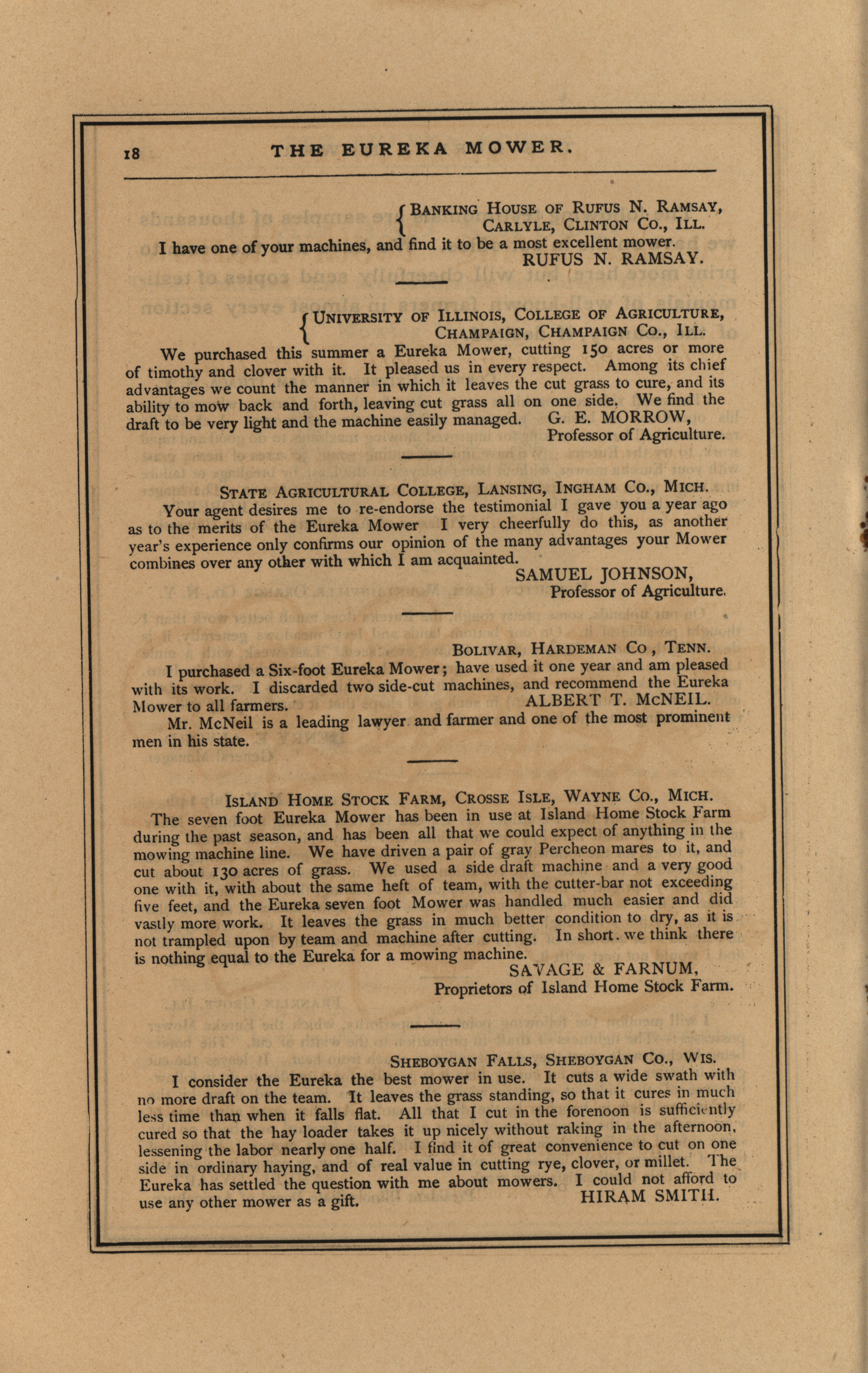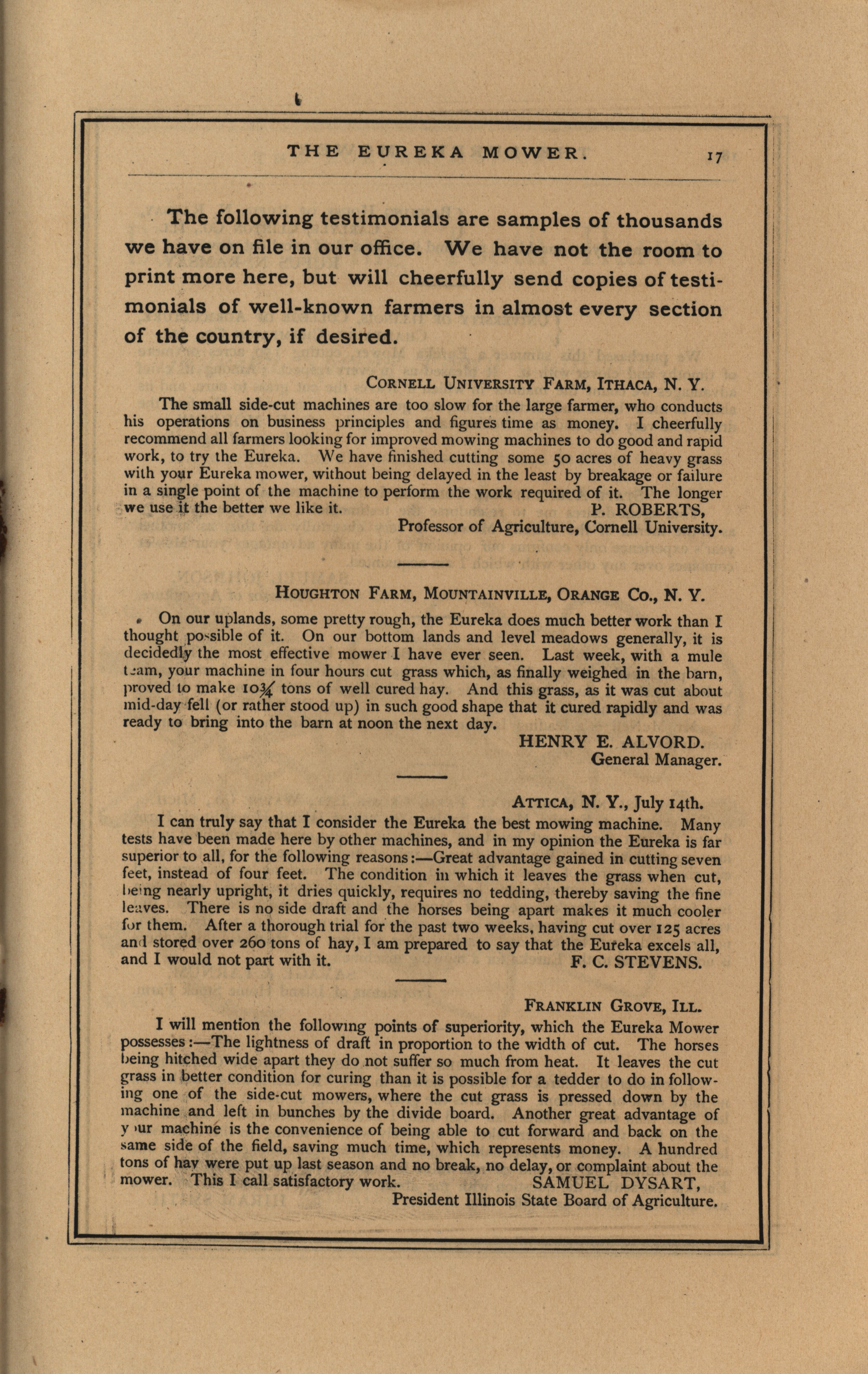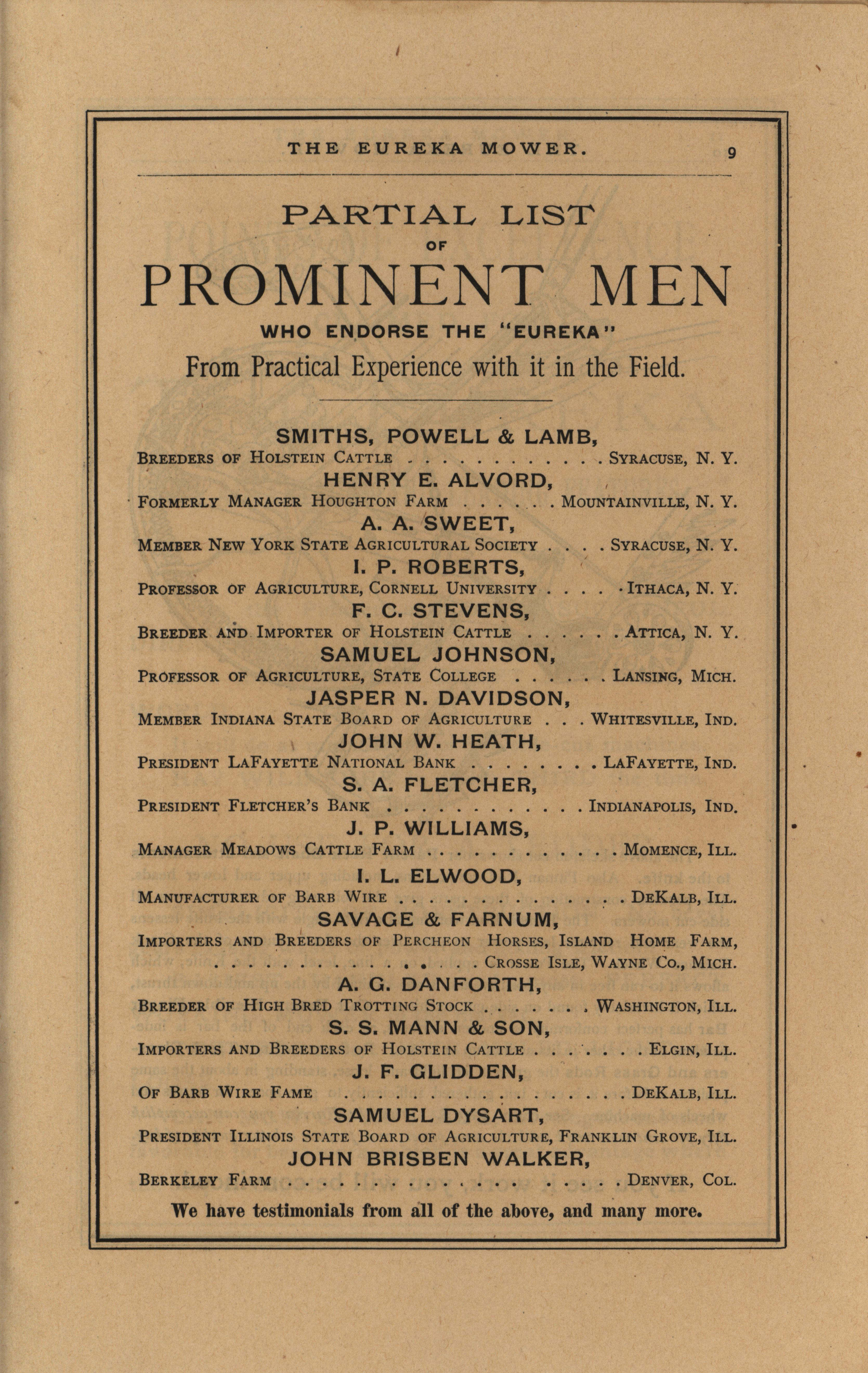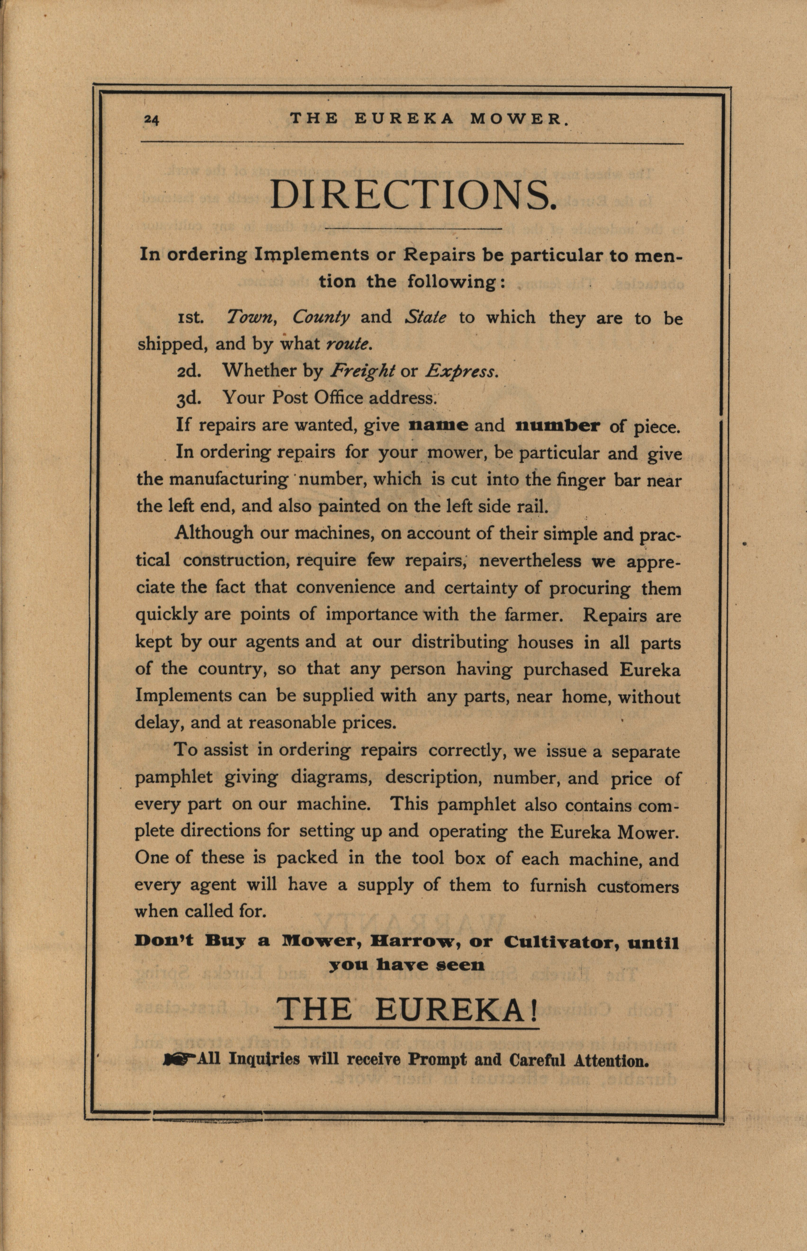 - "Eureka Mower Company catalog", Agricultural Machinery Literature Collection, Iowa State University Library Digital Collections