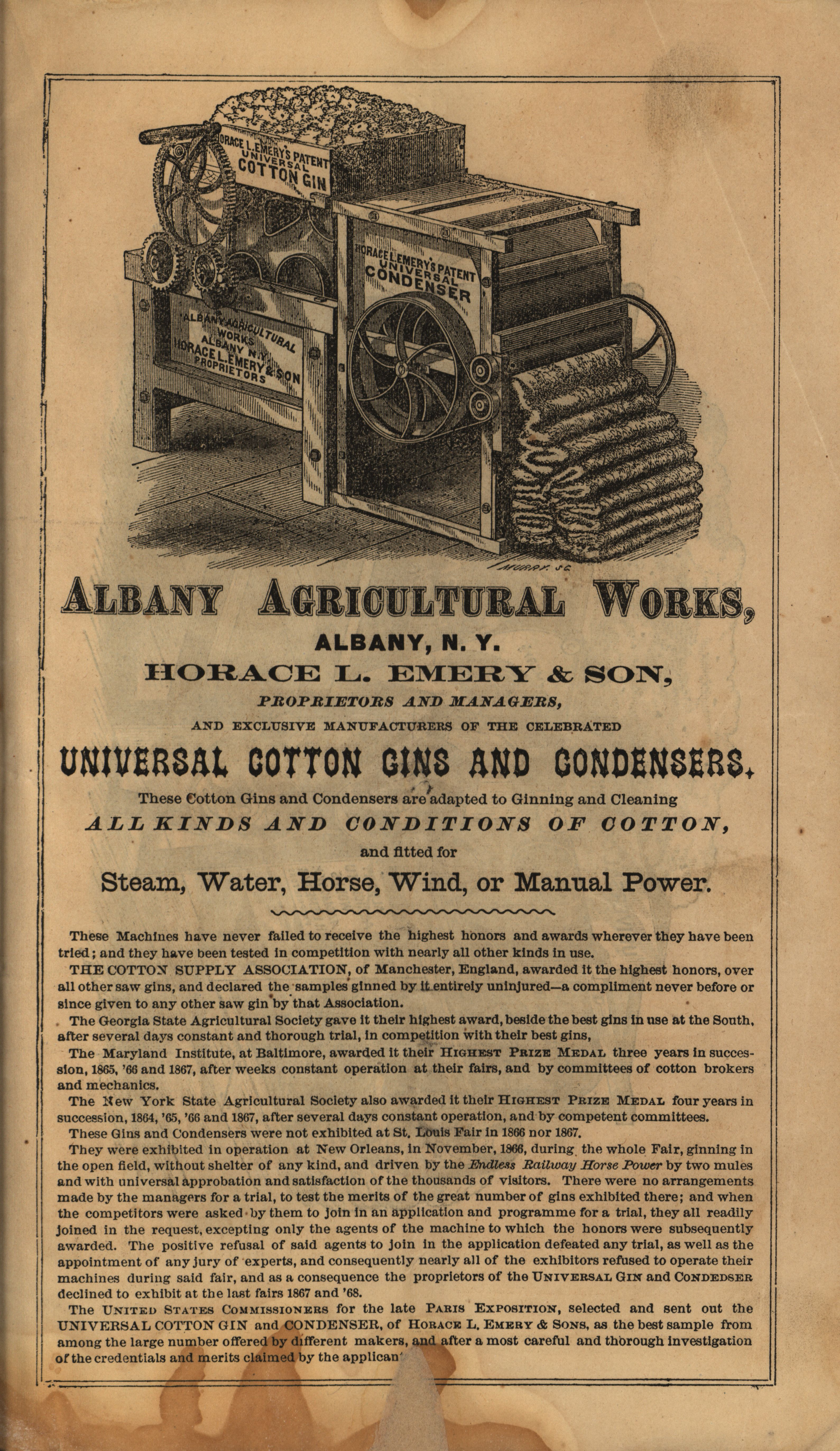 - "Albany Agricultural Works 1868-1869 catalog", Agricultural Machinery Literature Collection, Iowa State University Library Digital Collections