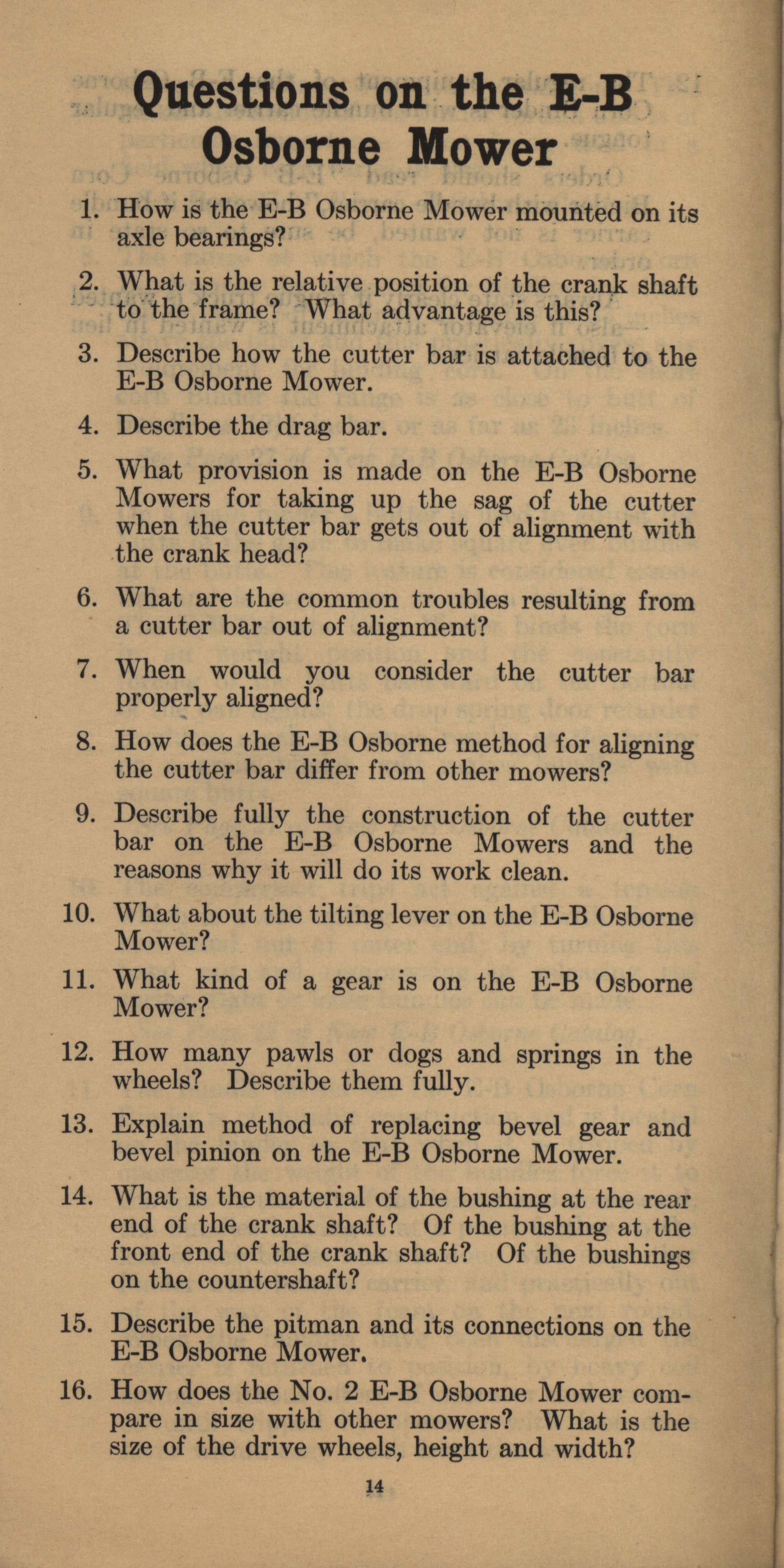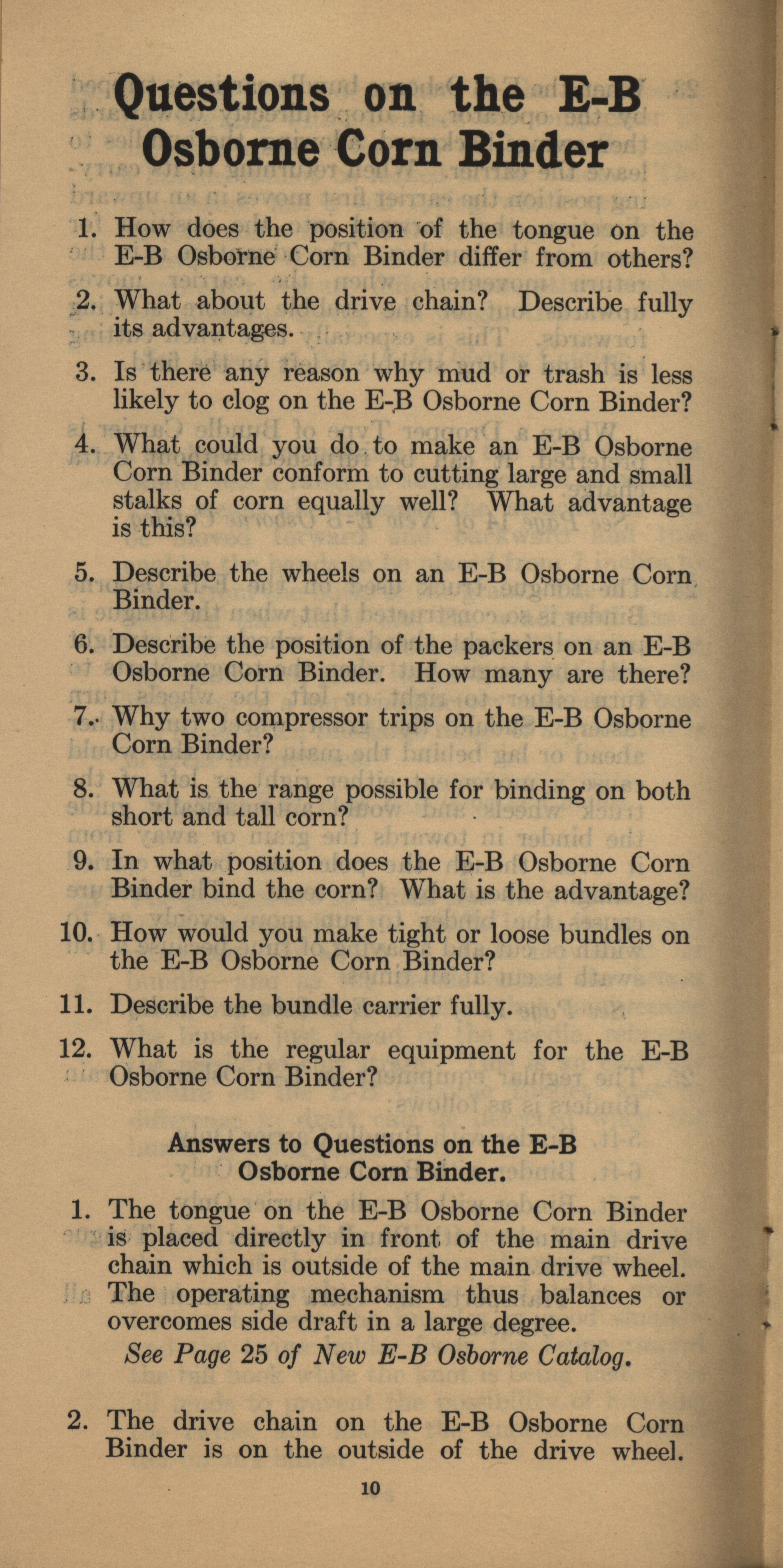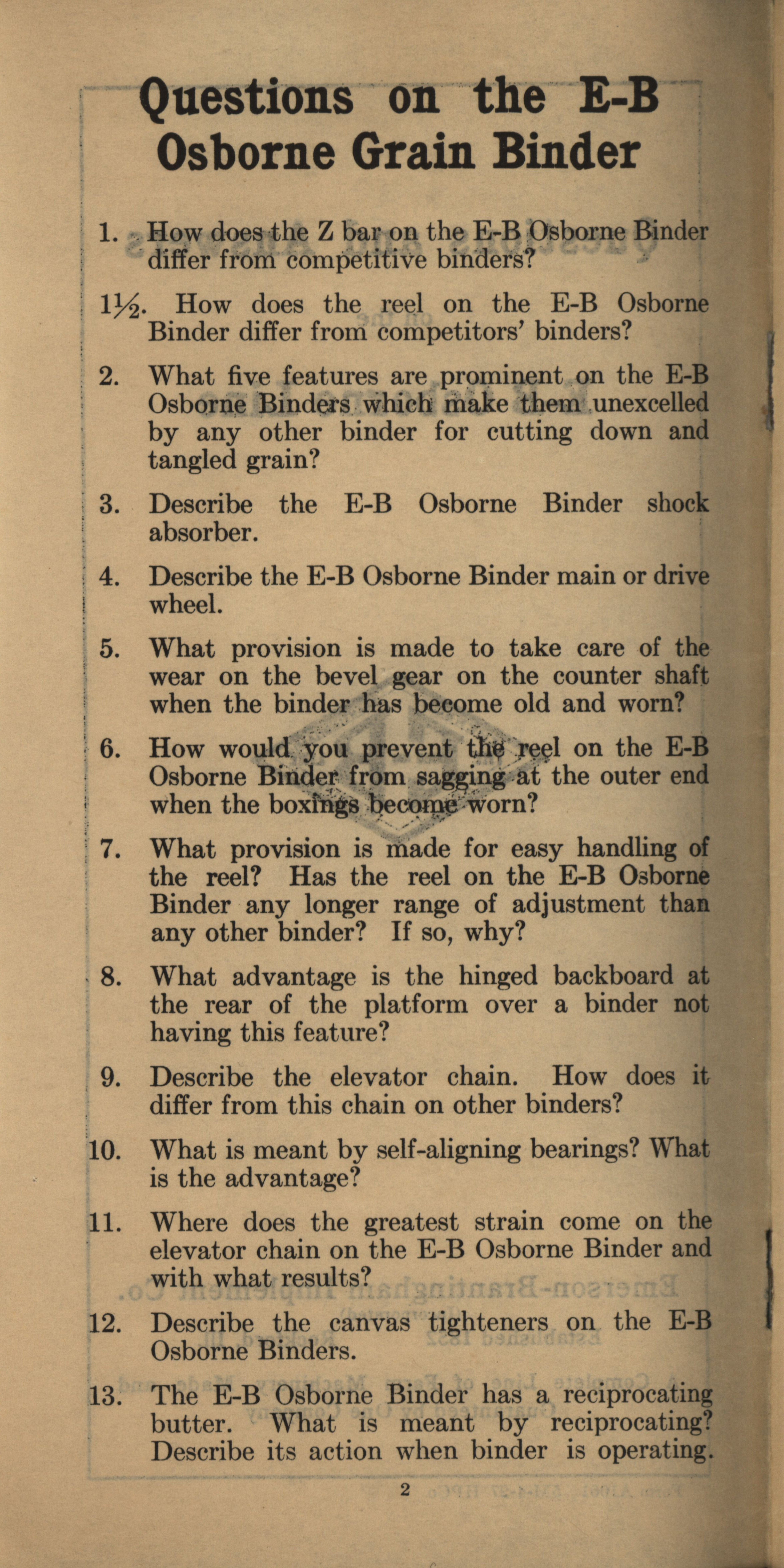 - "Emerson Brantingham Implement Company "Questions and Answers on the E-B Osborne Line" pamphlet", Agricultural Machinery Literature Collection, Iowa State University Library Digital Collections