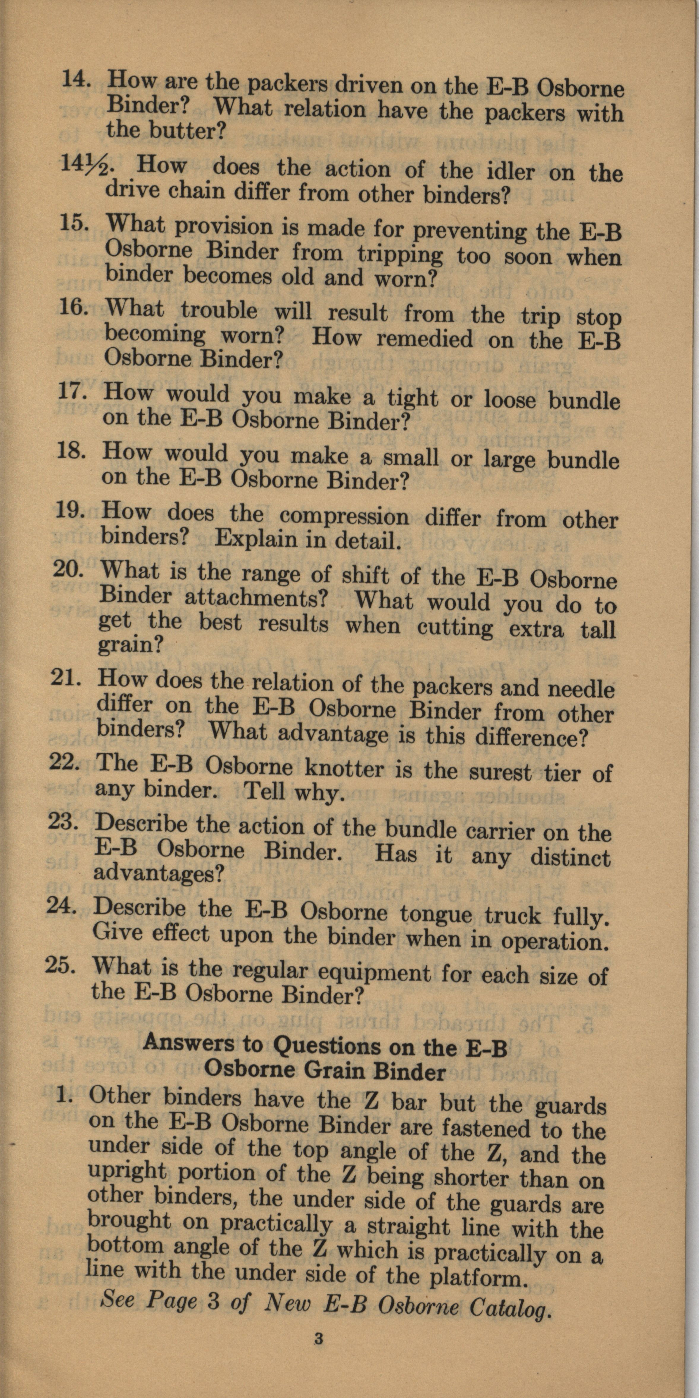 Emerson Brantingham Implement Company "Questions and Answers on the E-B Osborne Line" pamphlet Item Info