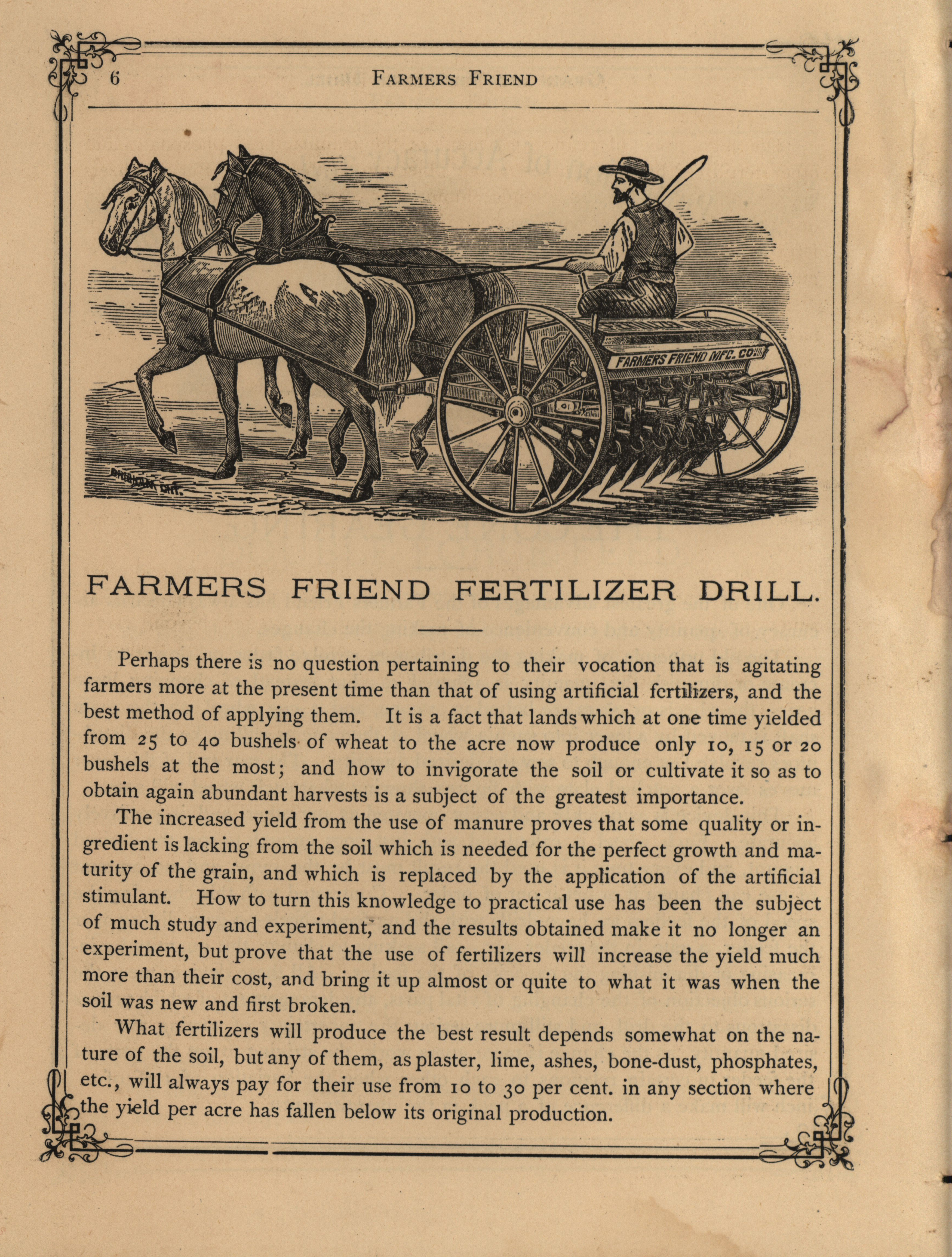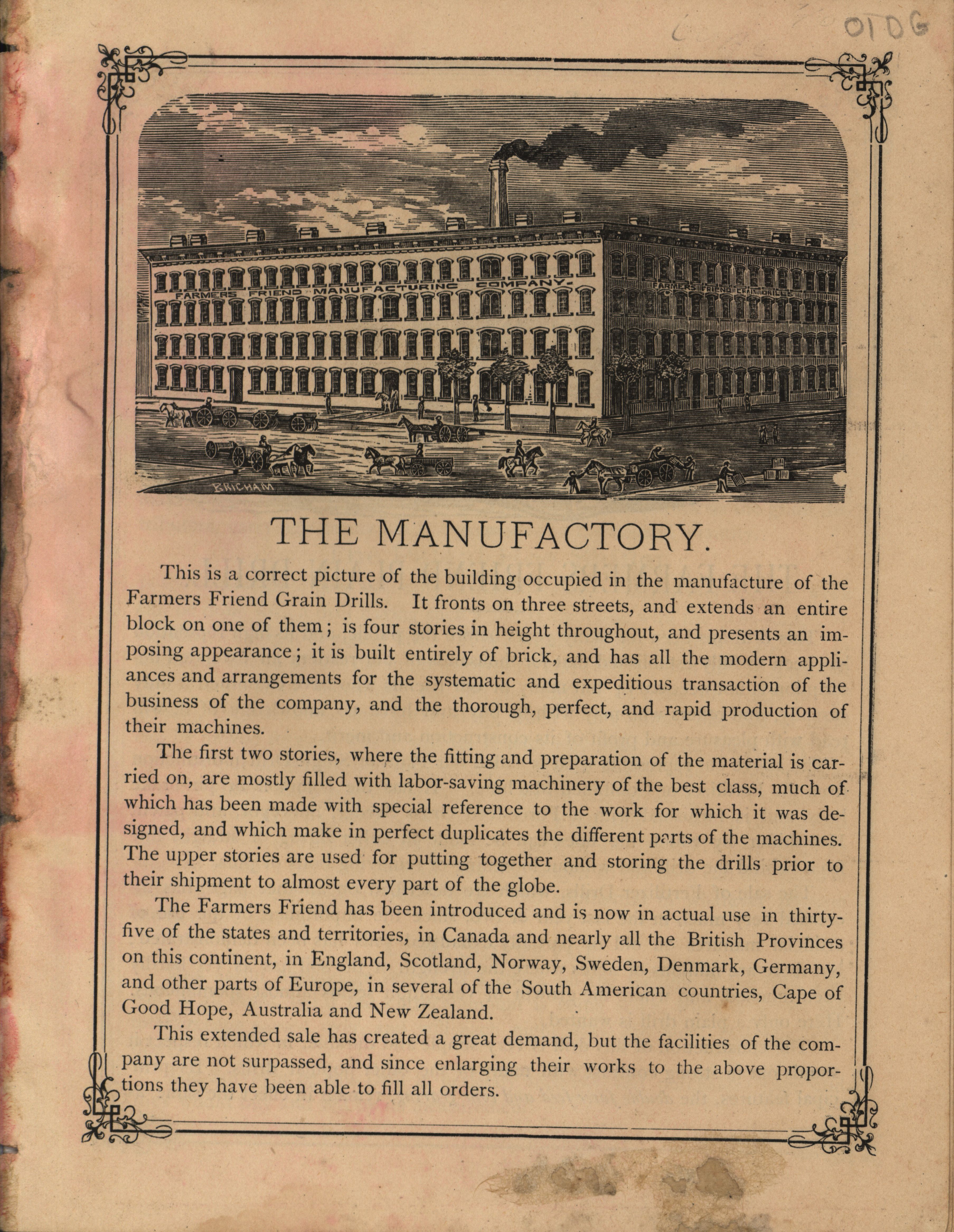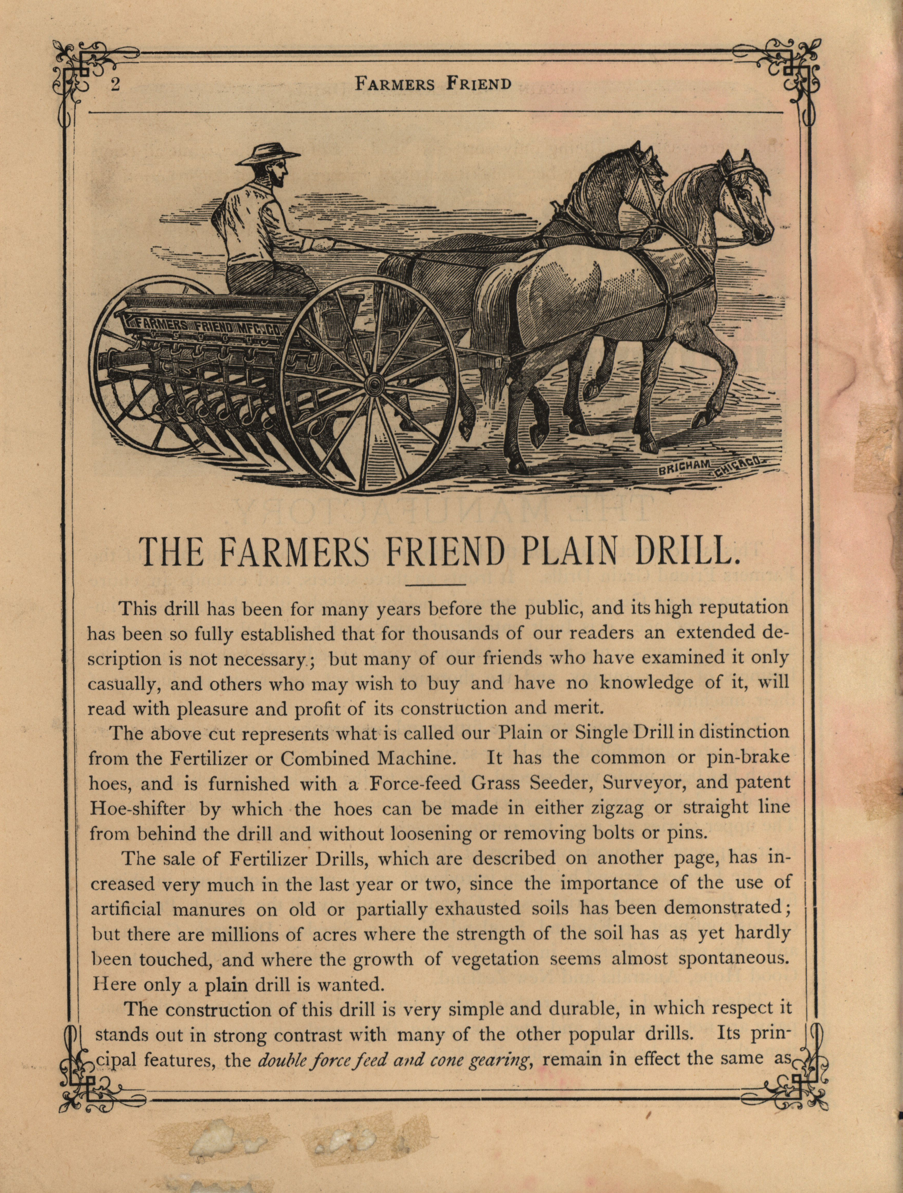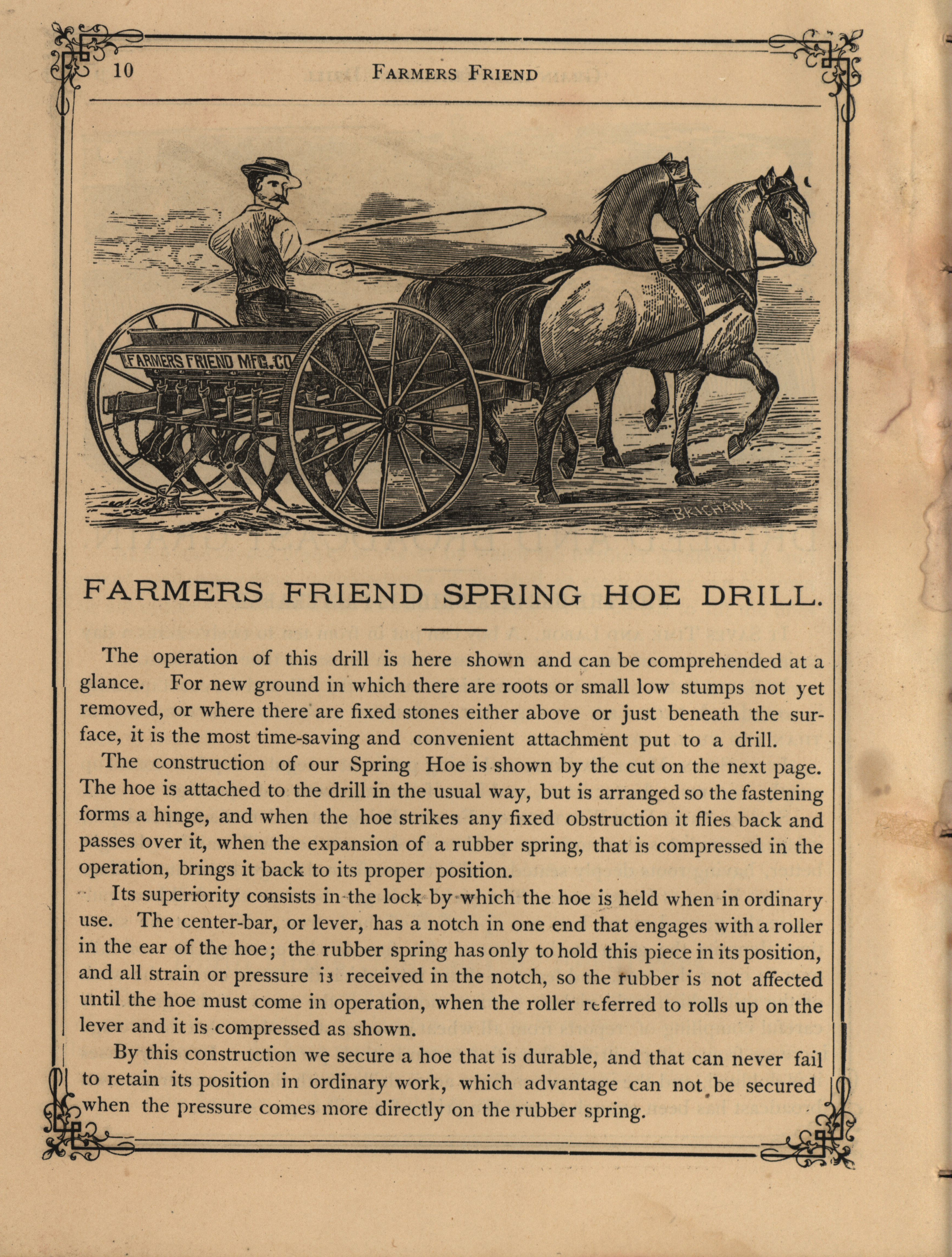 - "Farmers Friend Manufacturing Company catalog", Agricultural Machinery Literature Collection, Iowa State University Library Digital Collections