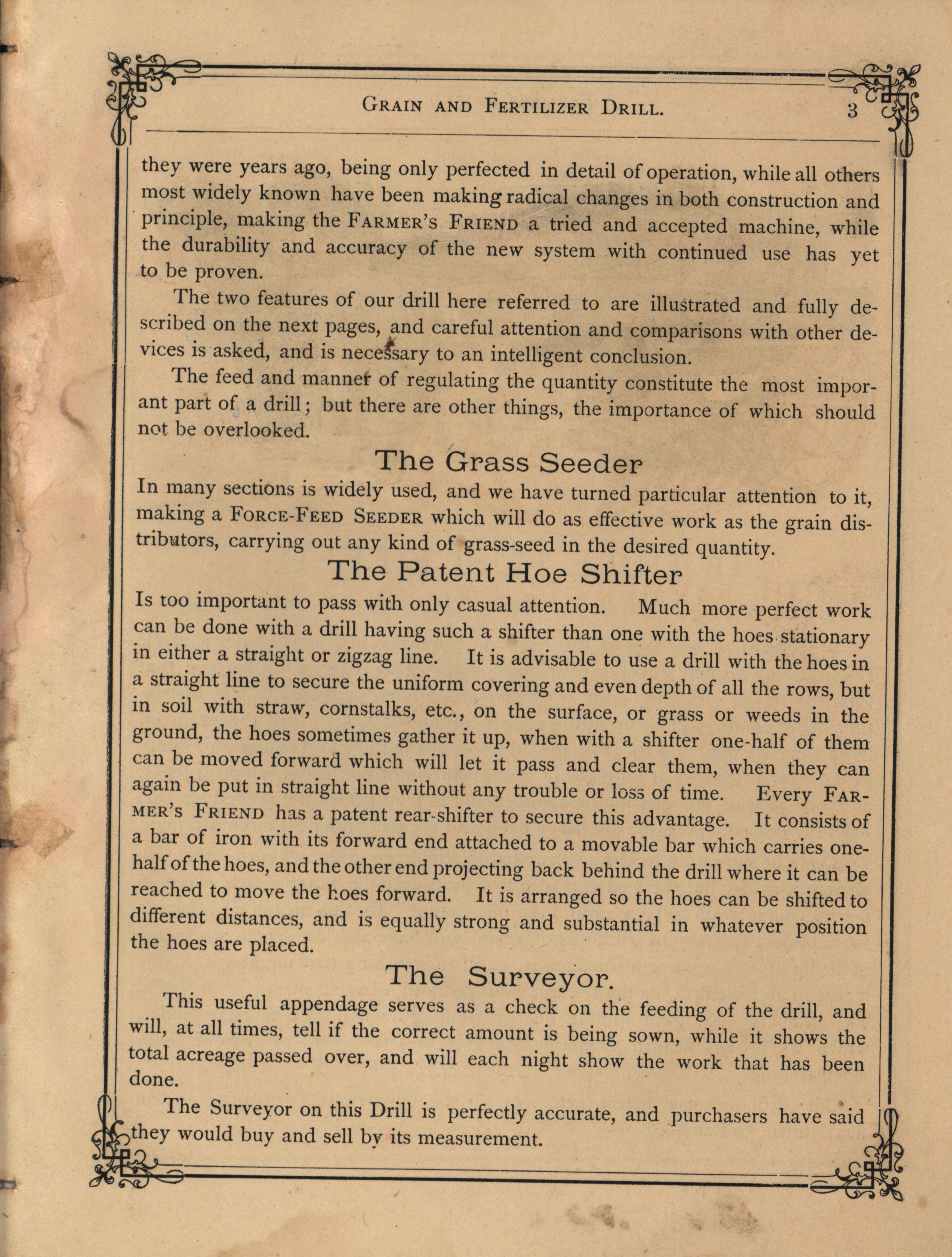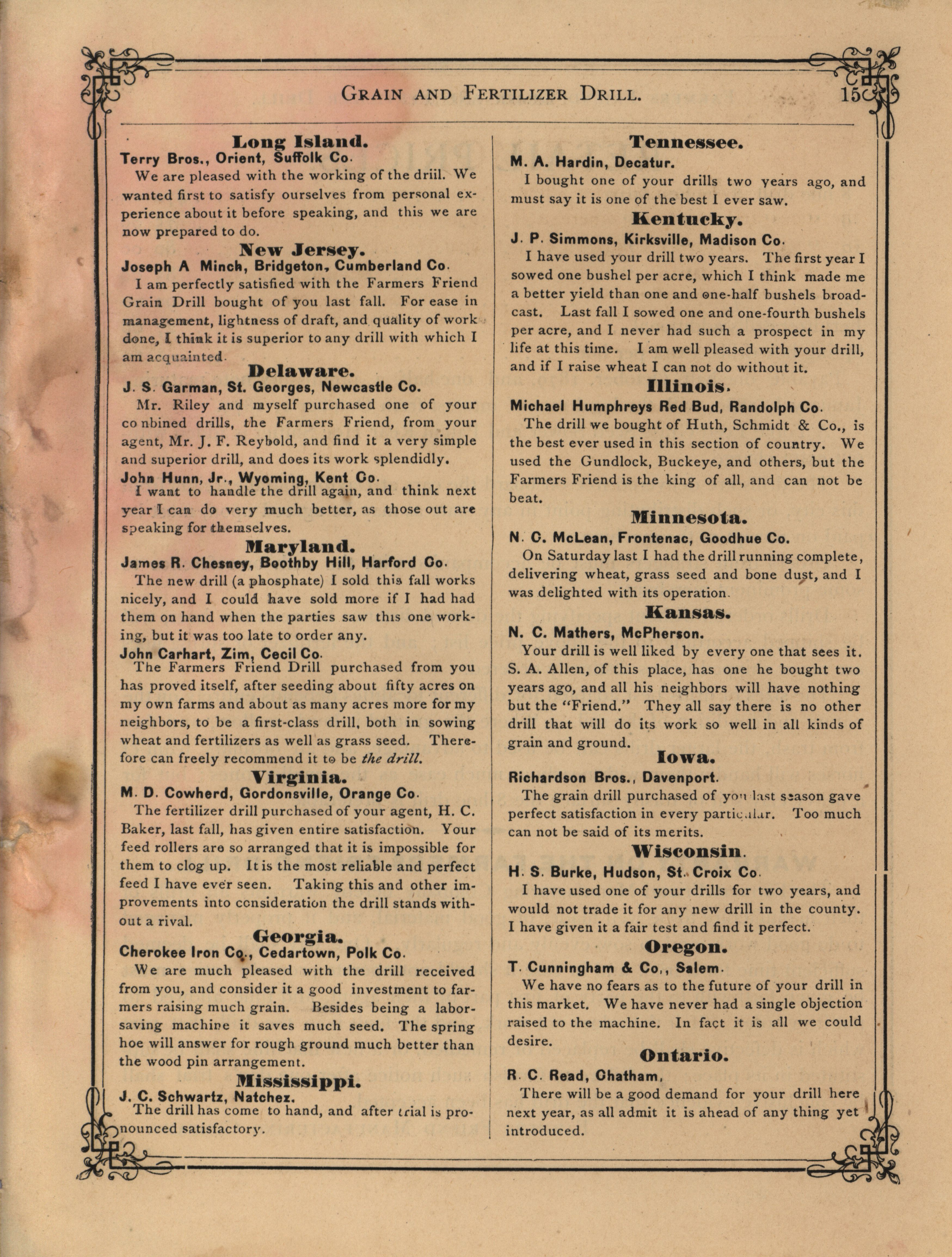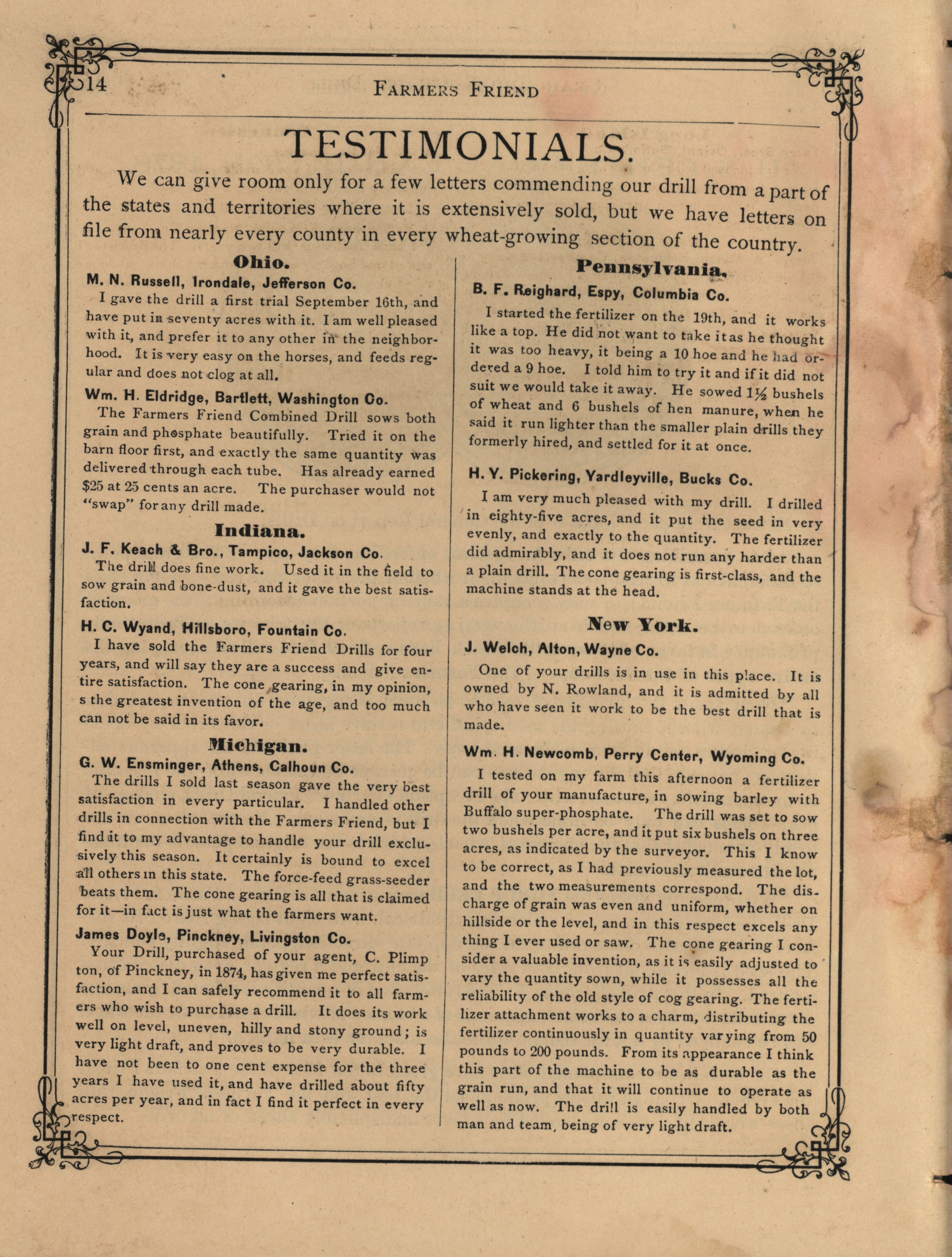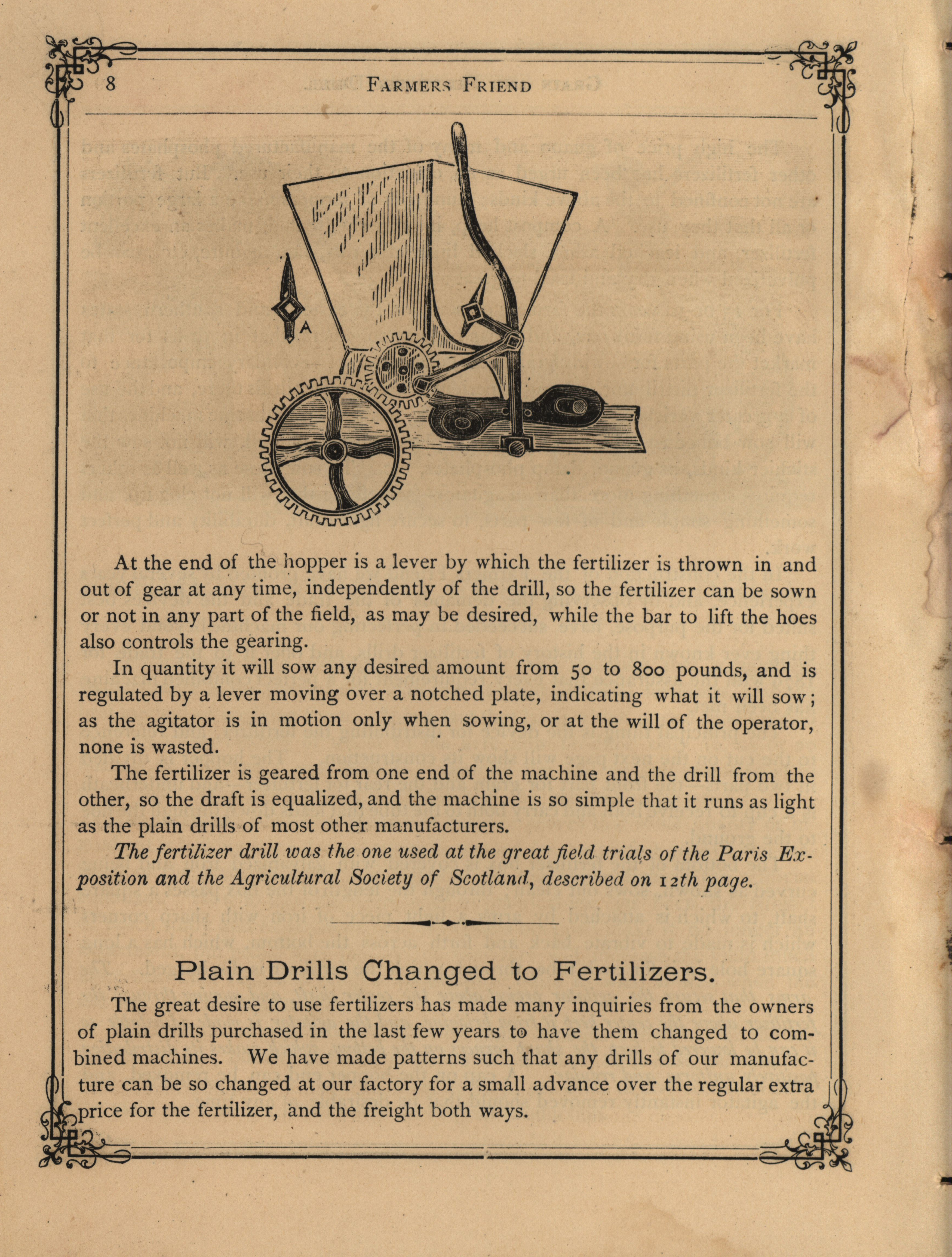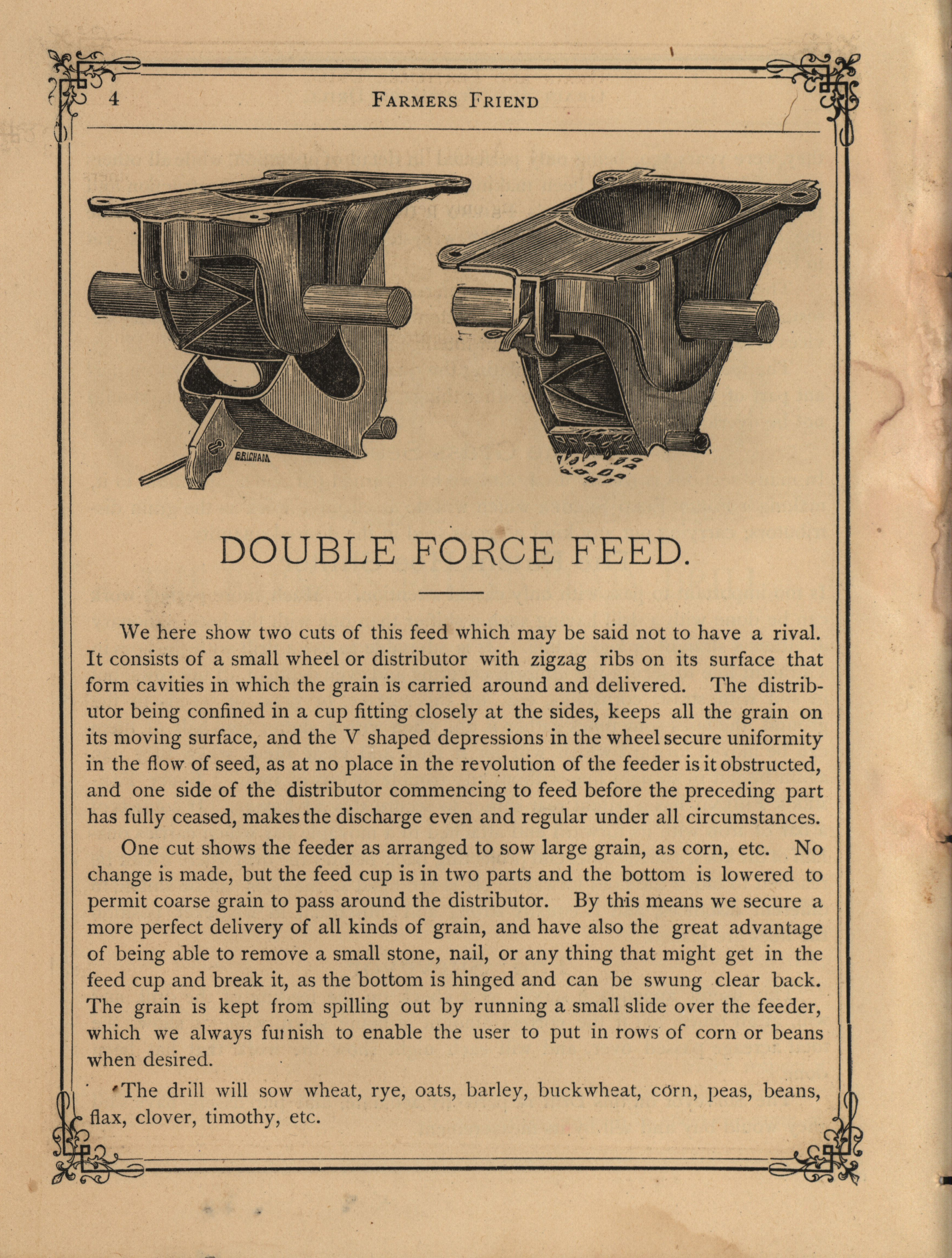 - "Farmers Friend Manufacturing Company catalog", Agricultural Machinery Literature Collection, Iowa State University Library Digital Collections