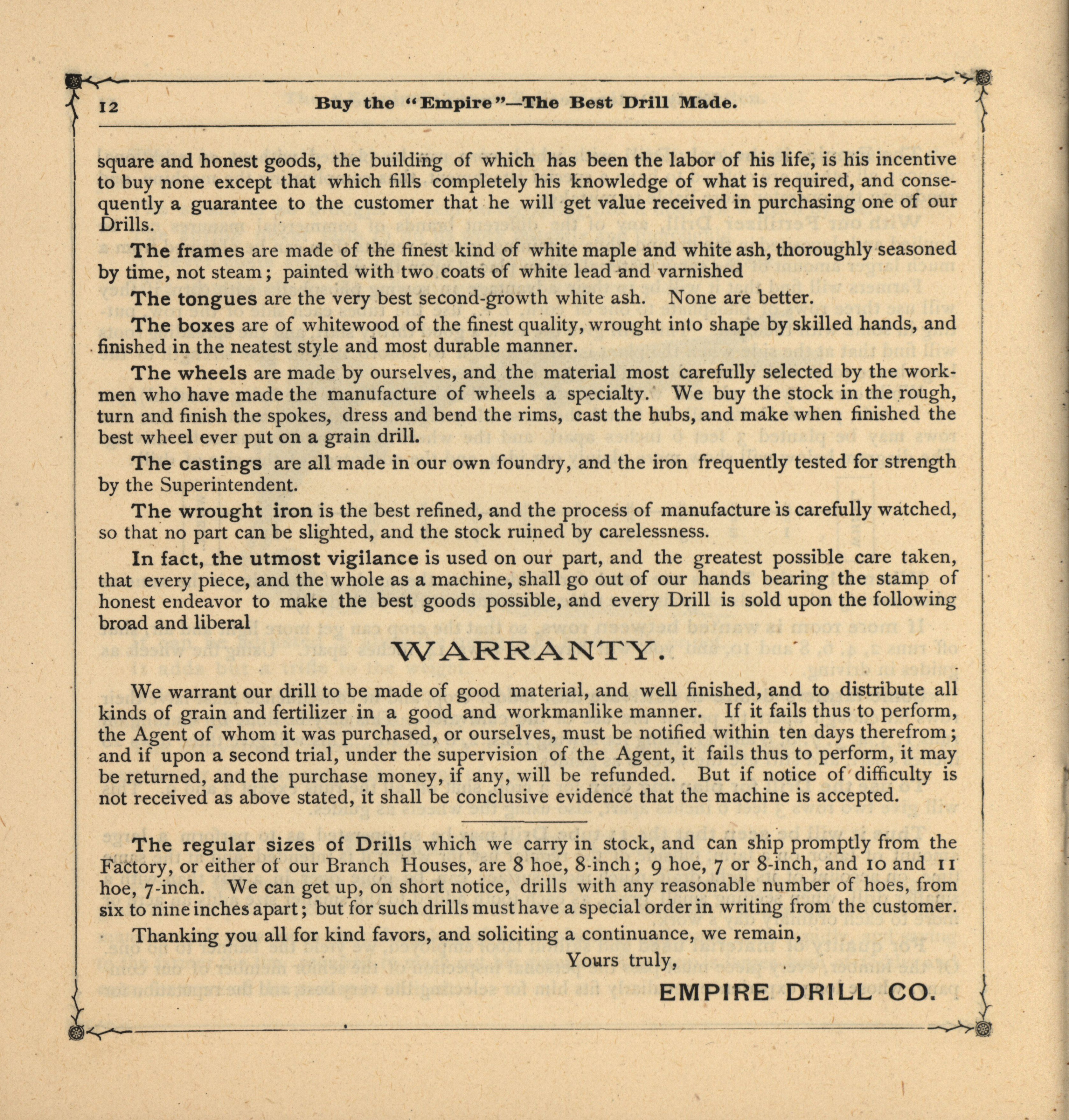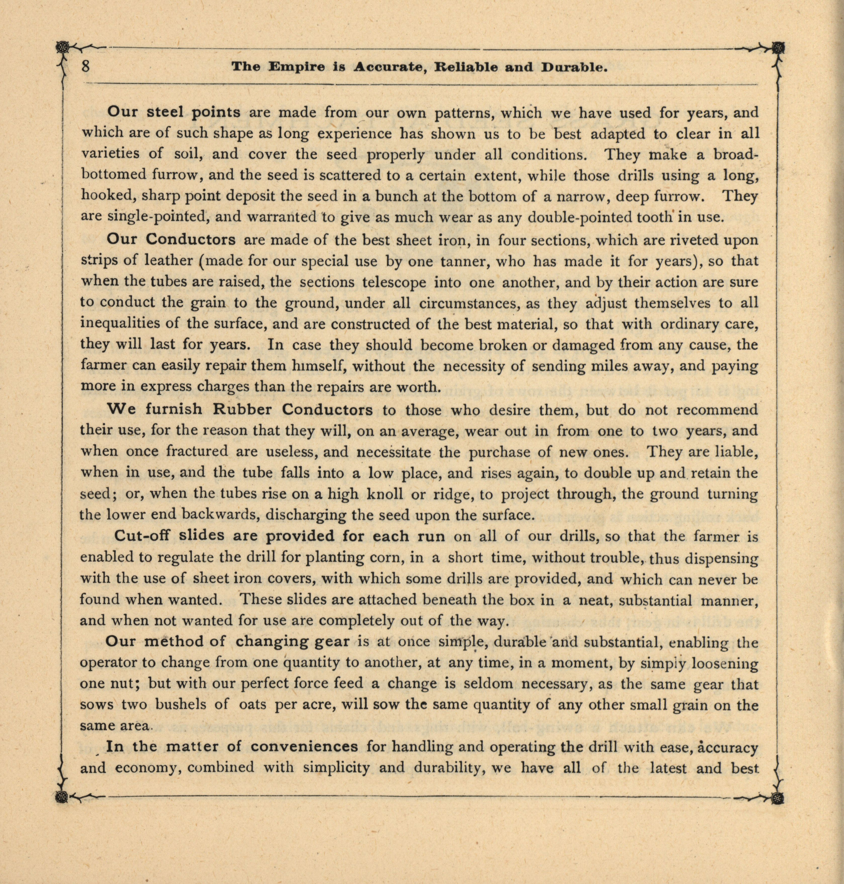 - "Empire Drill Company catalog", Agricultural Machinery Literature Collection, Iowa State University Library Digital Collections