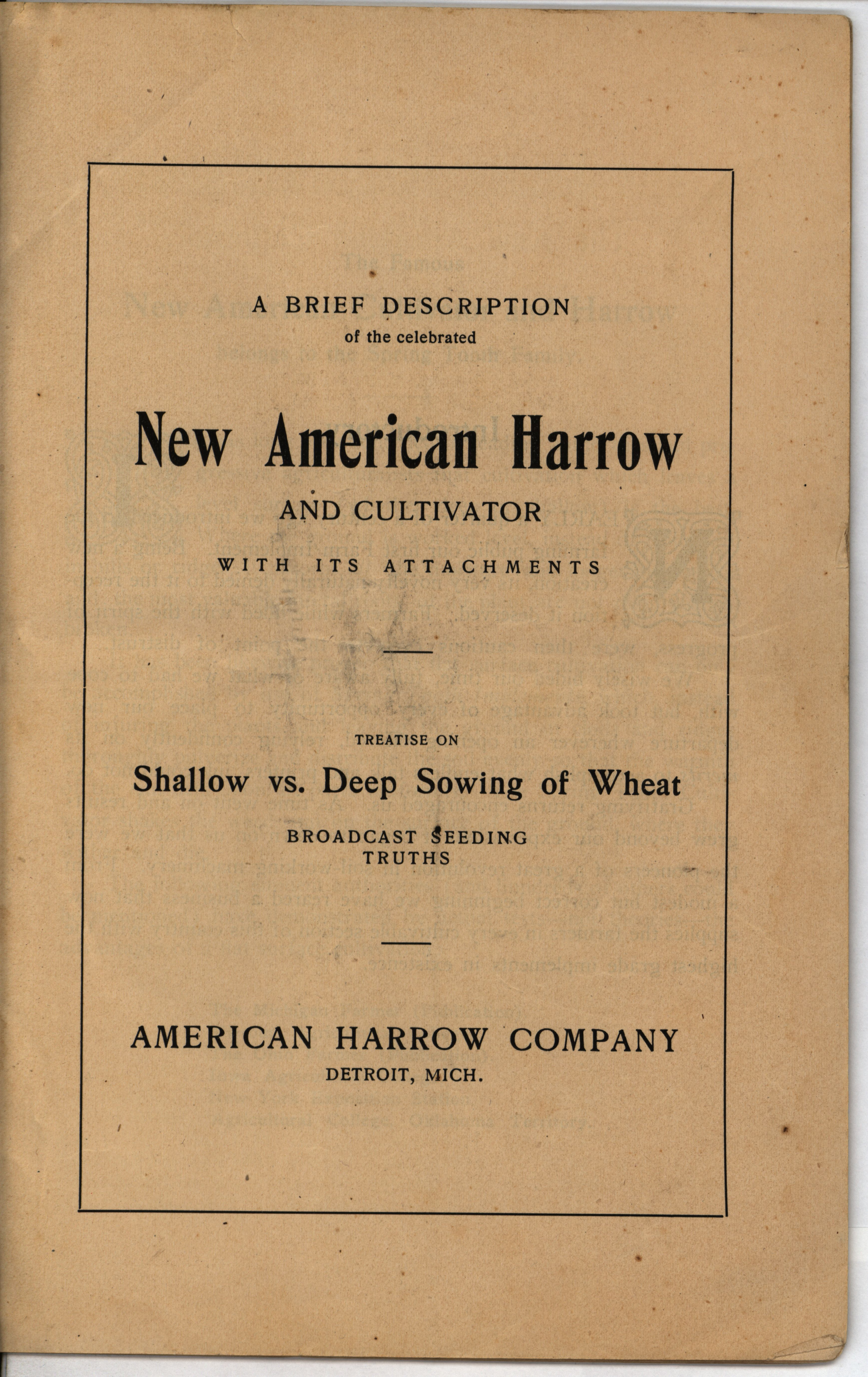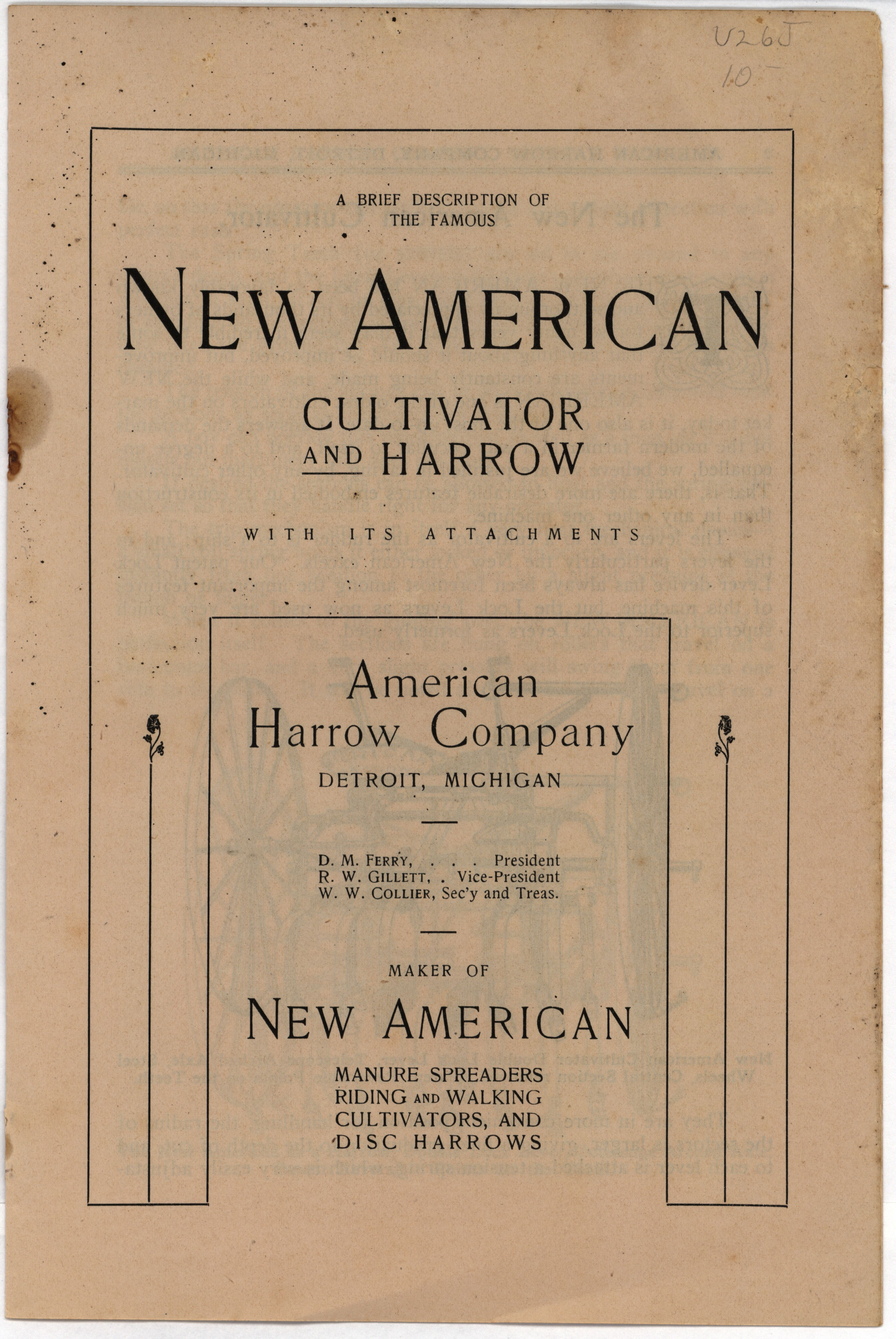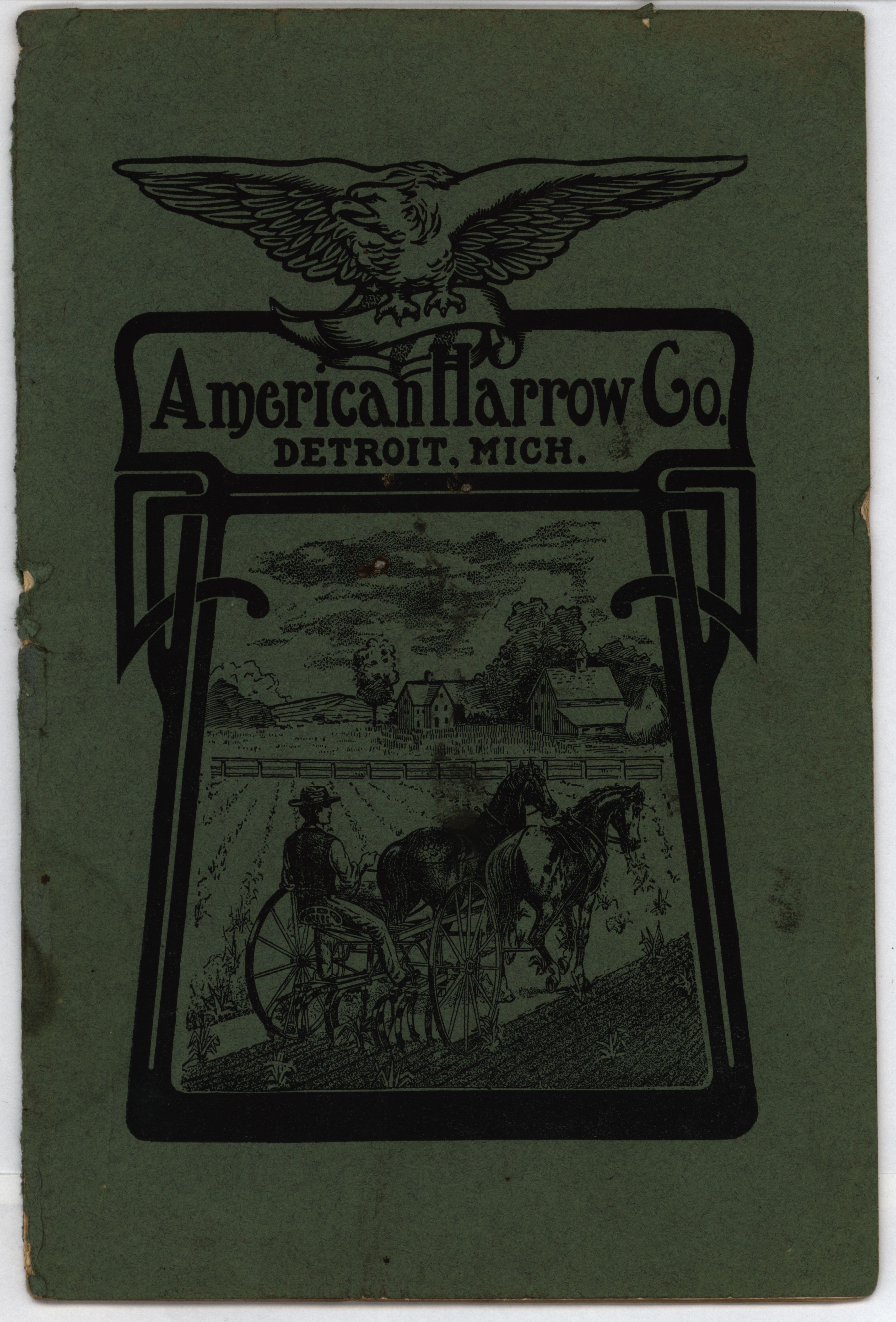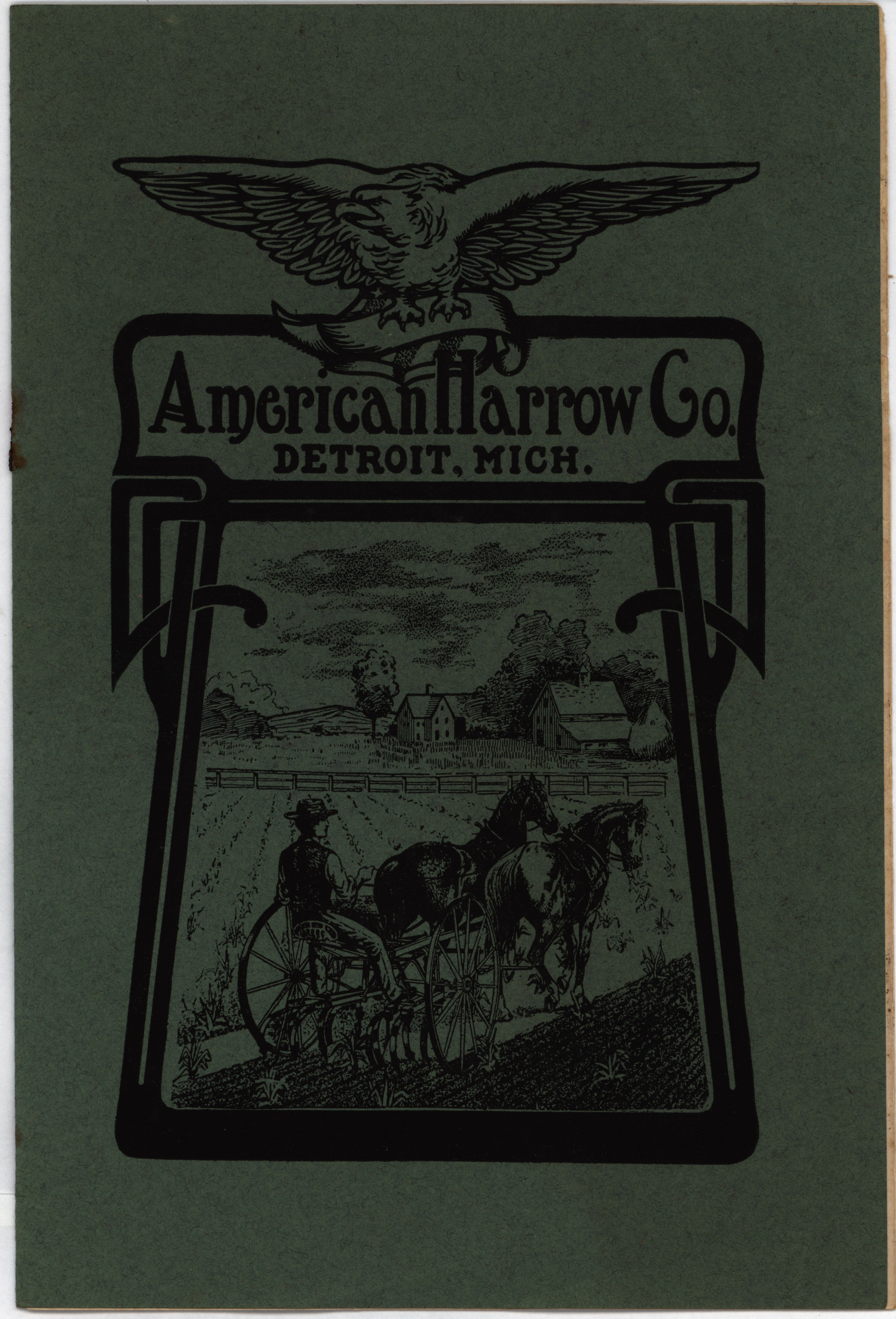 - Illustrated catalog describing the agricultural products and accessories offered by the American Harrow Company in 1910.