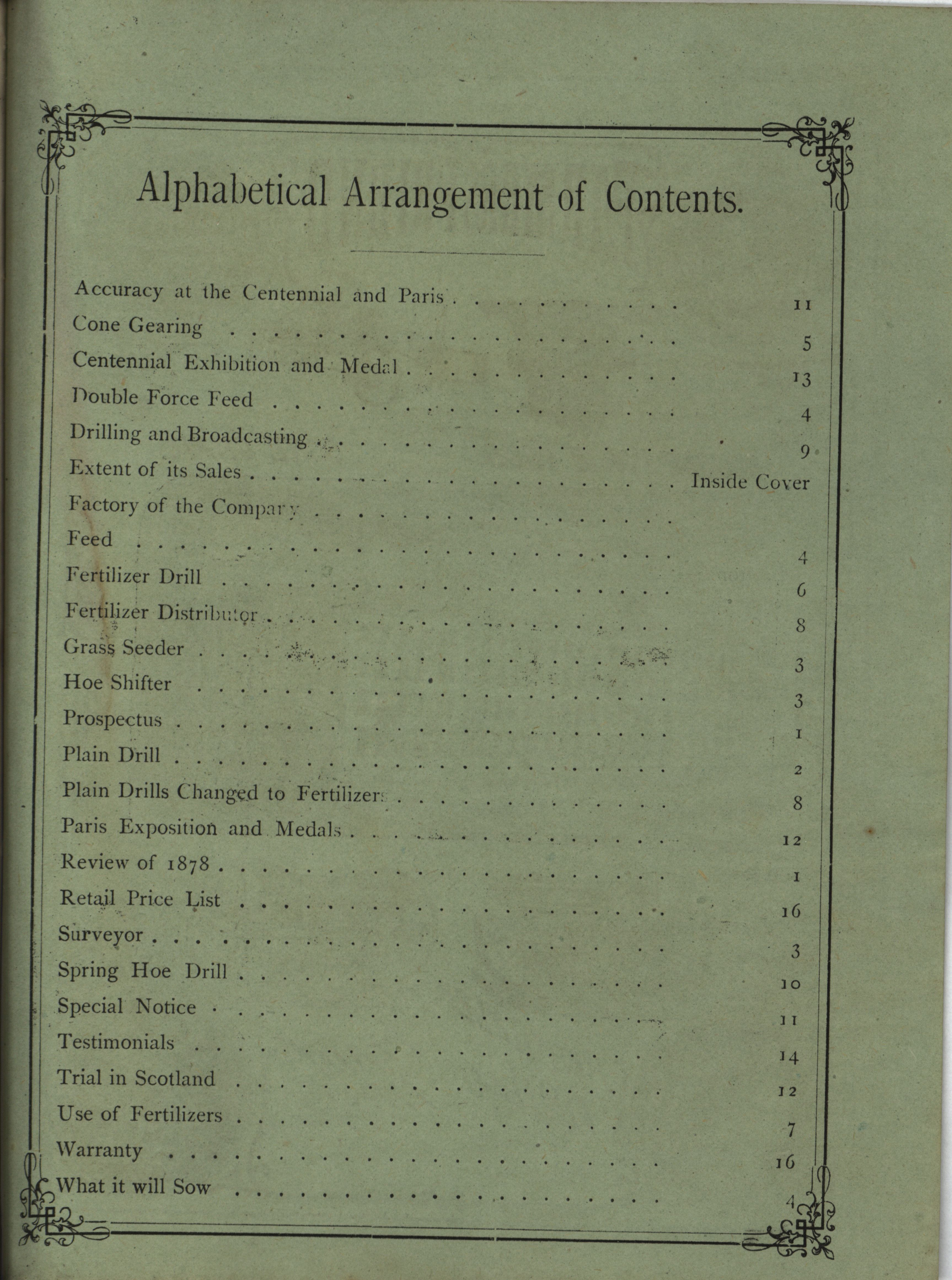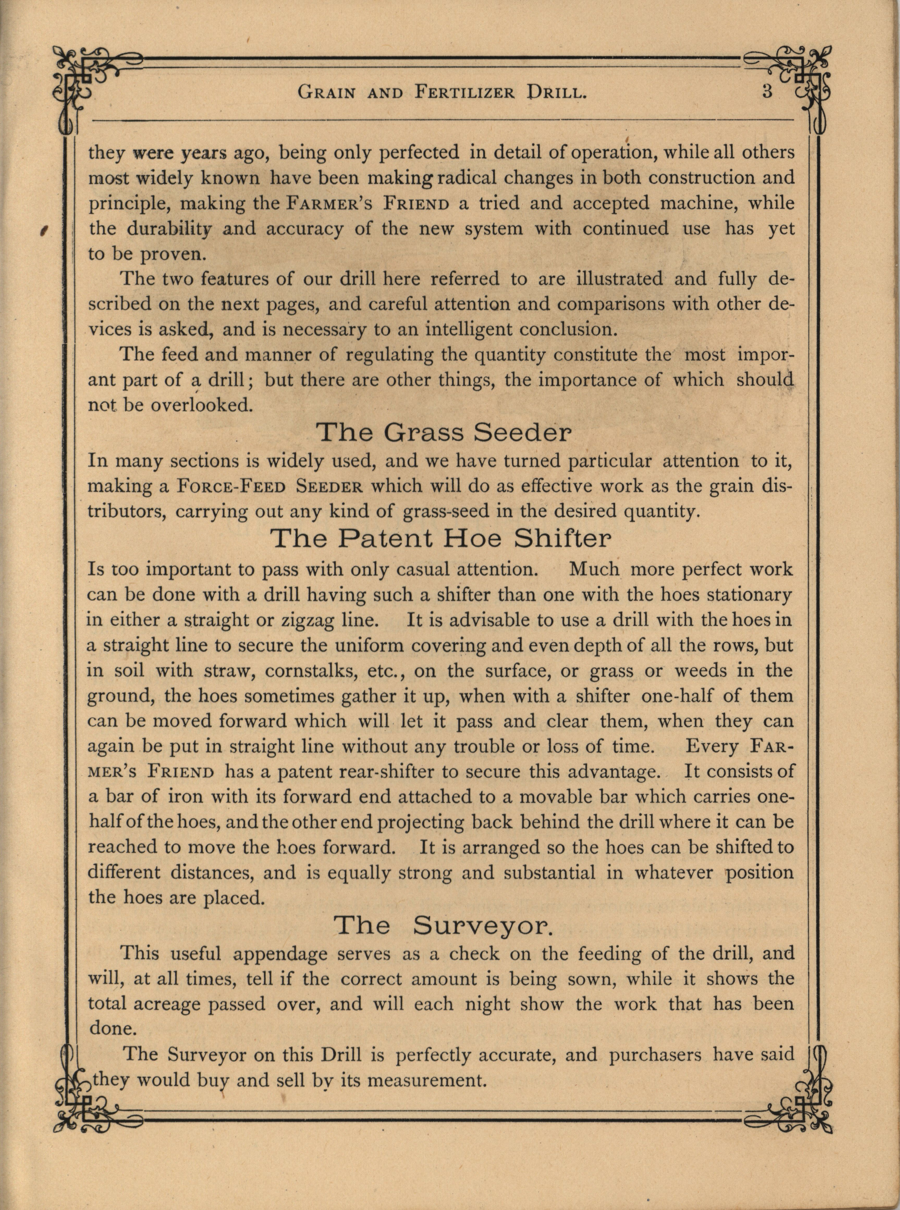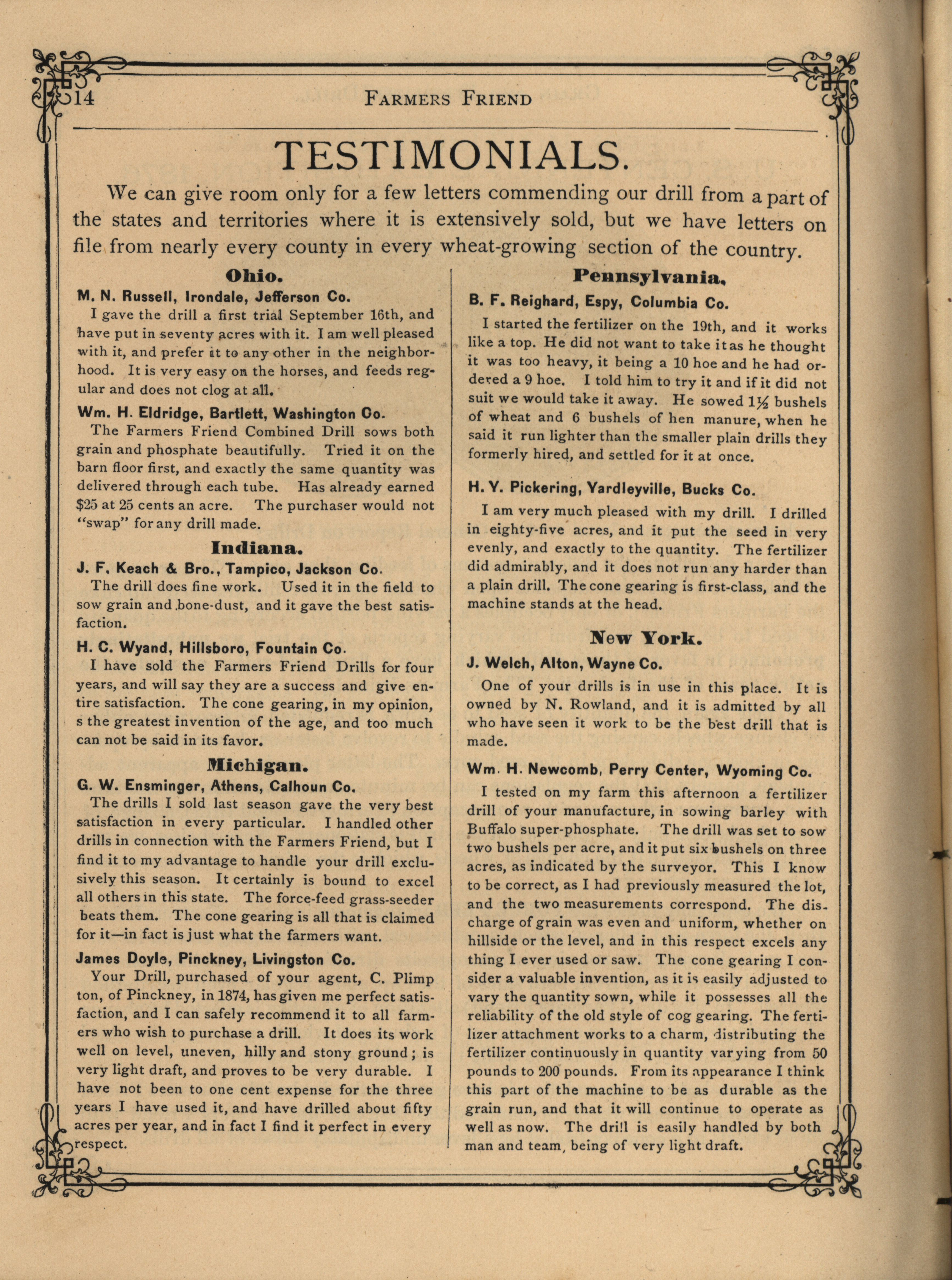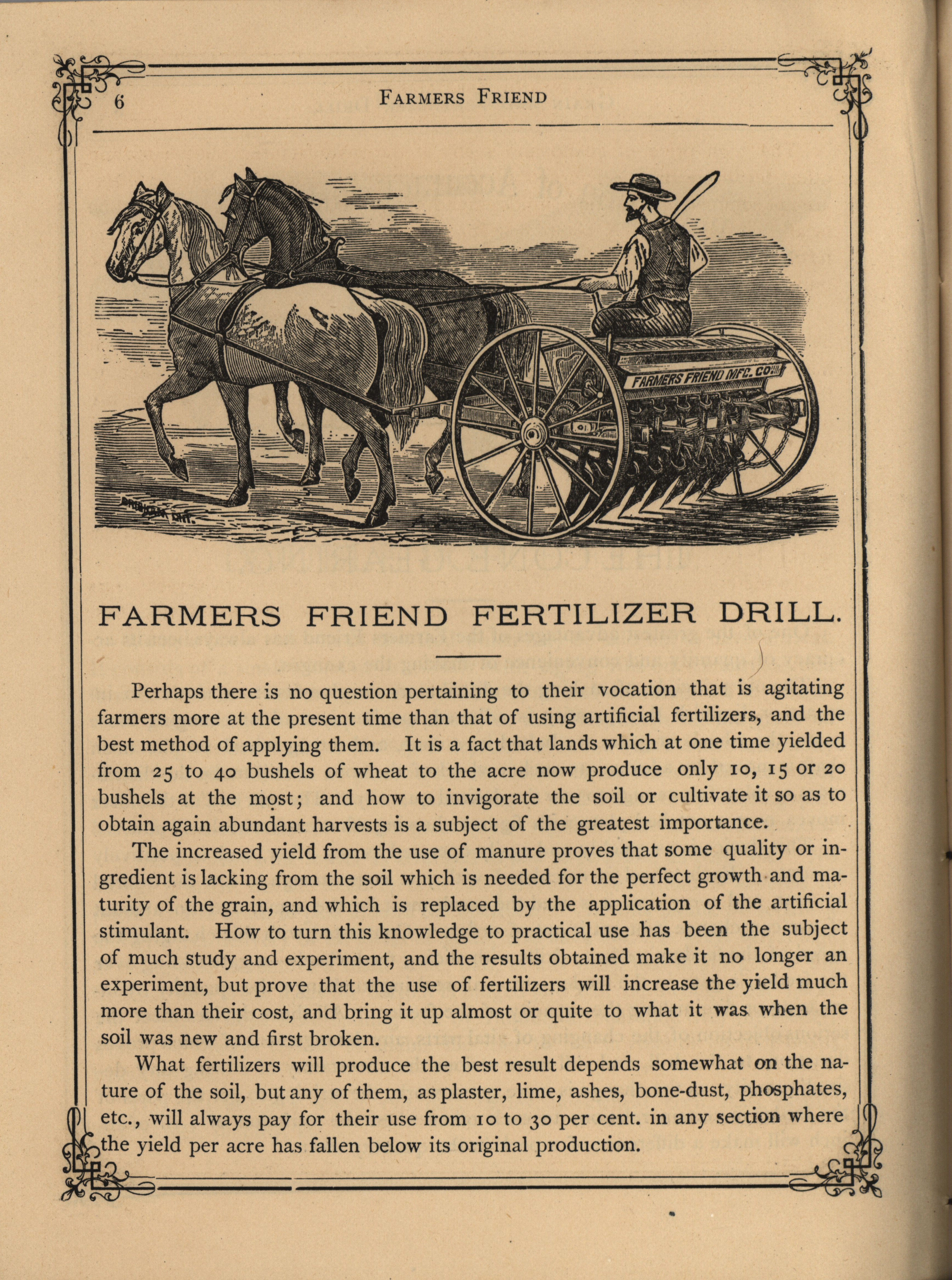 - "Farmers Friend Manufacturing Company catalog", Agricultural Machinery Literature Collection, Iowa State University Library Digital Collections