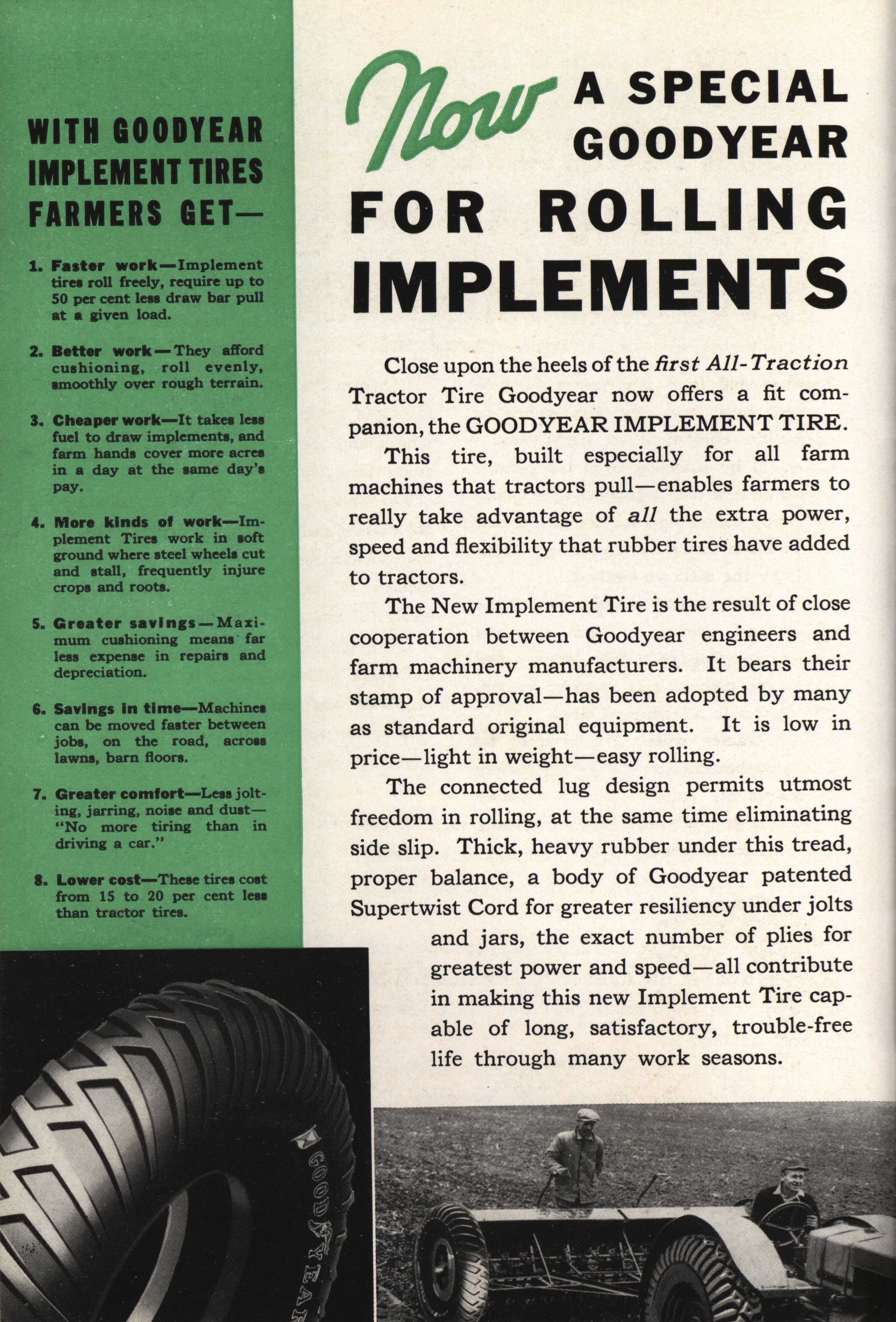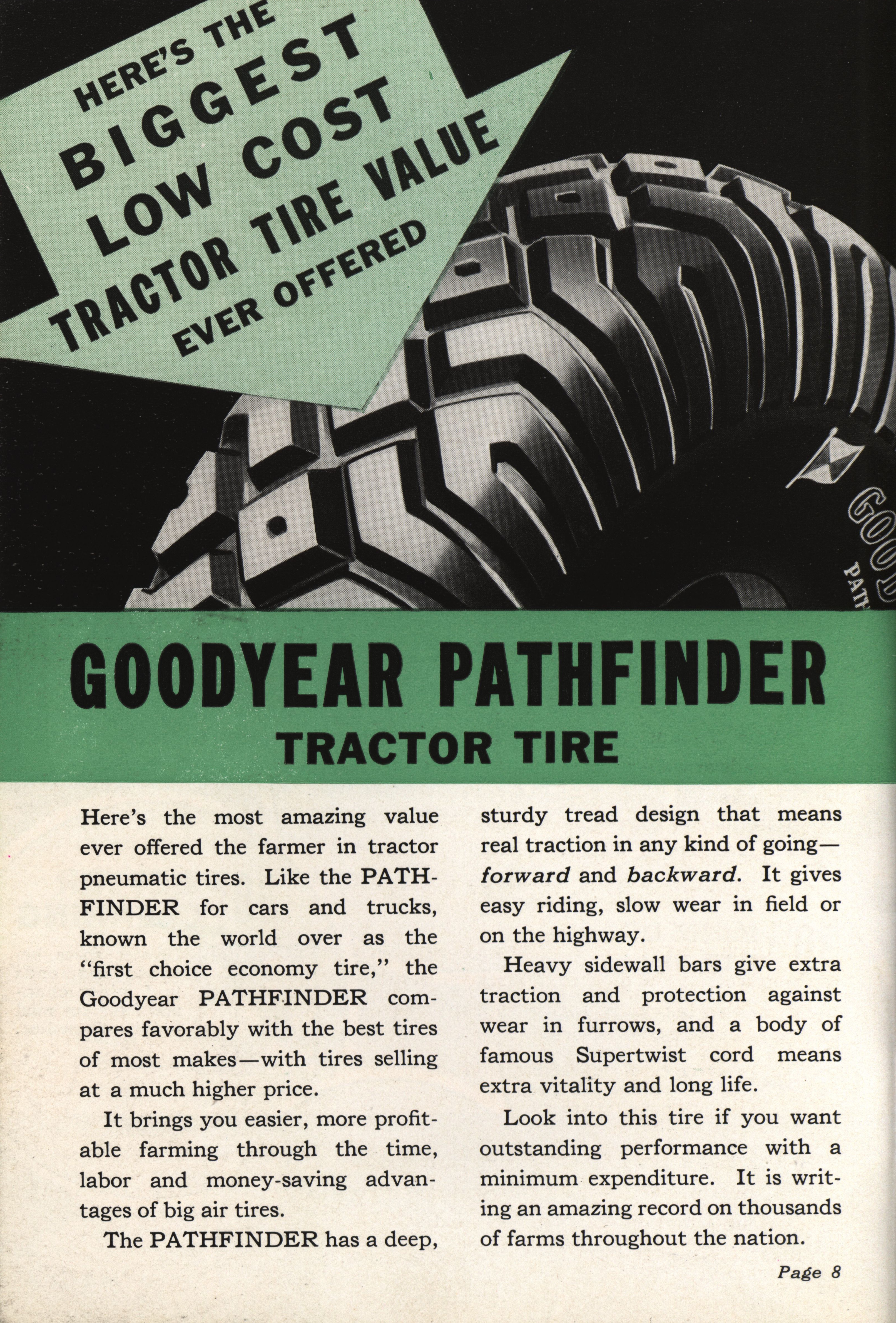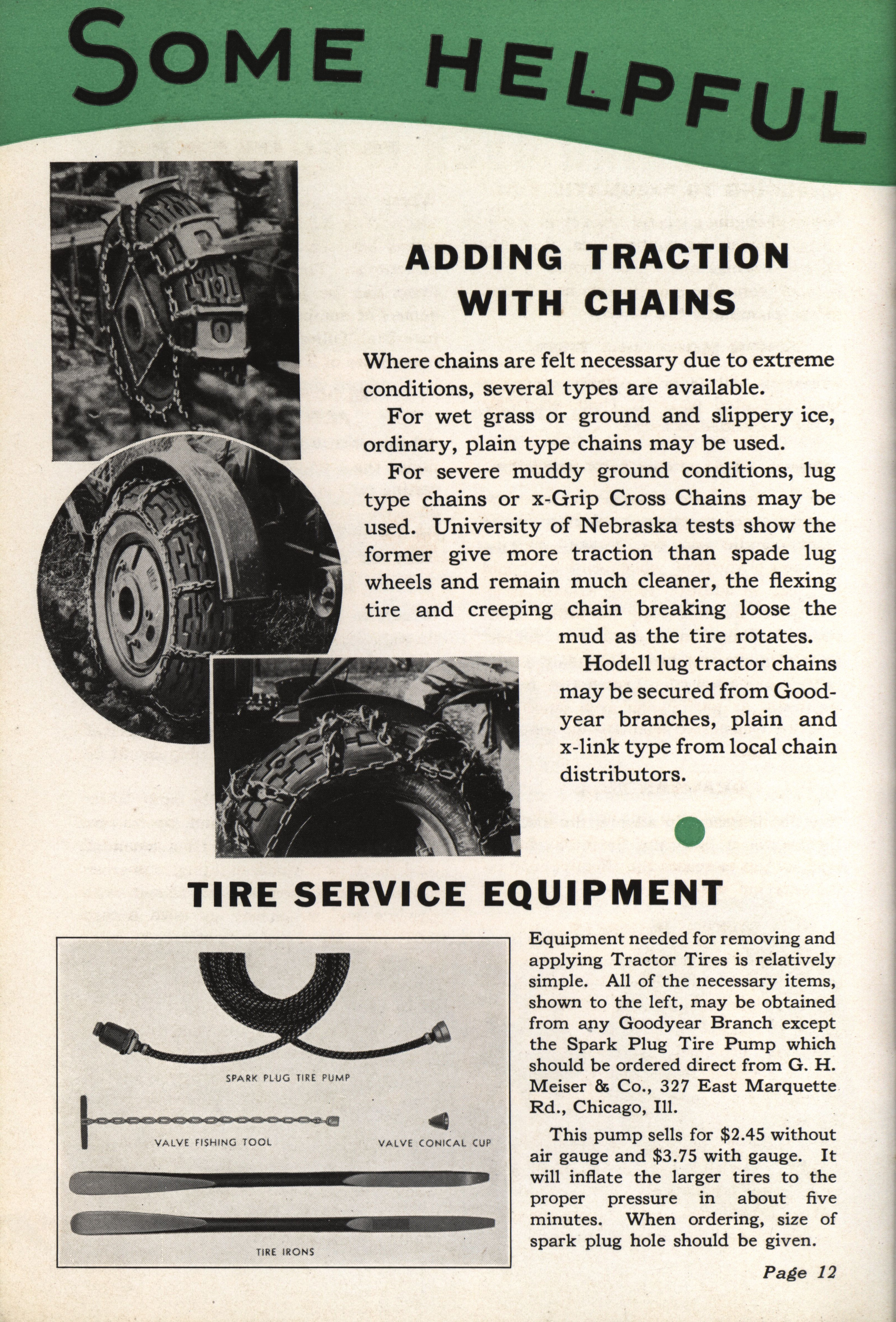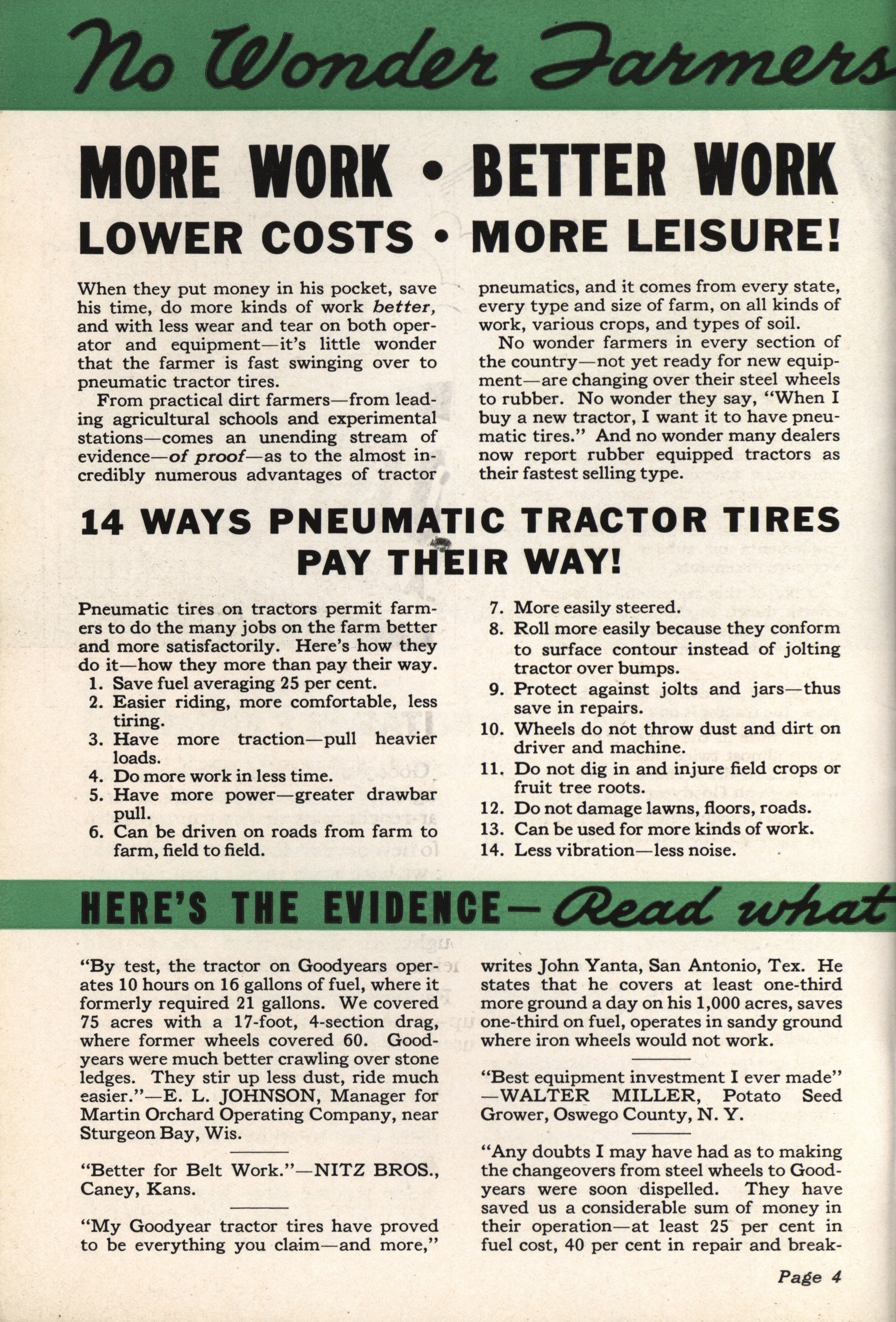 - "Goodyear Tractor and Implement Tire Data pamphlet", Agricultural Machinery Literature Collection, Iowa State University Library Digital Collections
