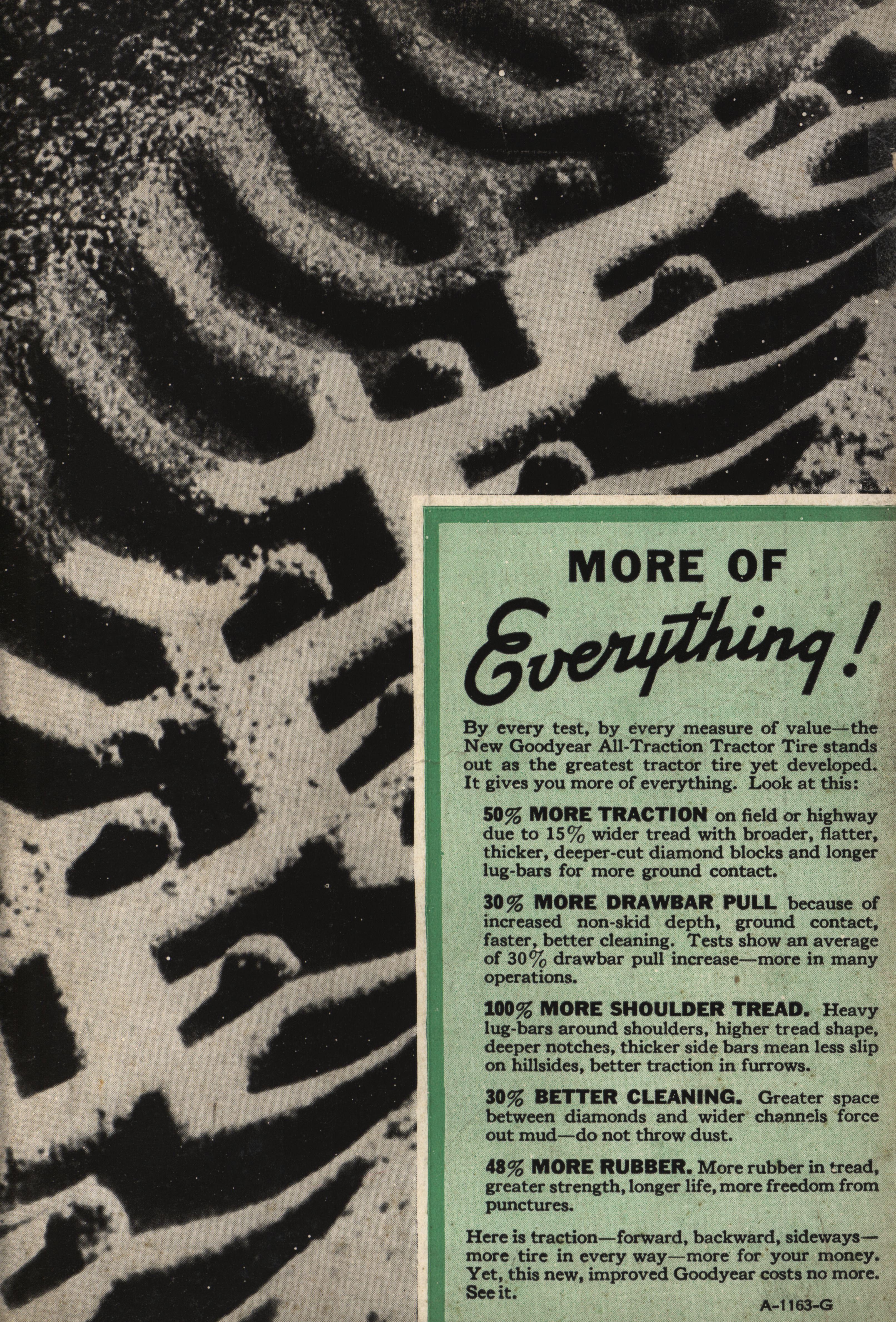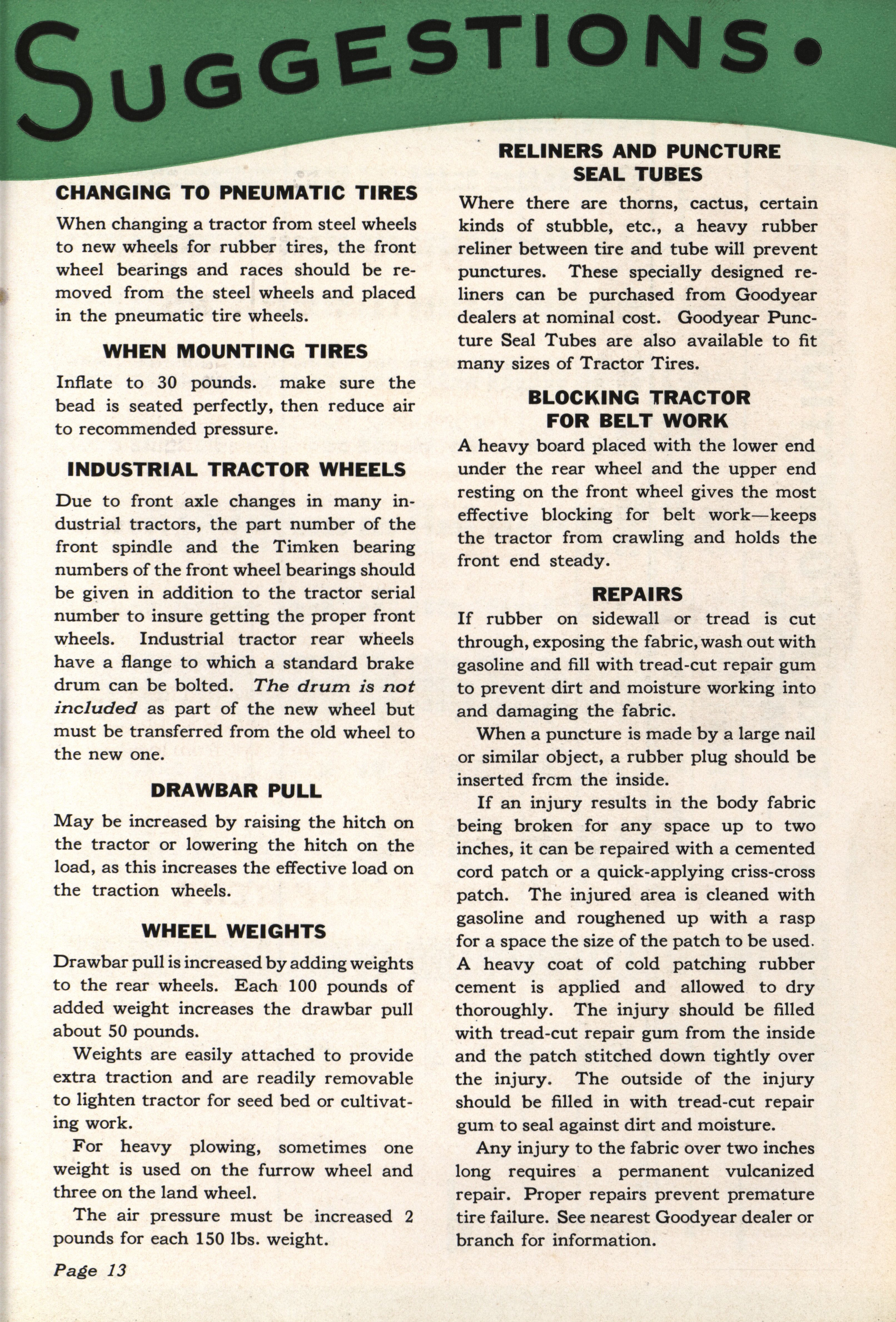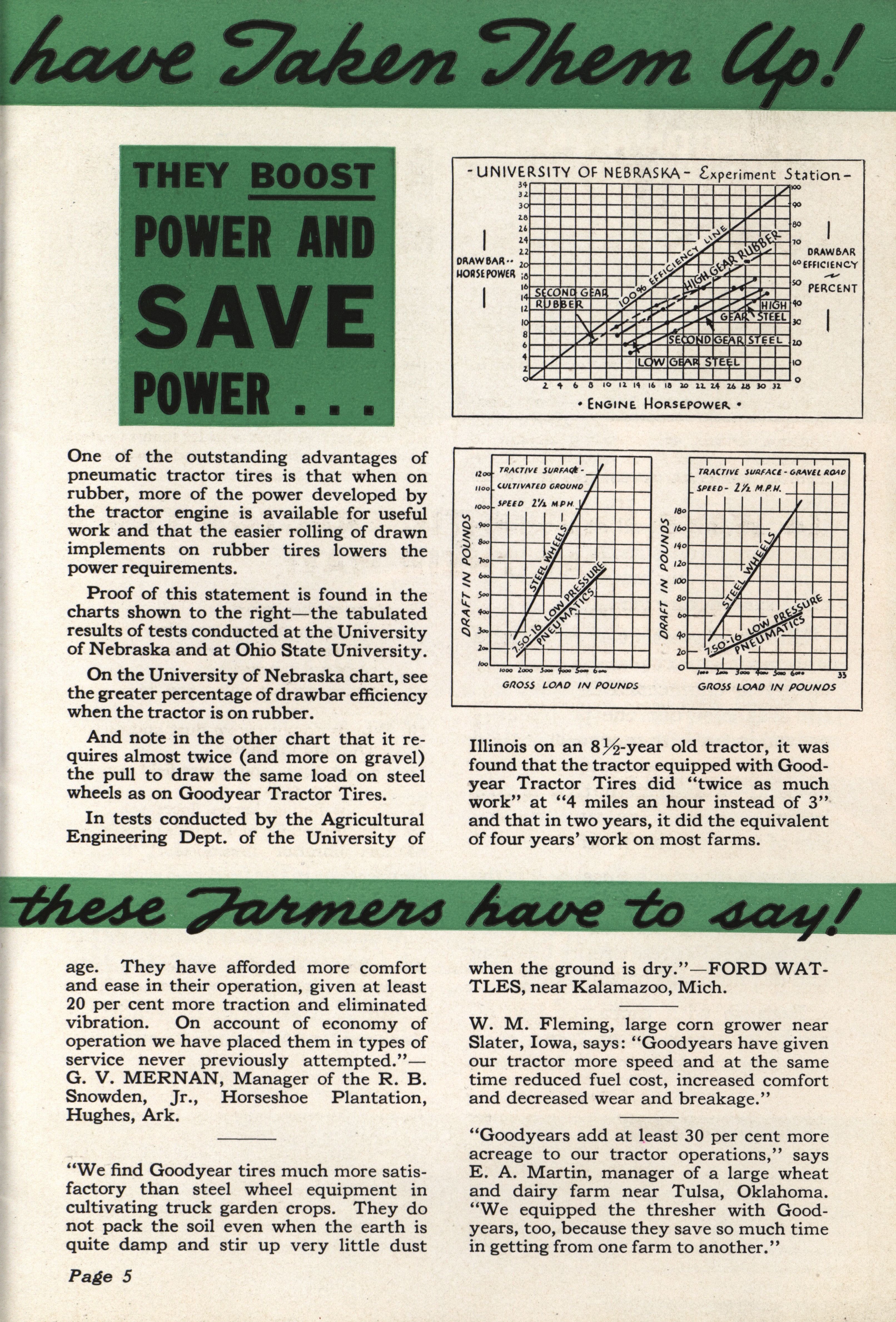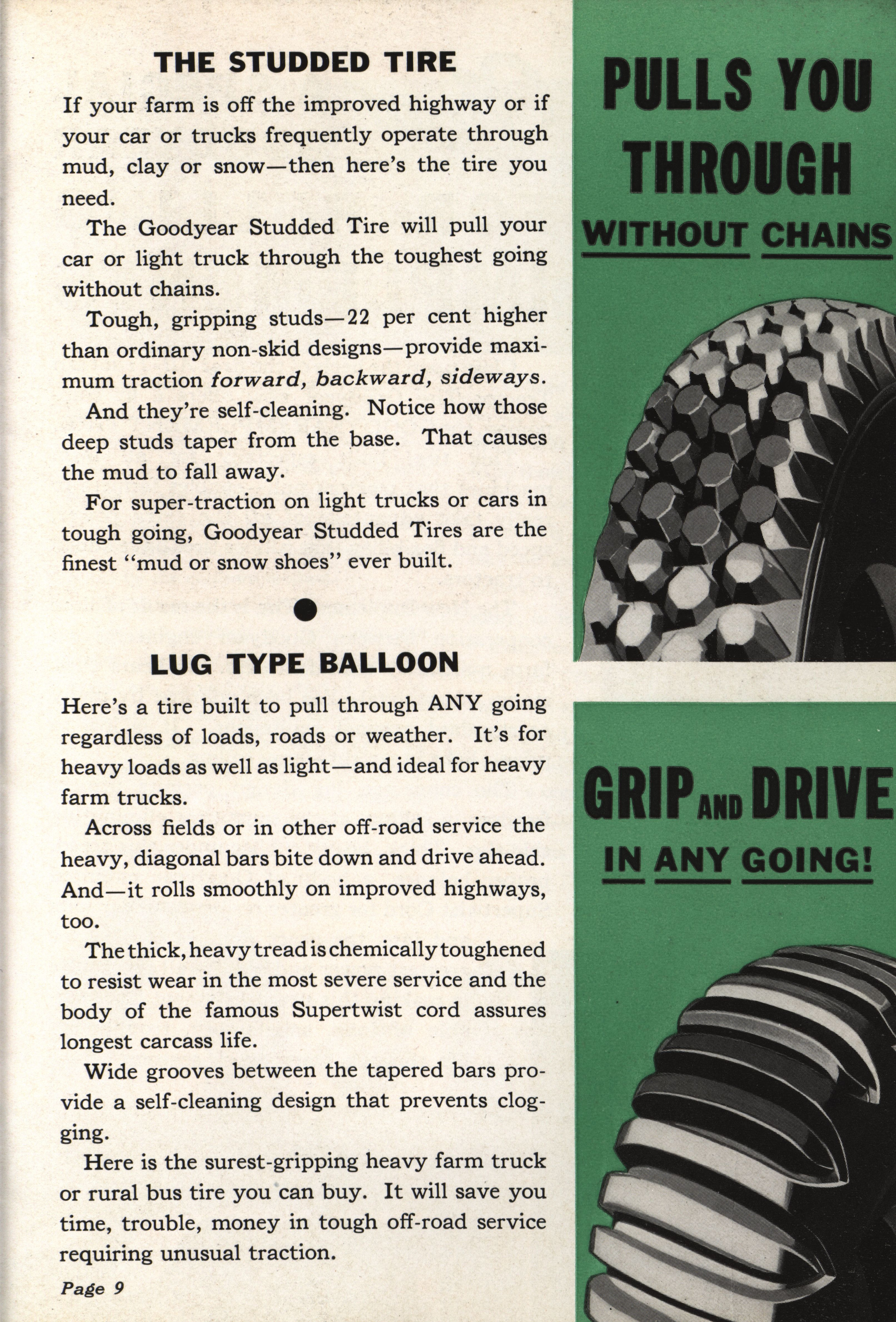 - "Goodyear Tractor and Implement Tire Data pamphlet", Agricultural Machinery Literature Collection, Iowa State University Library Digital Collections