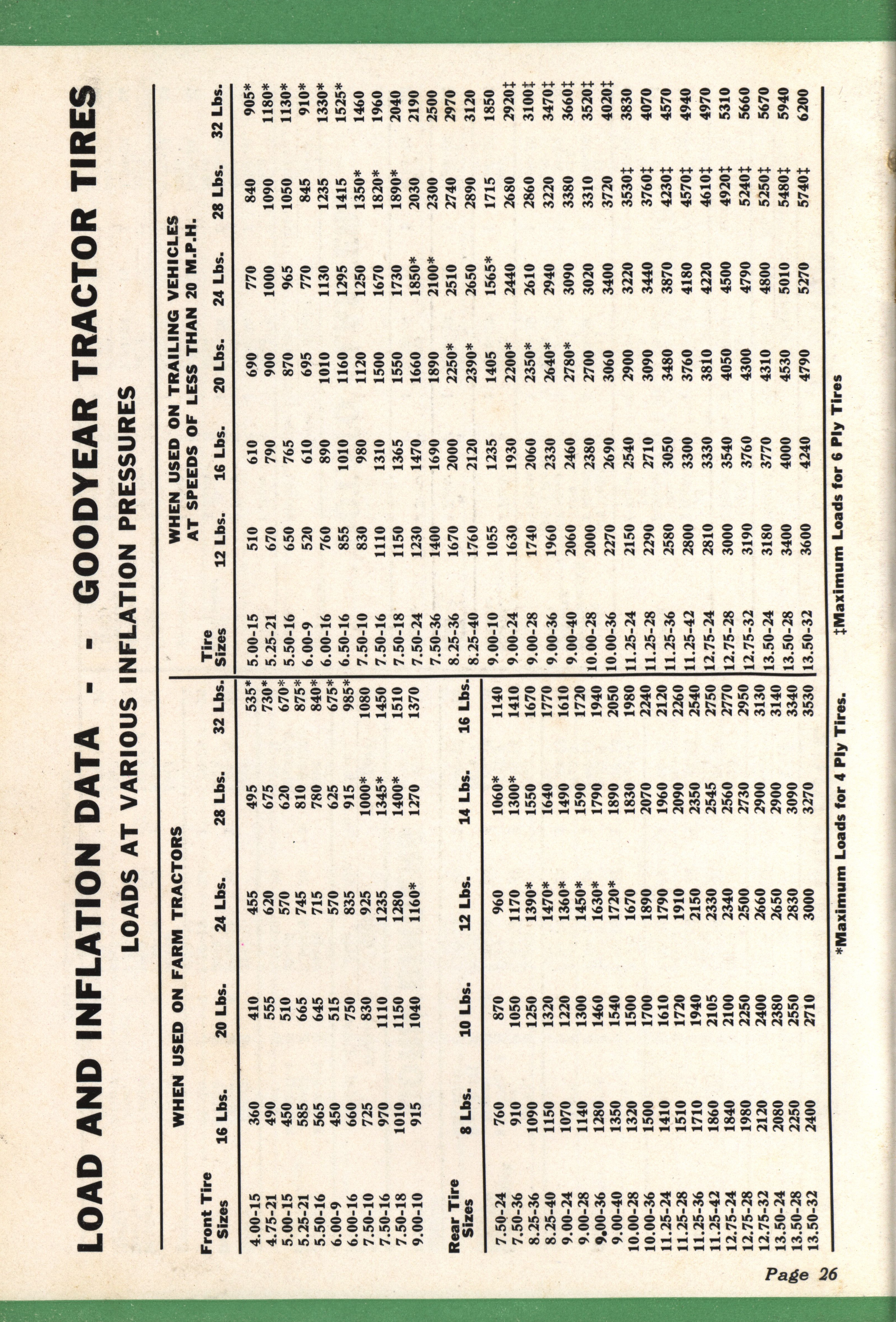 - Goodyear Tractor and Implement Tire Data pamphlet