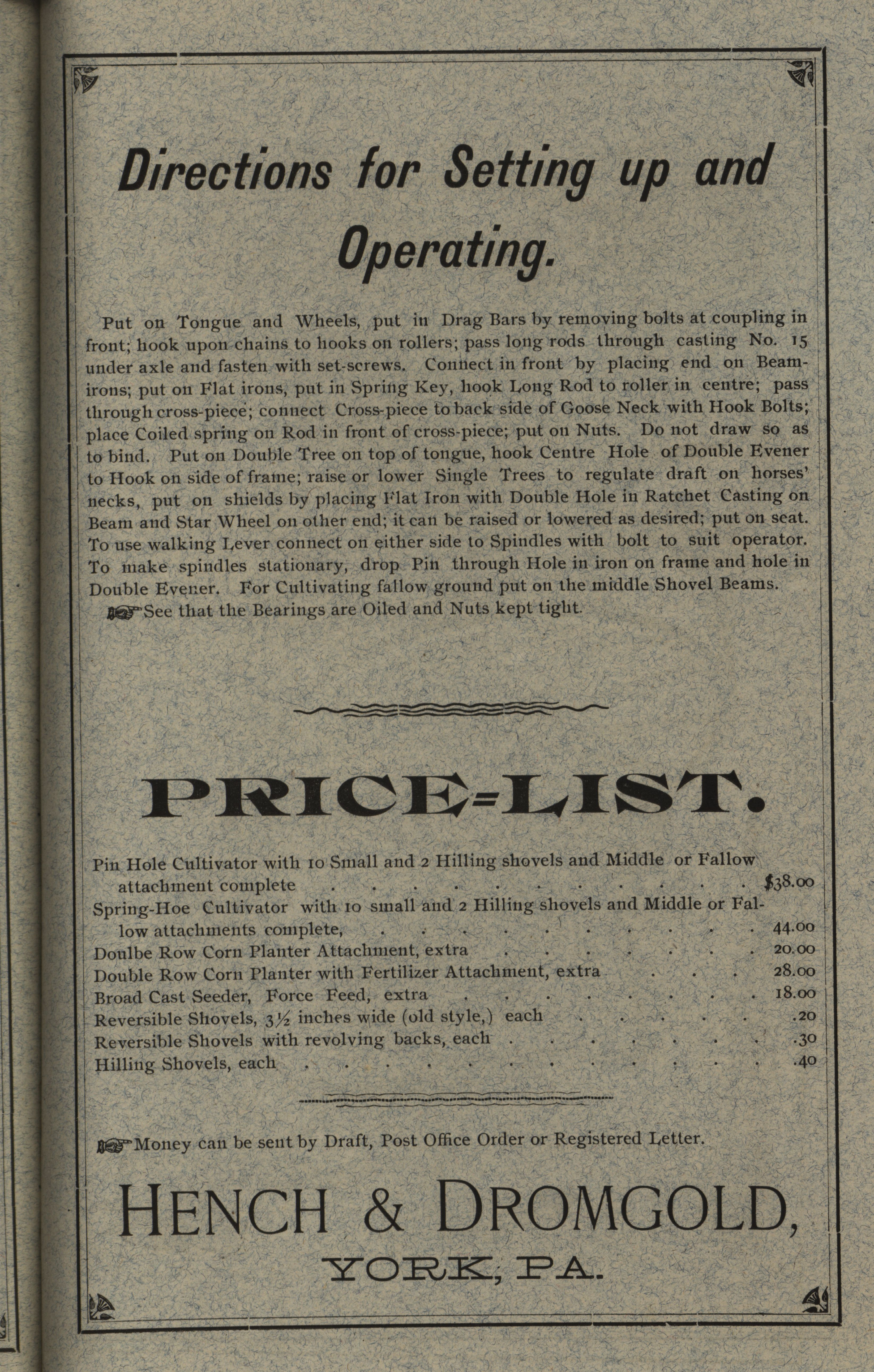 Hench and Dromgold Company cultivator catalog Item Info