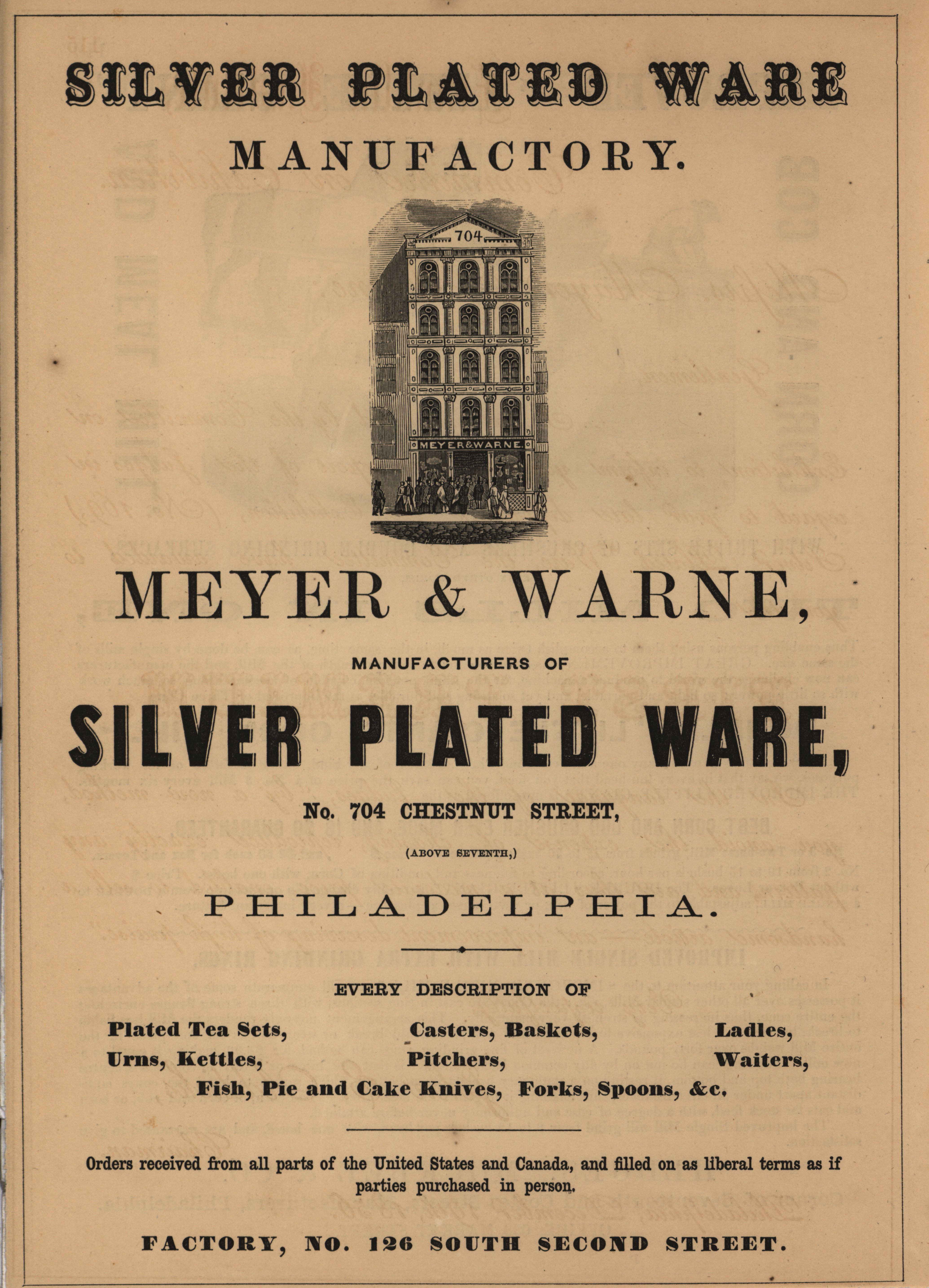 Hedges, Mockbee and Company Mill and Meyer and Warnes Silver Plates Ware advertisements Item Info