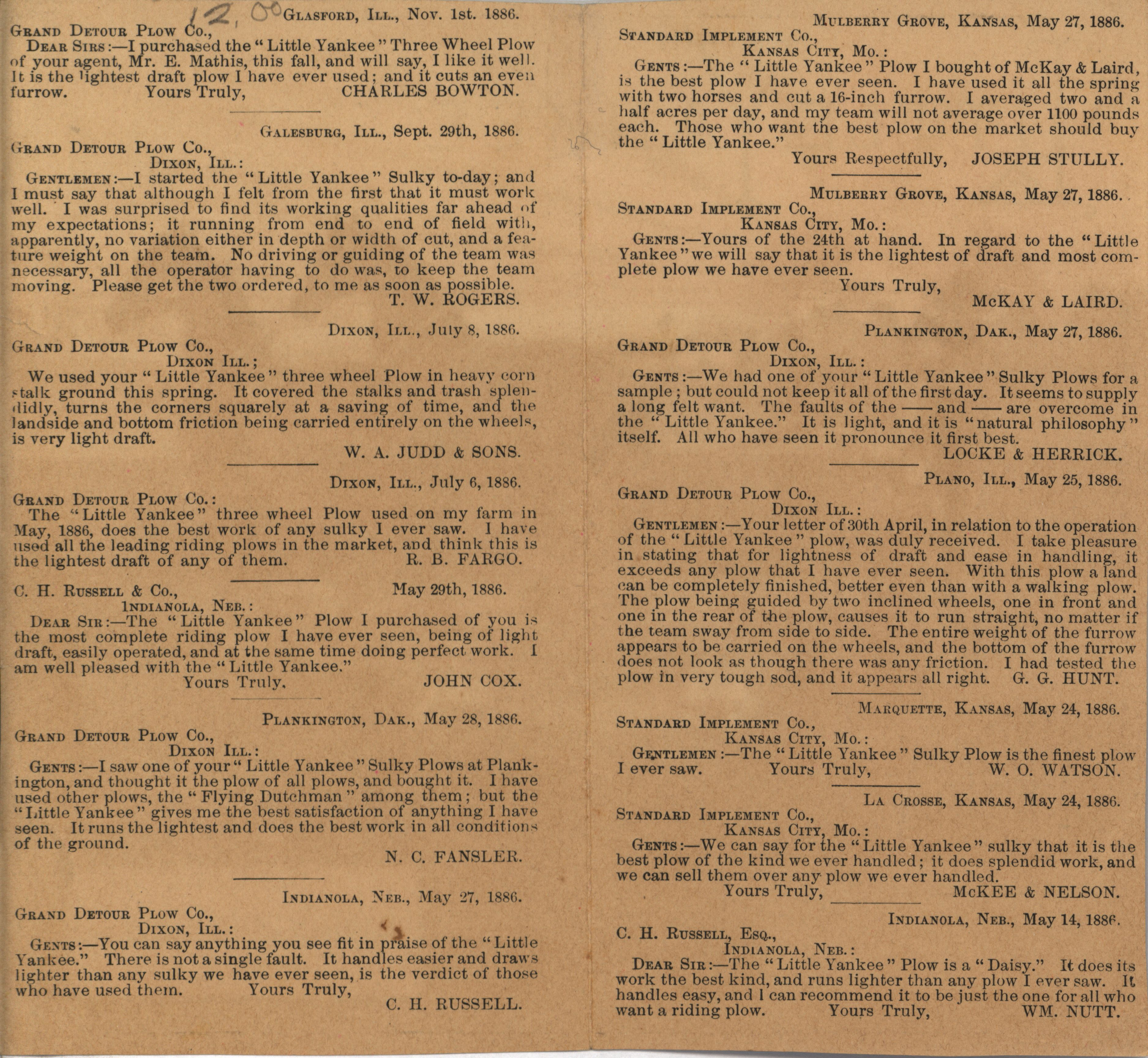 - "Grand Detour Plow Company Little Yankee Plow advertisement", Agricultural Machinery Literature Collection, Iowa State University Library Digital Collections
