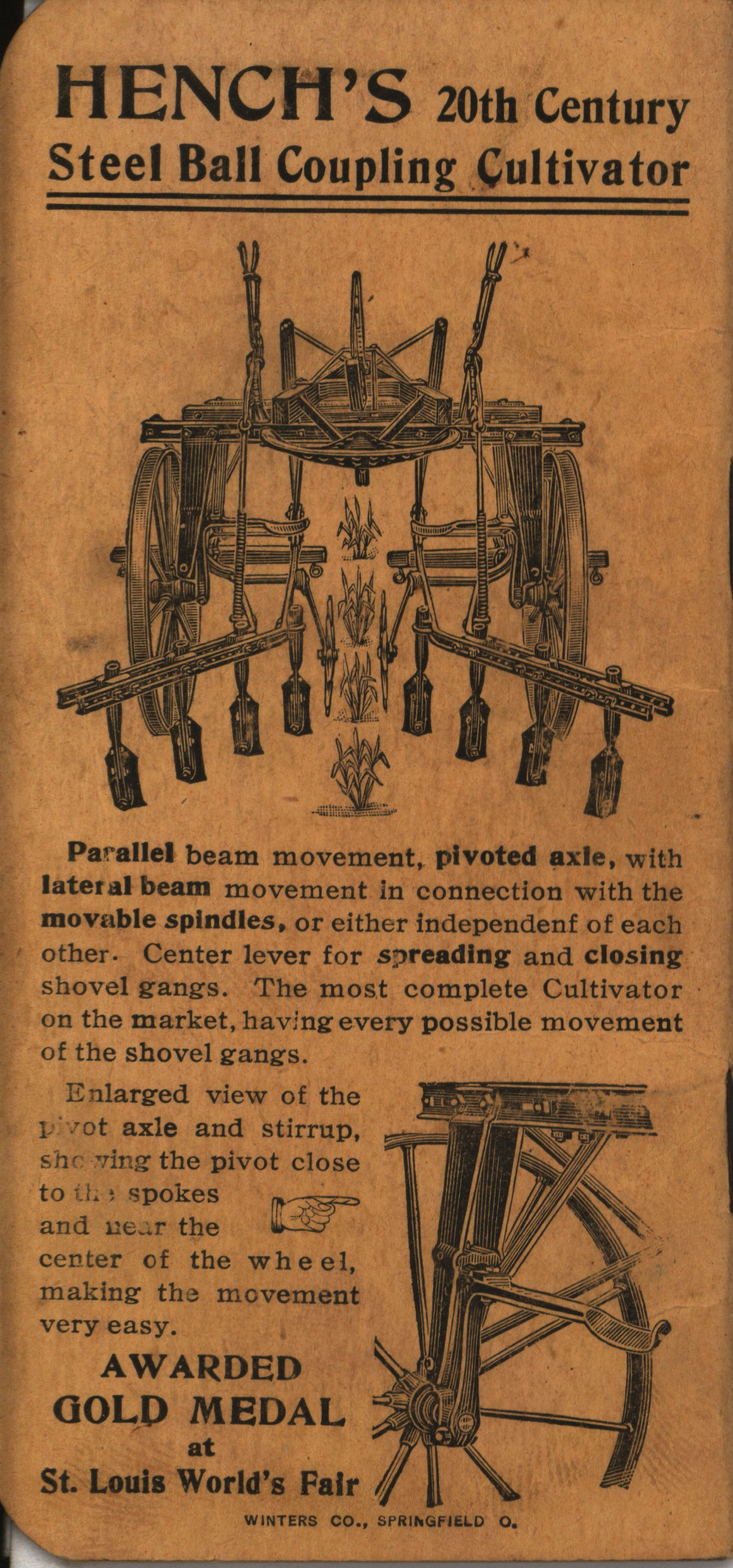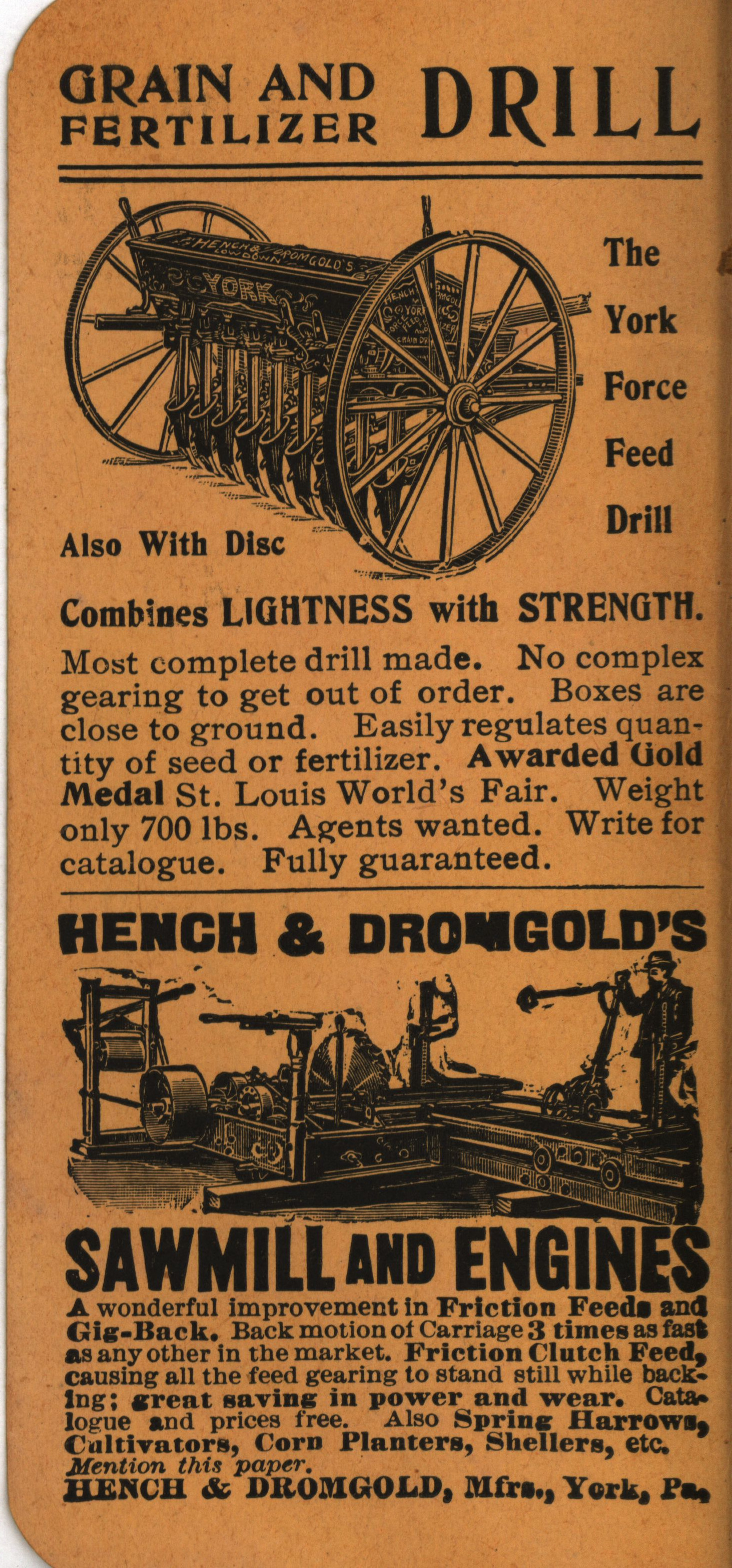 - Pocket book advertising Hench and Dromgold Company agricultural implements.