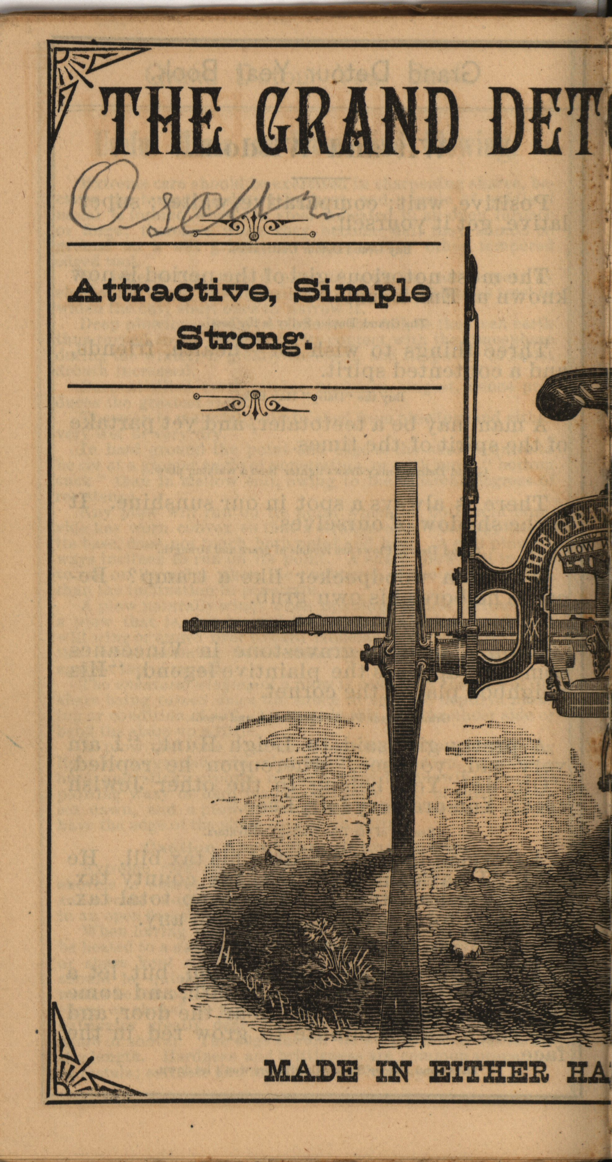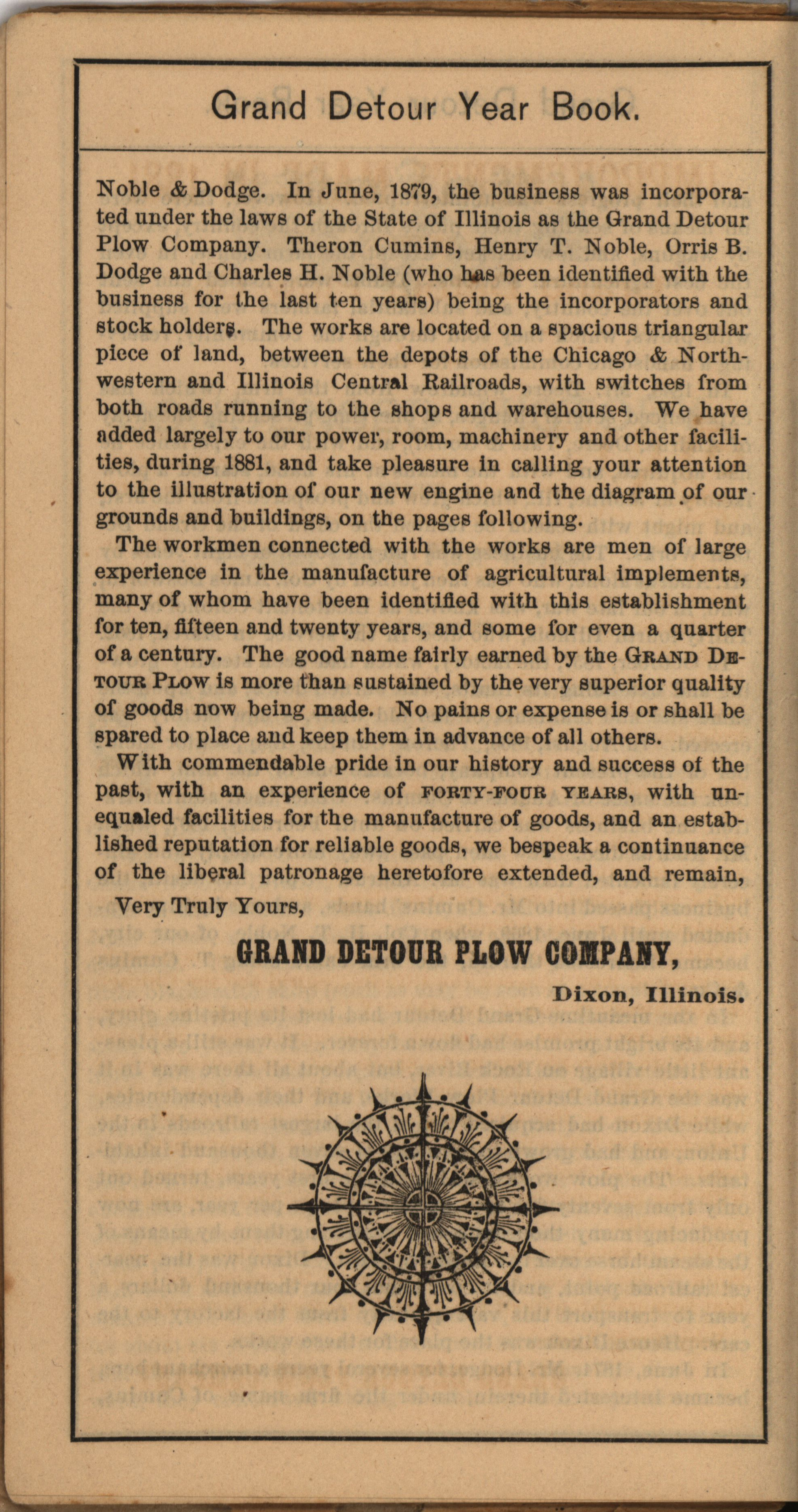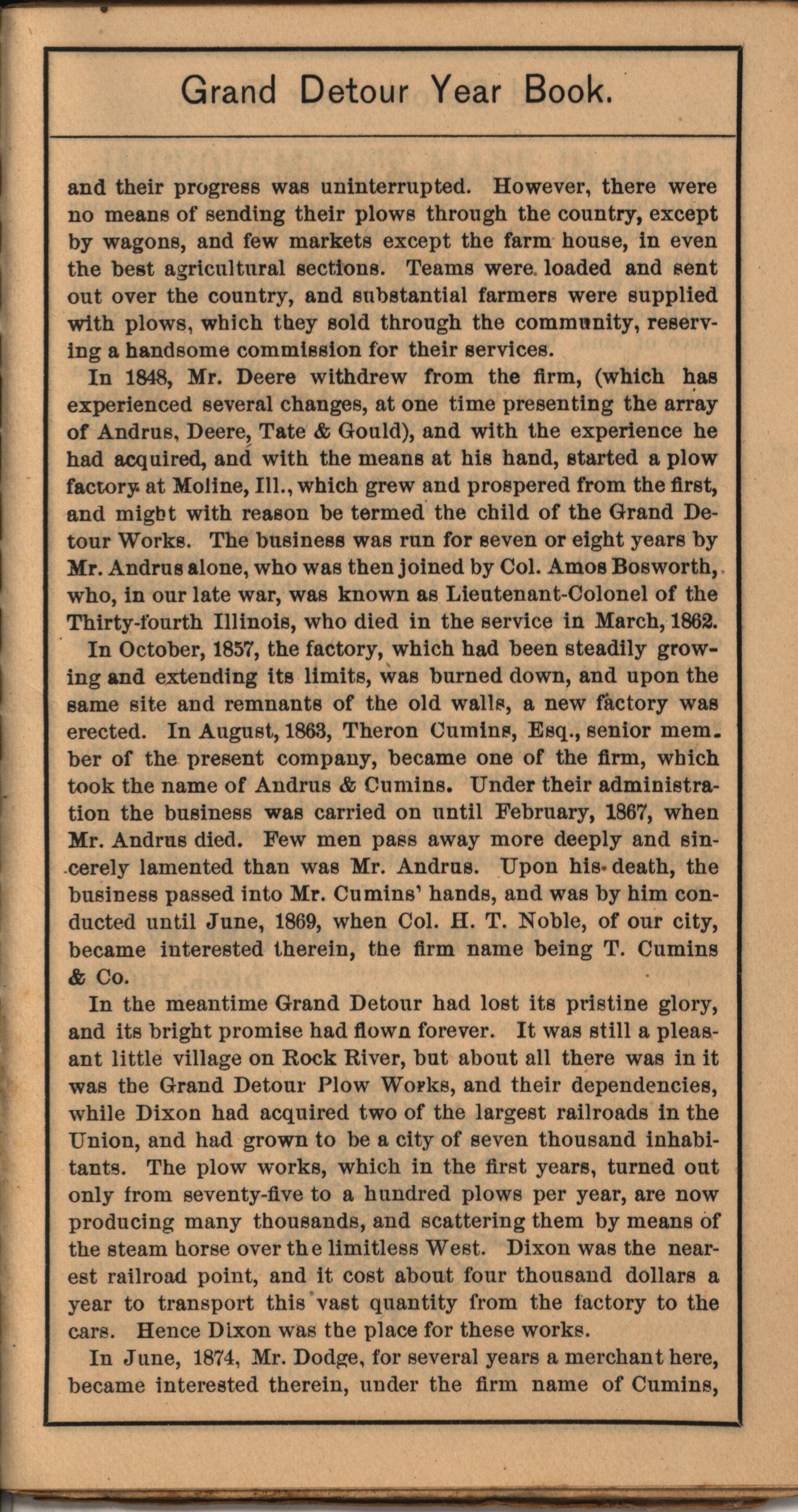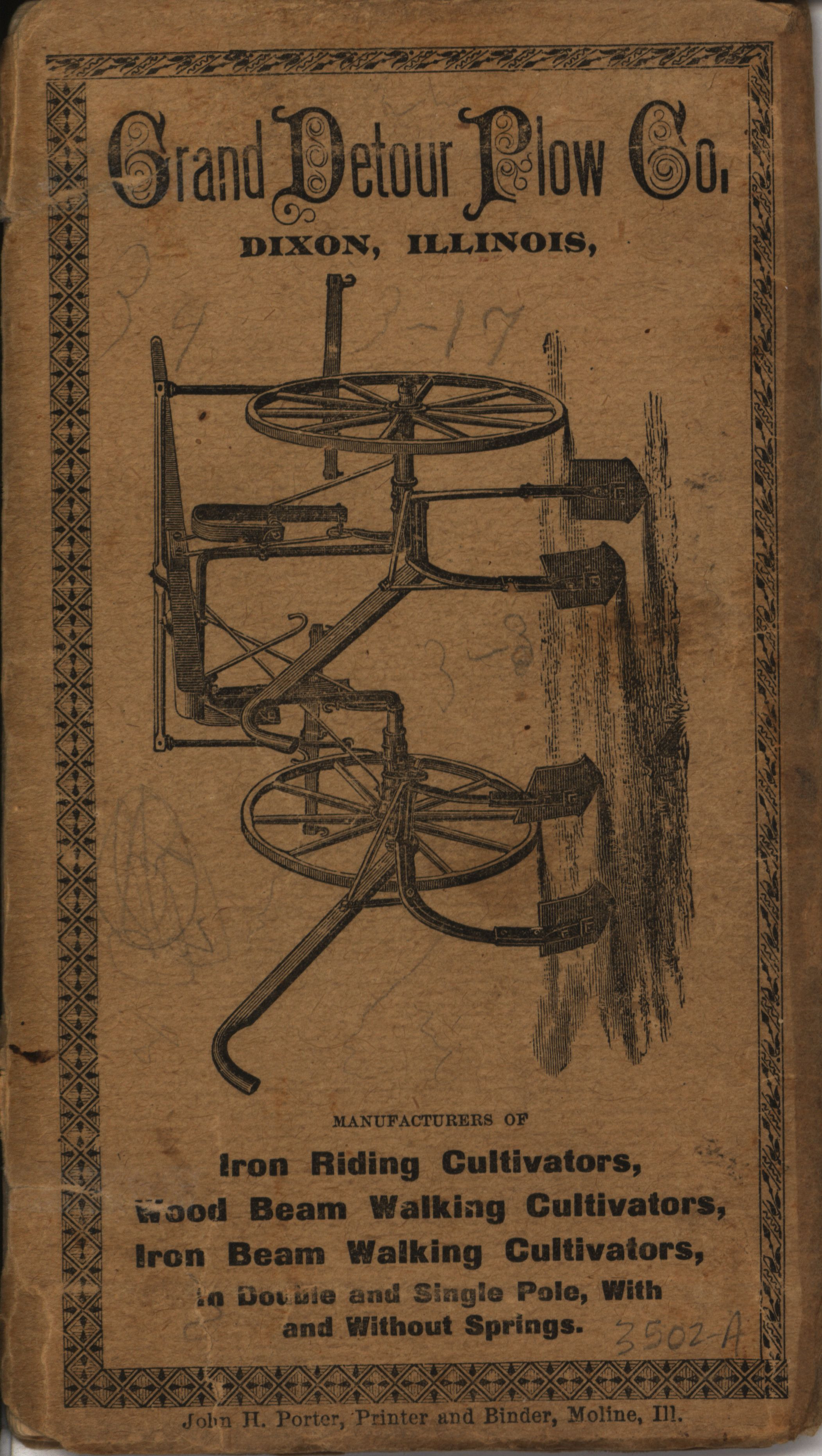 - Illustrated catalog describing the agricultural implements offered by Grand Detour Plow Company in 1882.