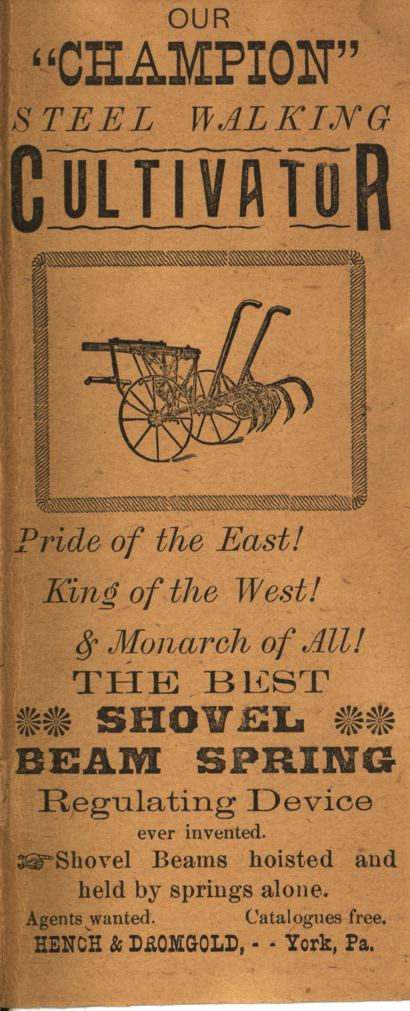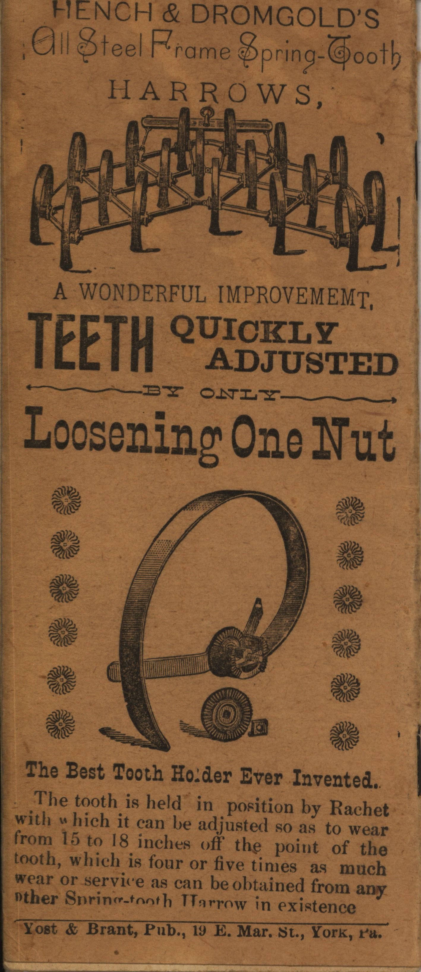 - "Hench and Dromgold Spring Tooth Harrows pocket book", Agricultural Machinery Literature Collection, Iowa State University Library Digital Collections