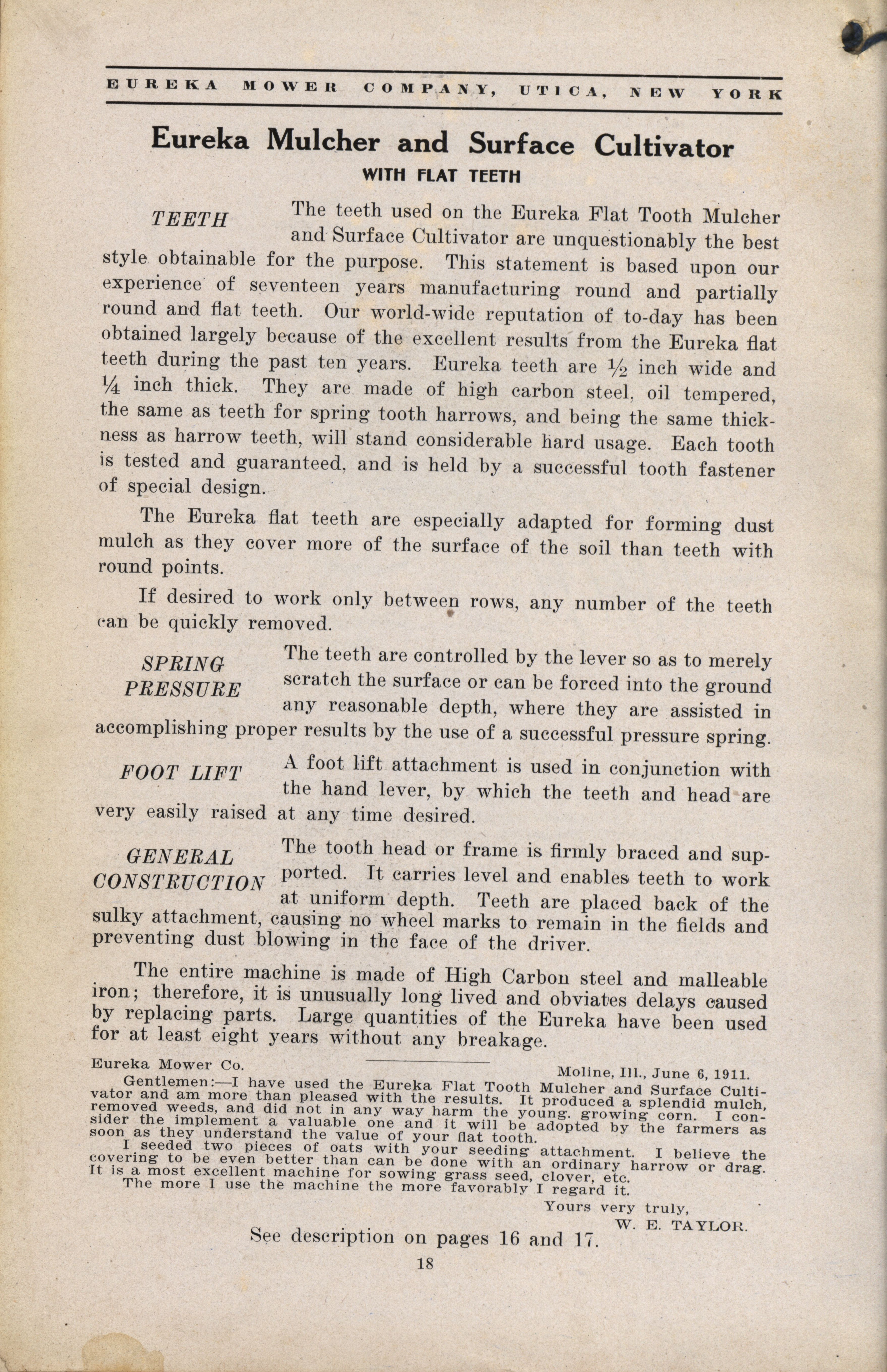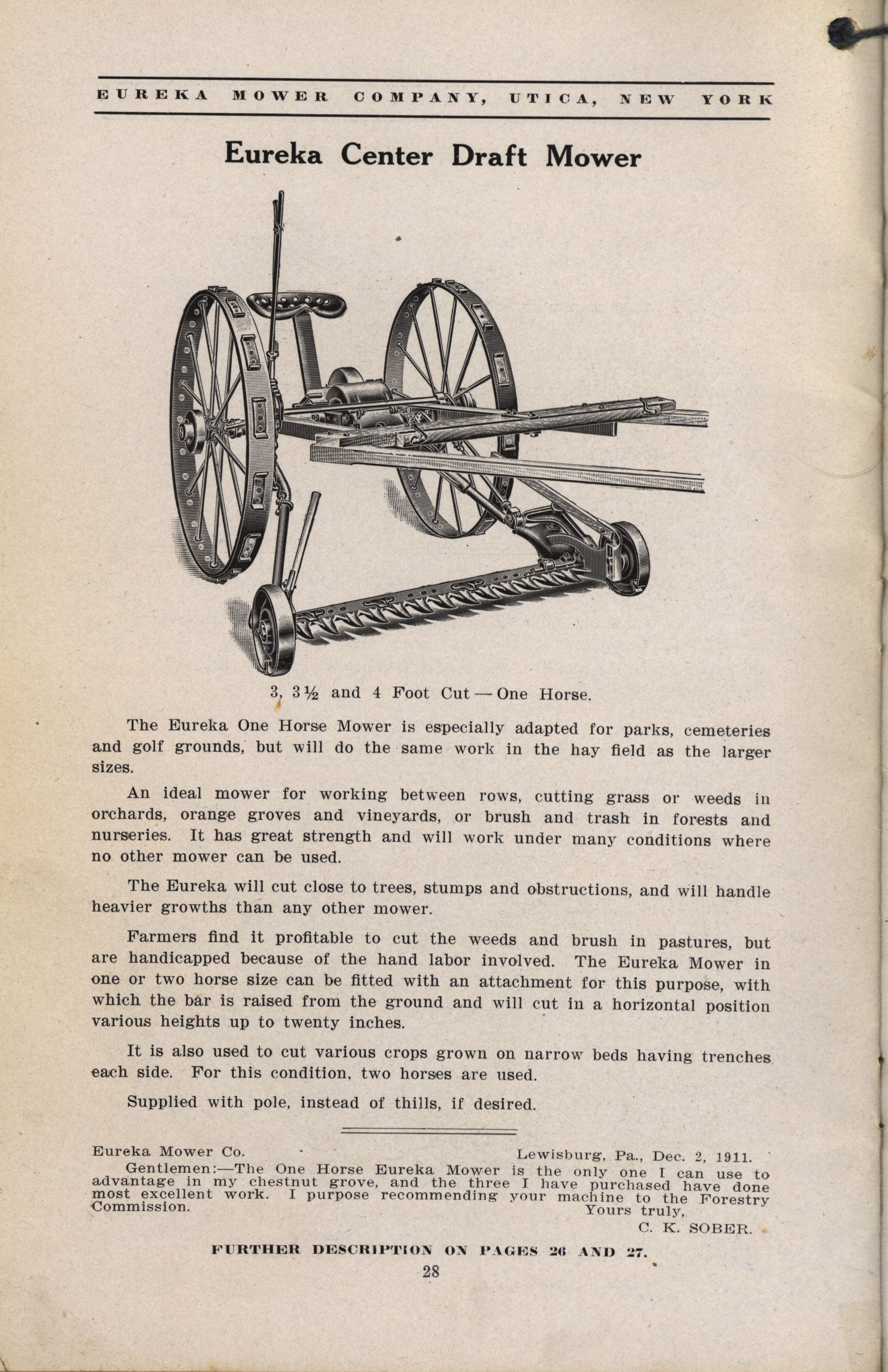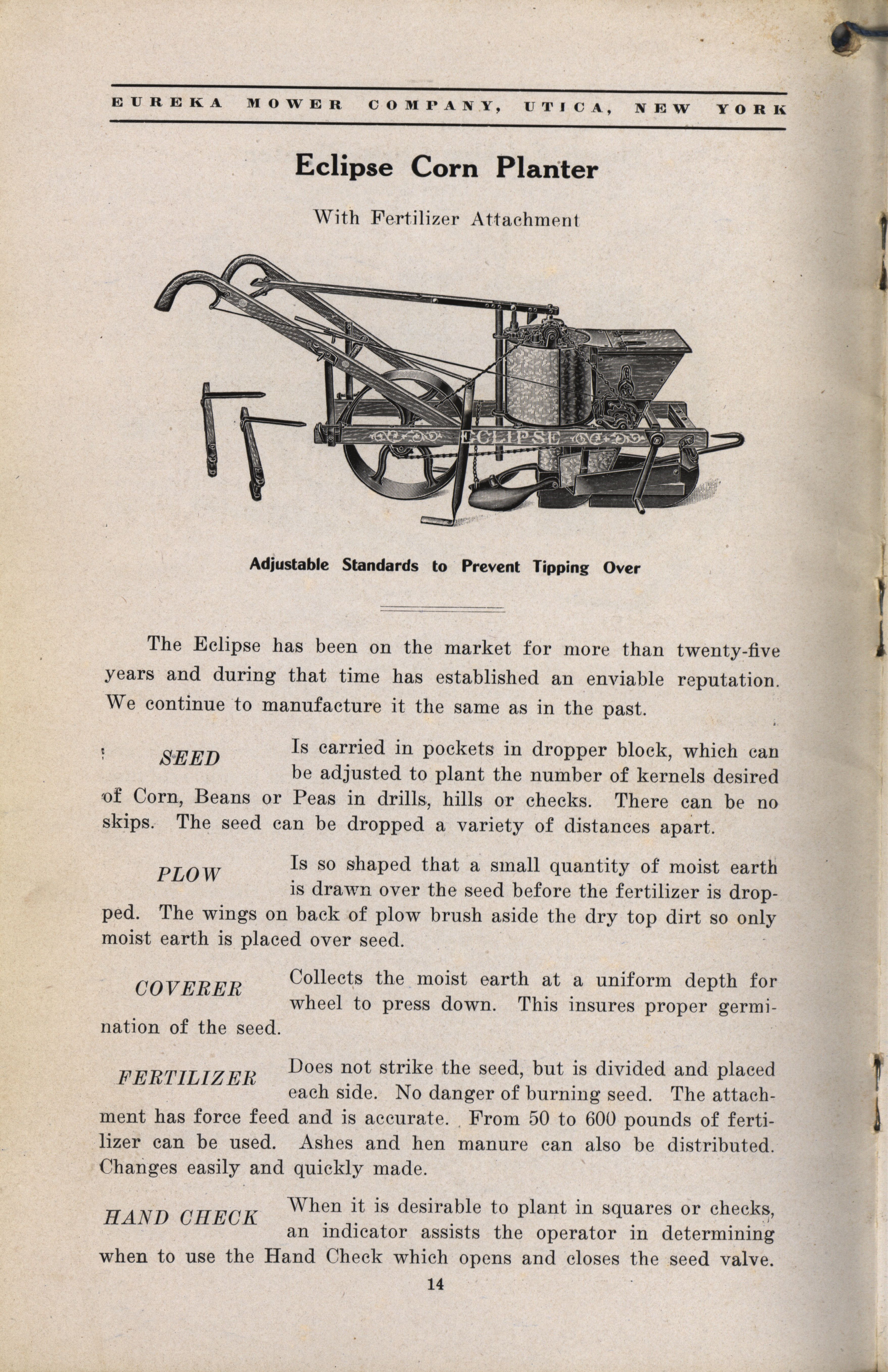 Eureka Mower Company catalog Item Info