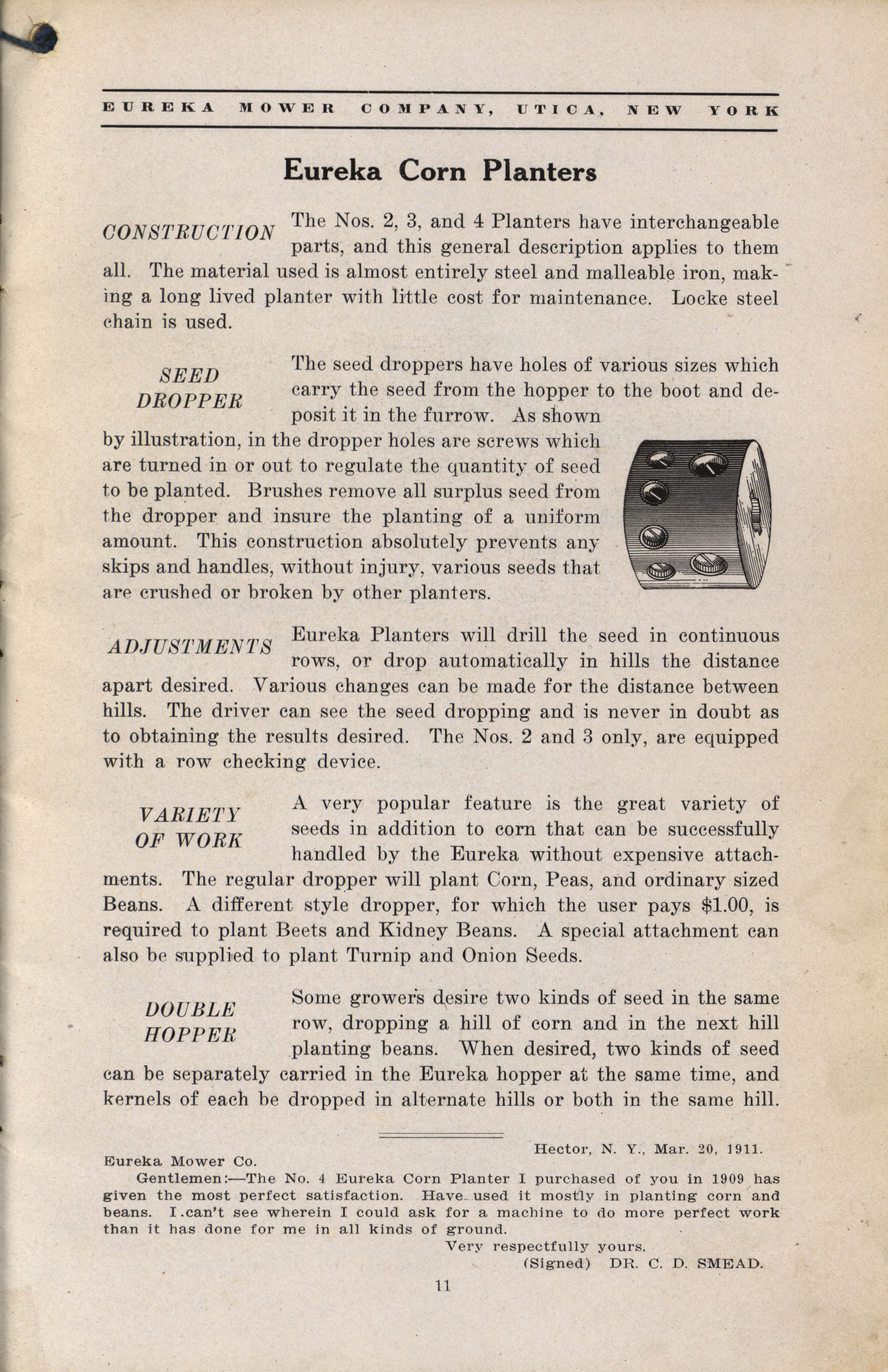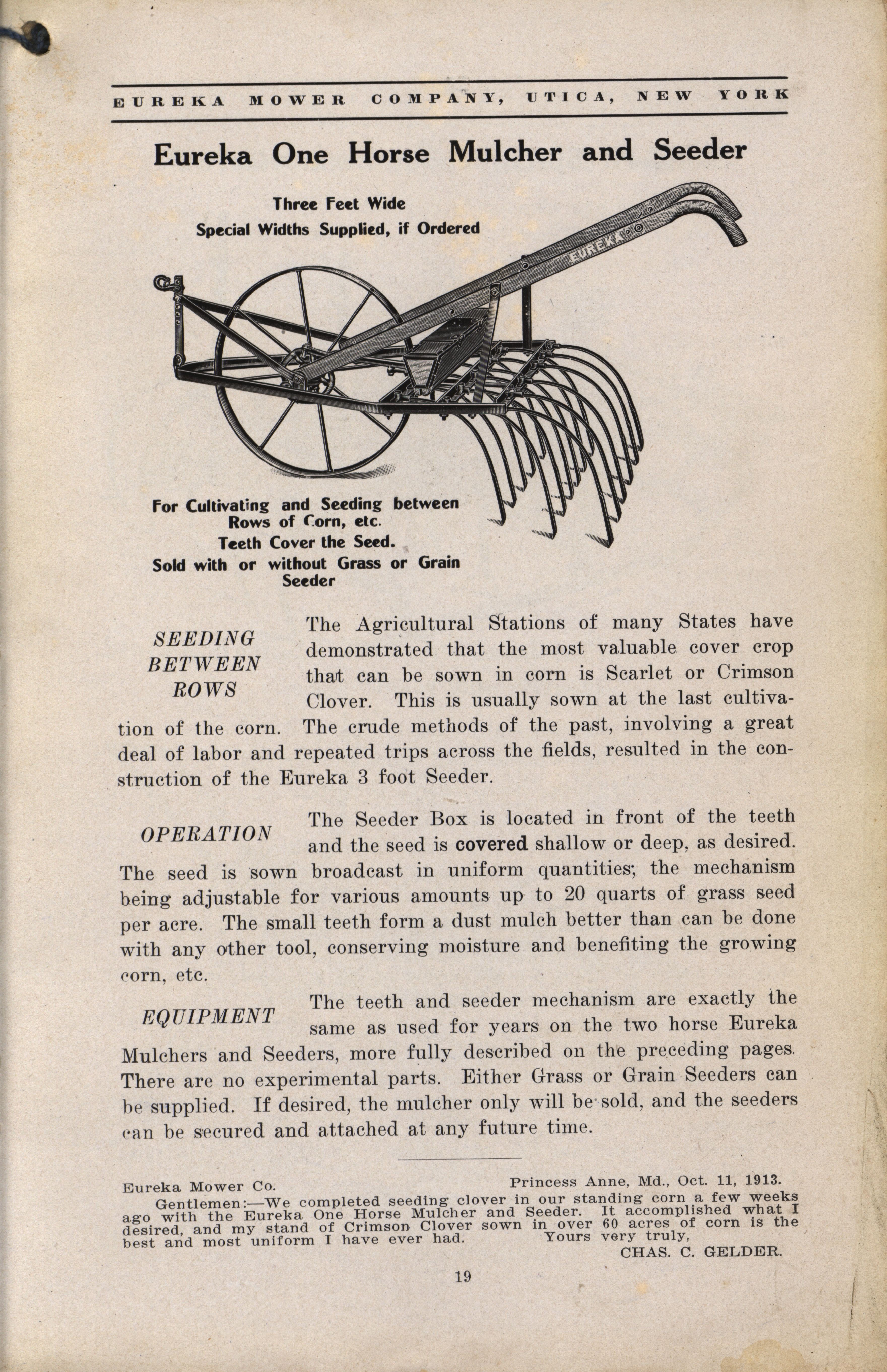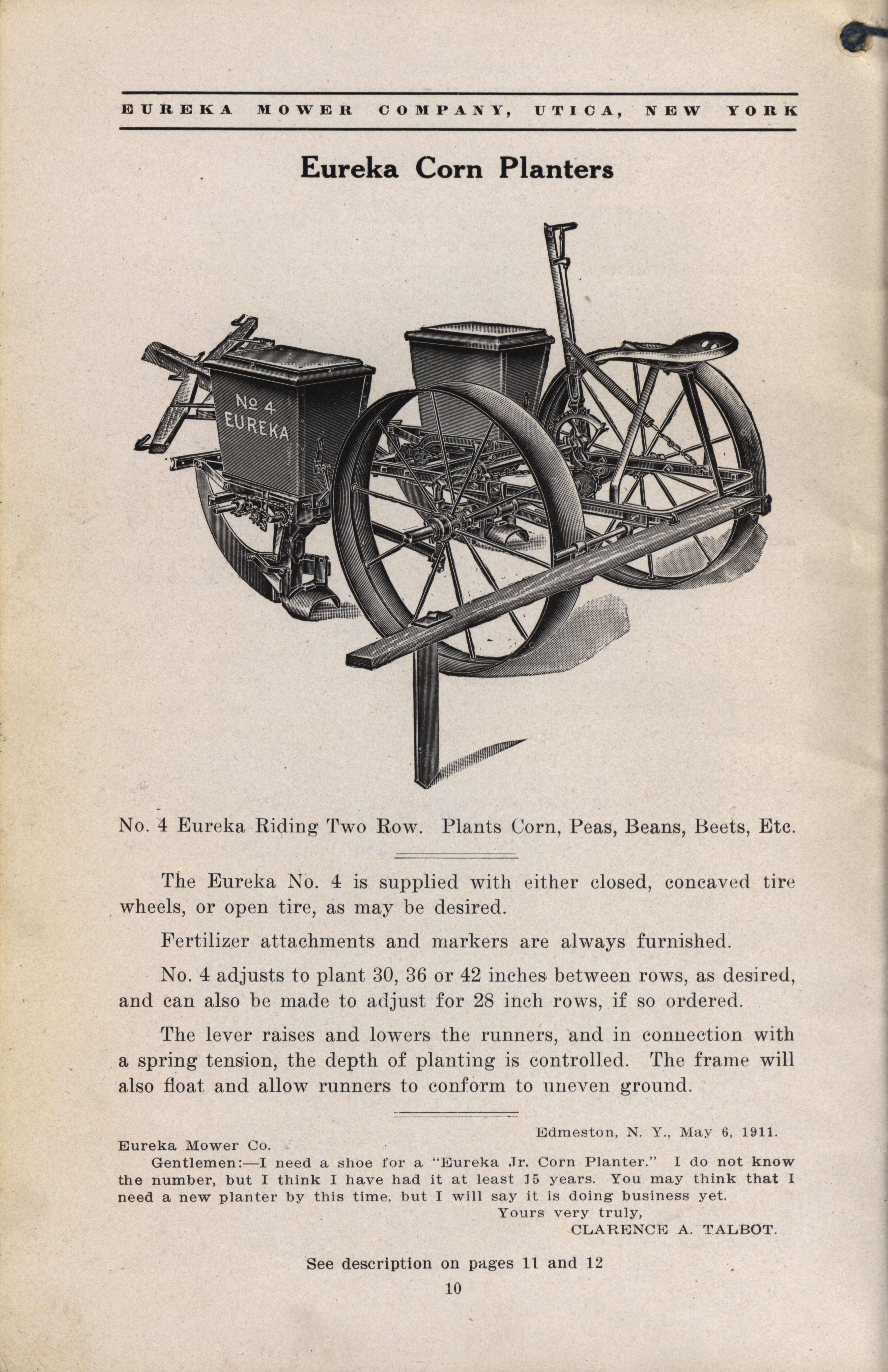 Eureka Mower Company catalog Item Info