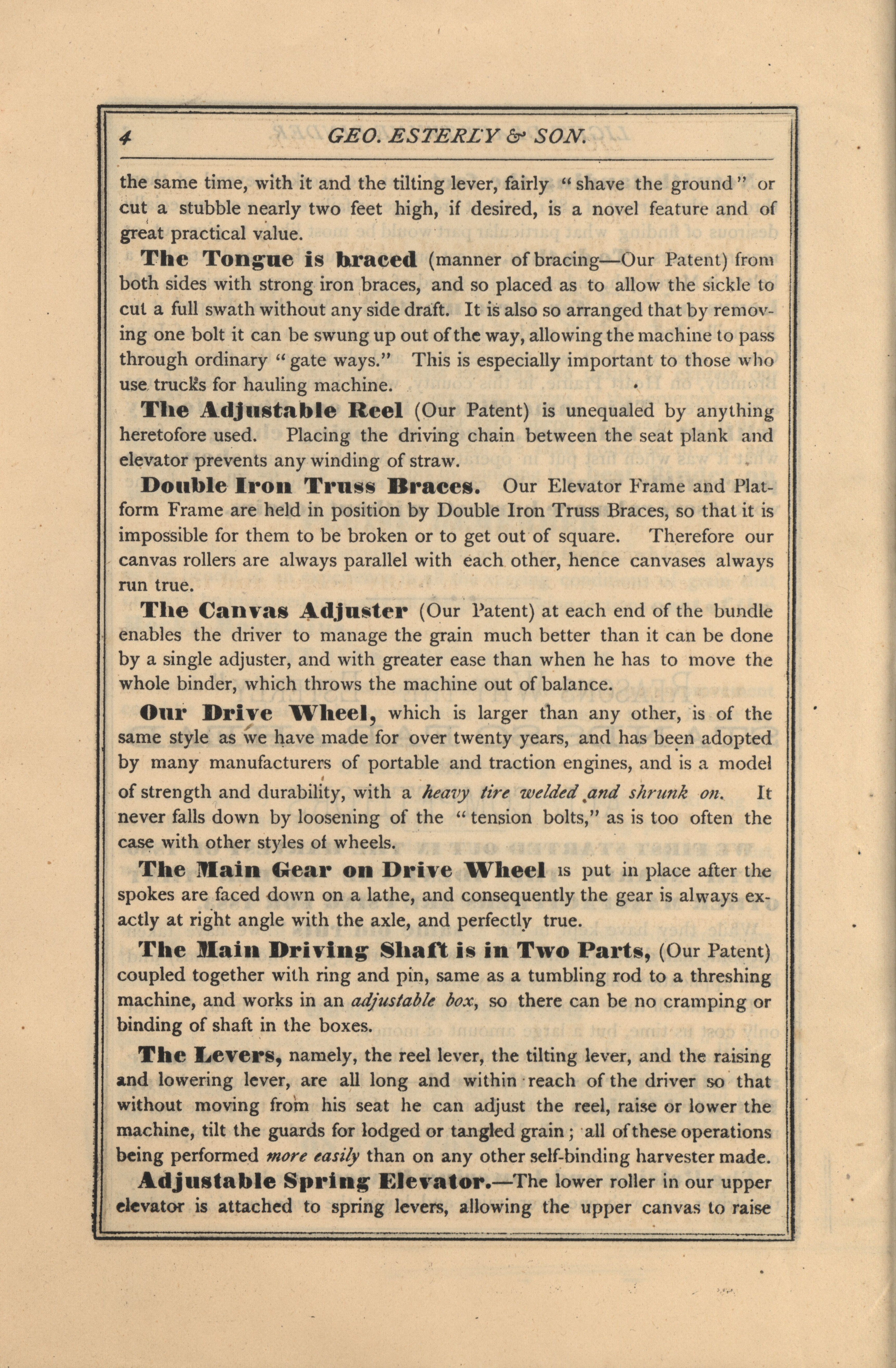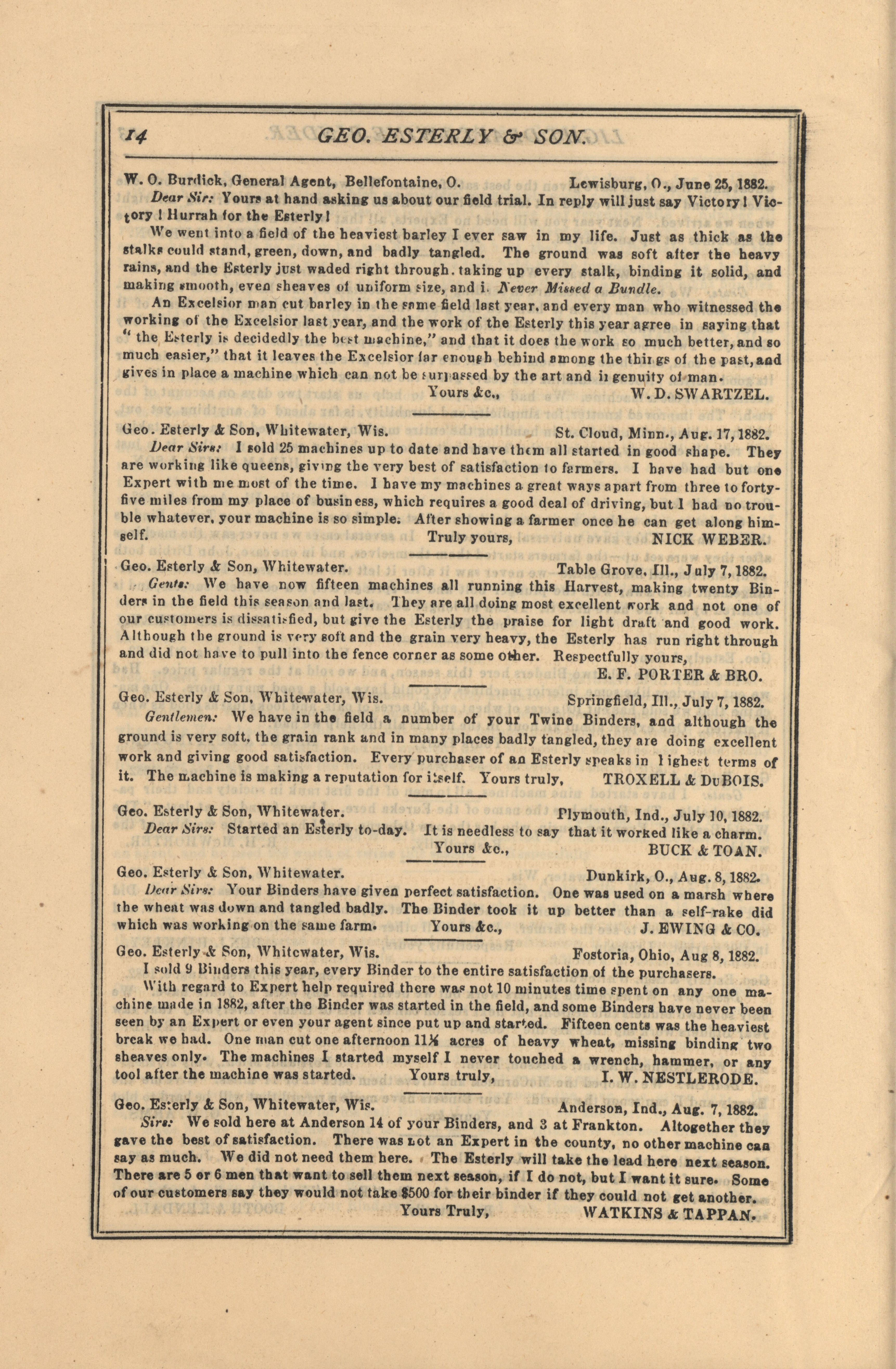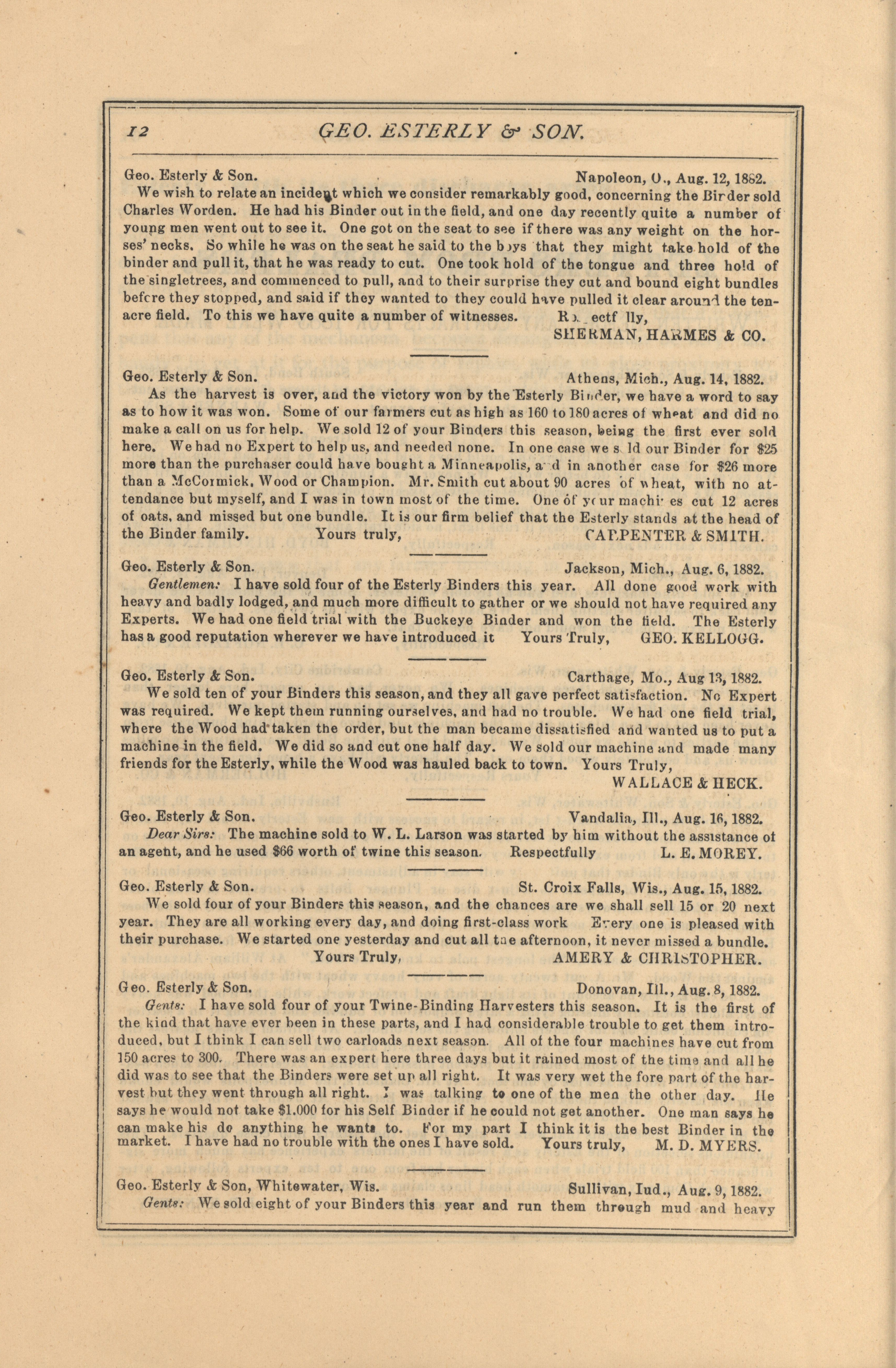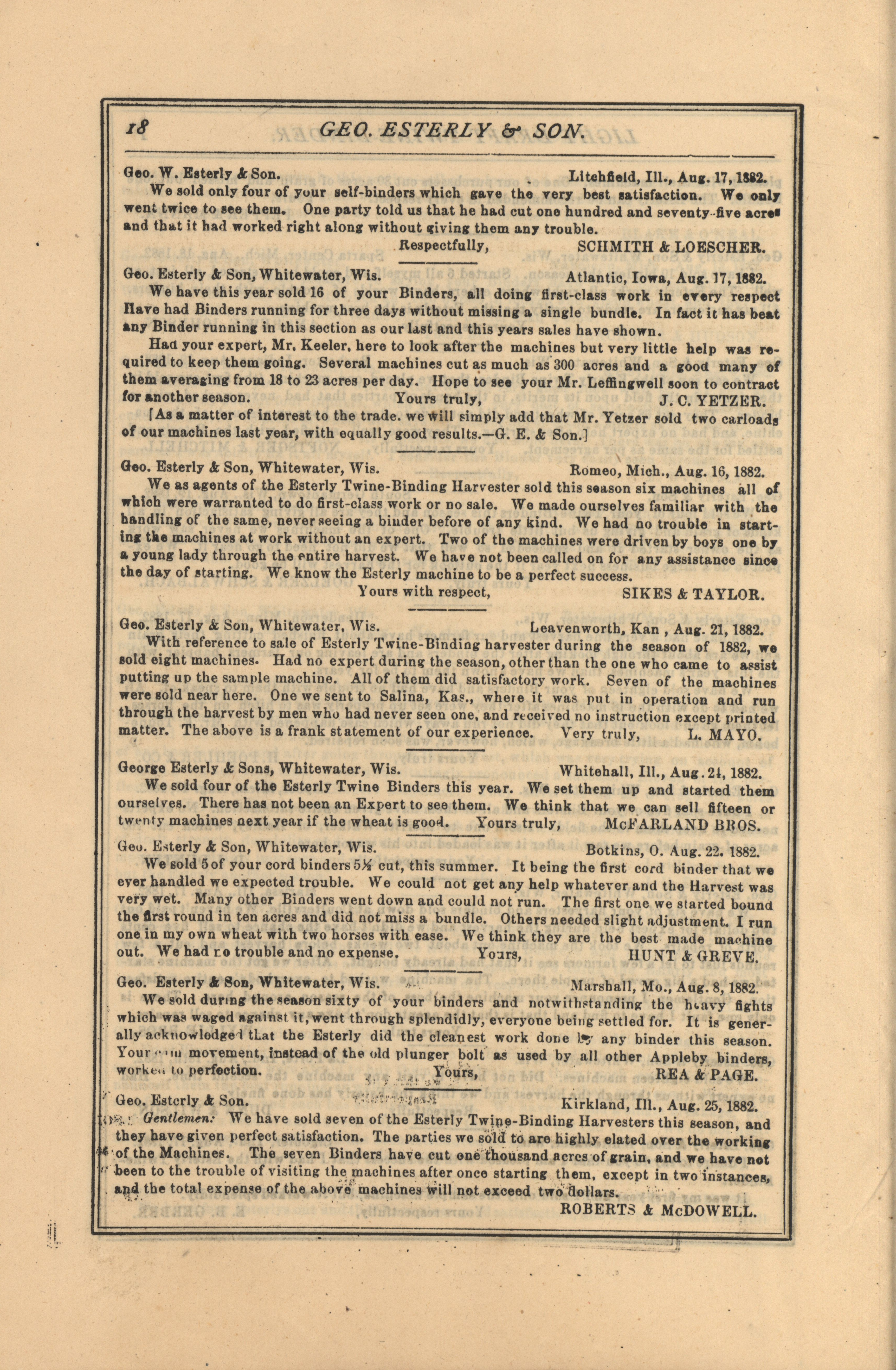 - "Geo. Esterly and Son 1883 catalog", Agricultural Machinery Literature Collection, Iowa State University Library Digital Collections