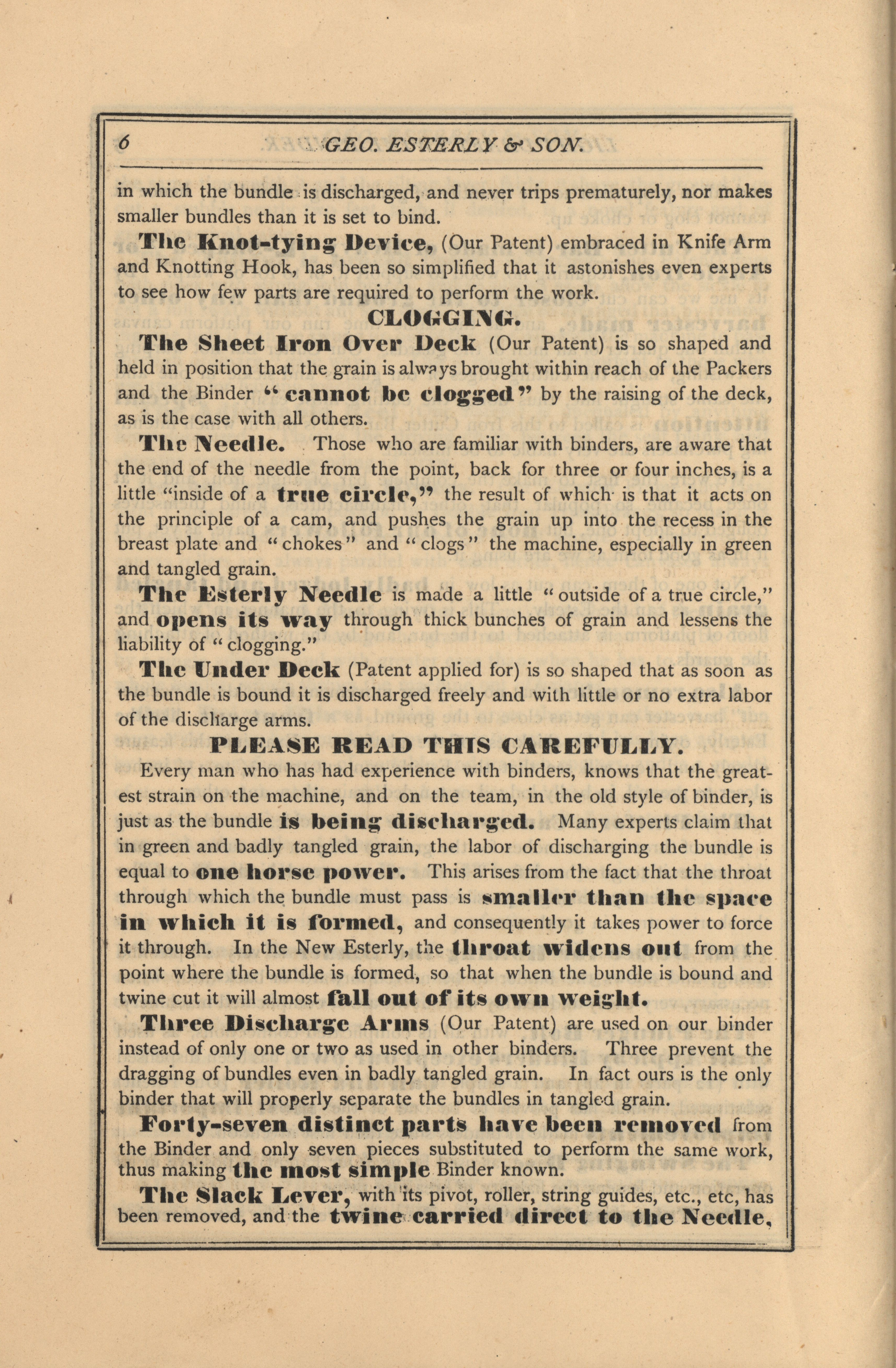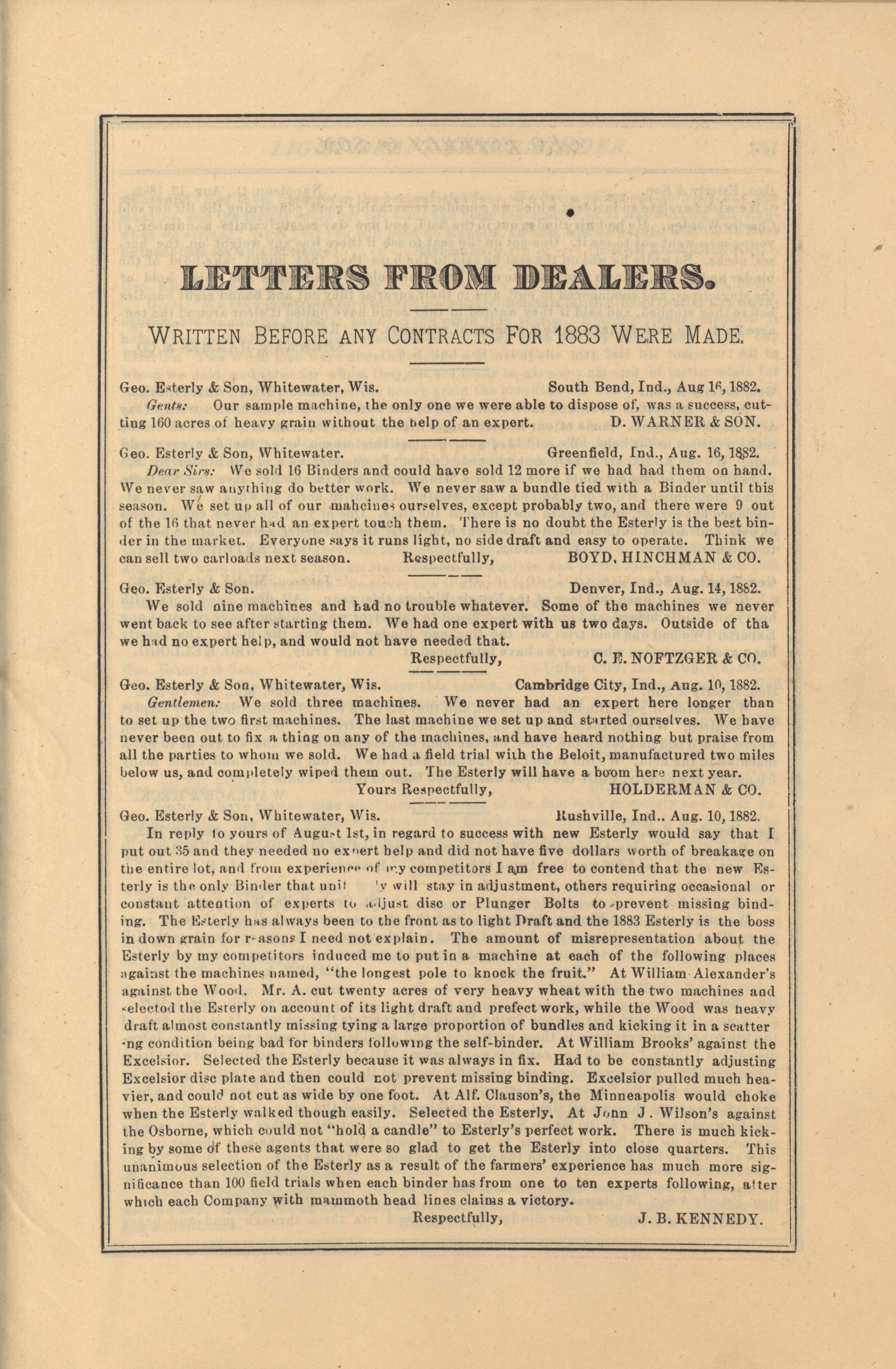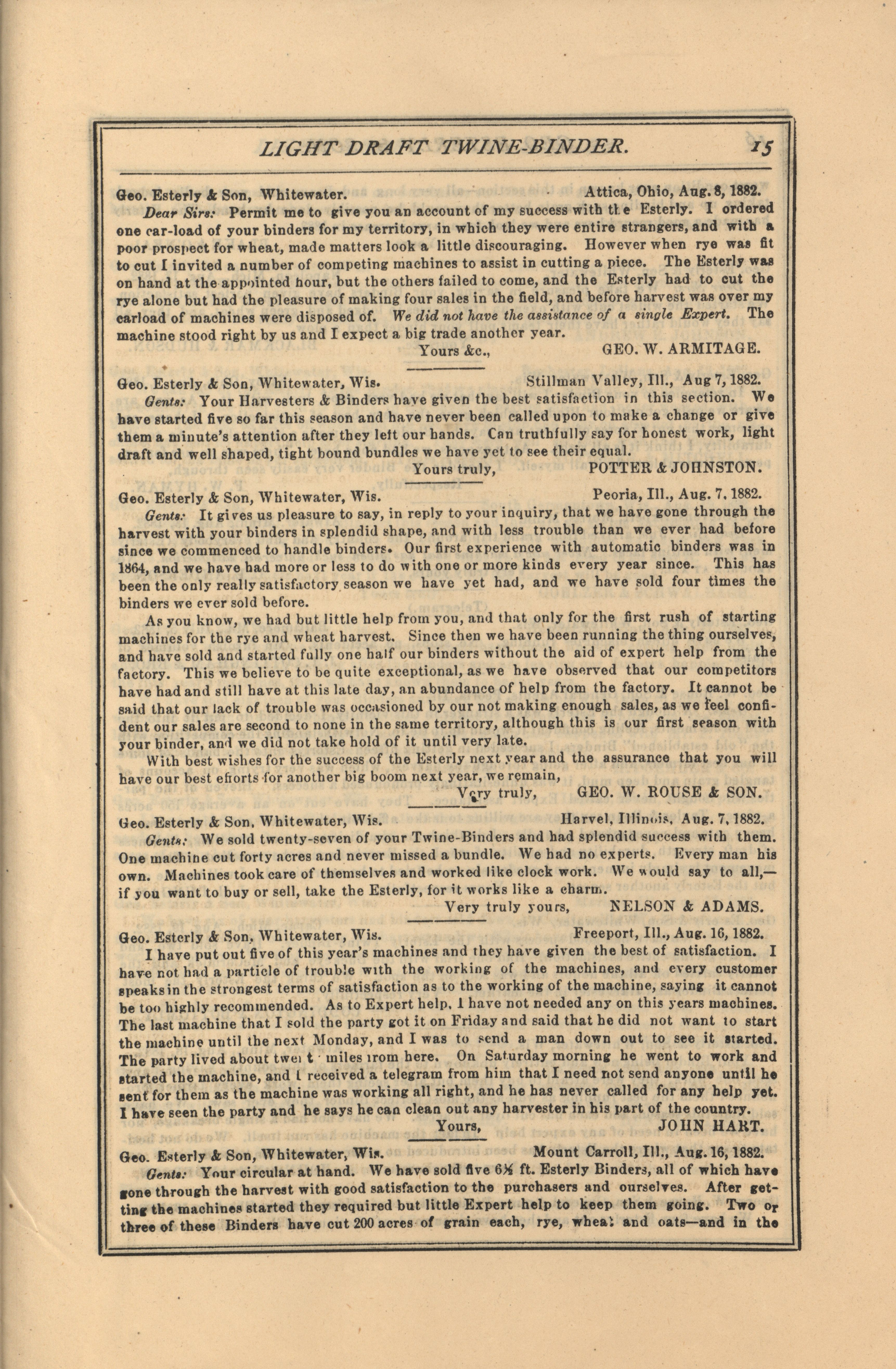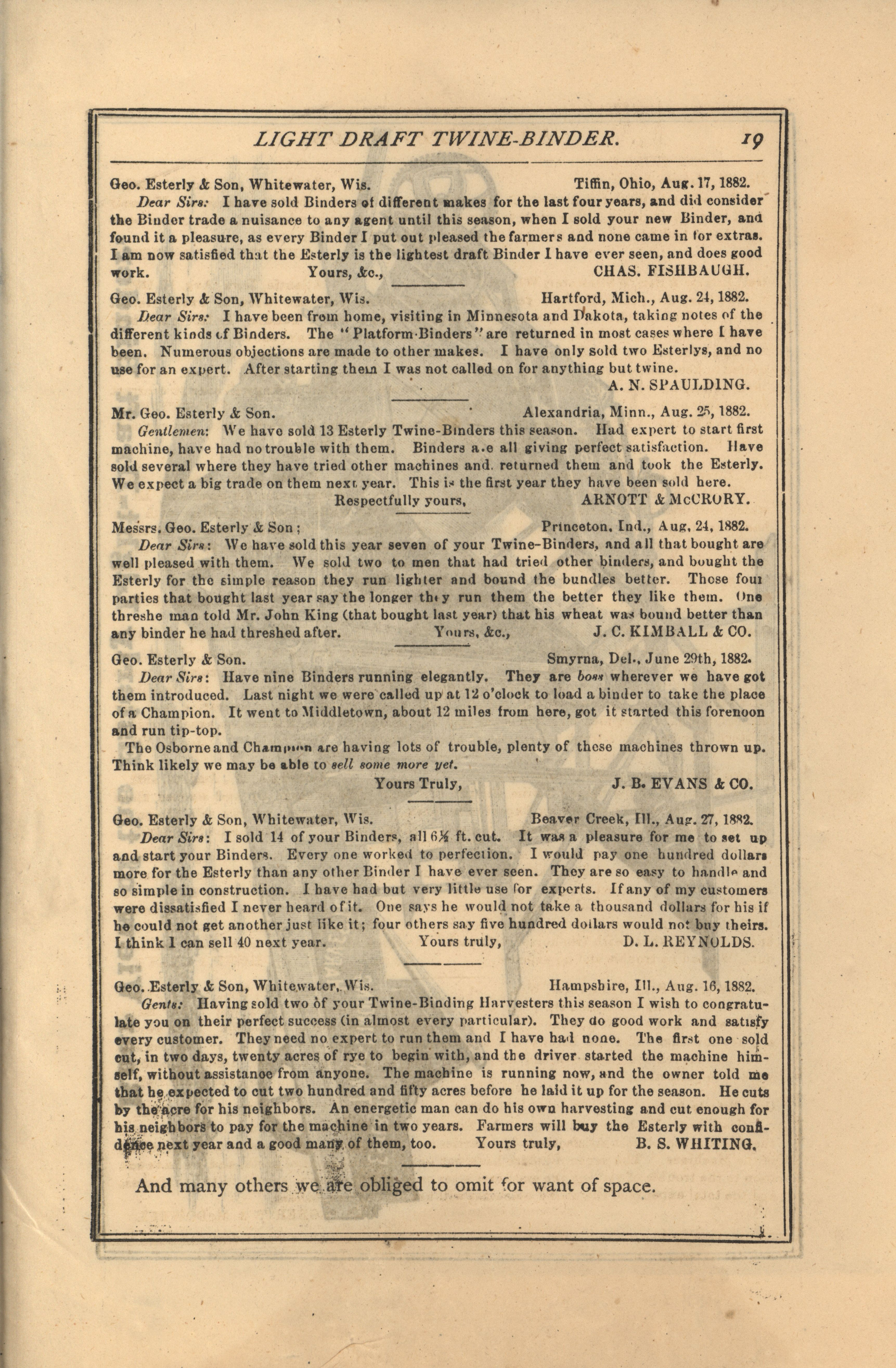 - "Geo. Esterly and Son 1883 catalog", Agricultural Machinery Literature Collection, Iowa State University Library Digital Collections