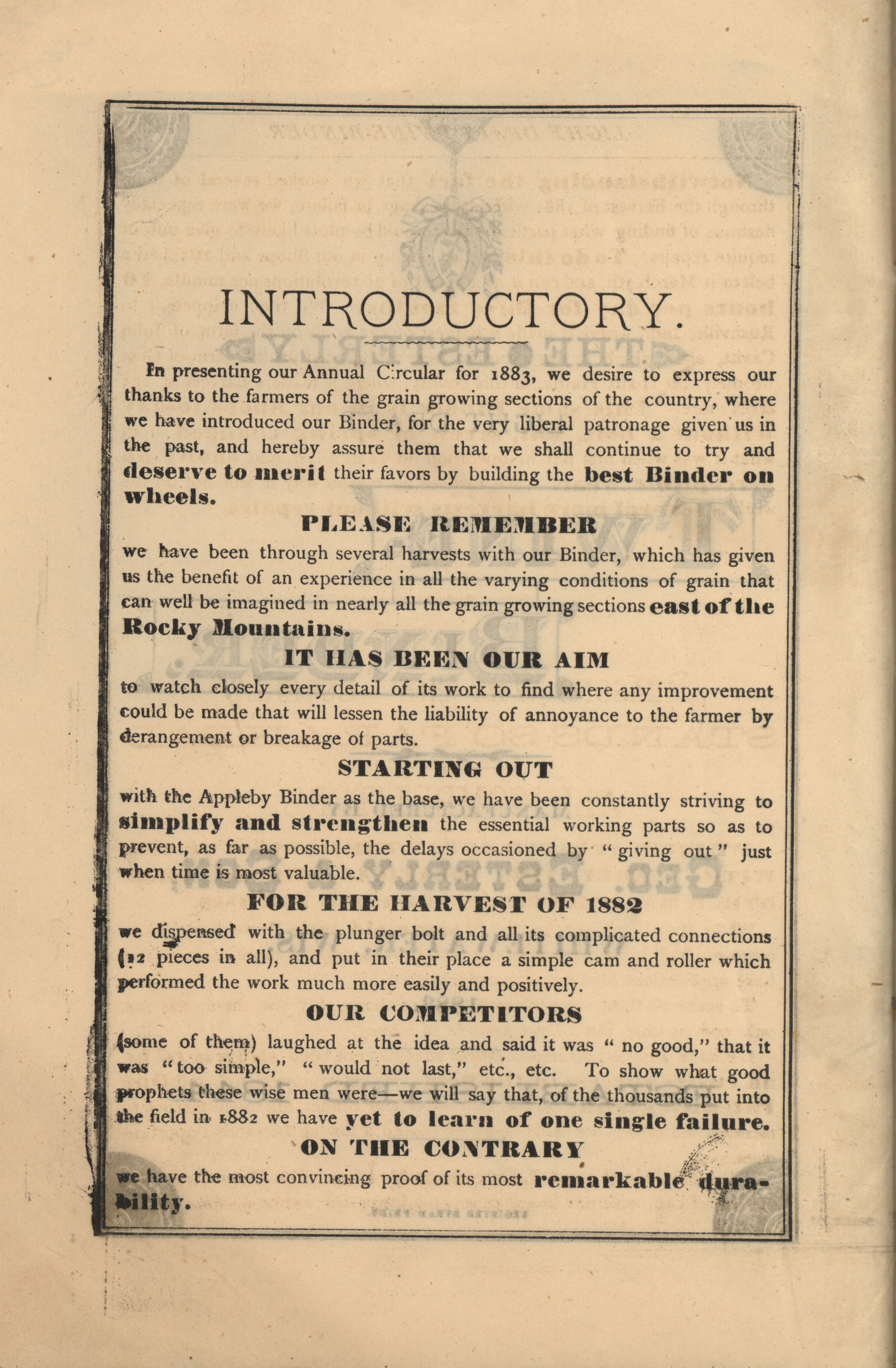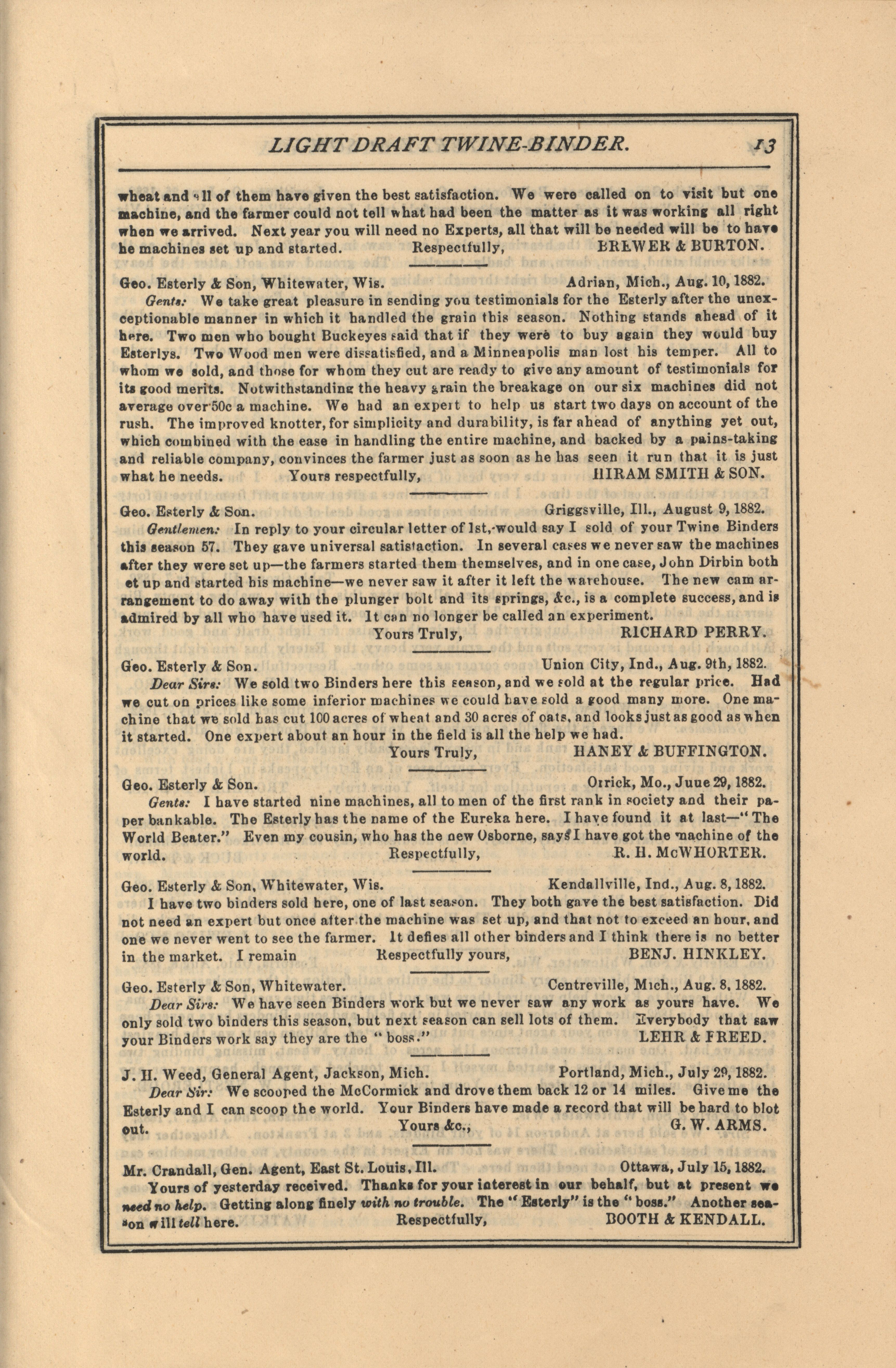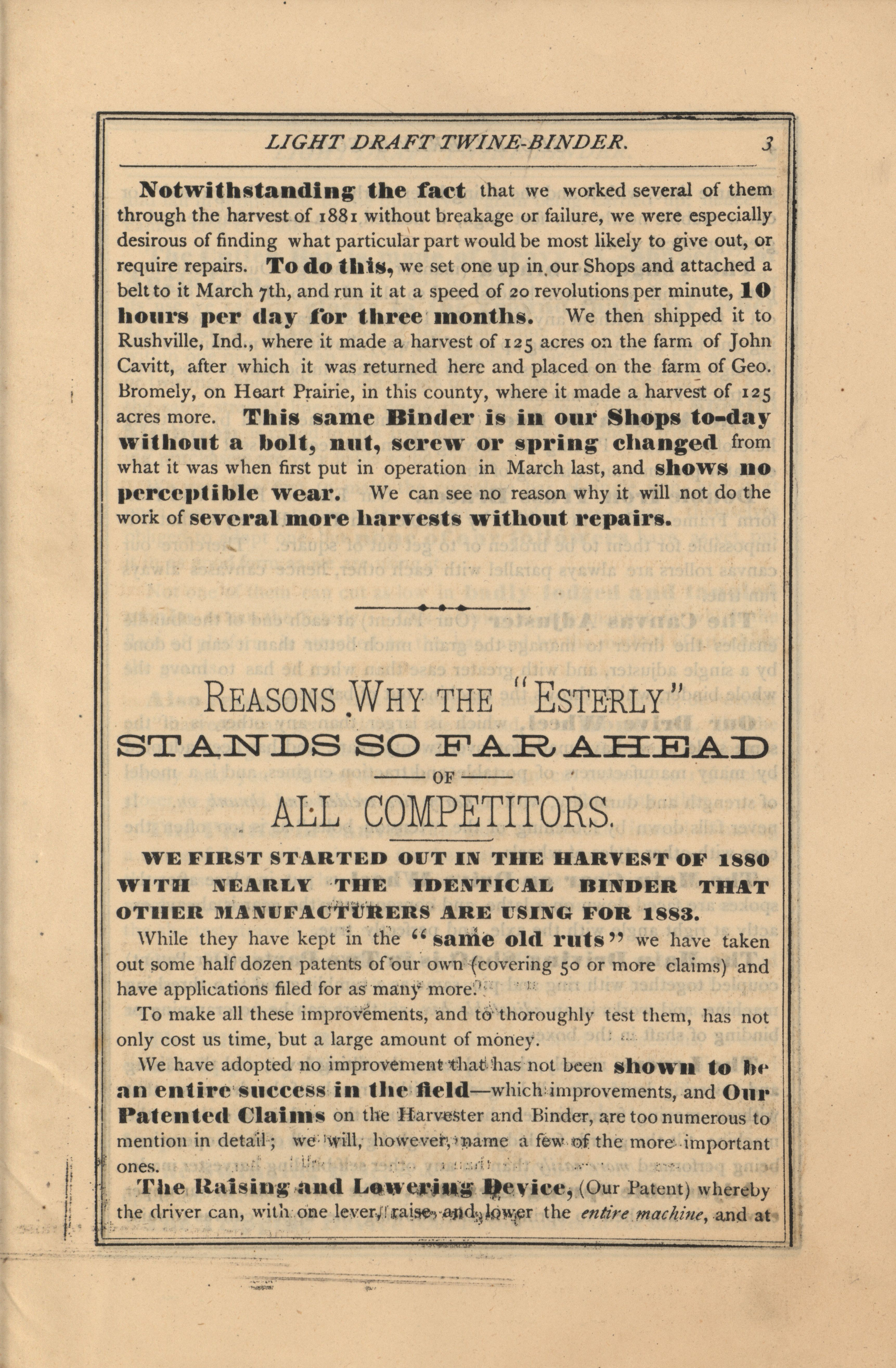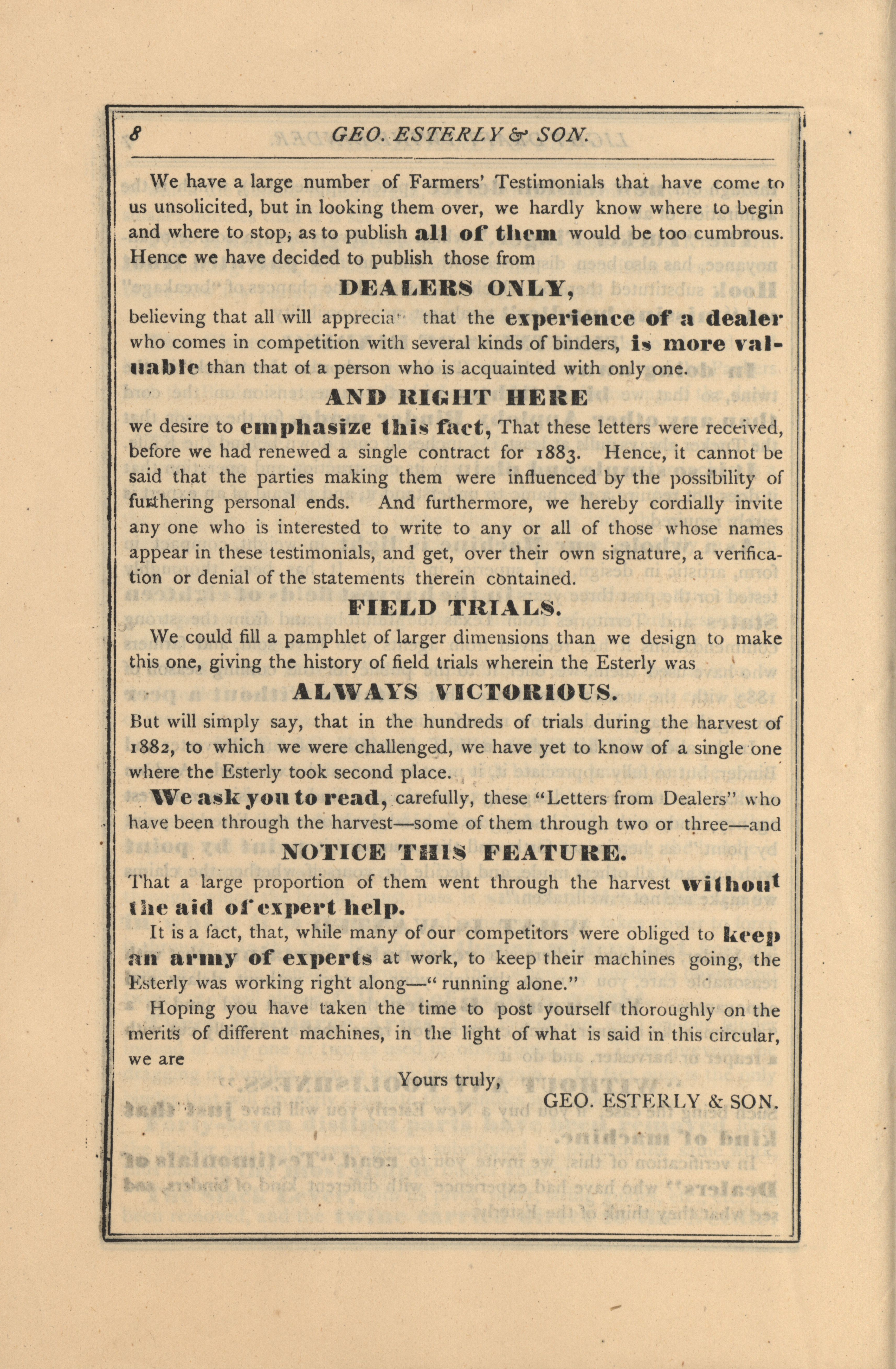 - "Geo. Esterly and Son 1883 catalog", Agricultural Machinery Literature Collection, Iowa State University Library Digital Collections