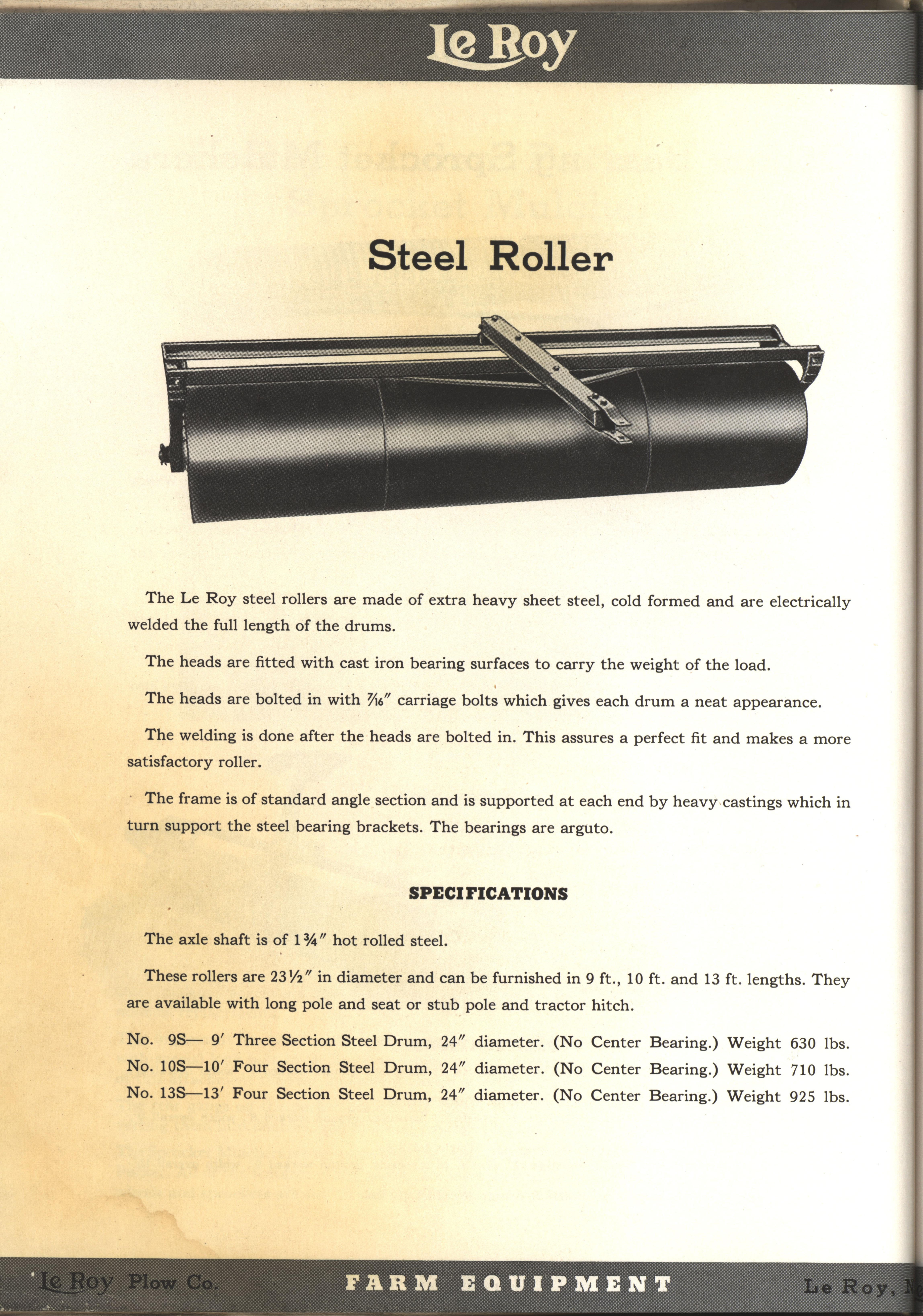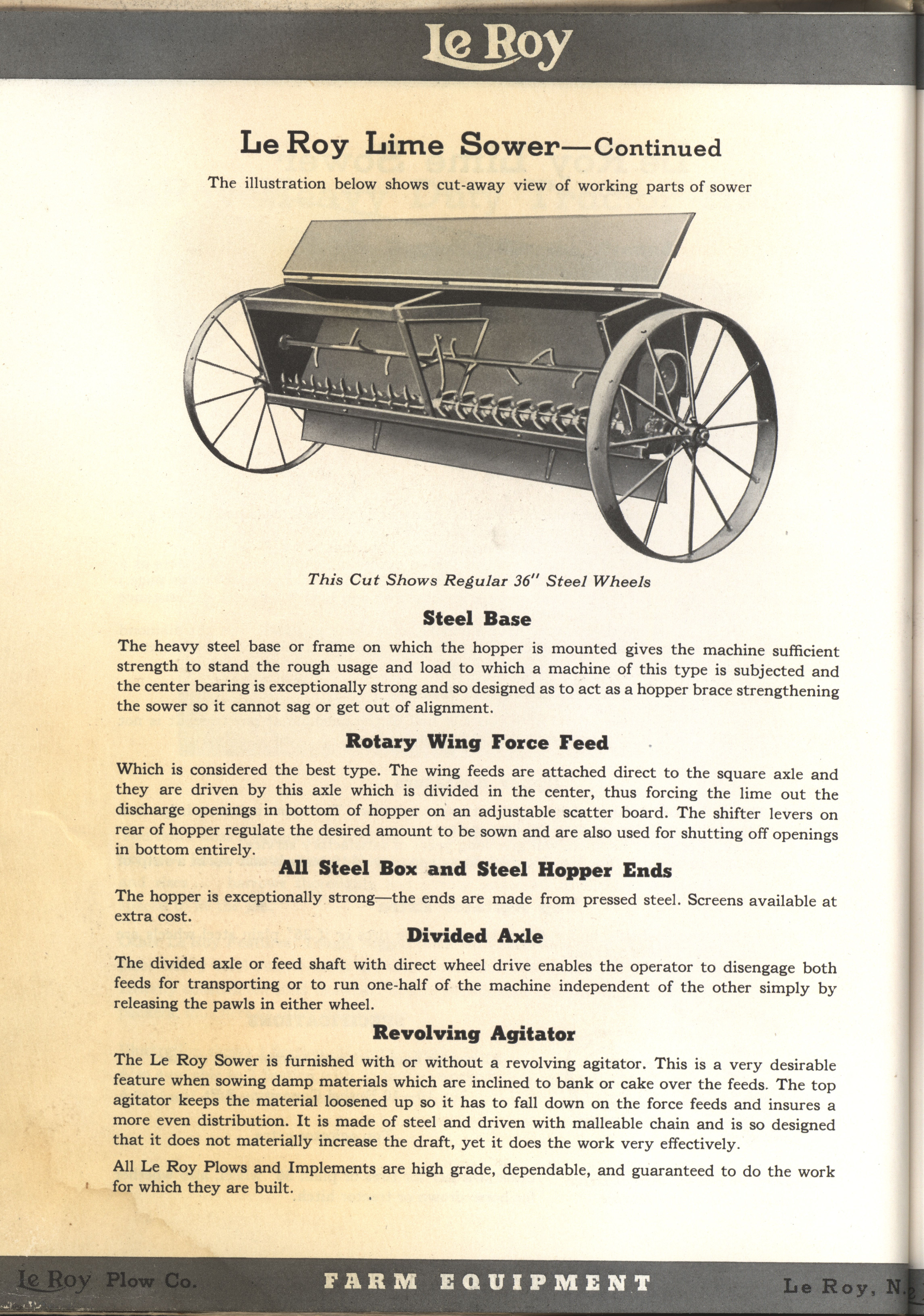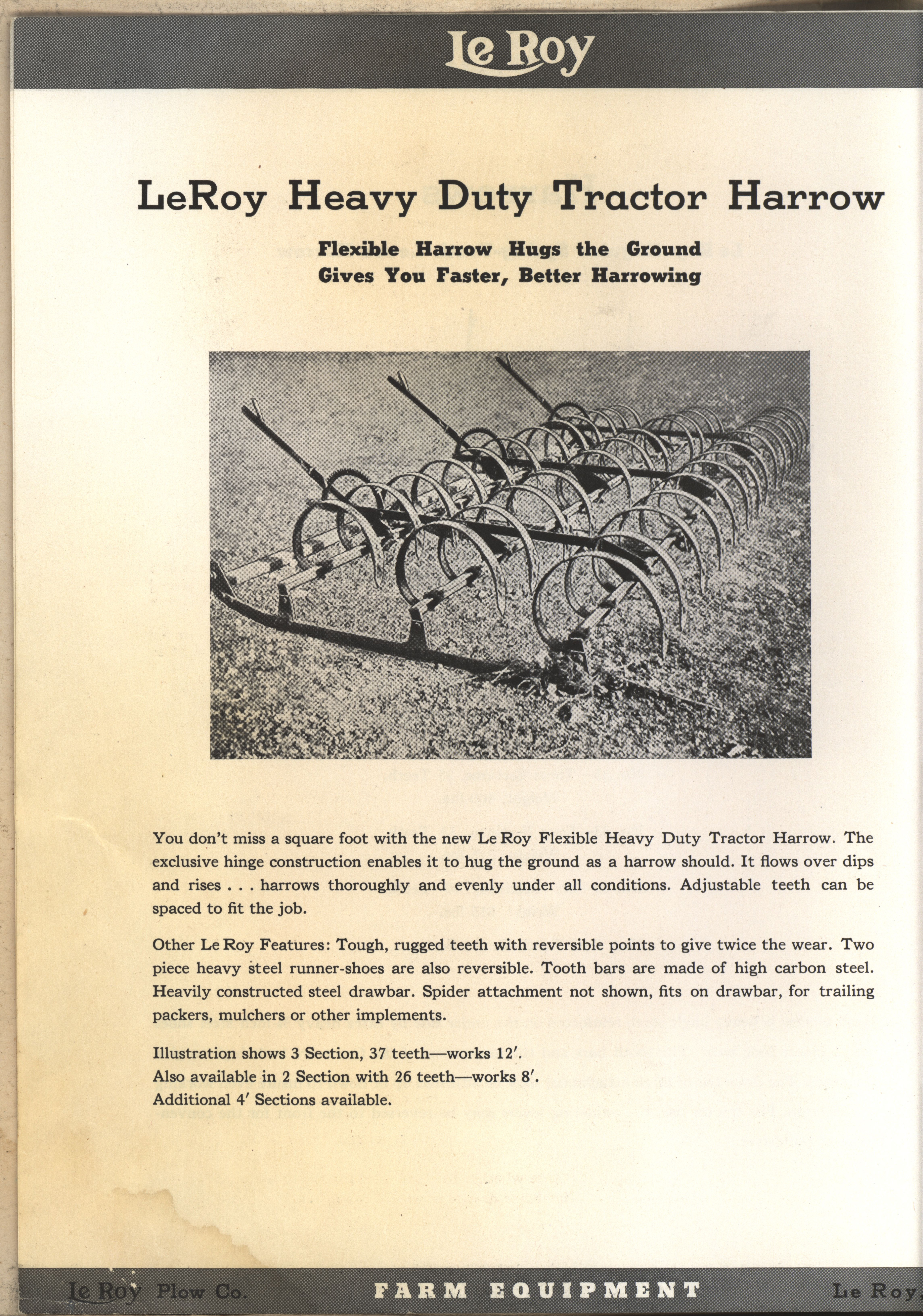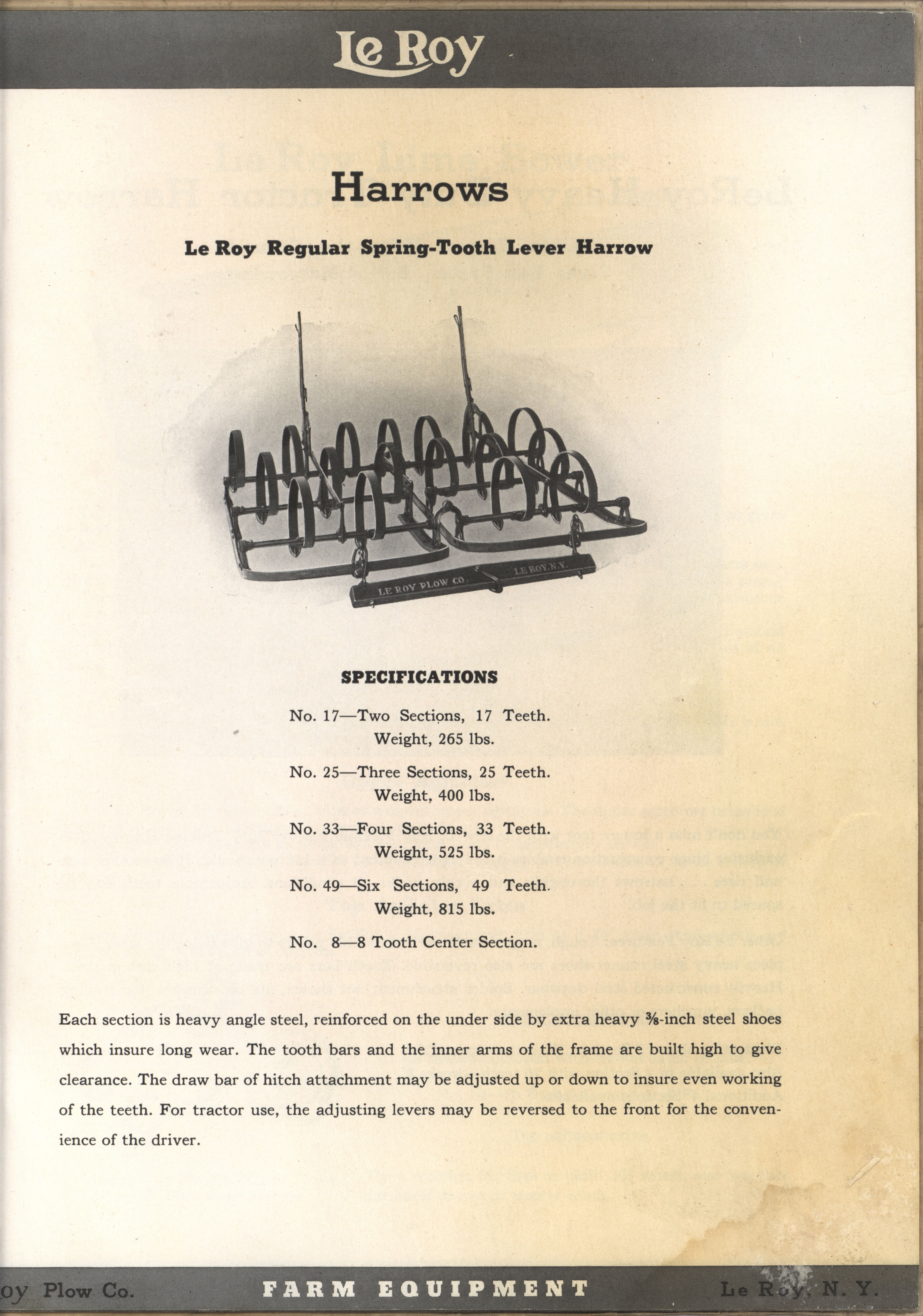 - Catalog describing the farm equipment offered by Le Roy Plow Company.