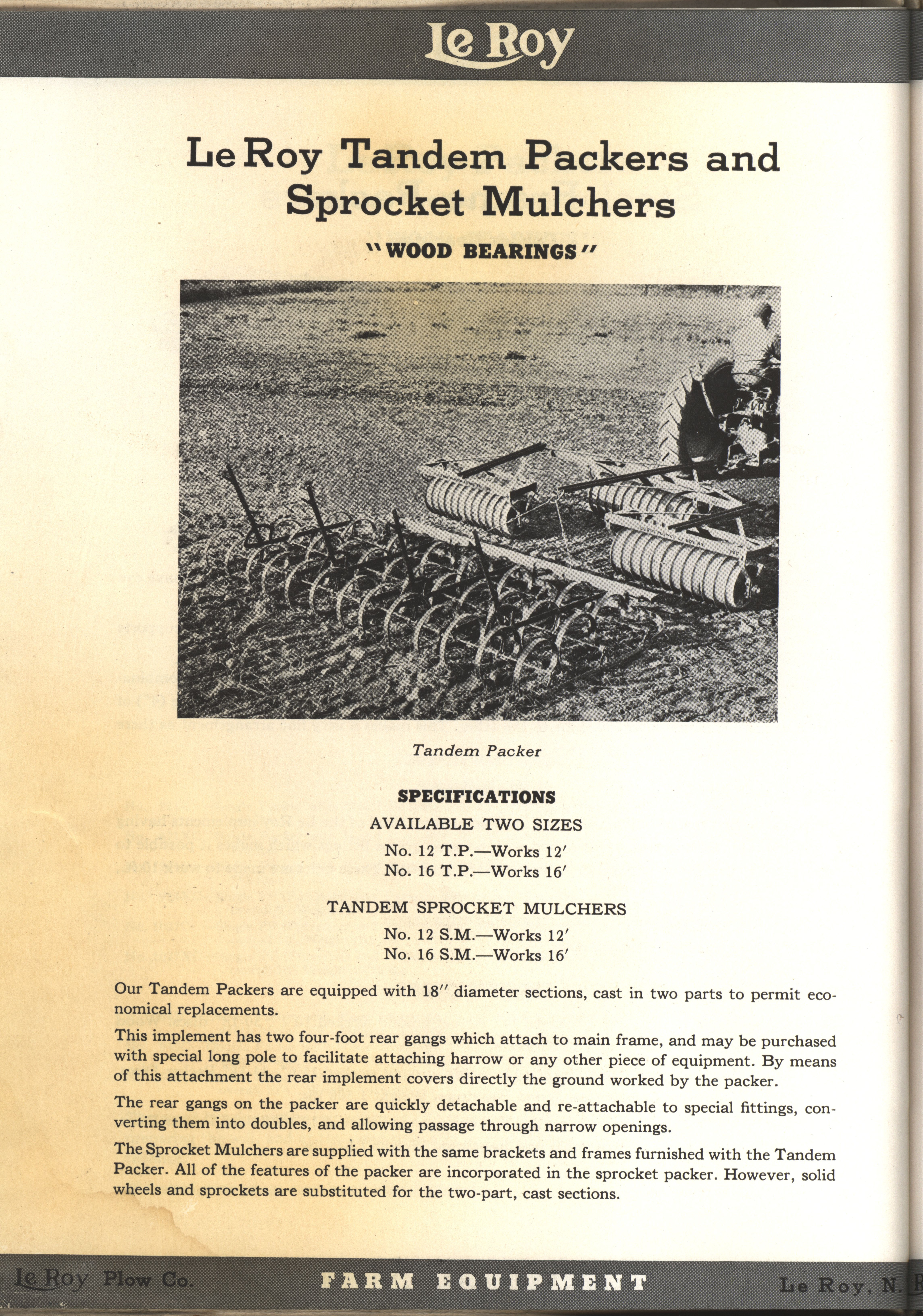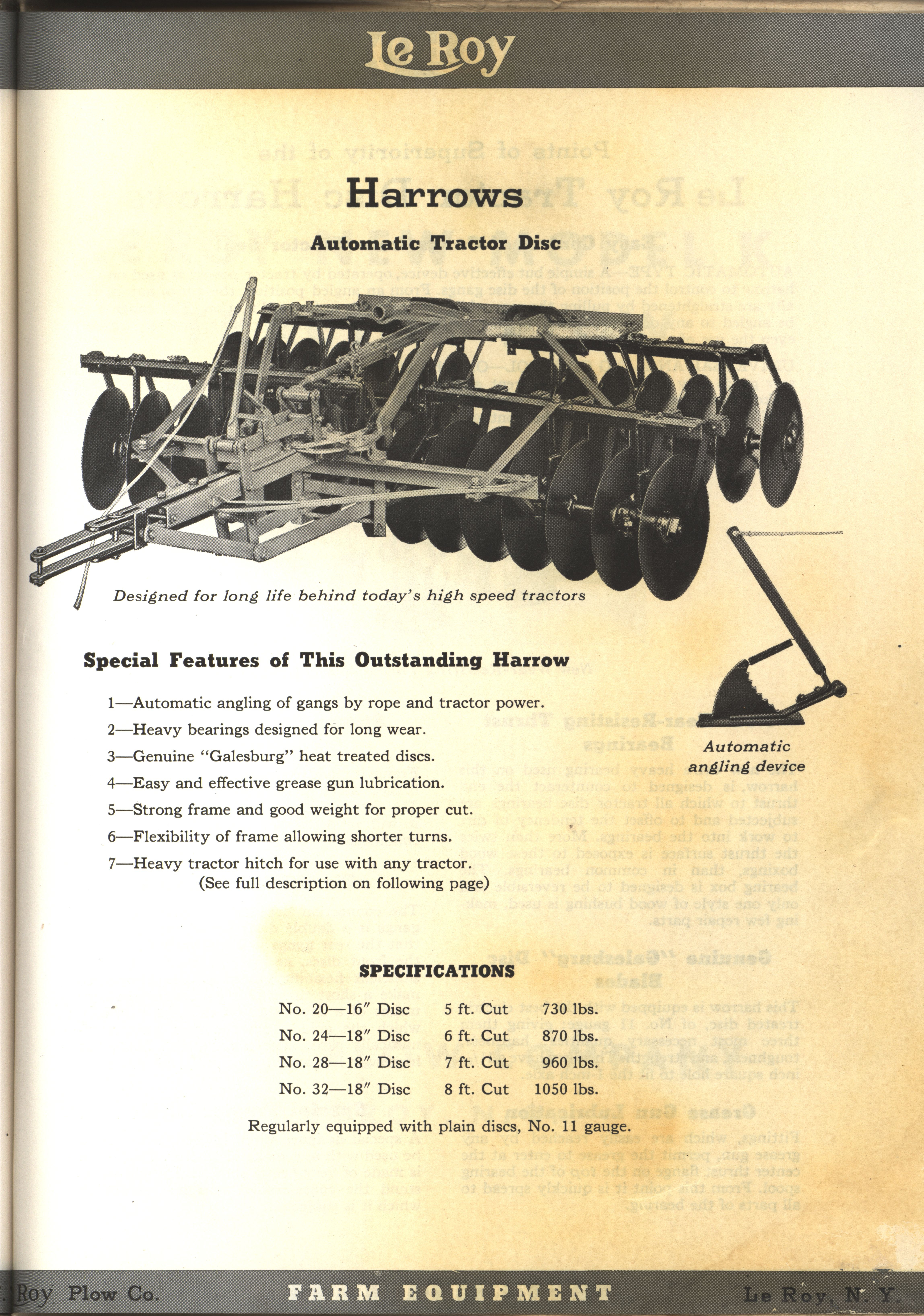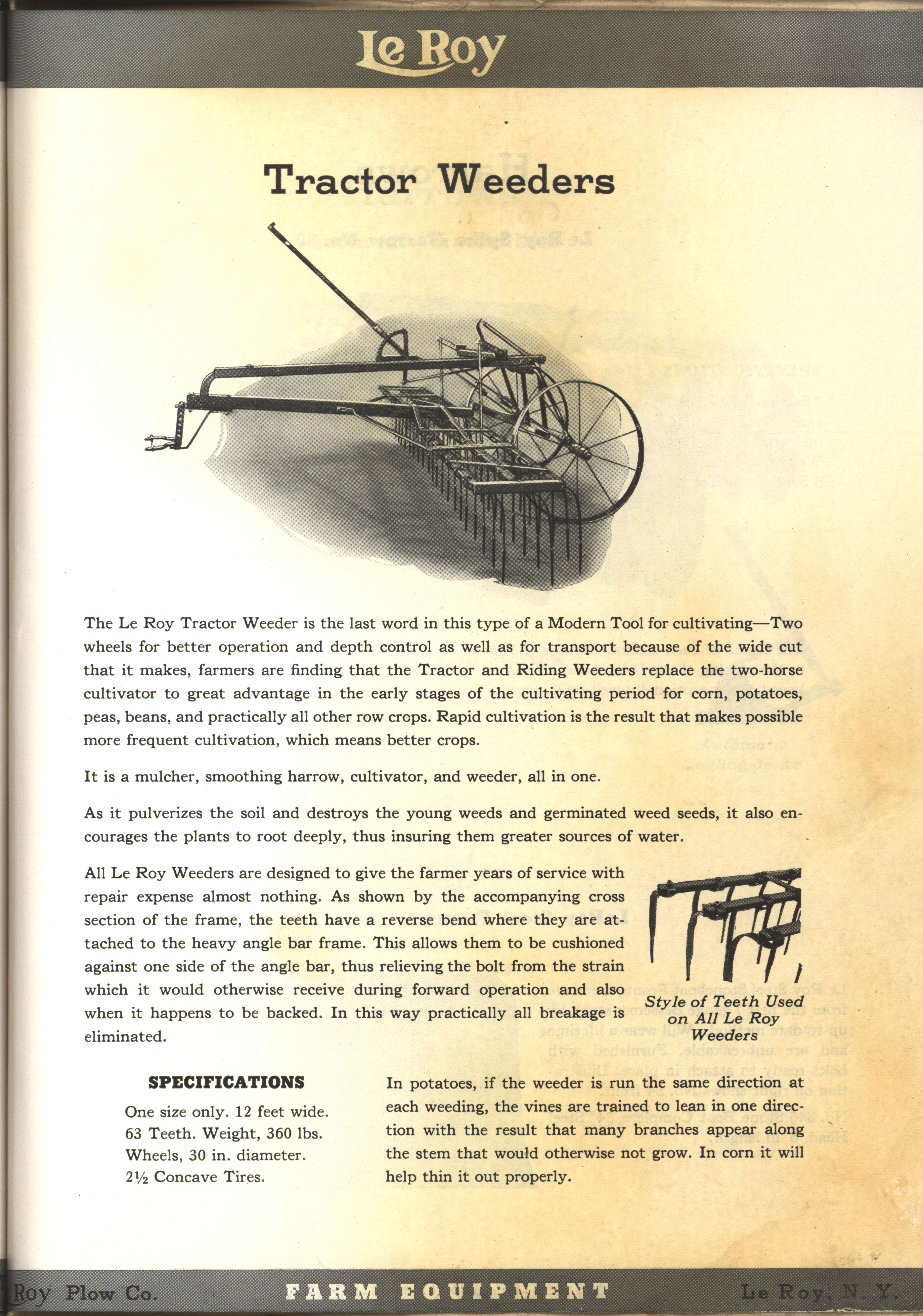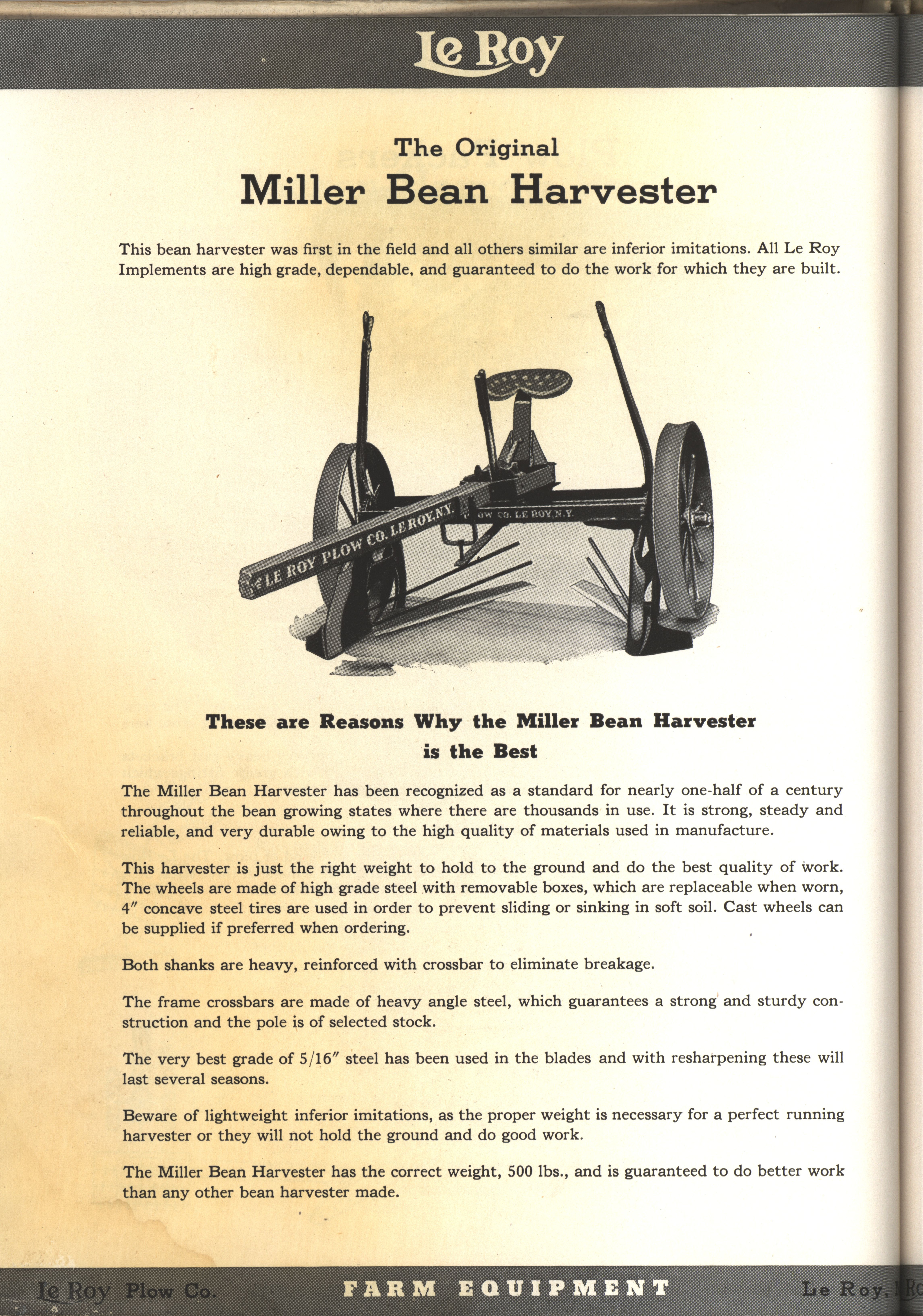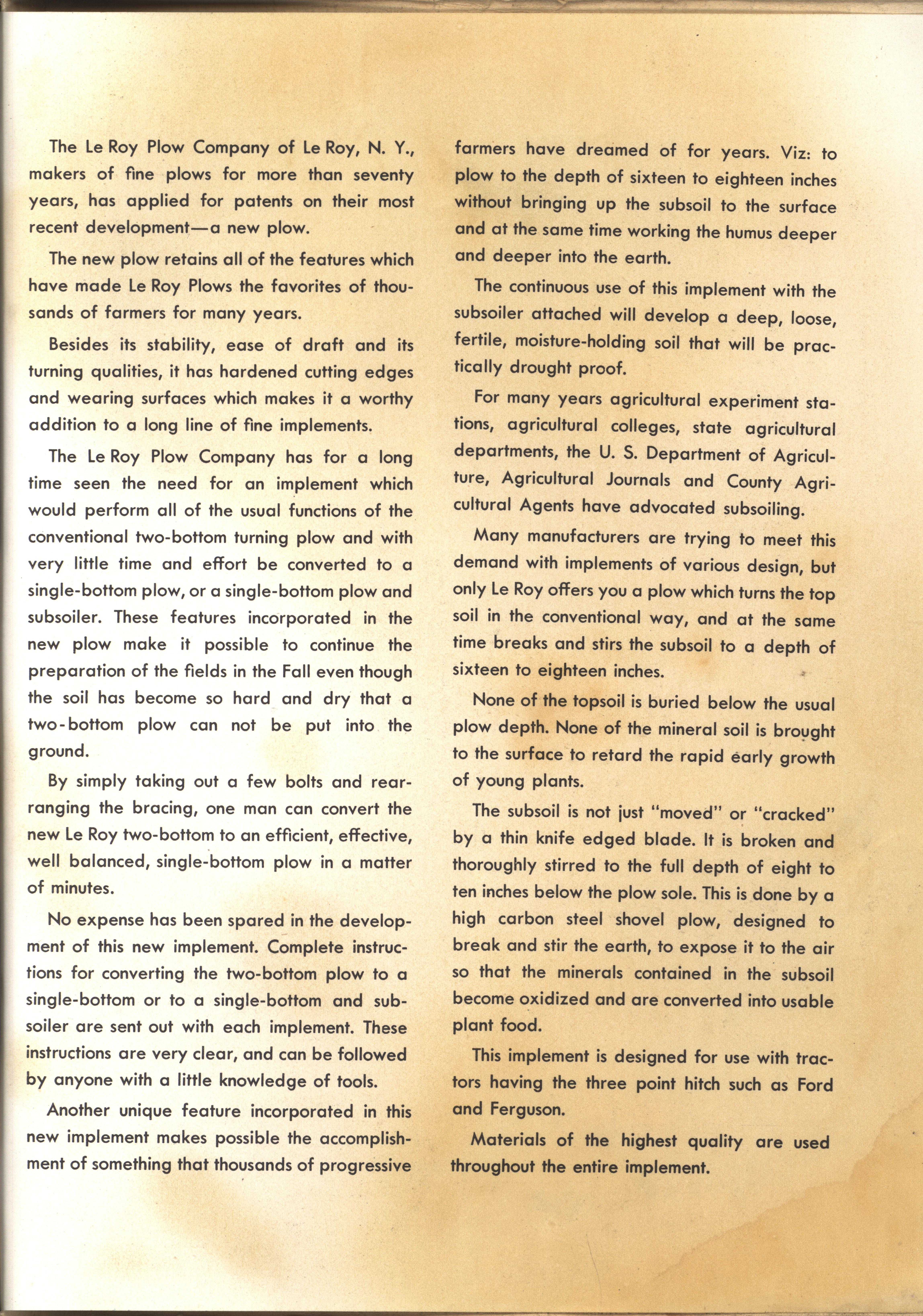 - Catalog describing the farm equipment offered by Le Roy Plow Company.
