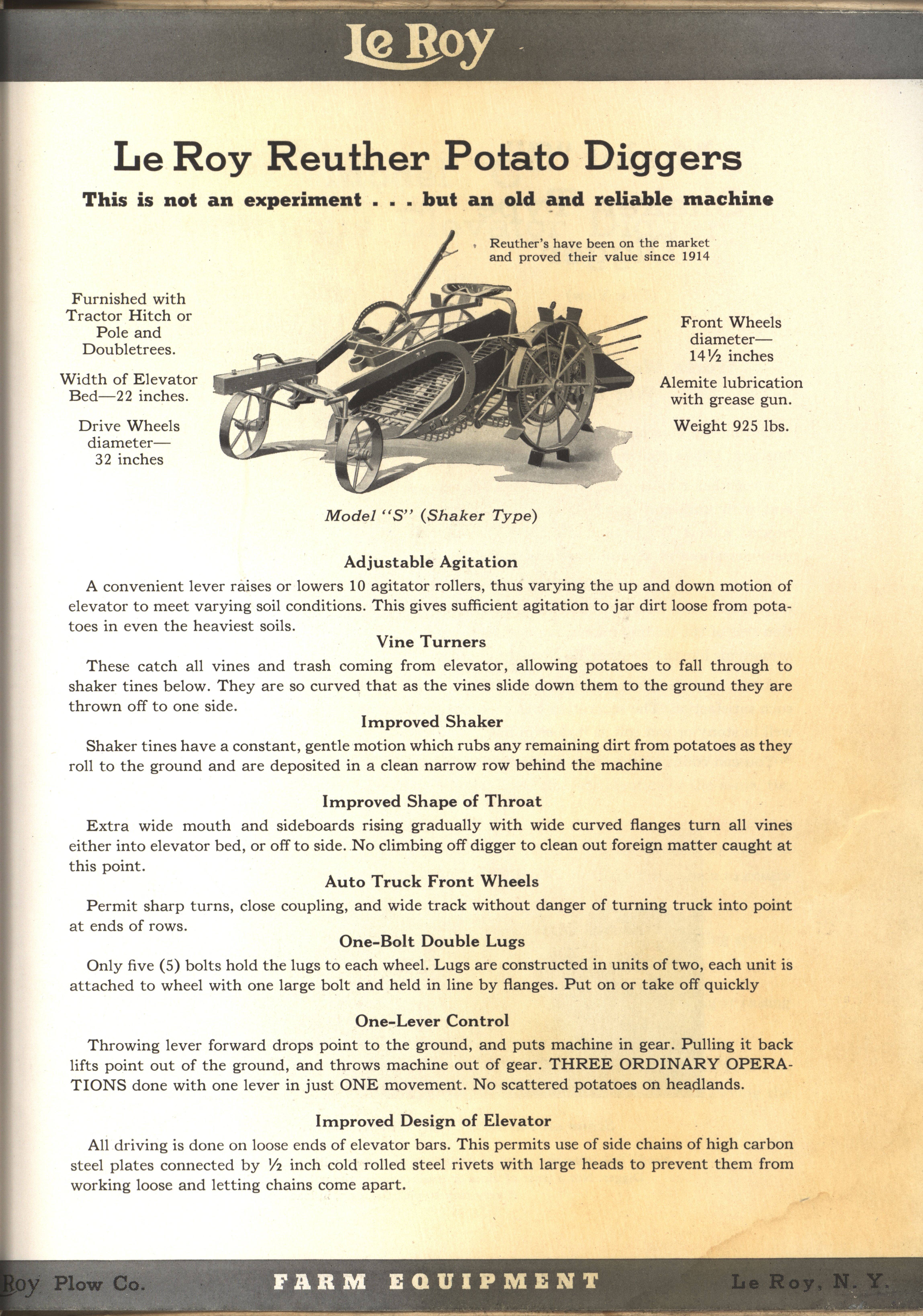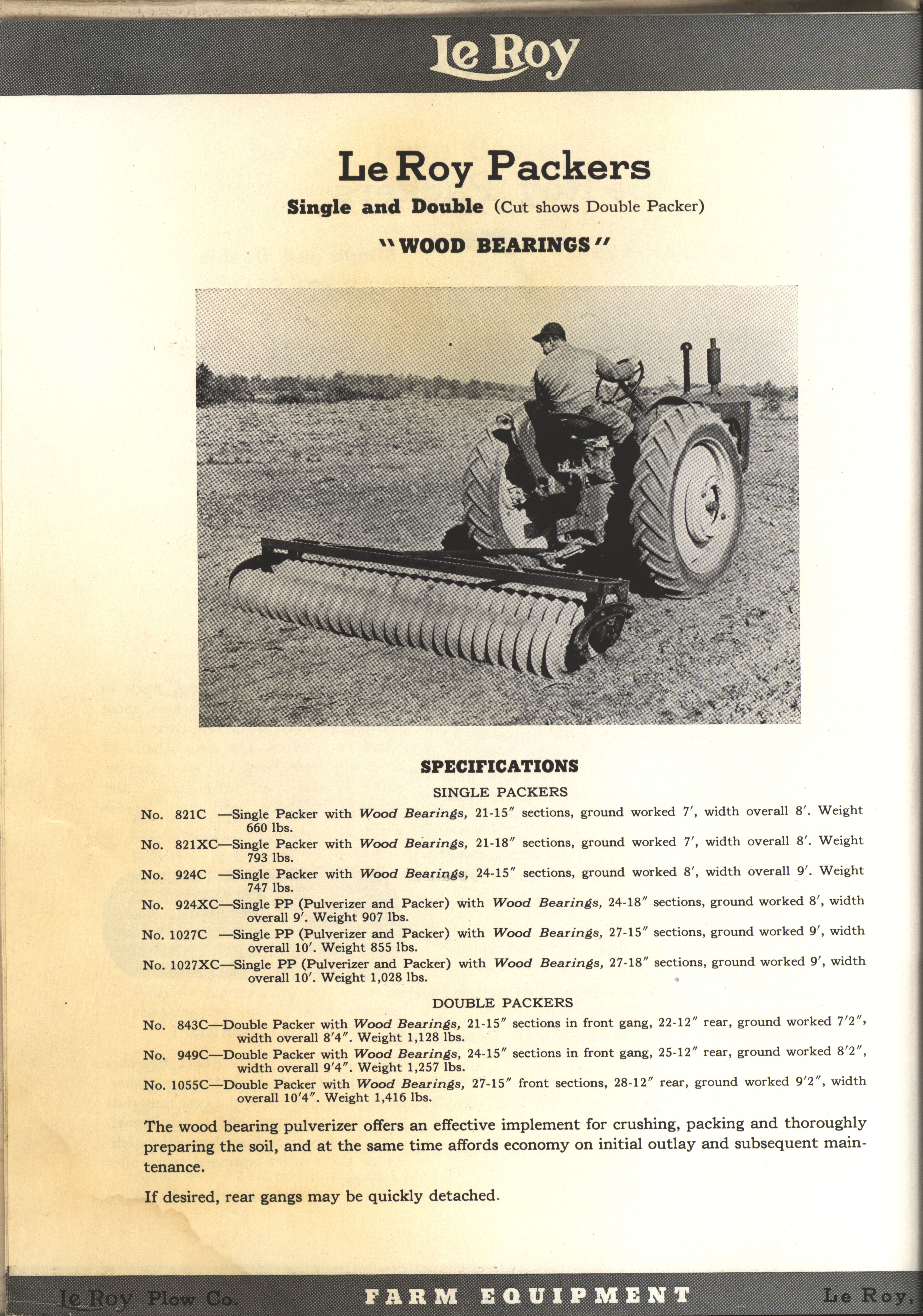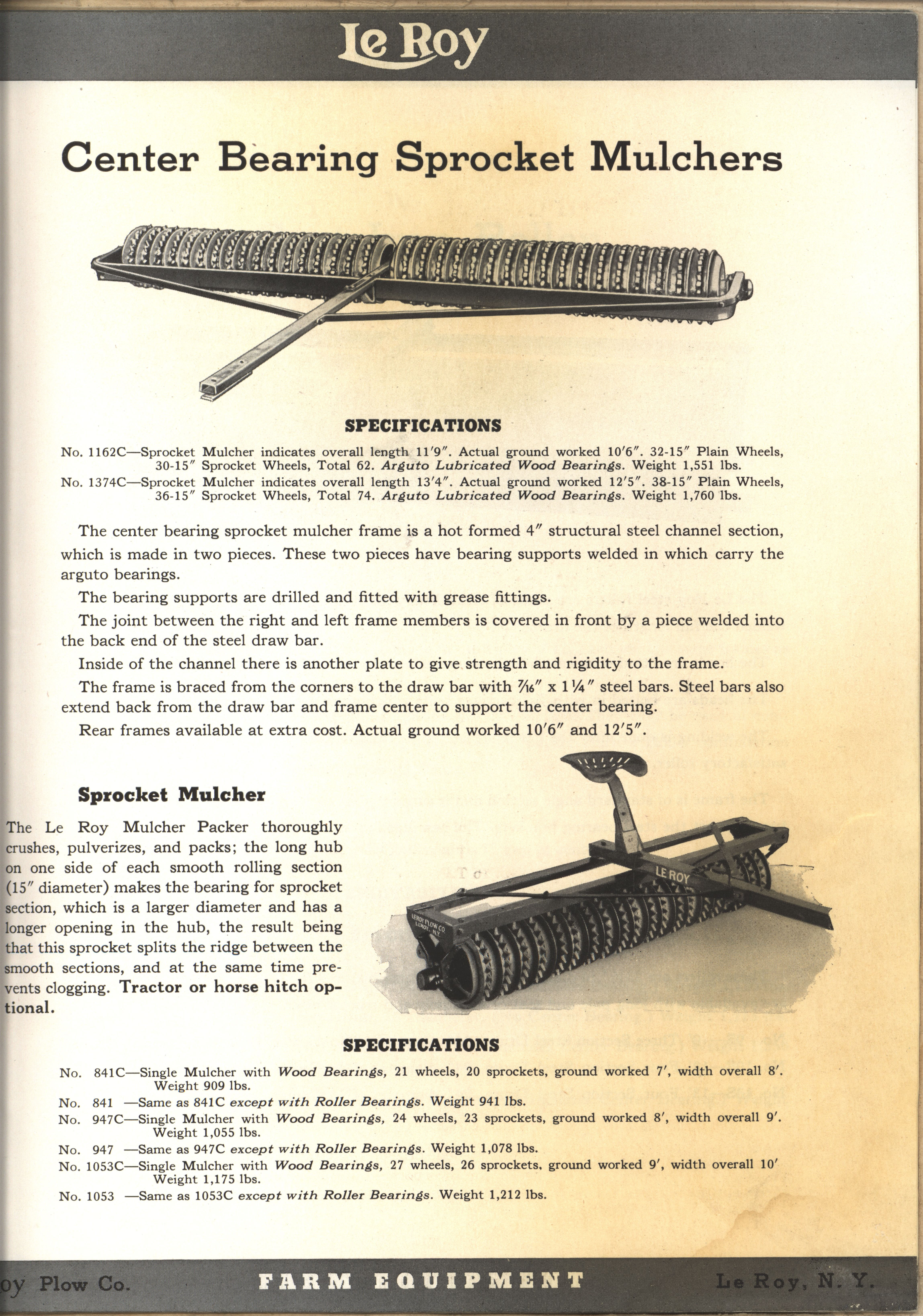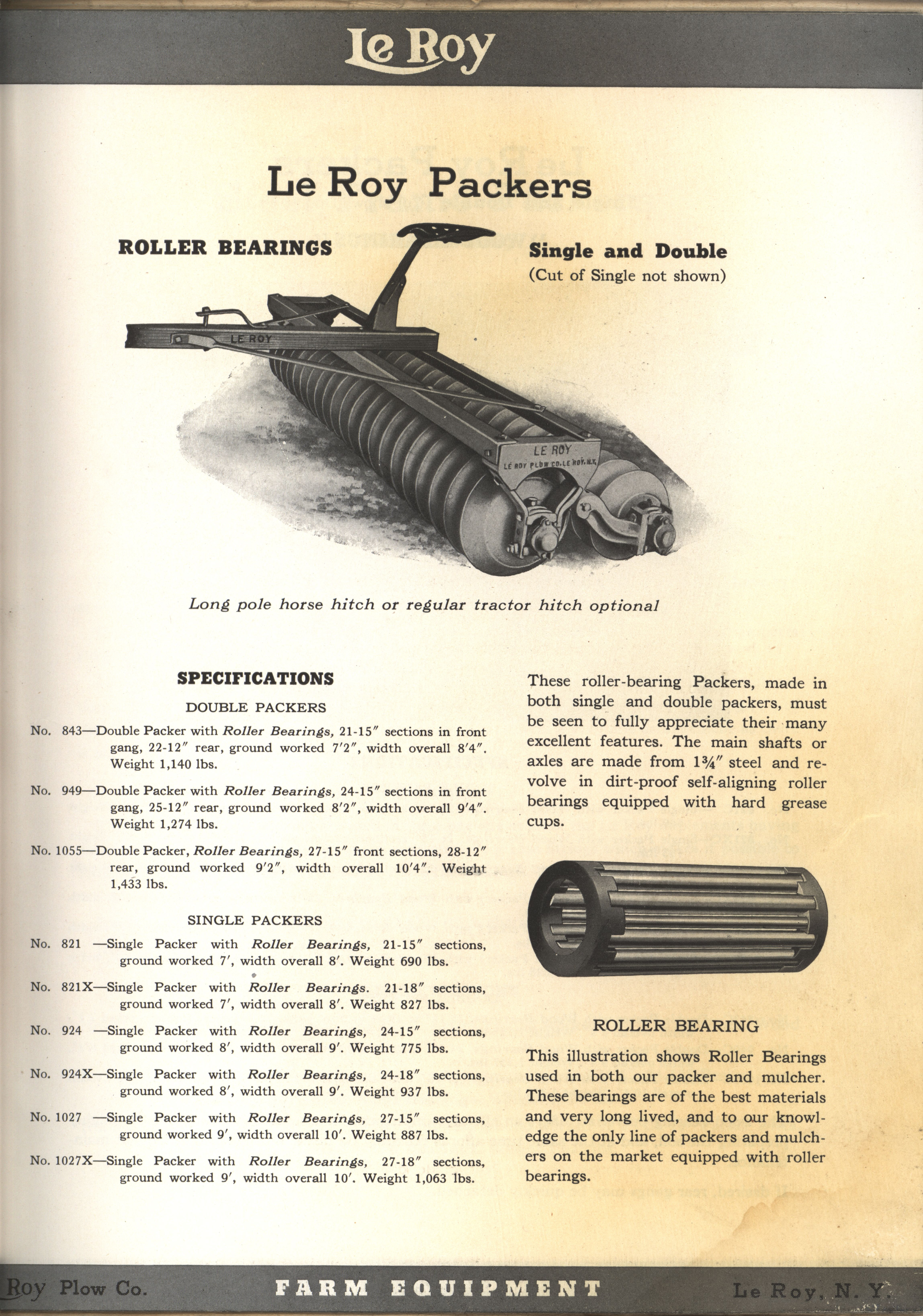 - Catalog describing the farm equipment offered by Le Roy Plow Company.