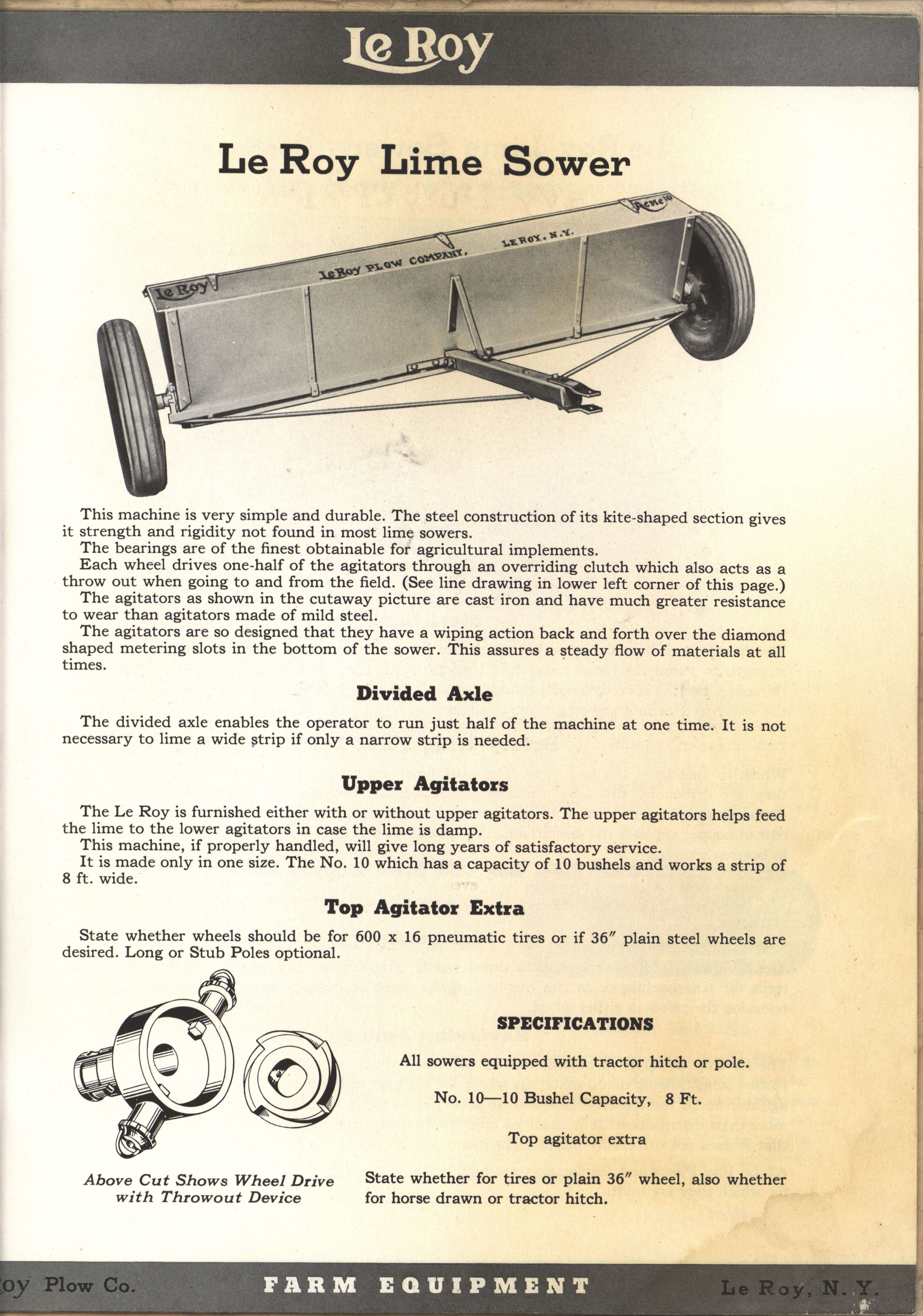 - "Le Roy Plow Company farm equipment catalog", Agricultural Machinery Literature Collection, Iowa State University Library Digital Collections