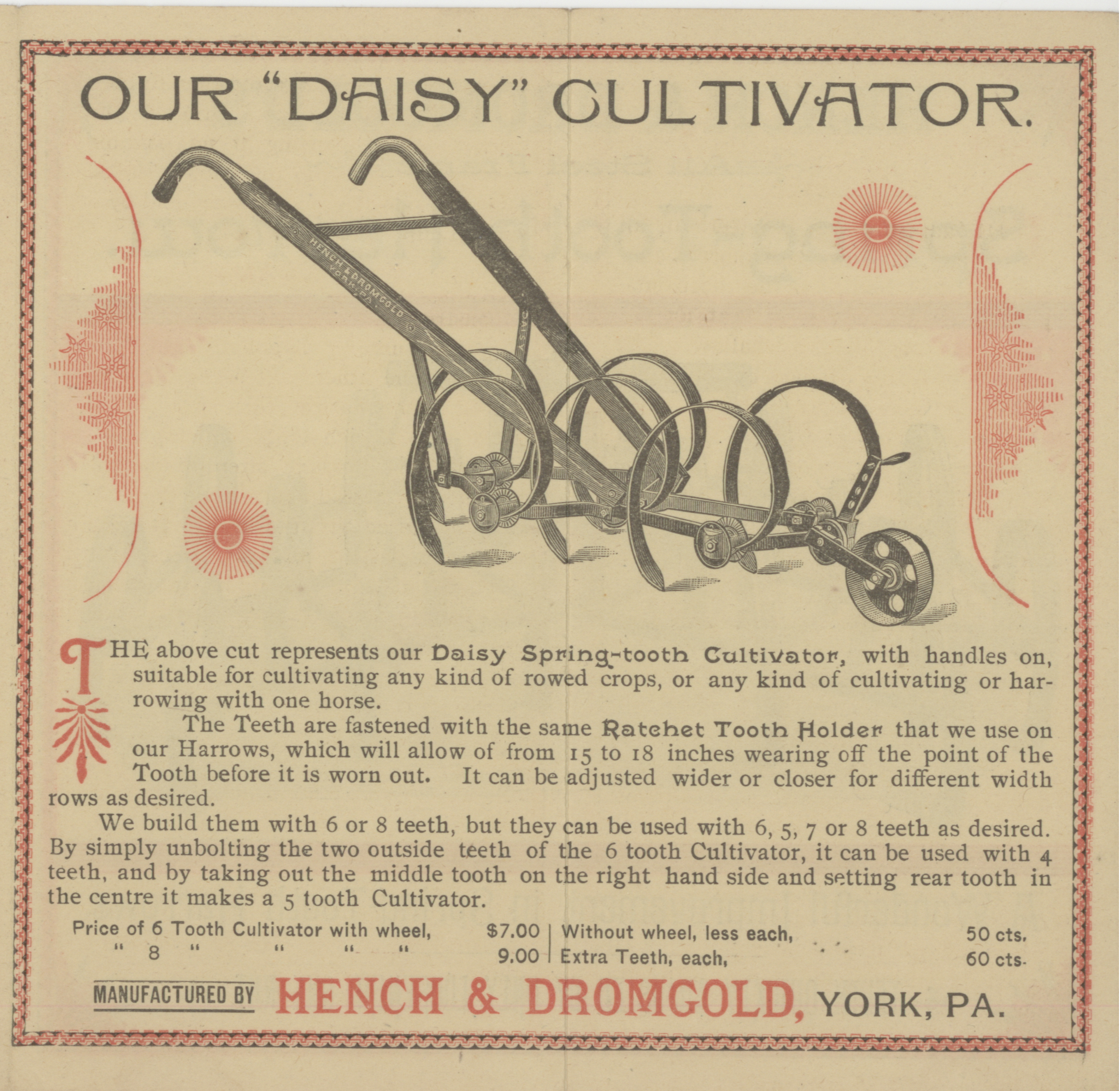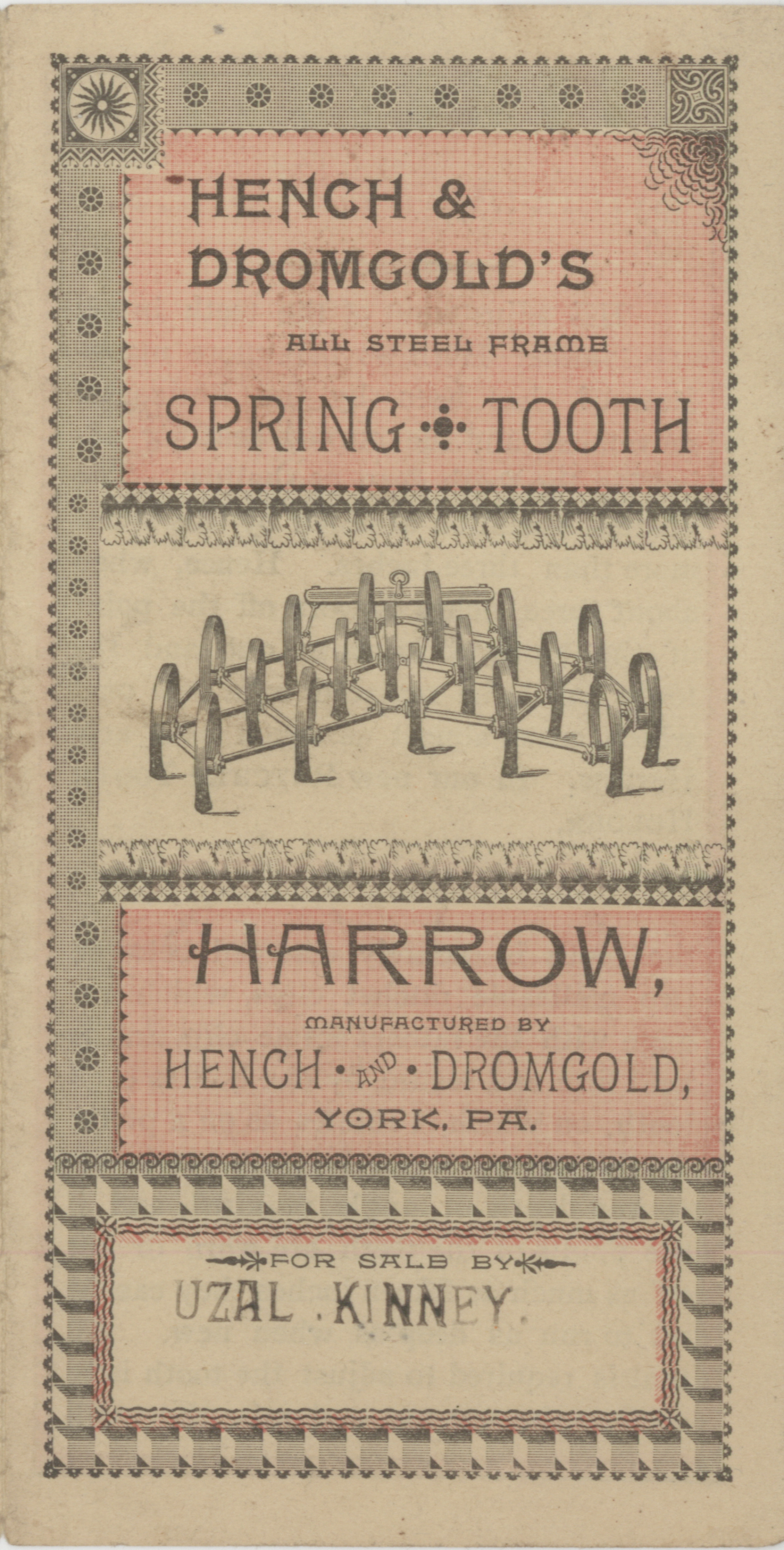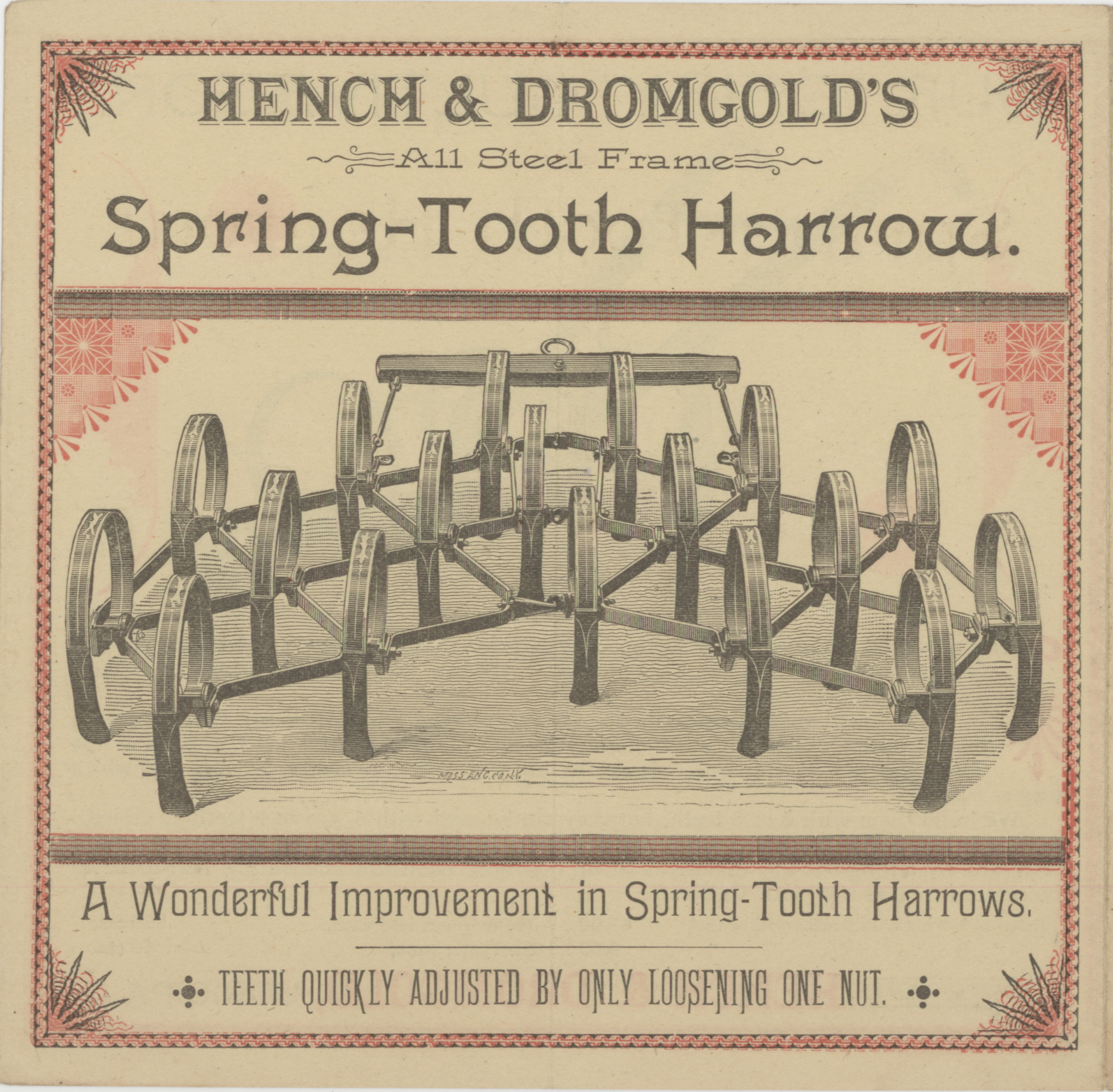 - "Hench and Dromgold Spring Tooth Harrow advertisement pamphlet", Agricultural Machinery Literature Collection, Iowa State University Library Digital Collections
