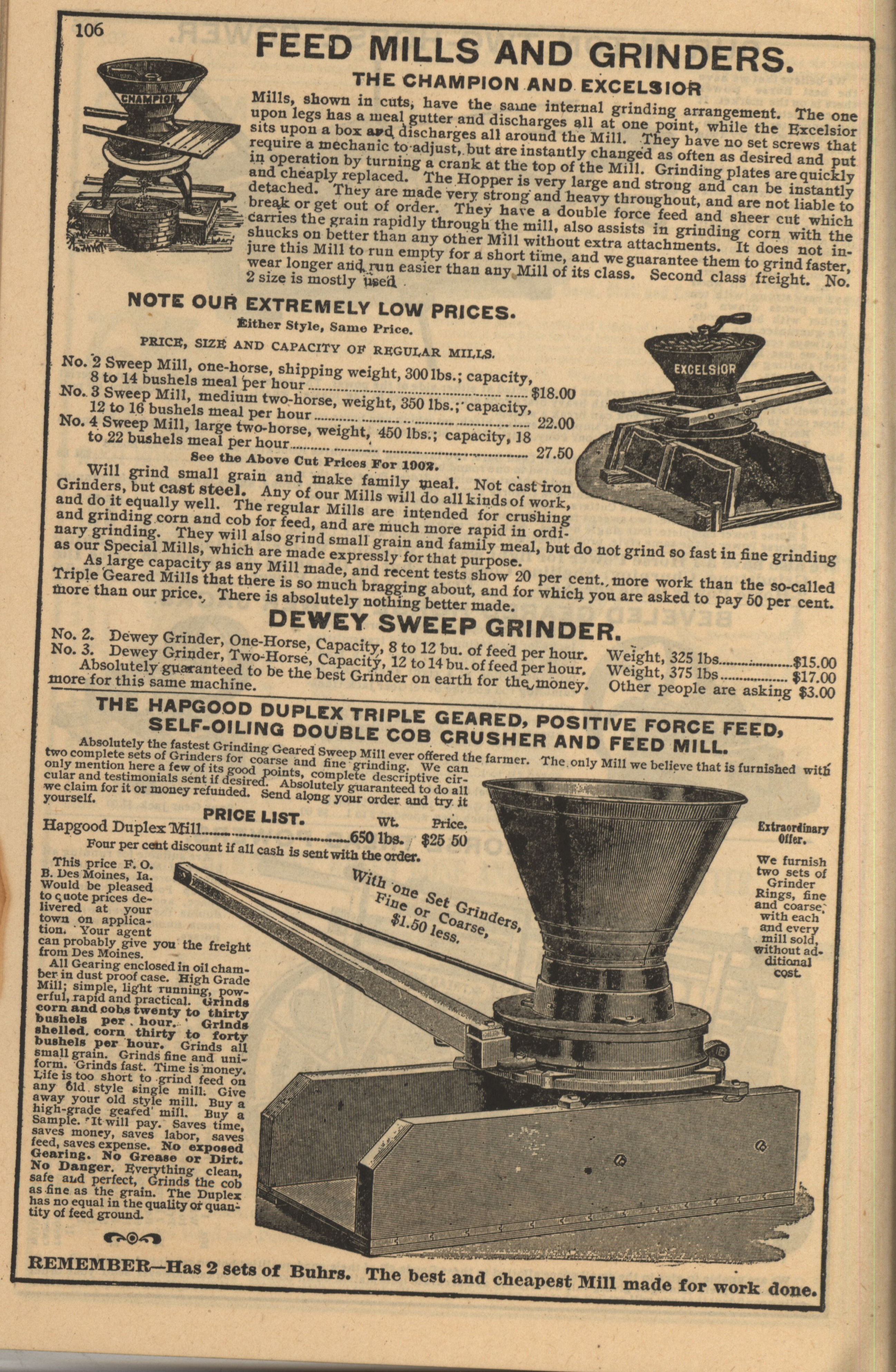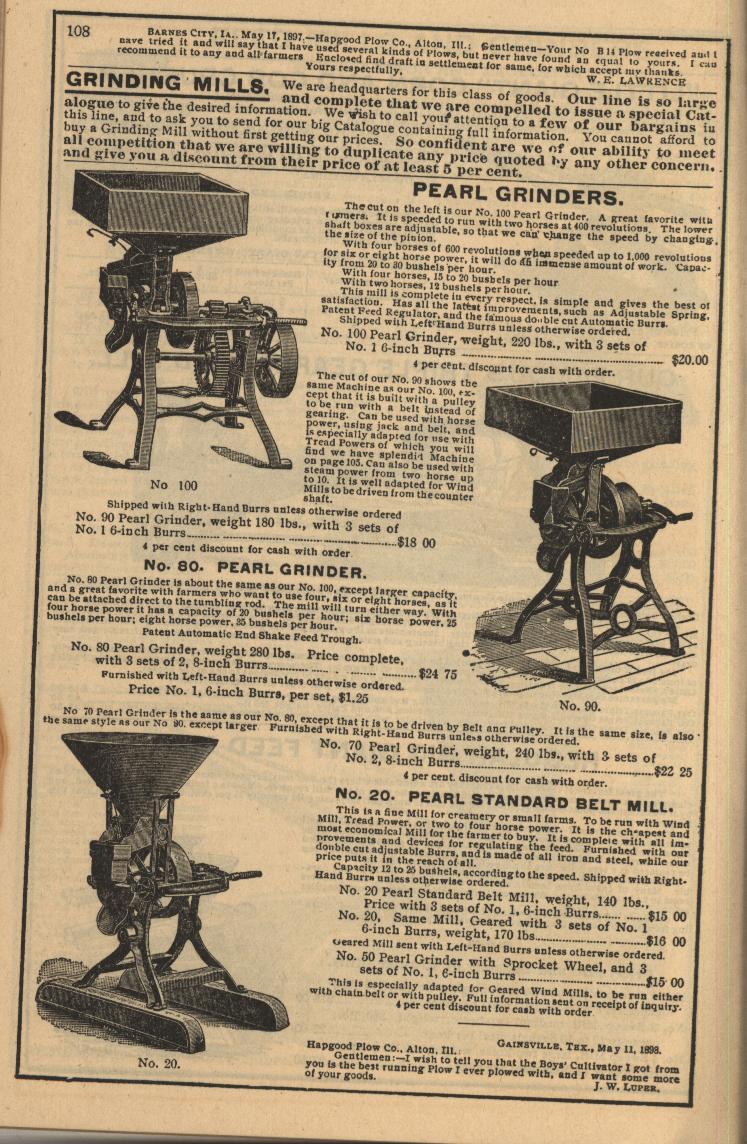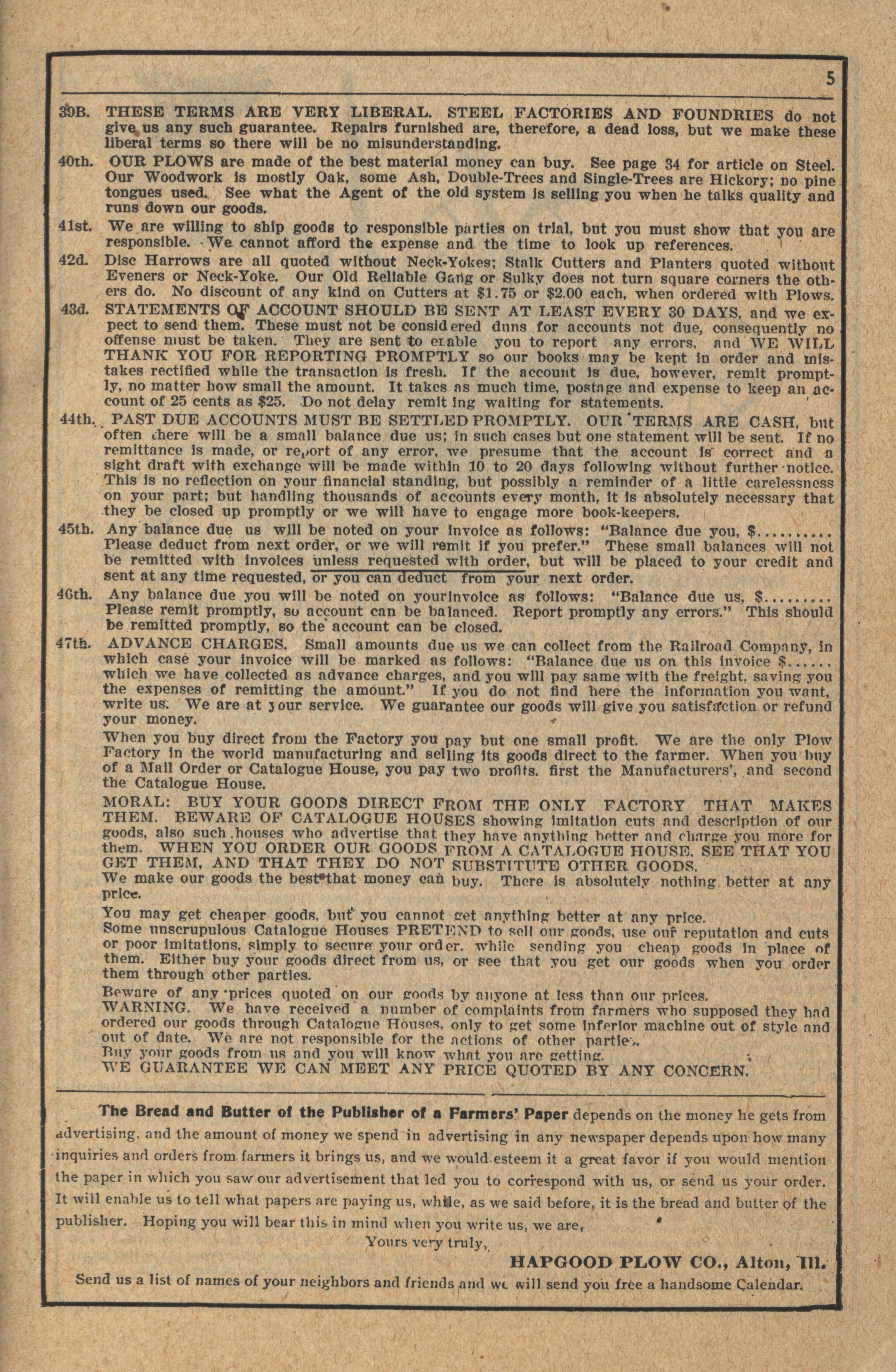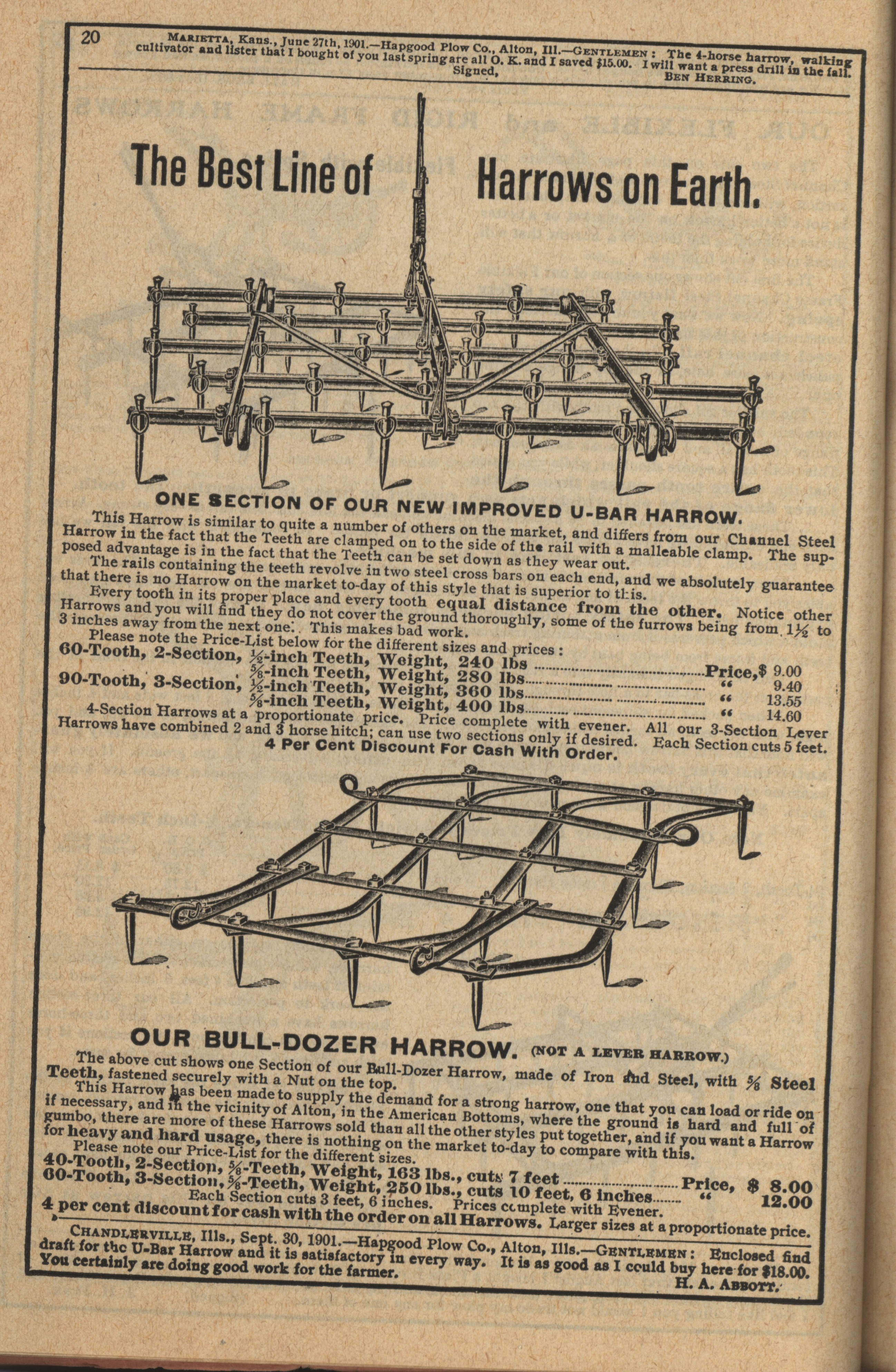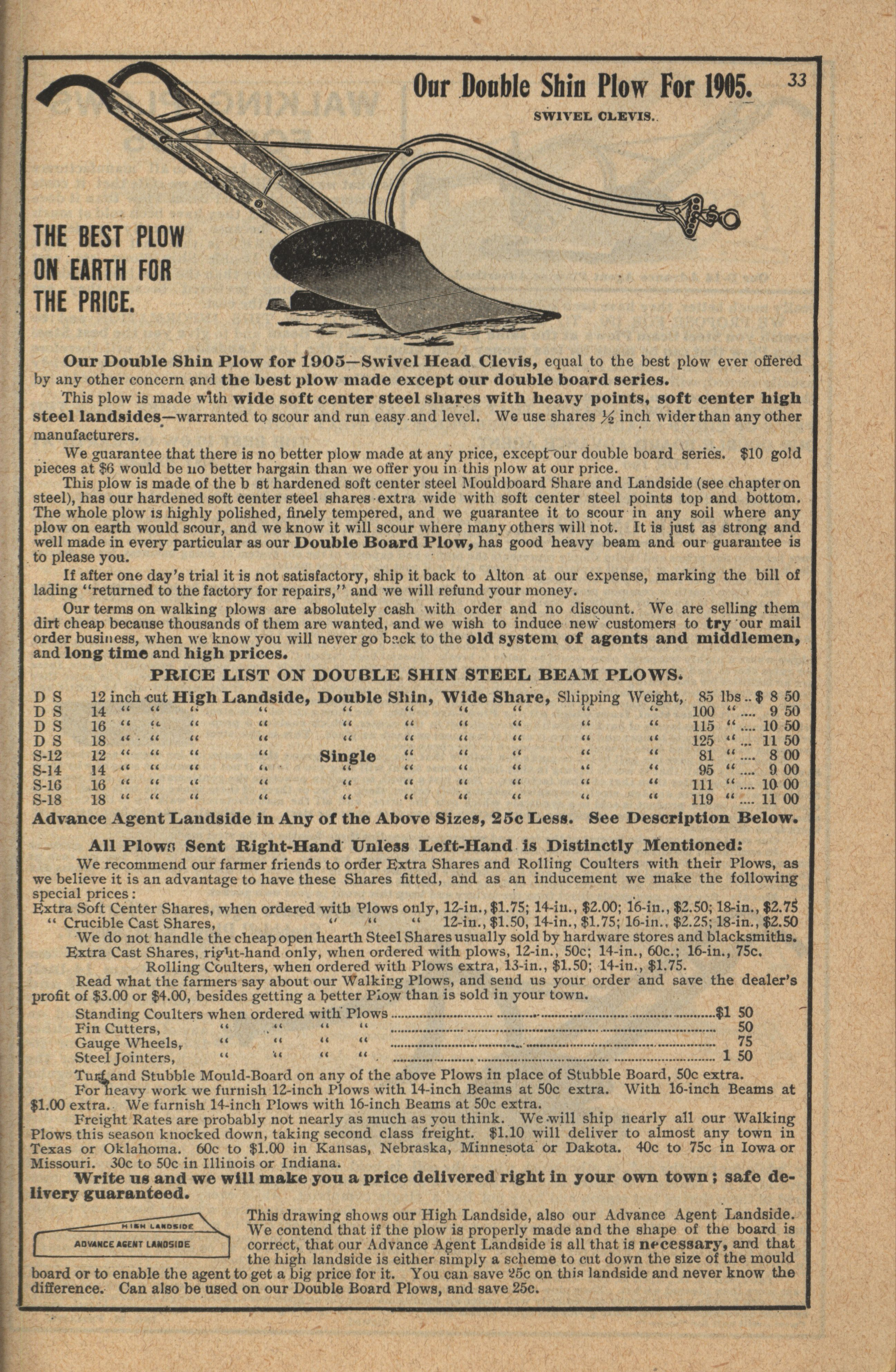 - Illustrated catalog describing the agricultural implements offered by Hapgood Plow Company in 1905.
