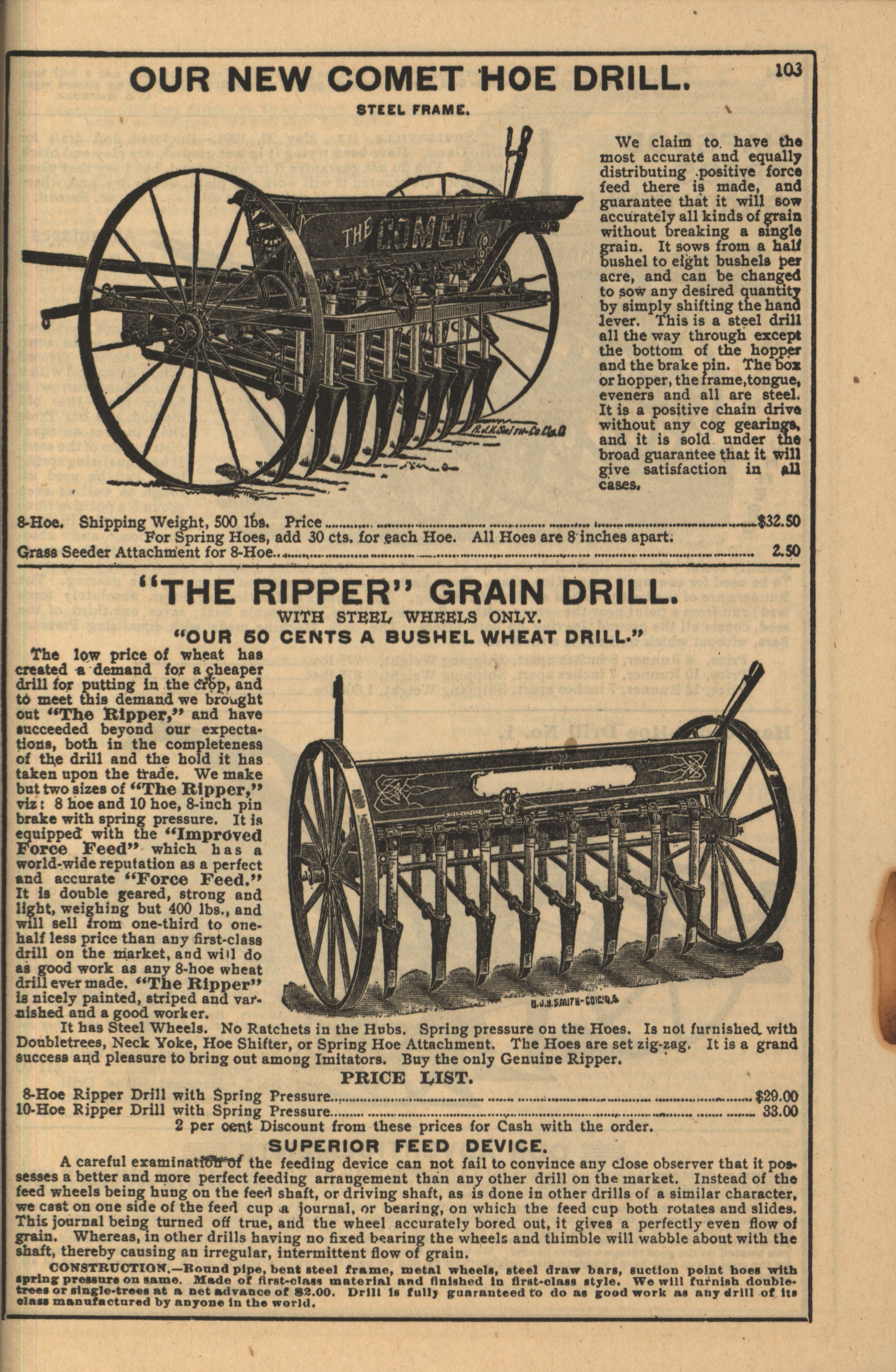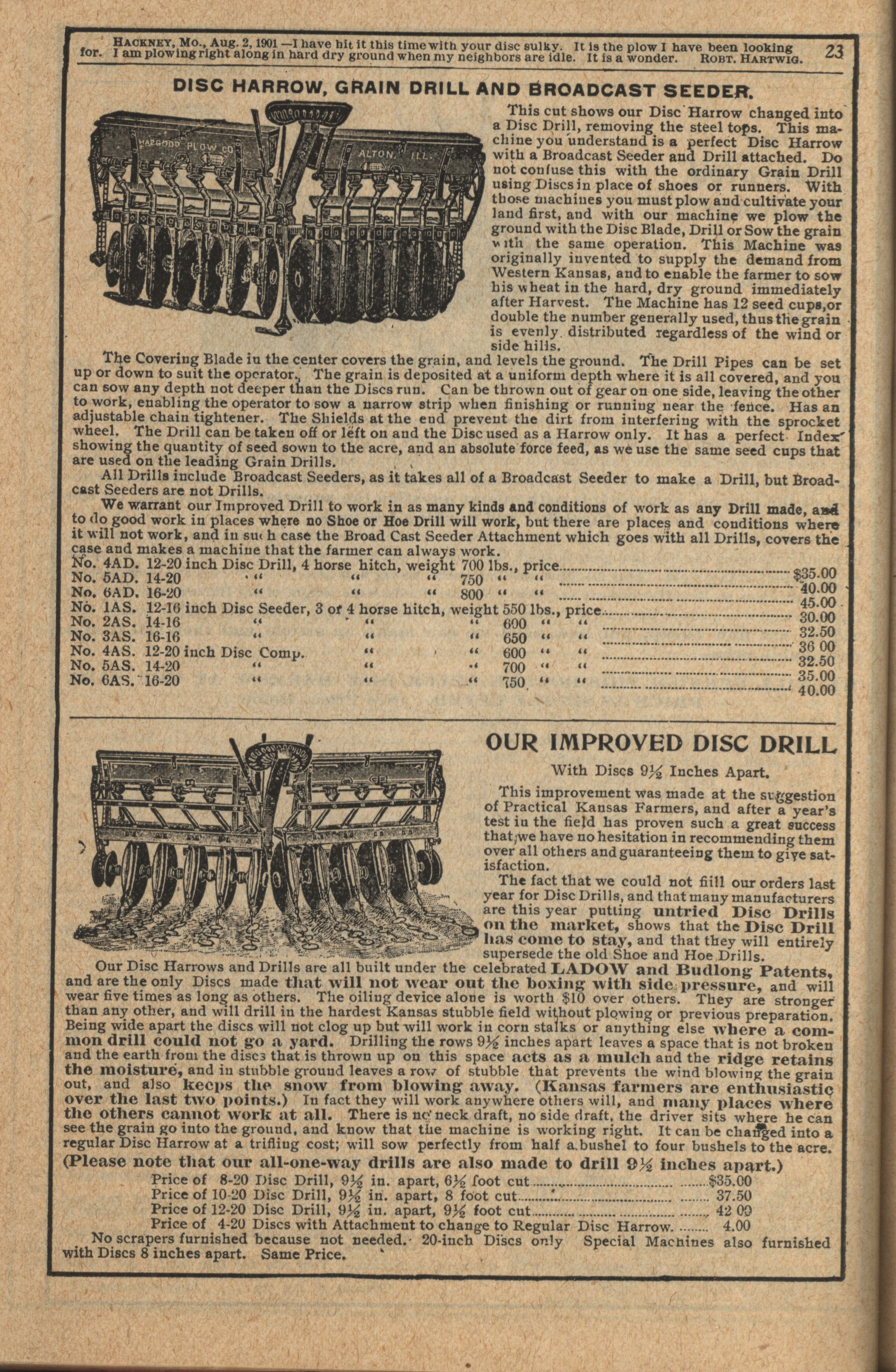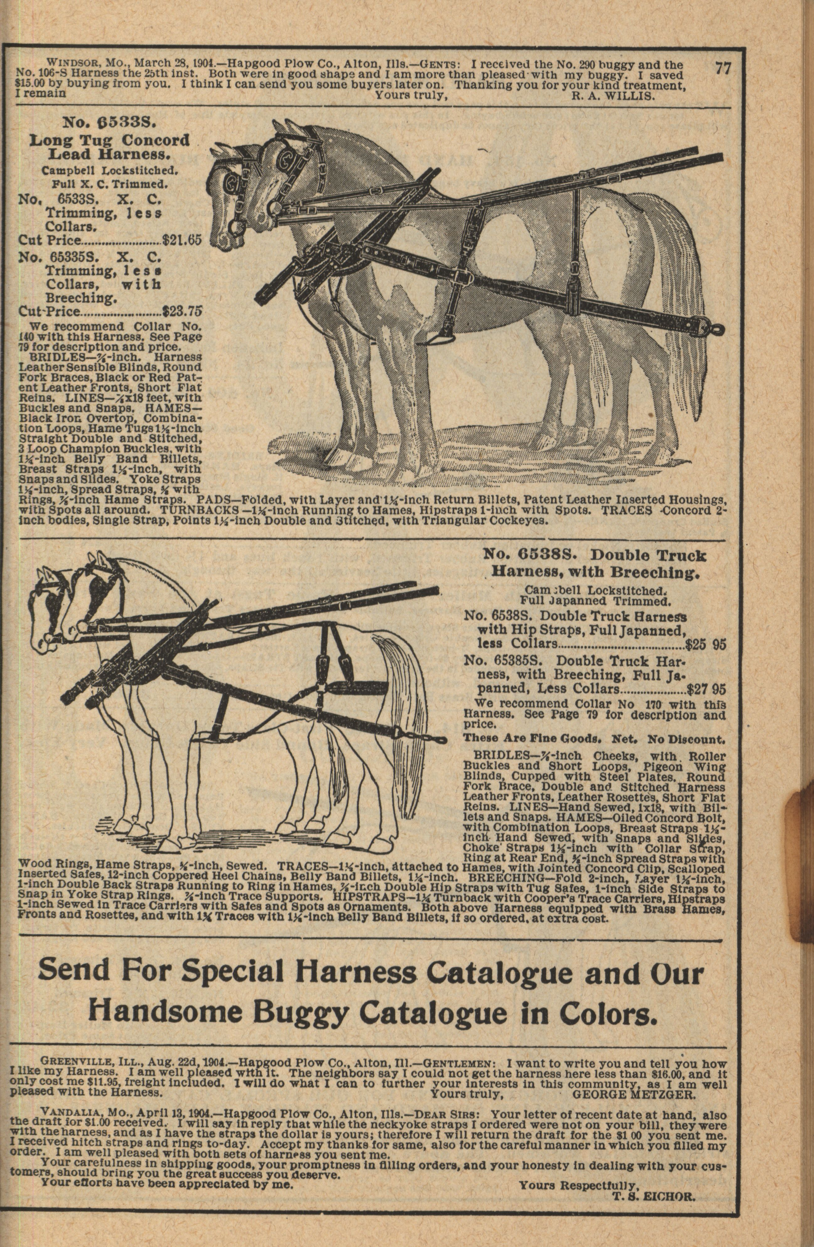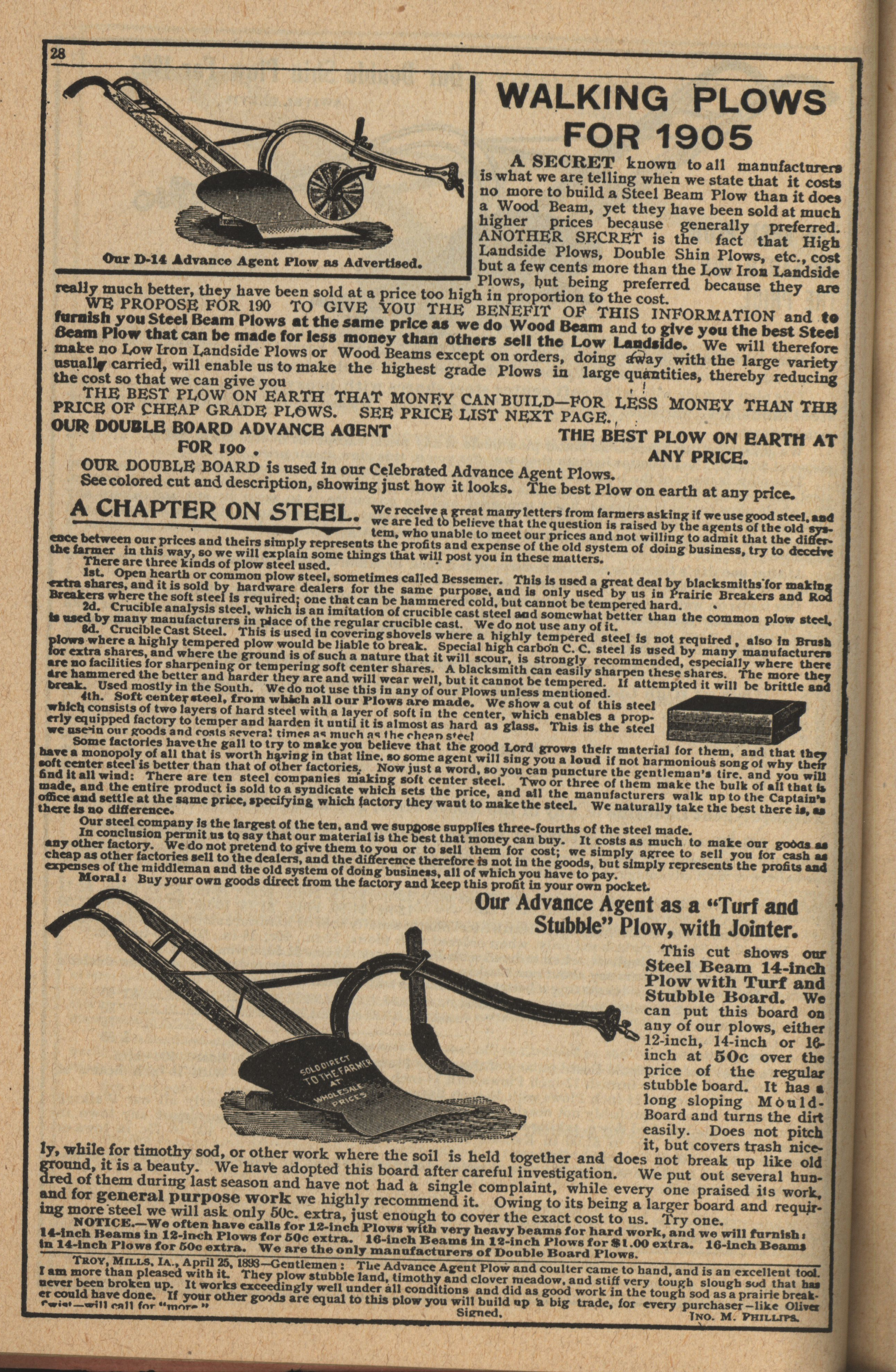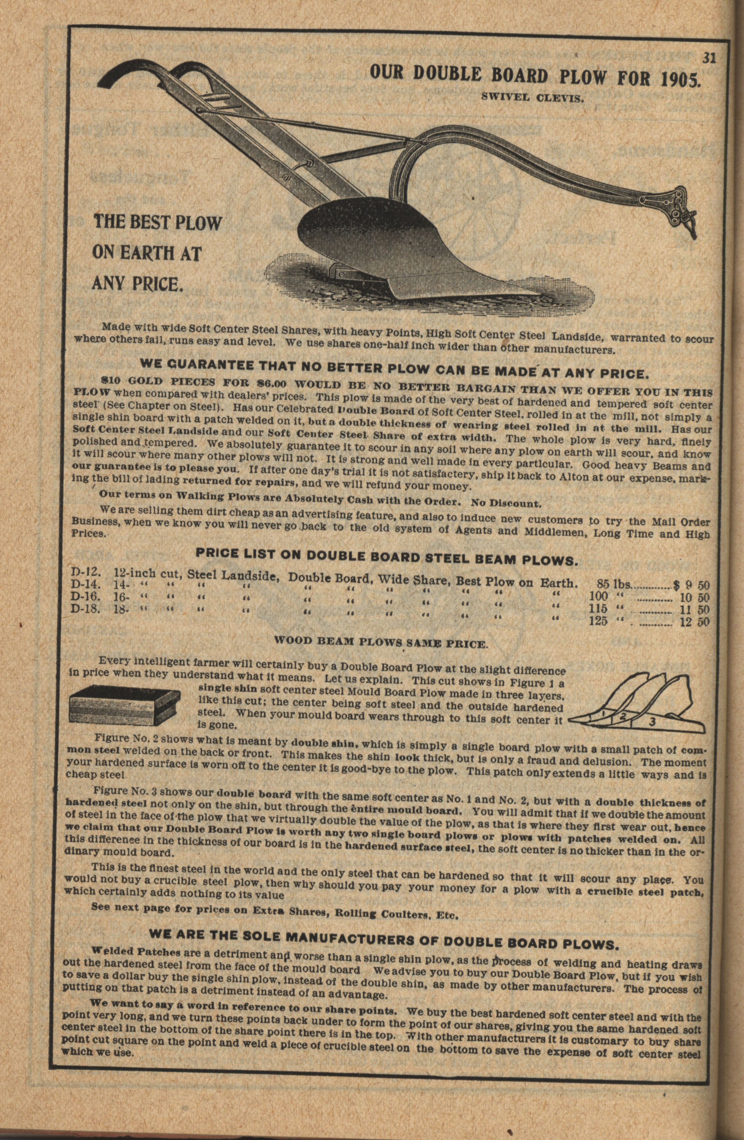 - Illustrated catalog describing the agricultural implements offered by Hapgood Plow Company in 1905.