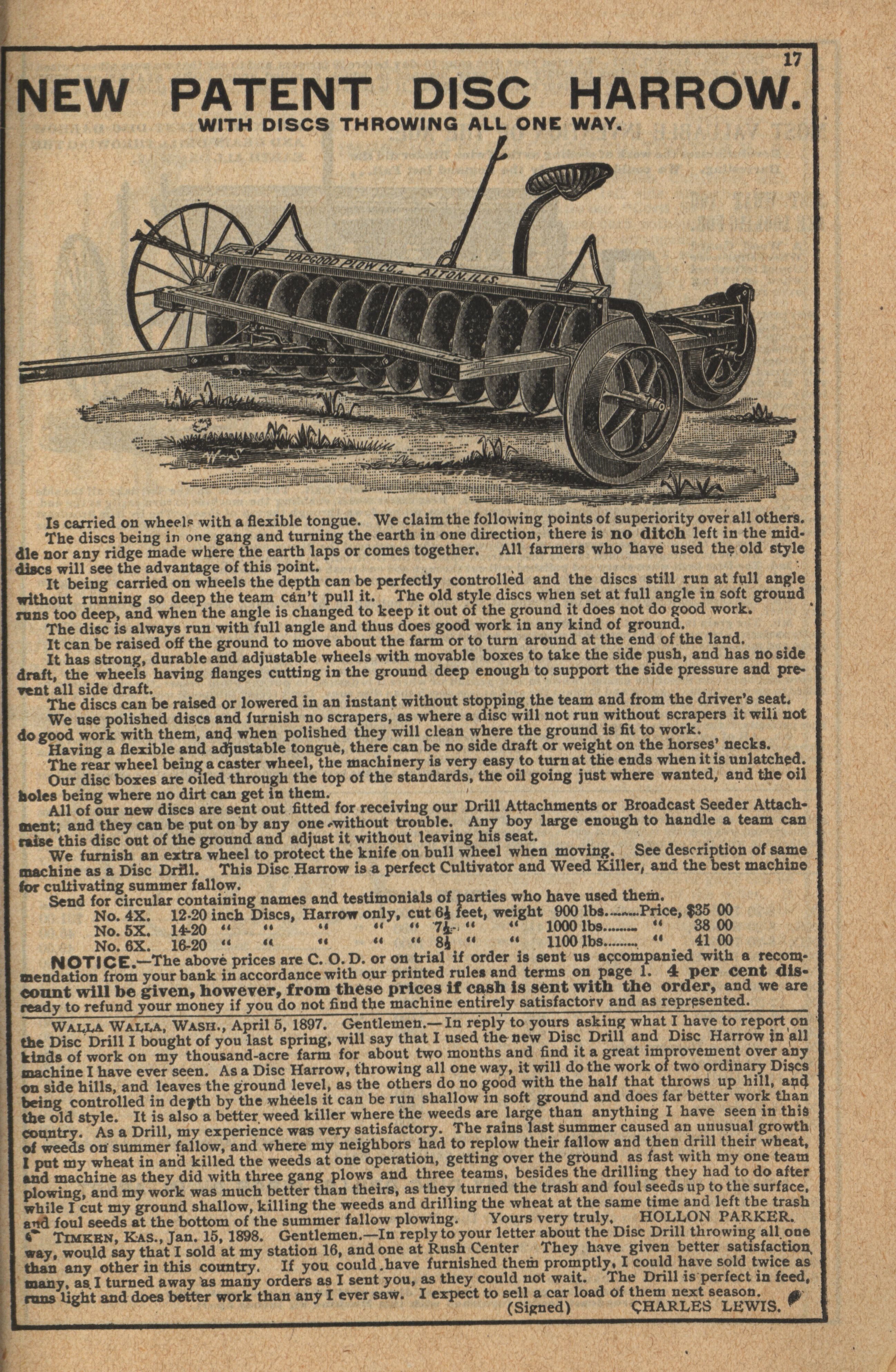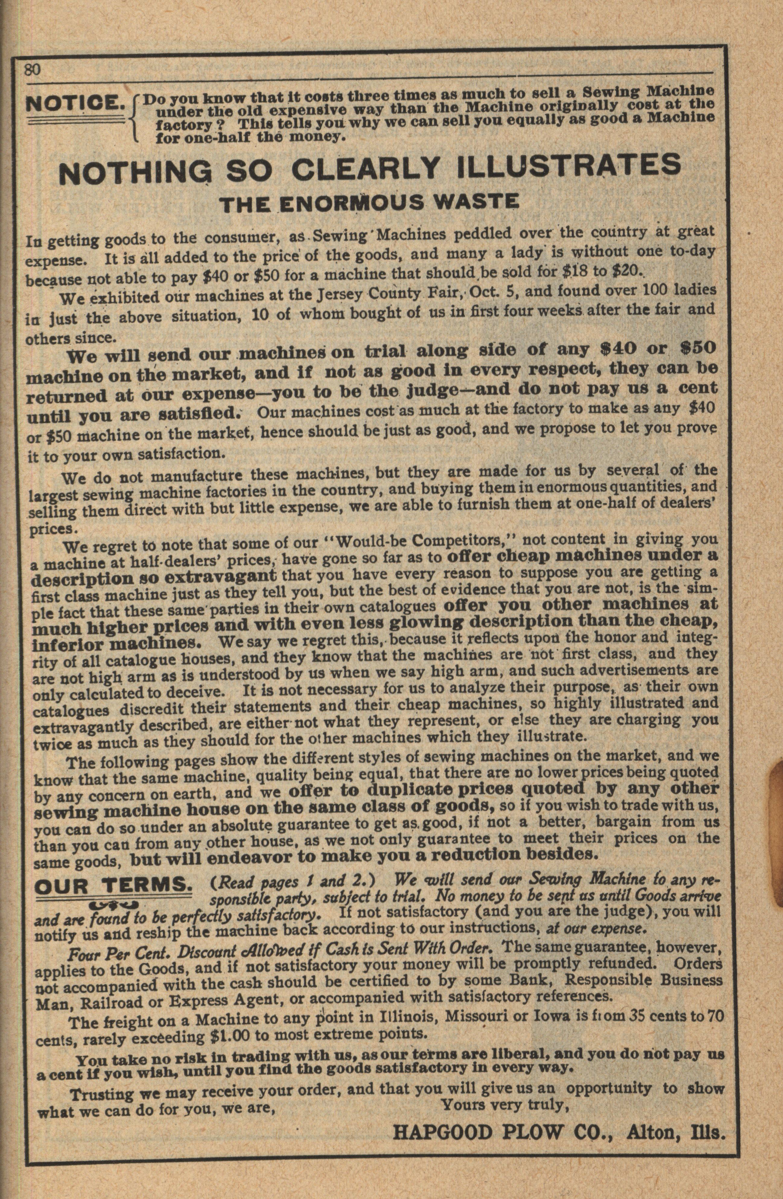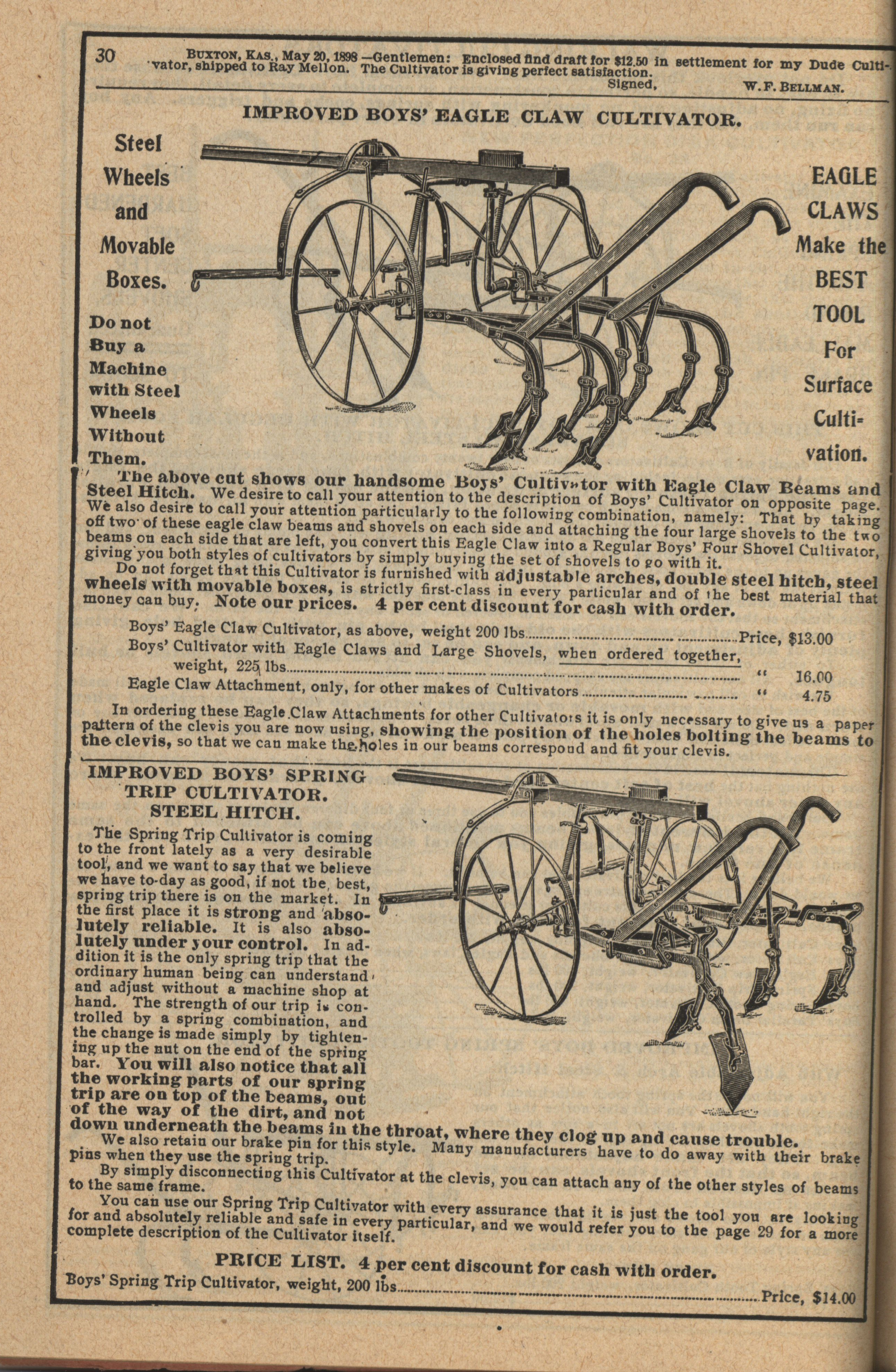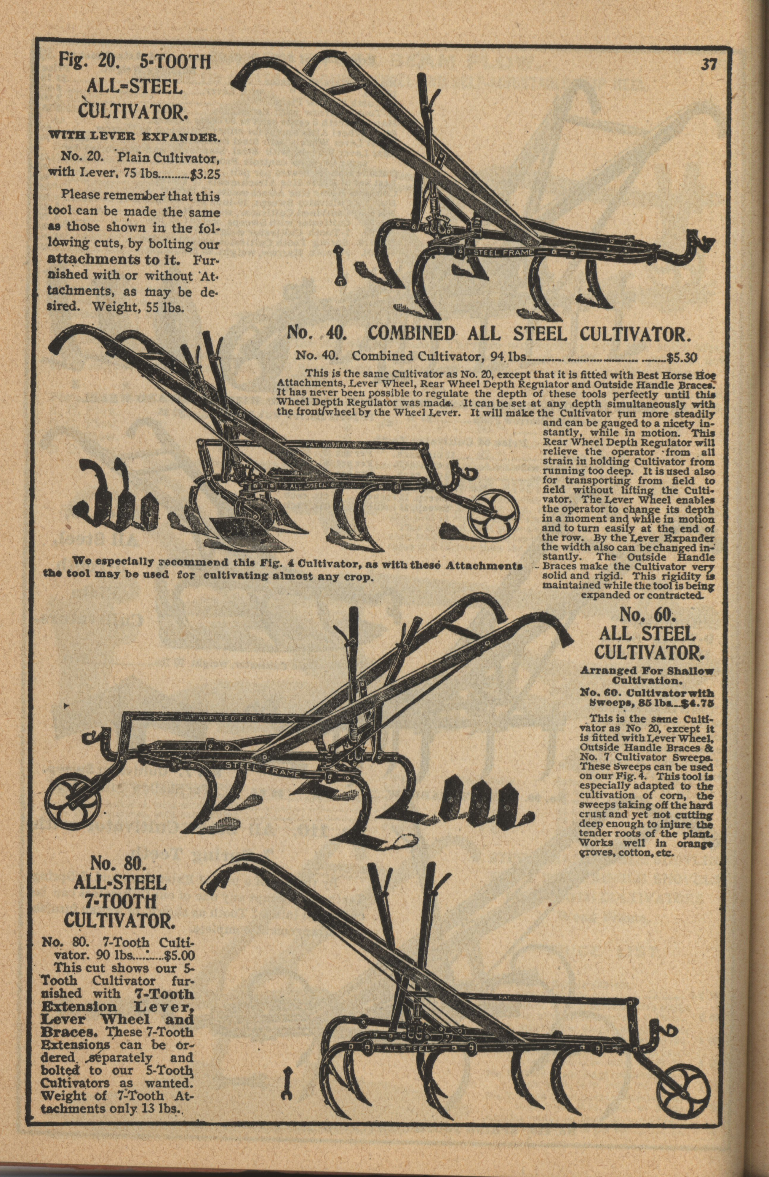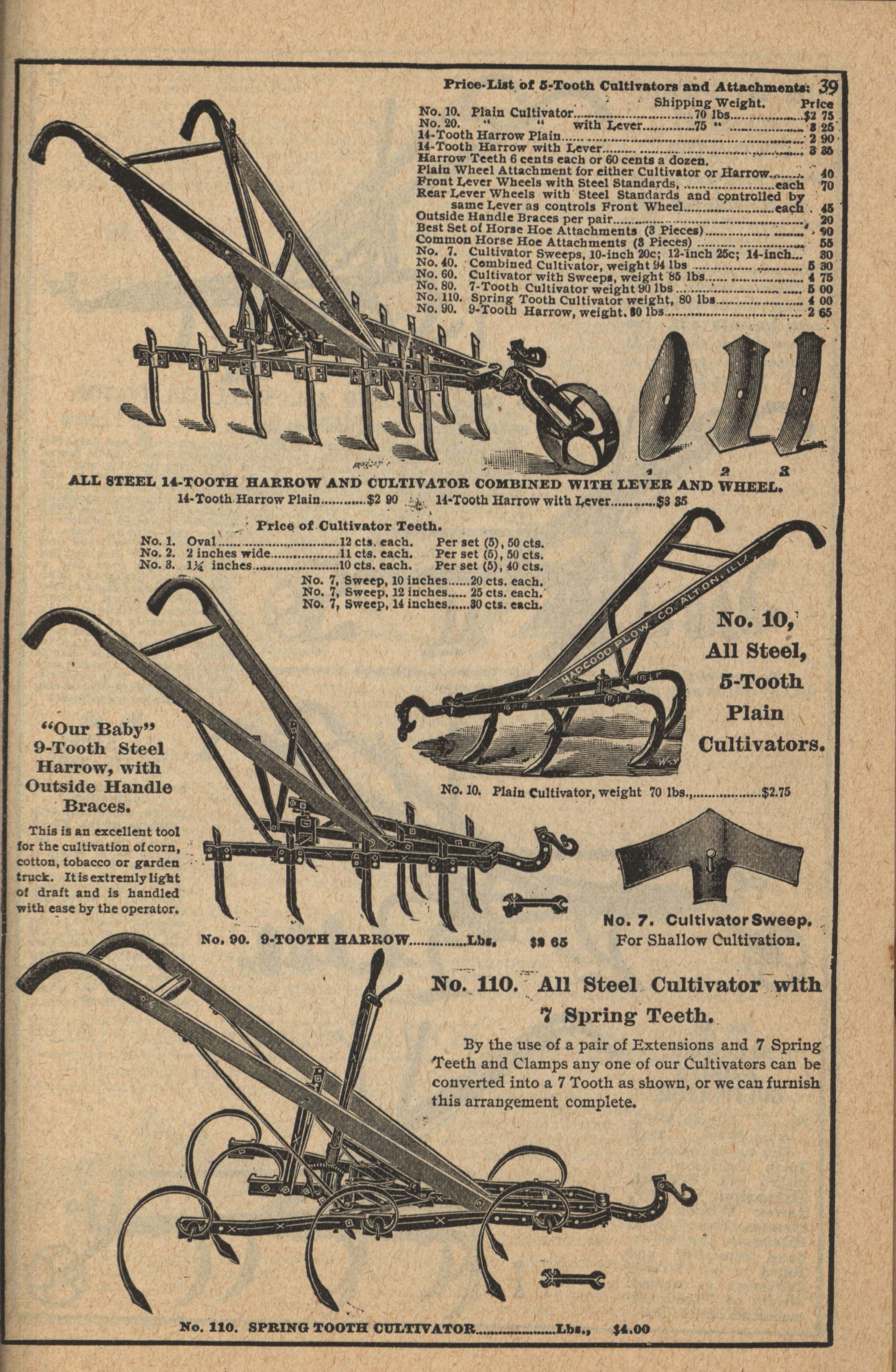 - Illustrated catalog describing the agricultural implements offered by Hapgood Plow Company in 1905.